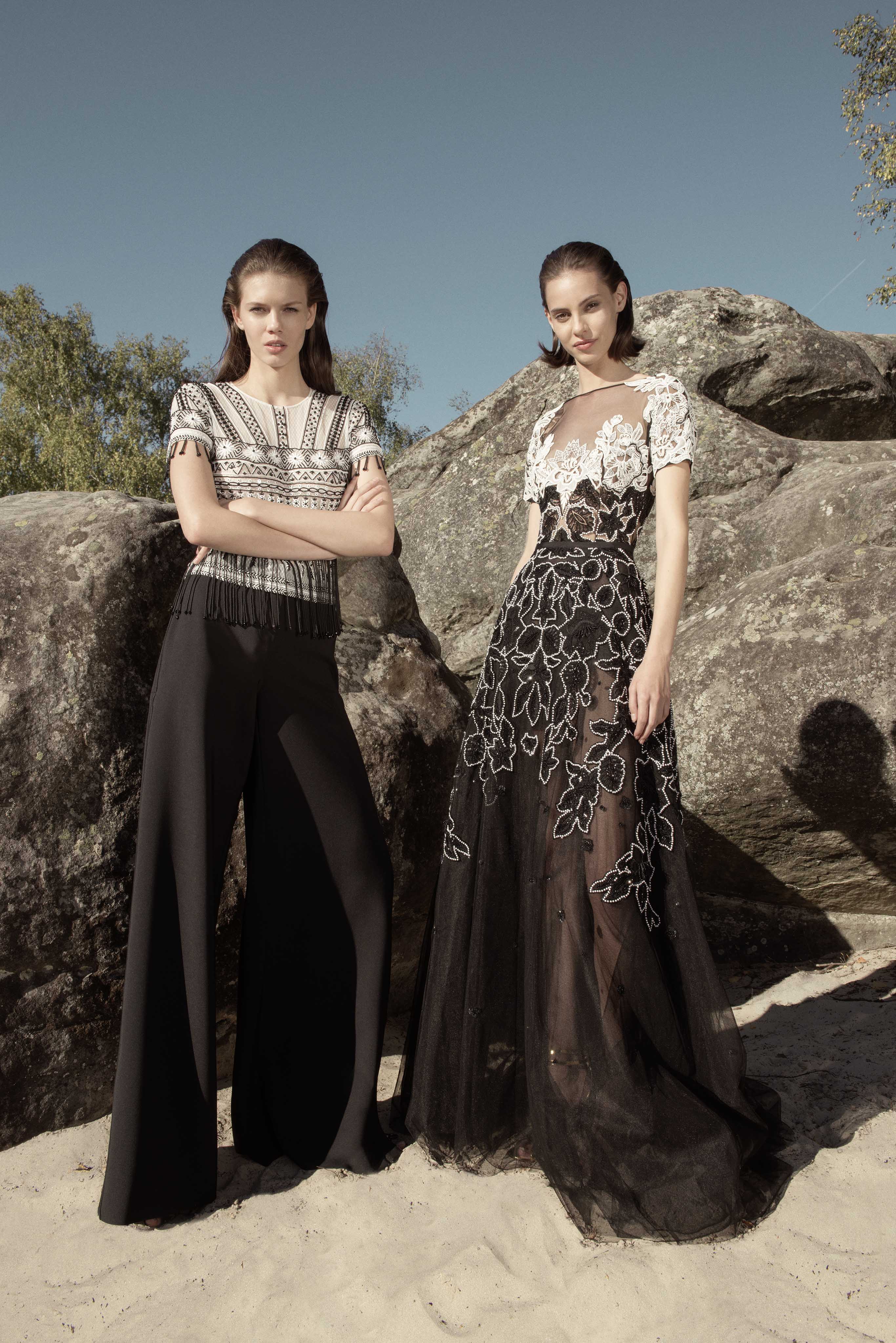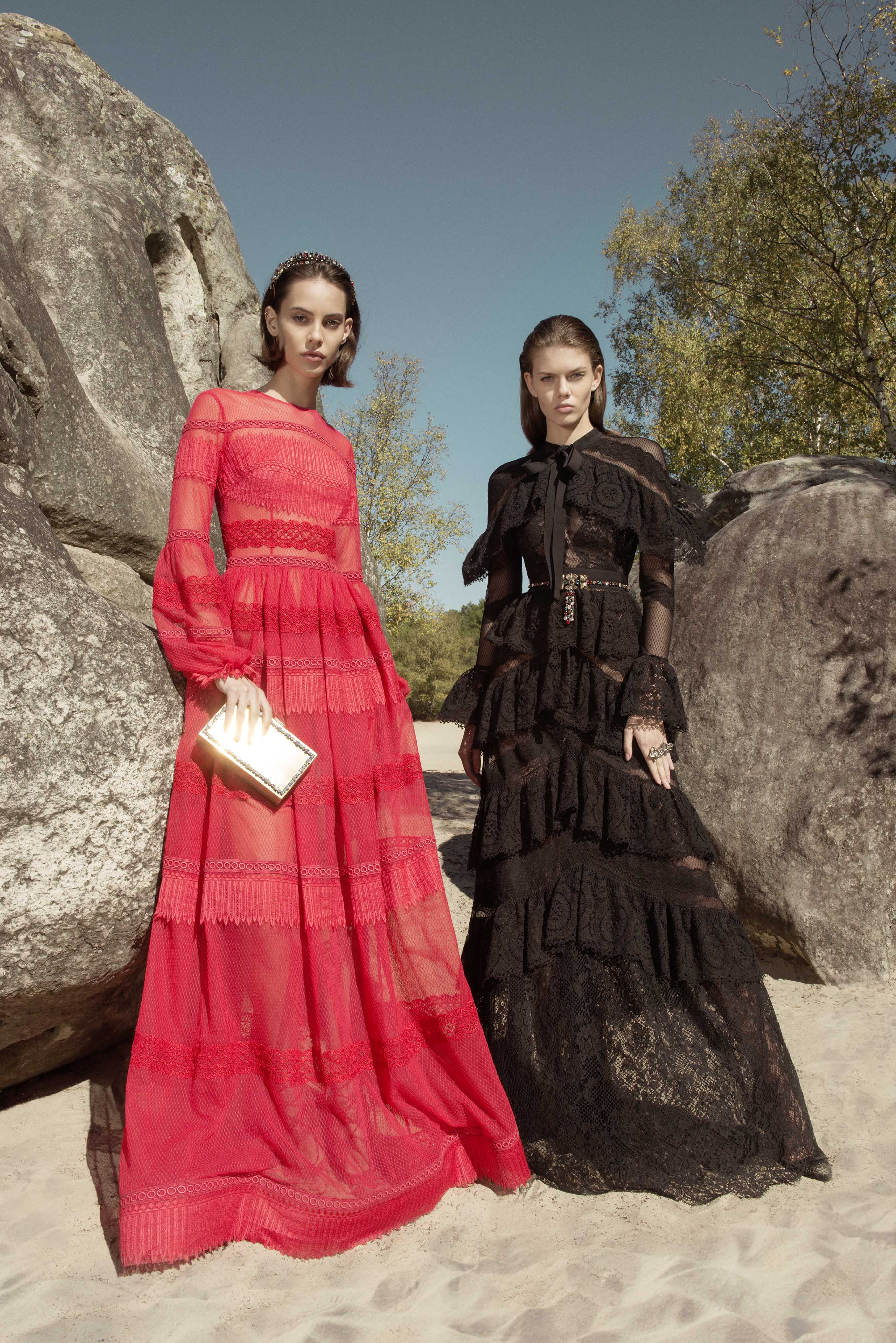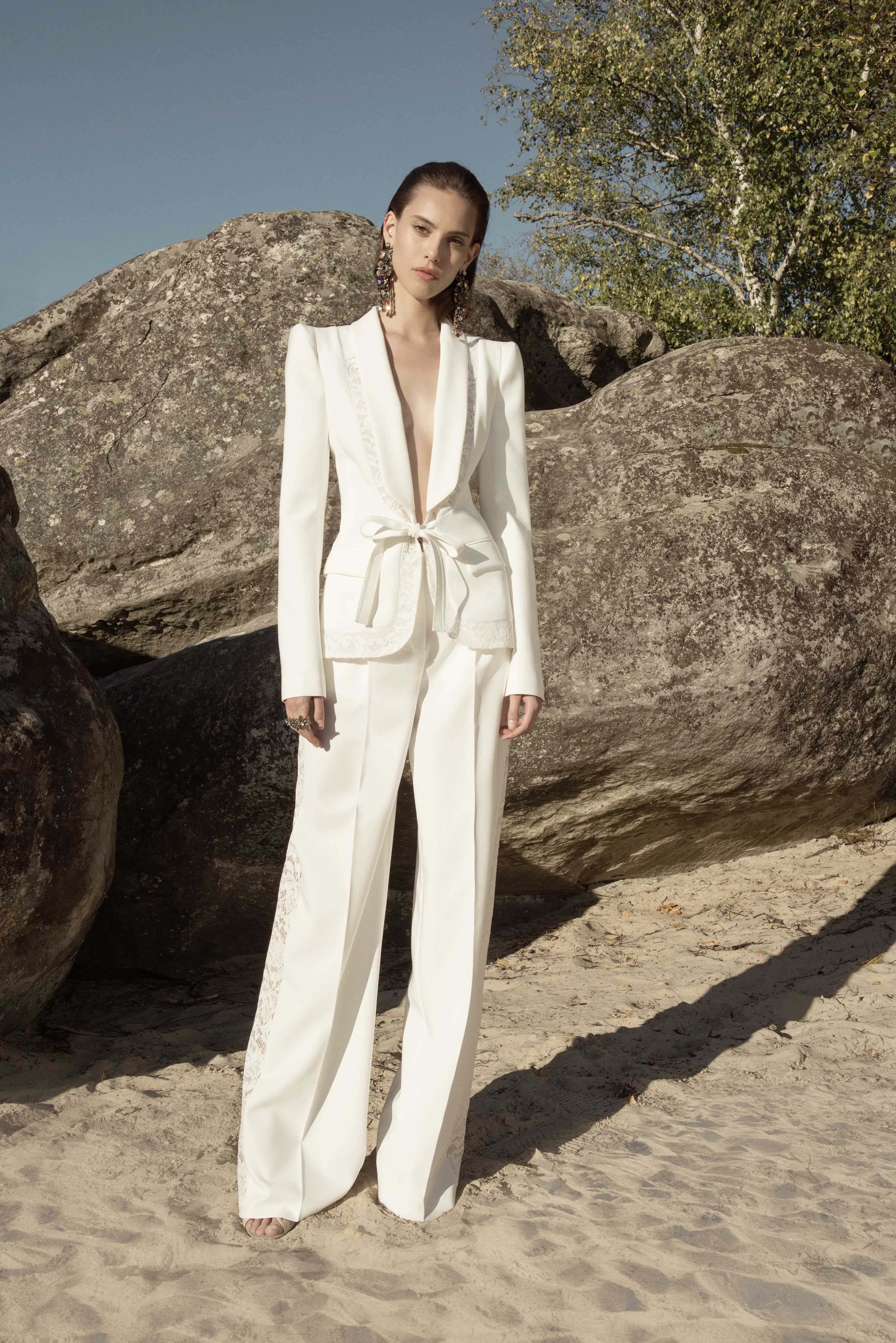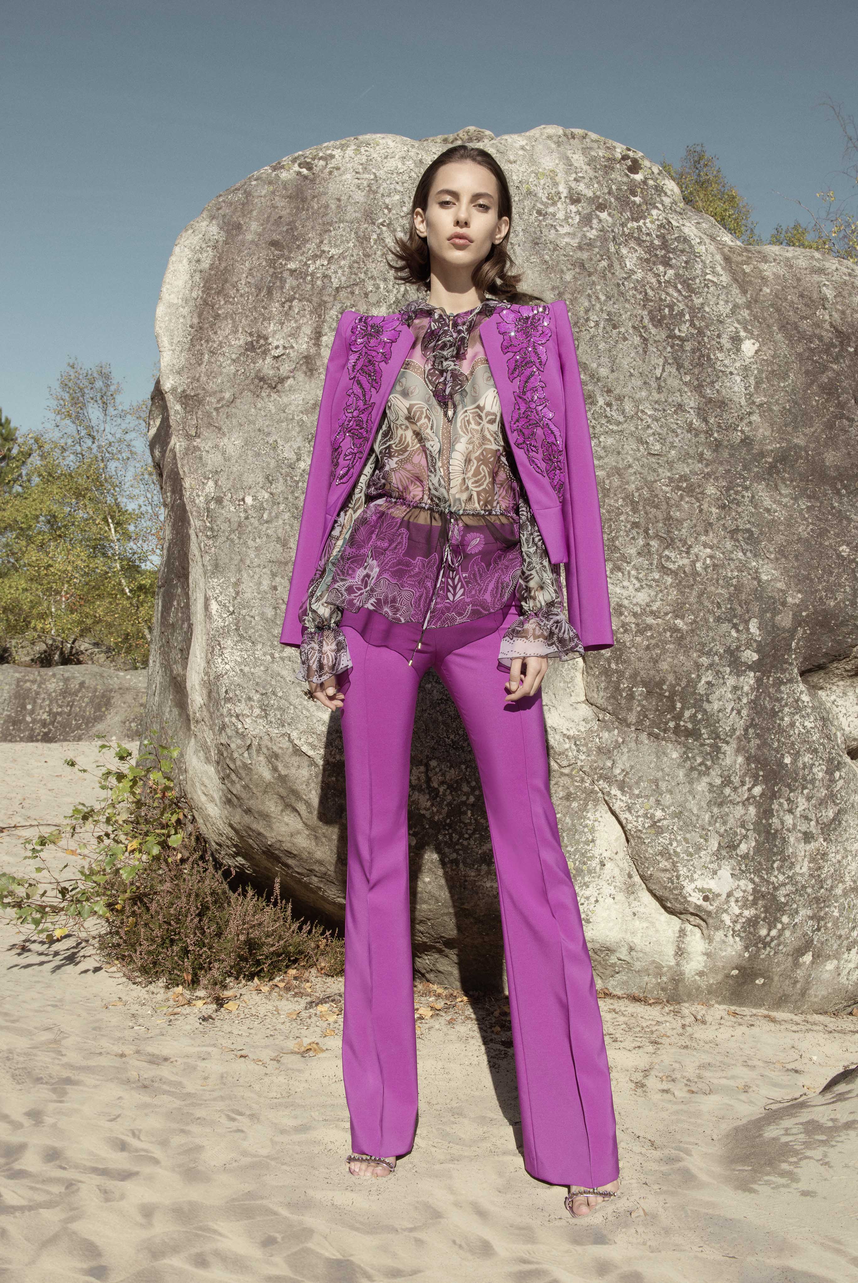 Cette palette de textures se déploie sur des jupes plissées et moirées ; des tuniques ceinturées et légères comme un souffle ; des blazers déstructurés et ornés de dentelles; des hauts à volants en mousseline ; ou encore des capes et robes vaporeuses, à nouer autour des épaules.