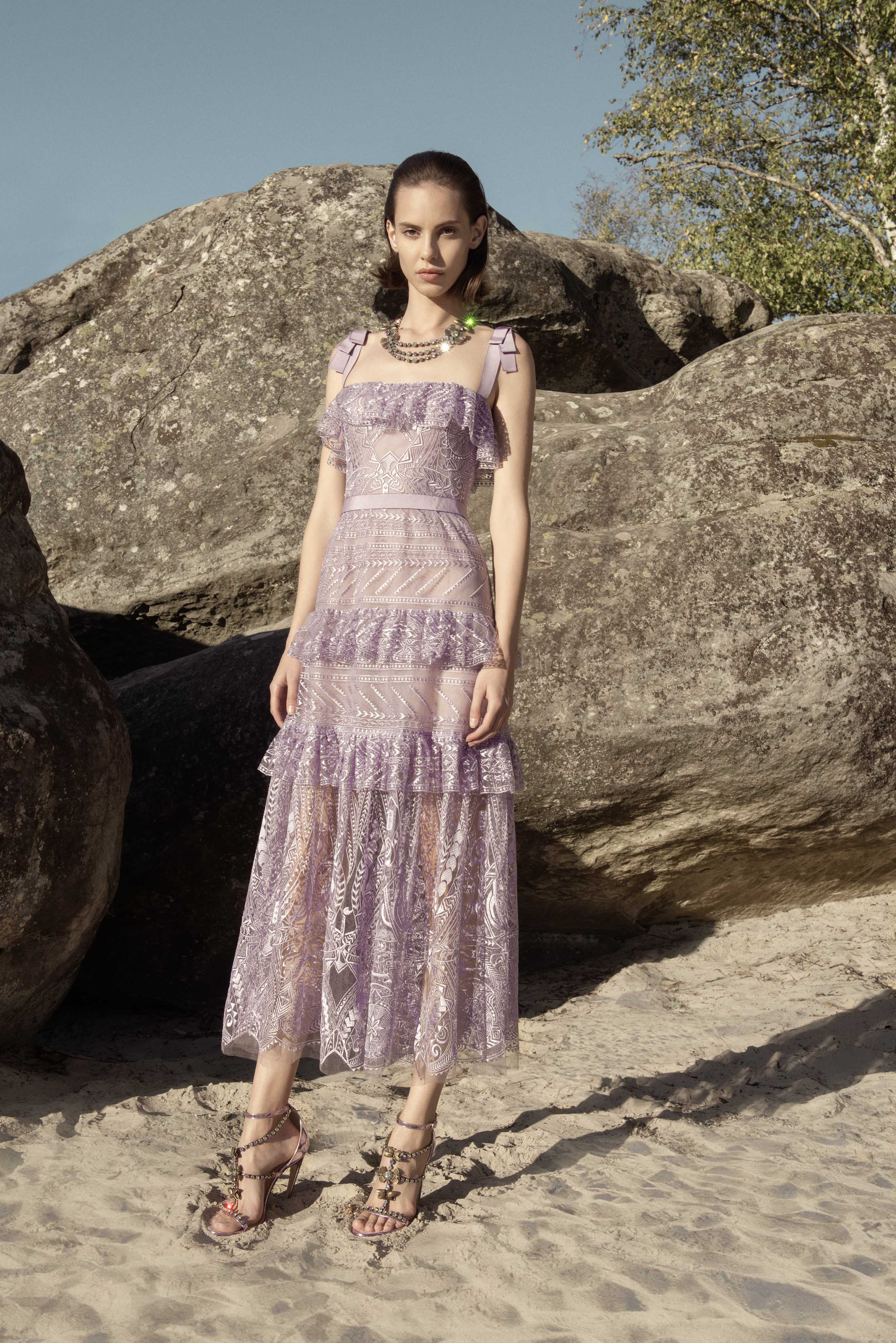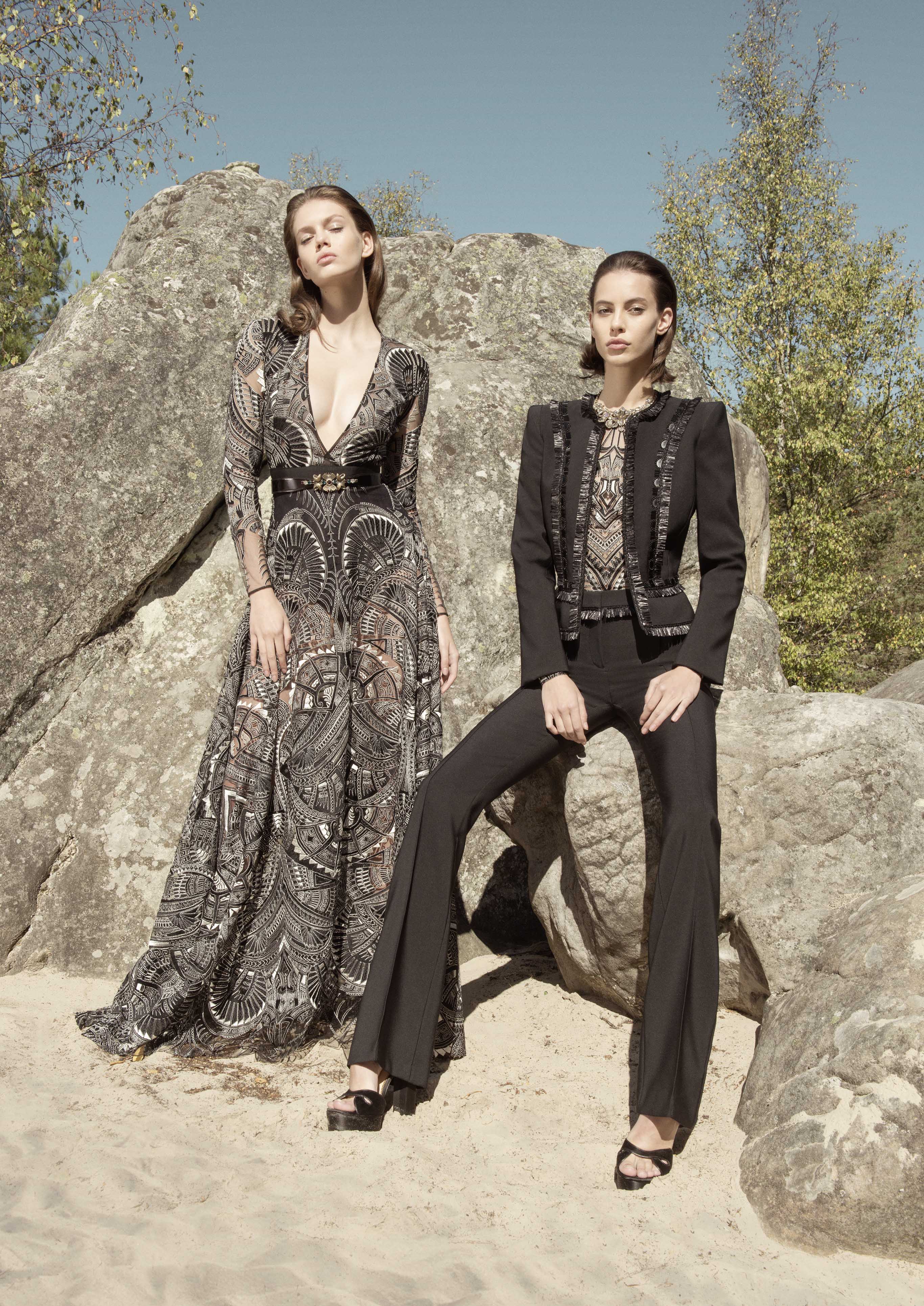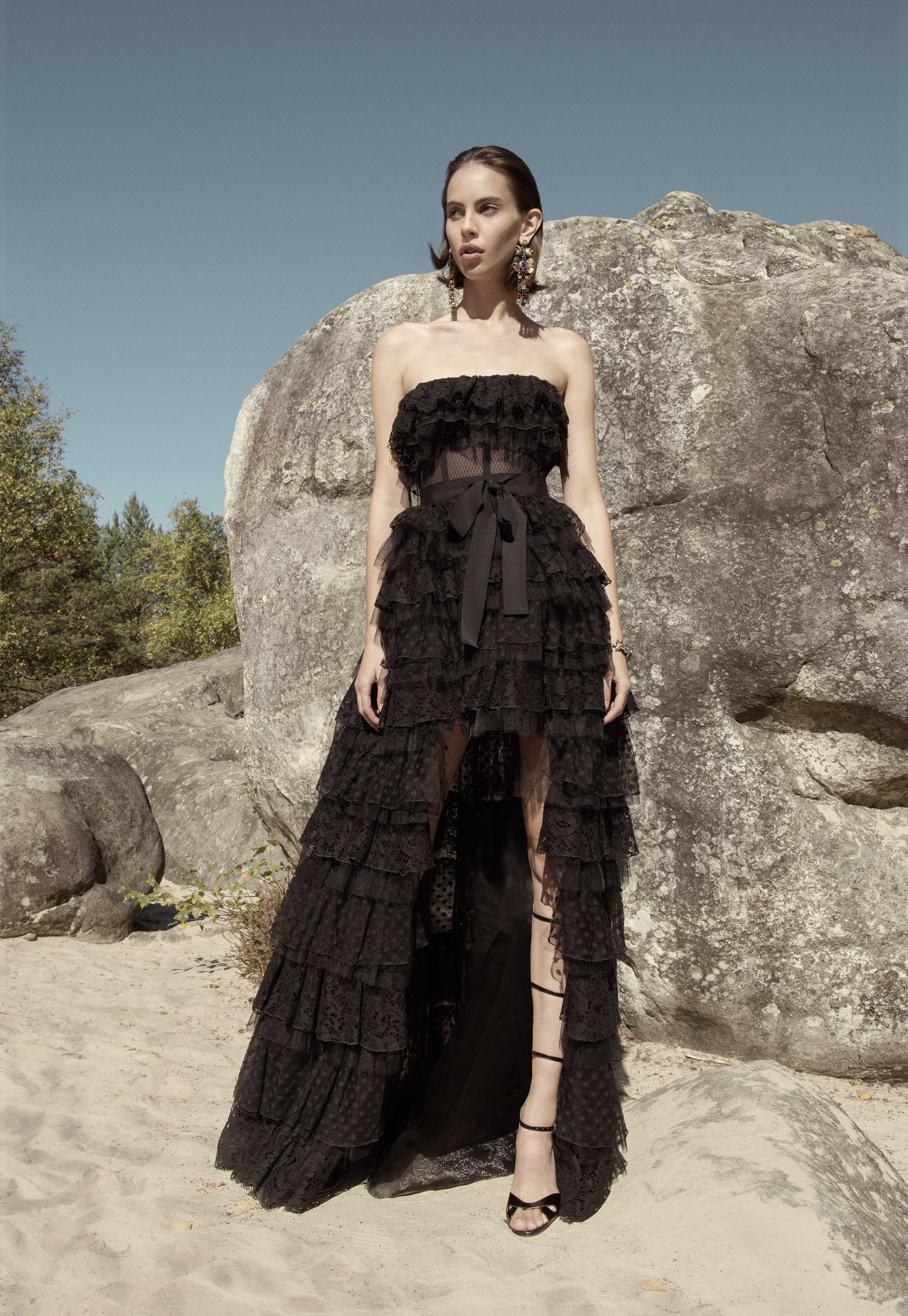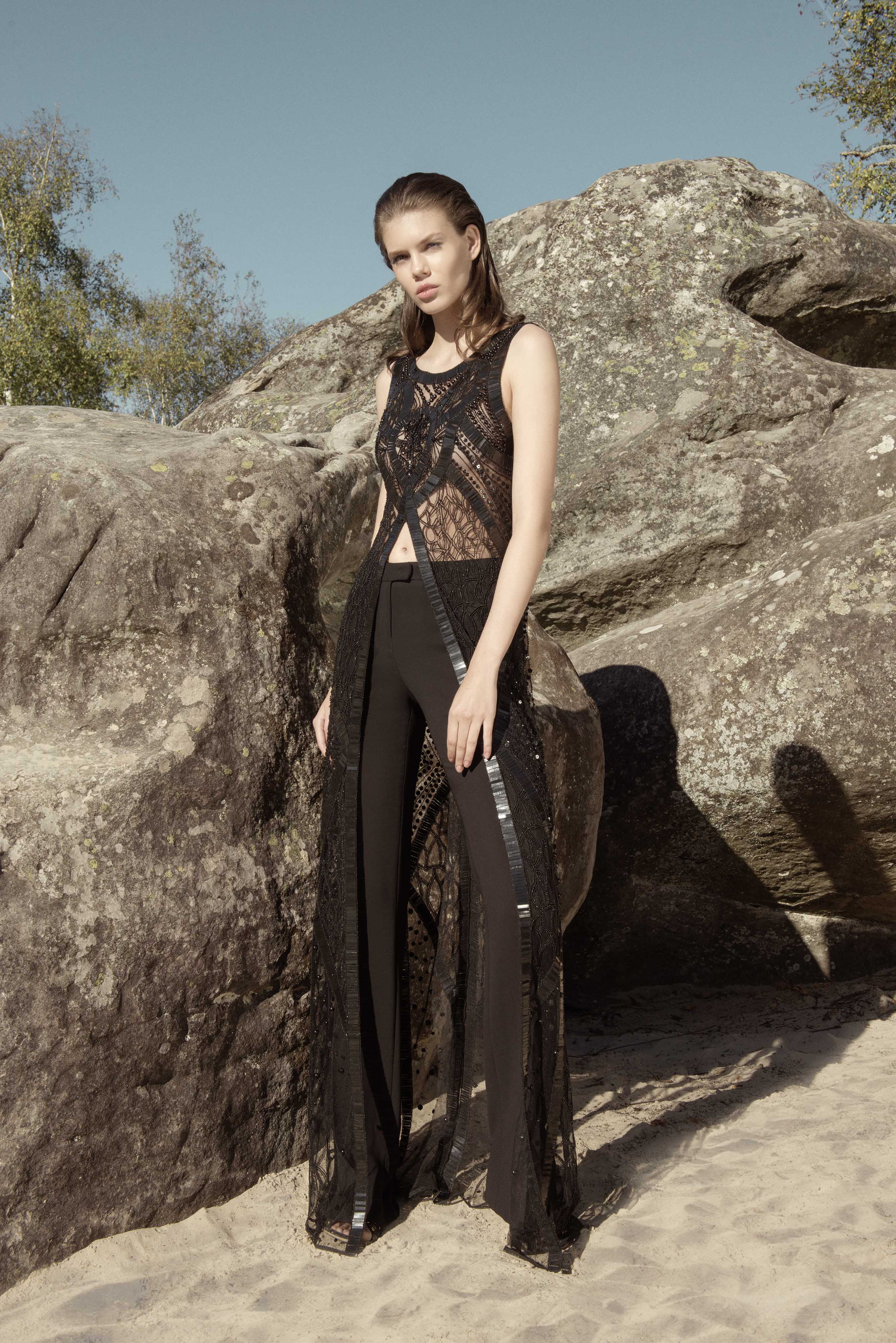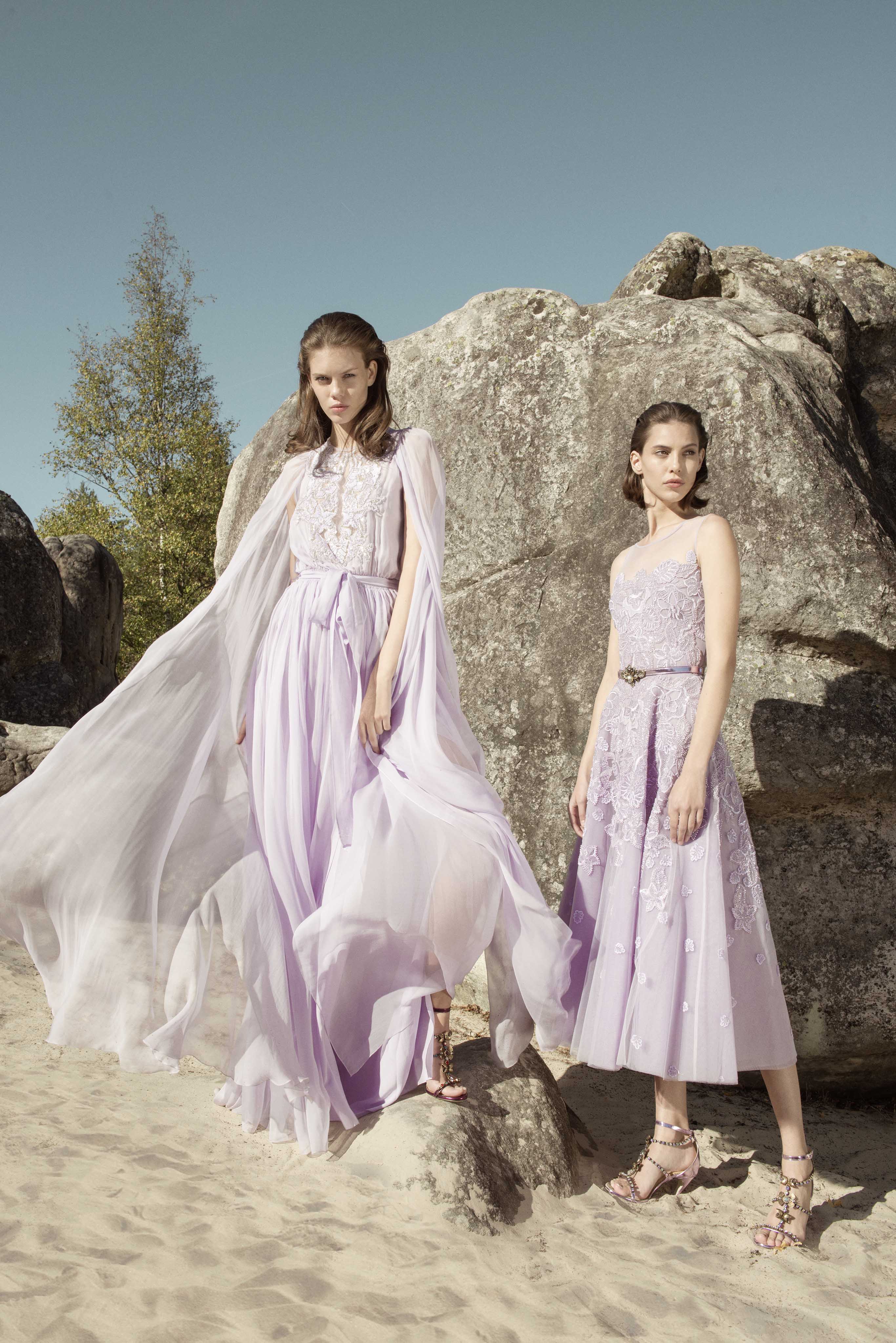 Cette palette de textures se déploie sur des jupes plissées et moirées ; des tuniques ceinturées et légères comme un souffle ; des blazers déstructurés et ornés de dentelles; des hauts à volants en mousseline ; ou encore des capes et robes vaporeuses, à nouer autour des épaules.