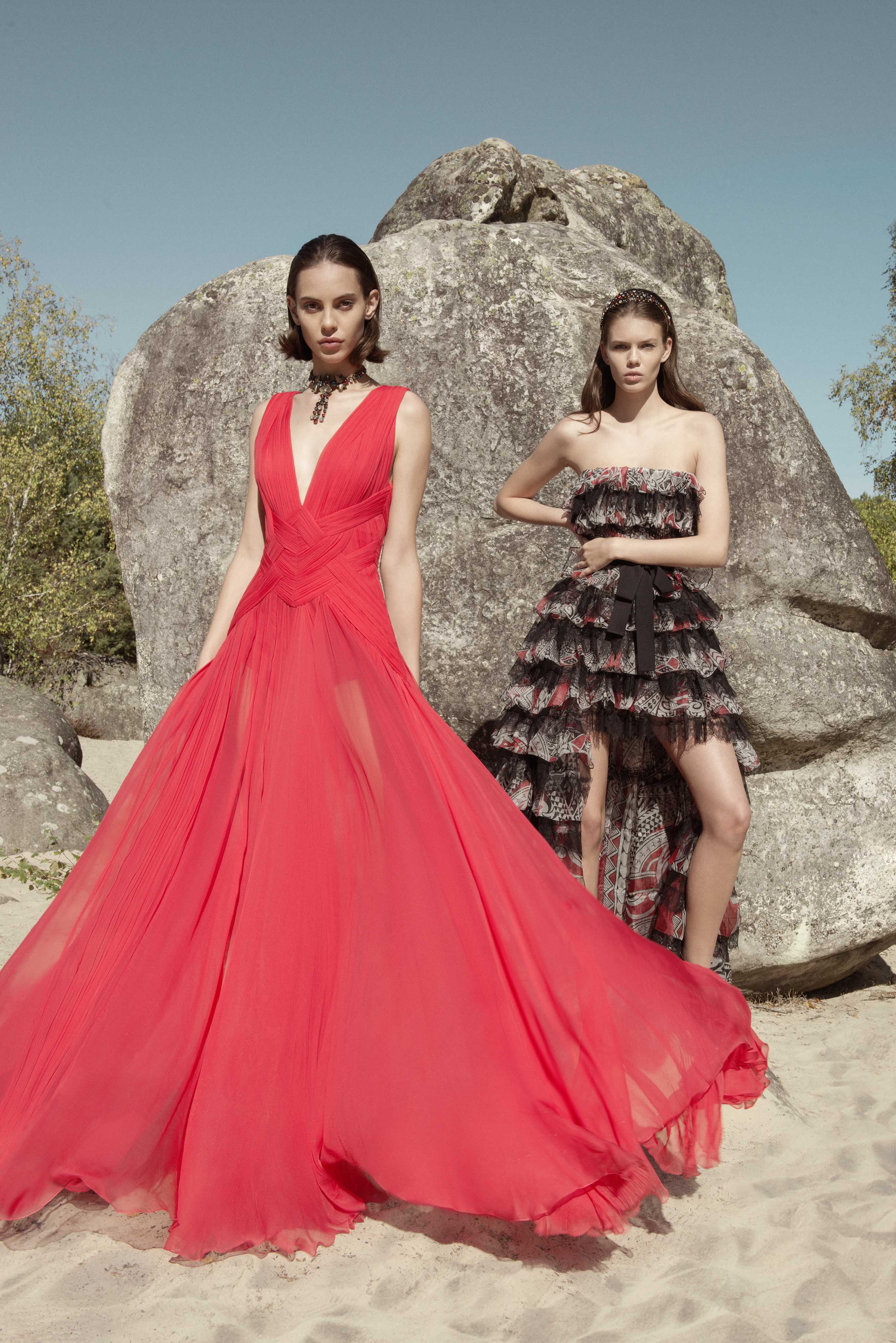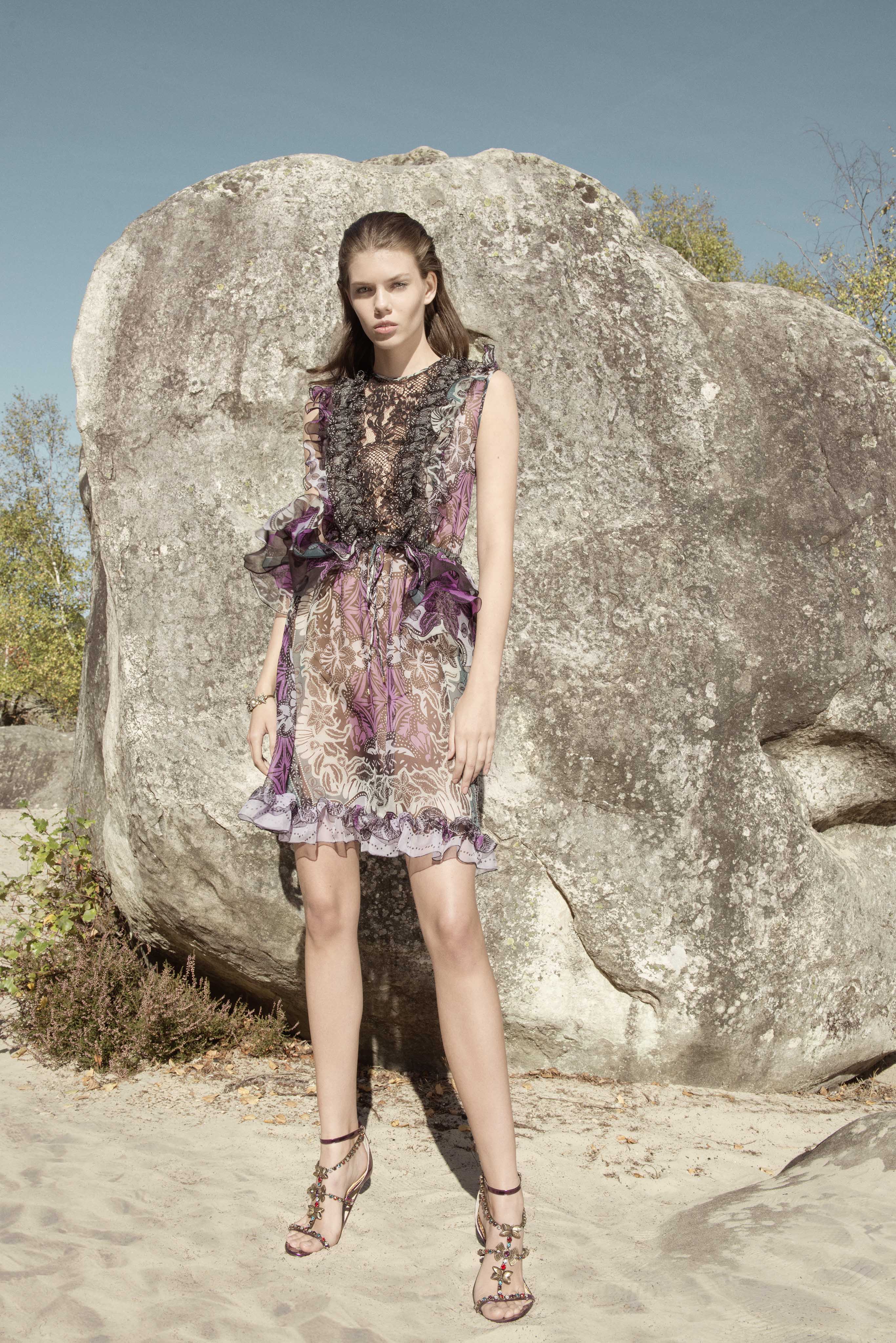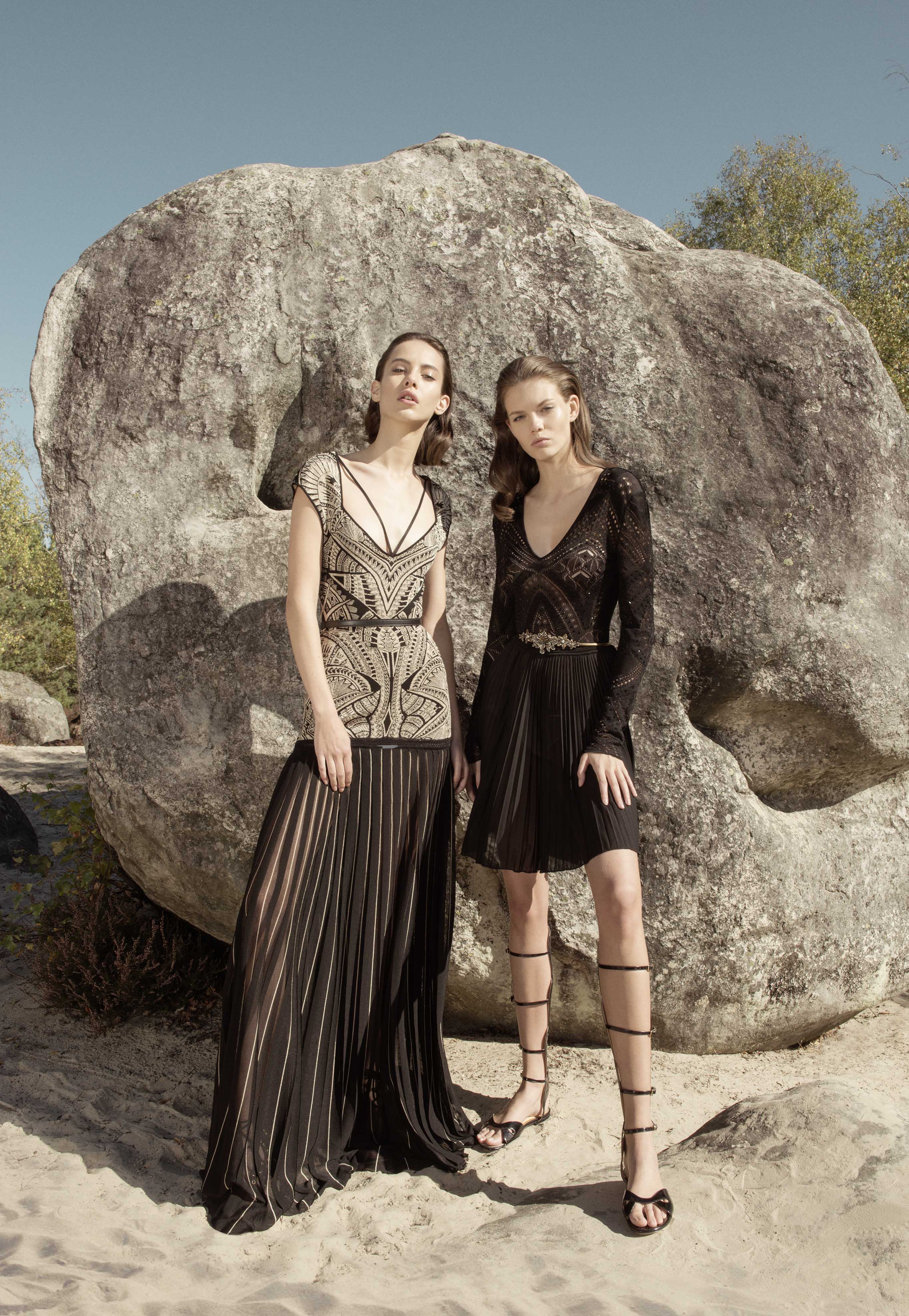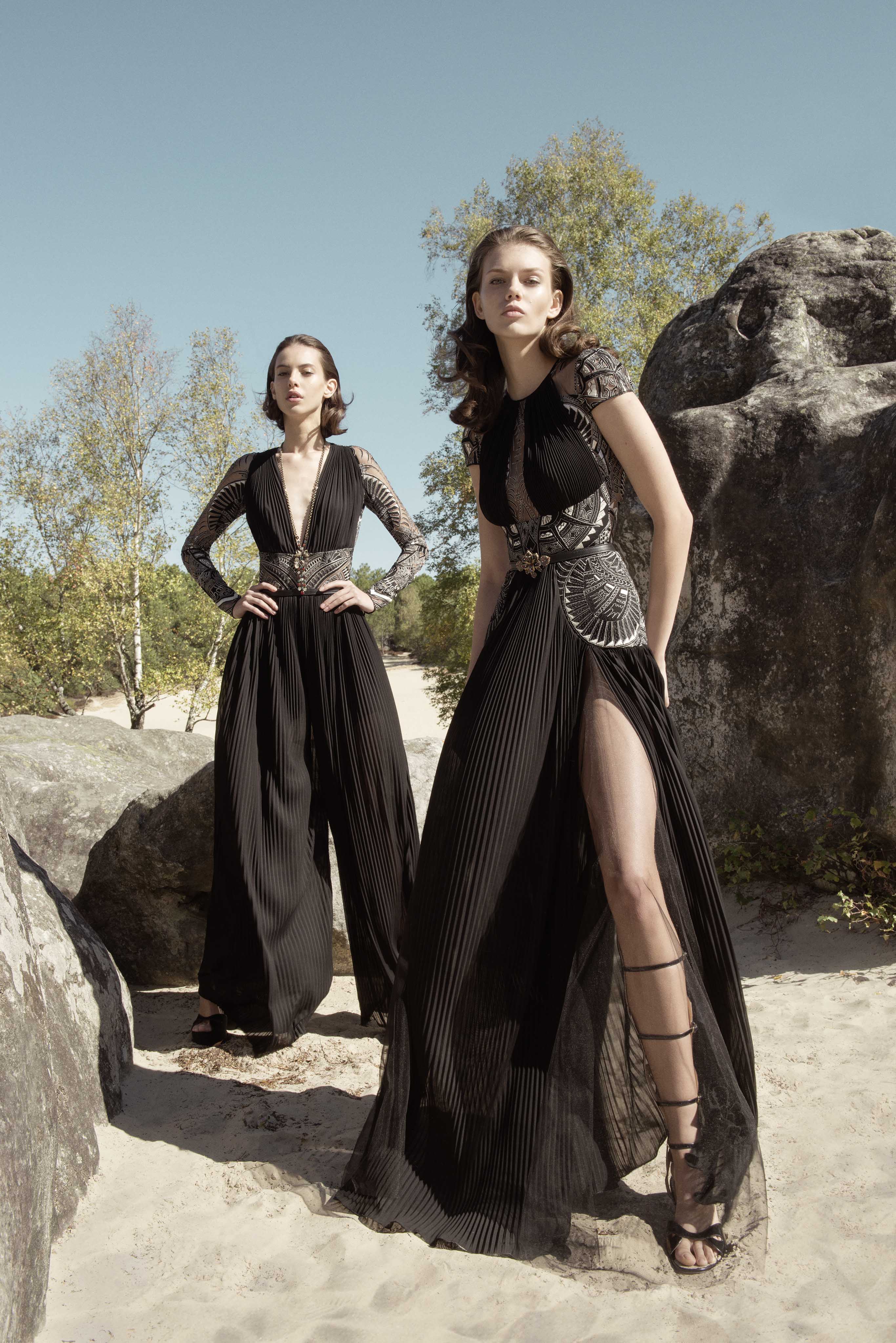 Cette palette de textures se déploie sur des jupes plissées et moirées ; des tuniques ceinturées et légères comme un souffle ; des blazers déstructurés et ornés de dentelles; des hauts à volants en mousseline ; ou encore des capes et robes vaporeuses, à nouer autour des épaules.