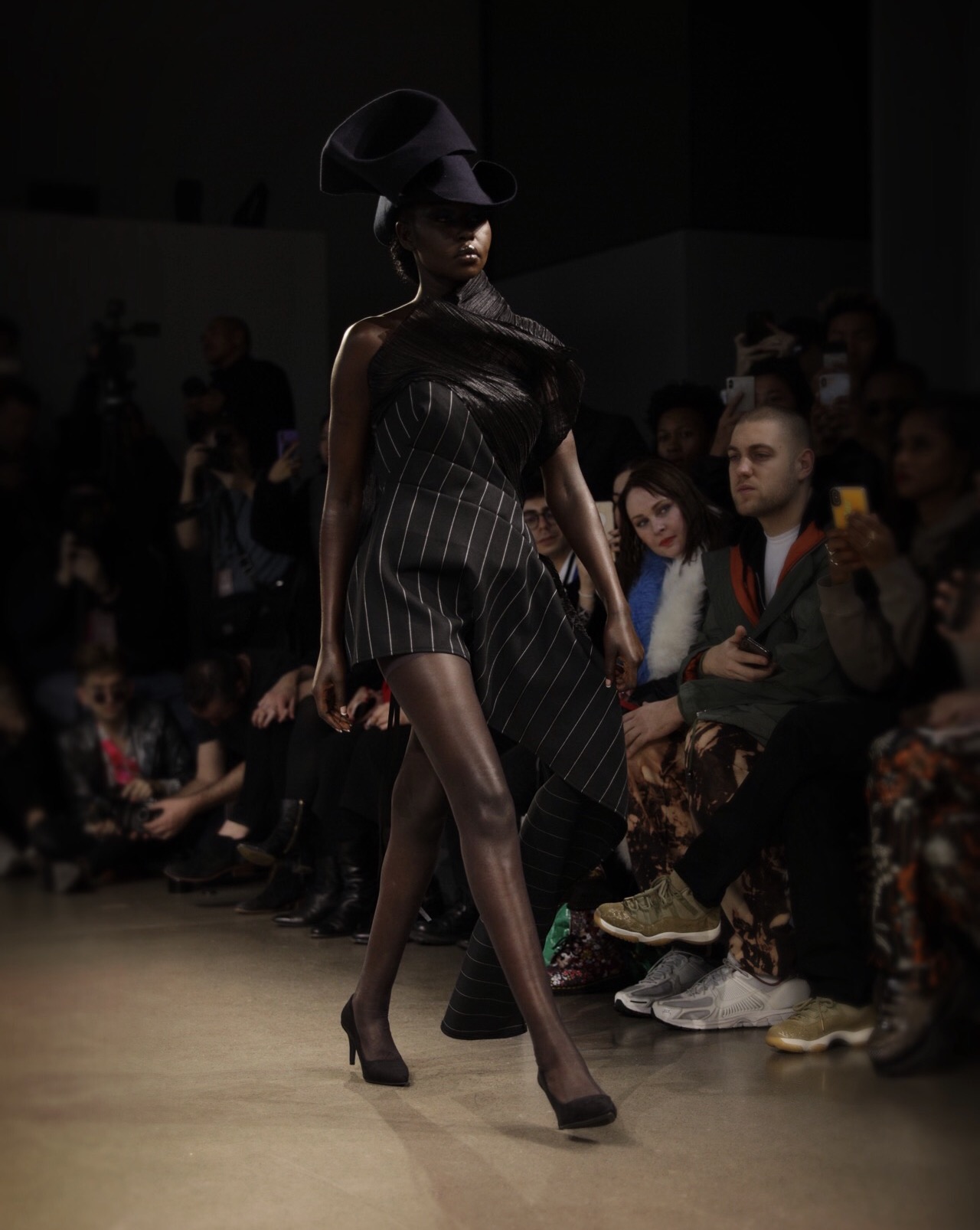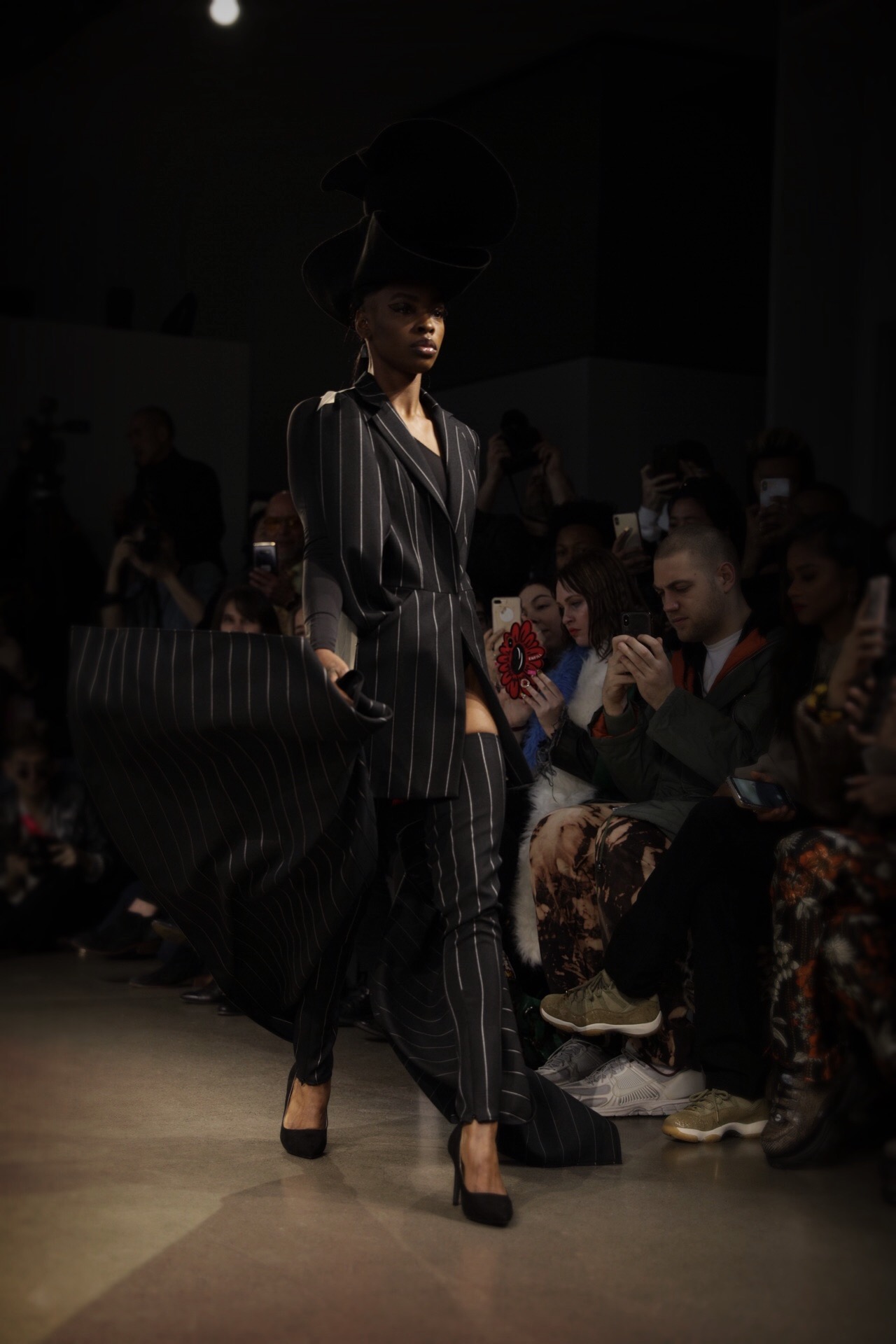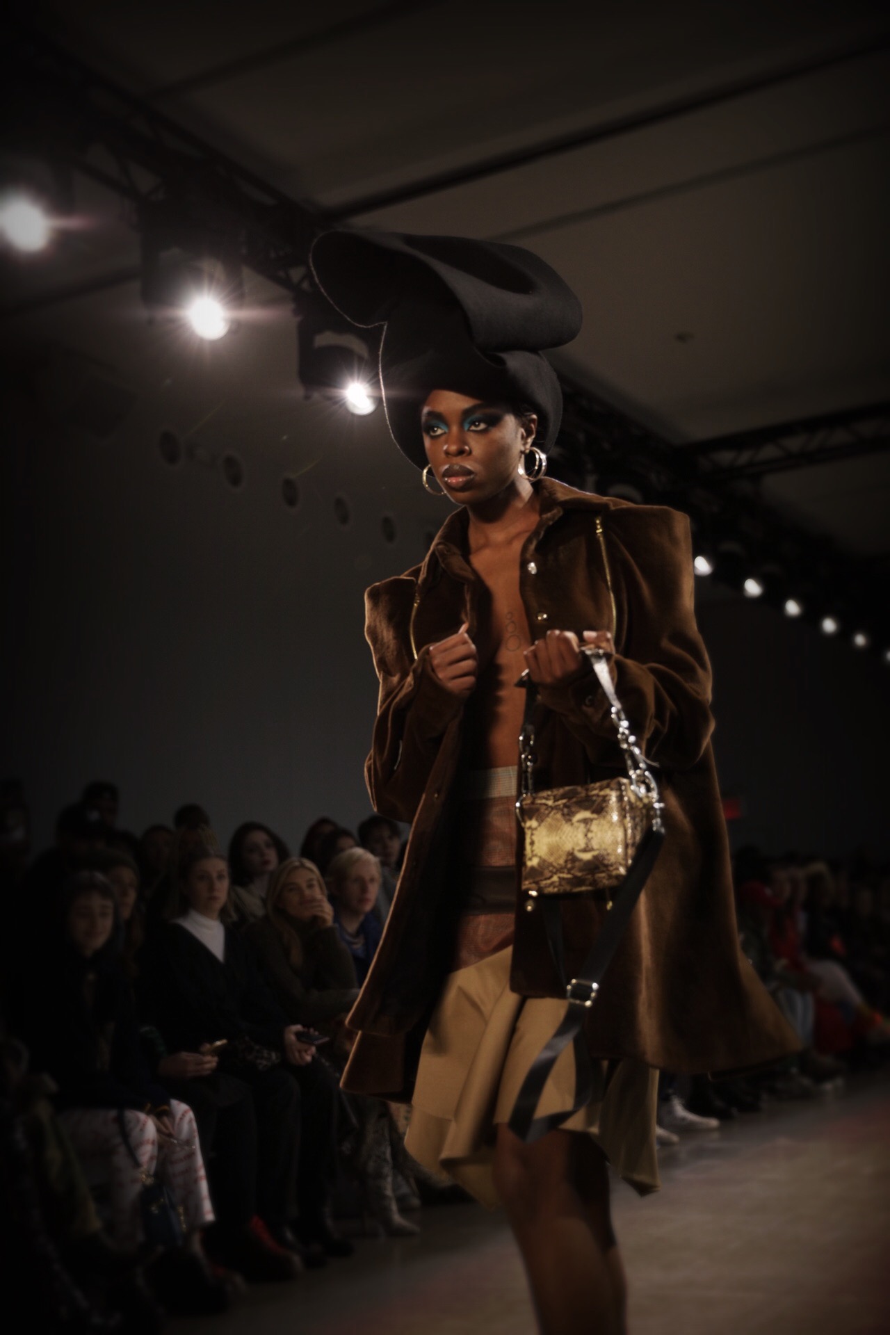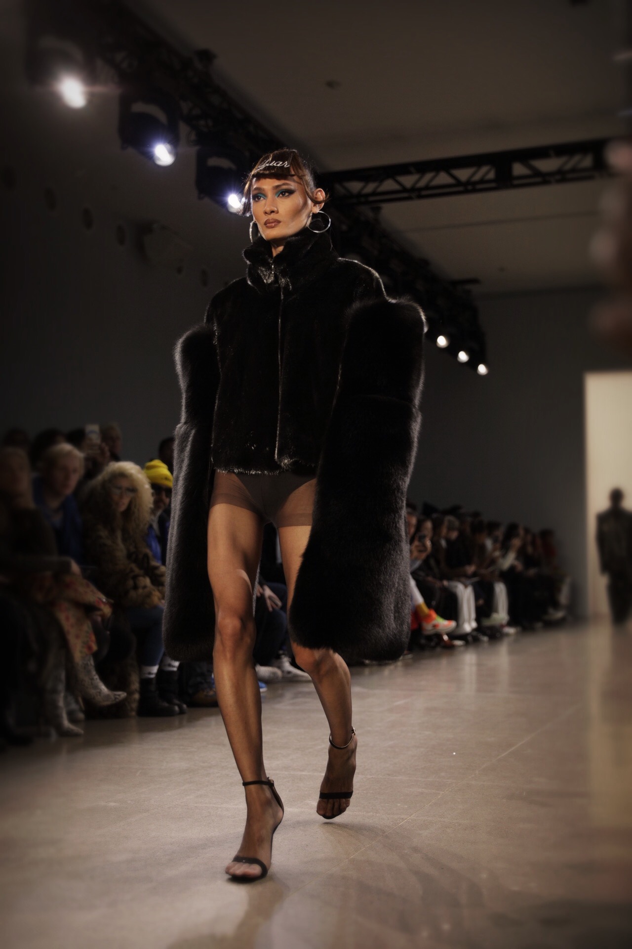 Lunettes ornées de bijoux, chapeaux théâtraux et le retour du sac à main iconique Cynthia mettait en valeur les cosmétiques sponsorisés par MAC et les fourrures.