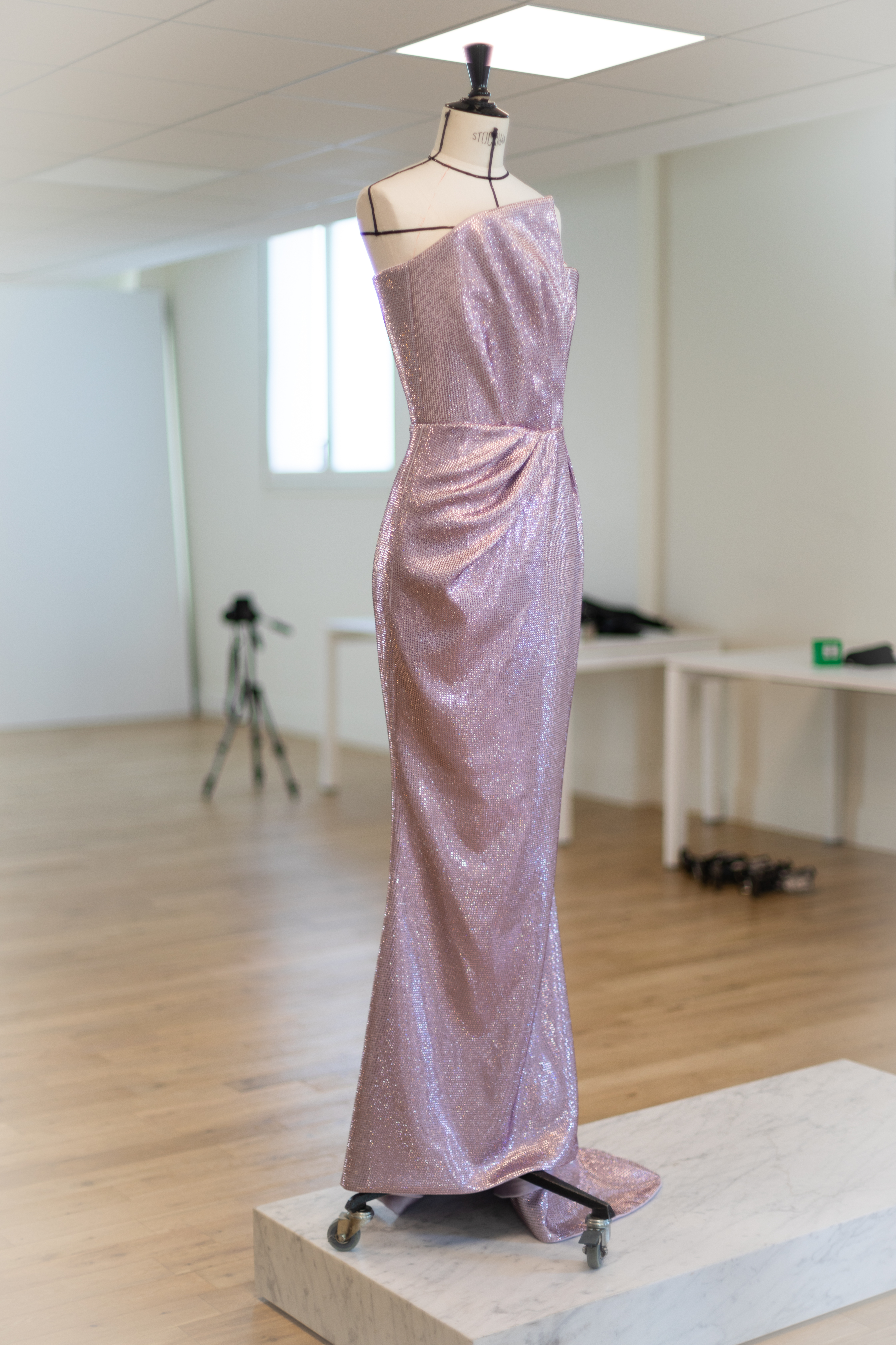 (photo credit Marion Leflour) Emmy-nominated actress Emilia Clarke wore a bespoke Balmain dress embellished with Swarovski crystals on the Oscars red carpet this evening. The glamorous gown featured 300,000 Swarovski stones in Light Amethyst. Clarke is best known for playing lead character Daenerys Targaryen in the critically-acclaimed television phenomenon Game of Thrones, and for her work in the romantic-drama film Me Before You.