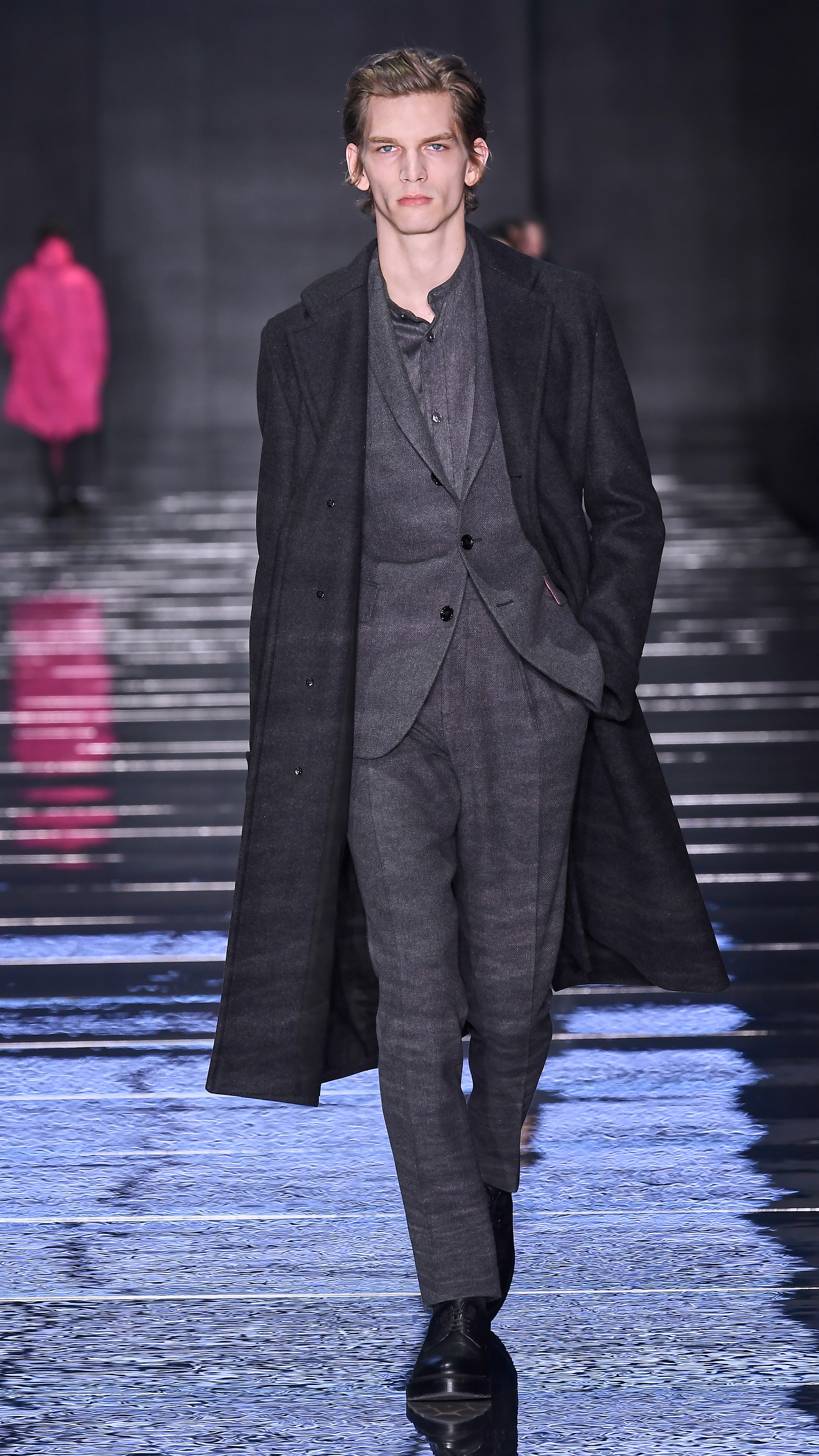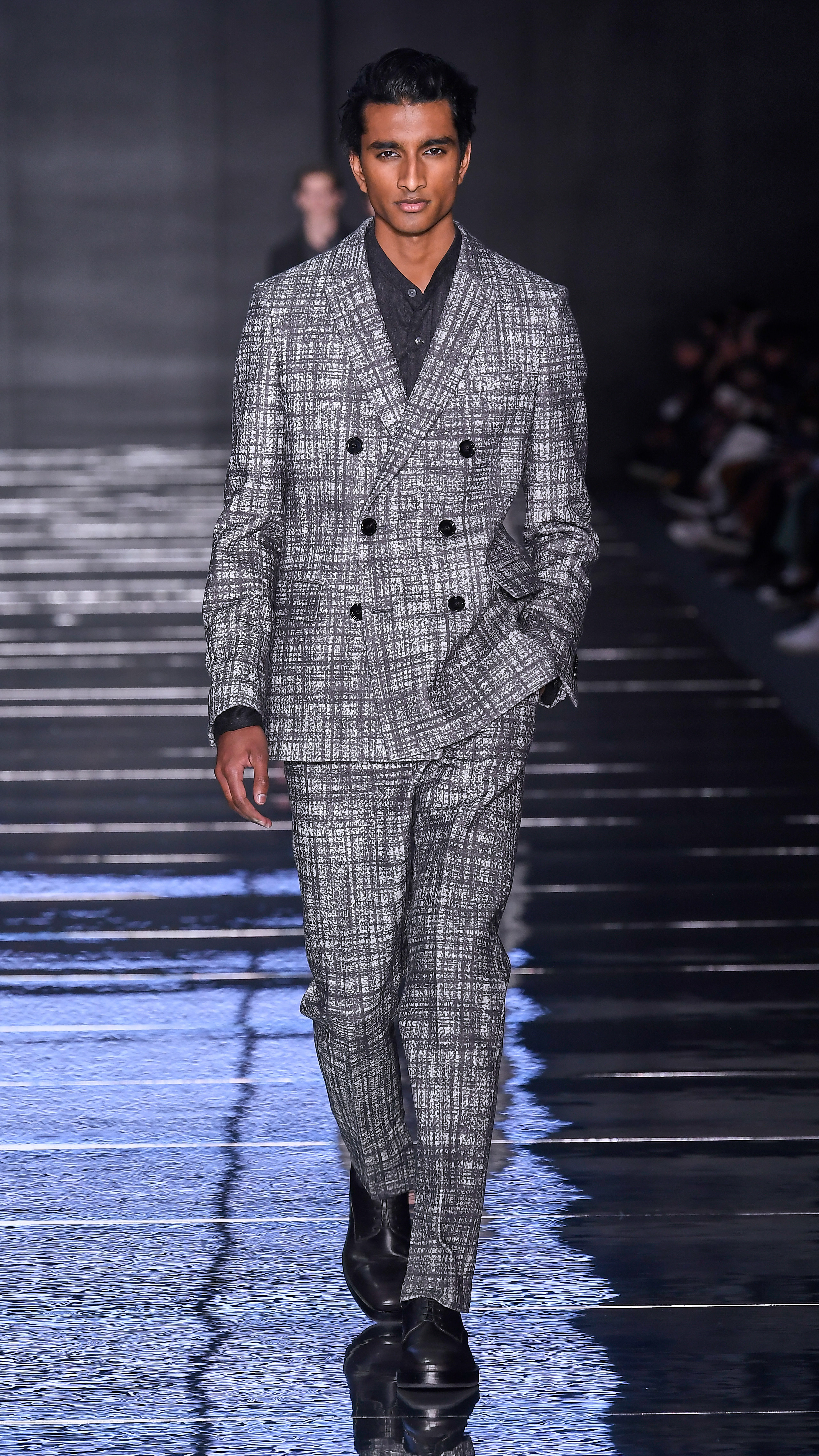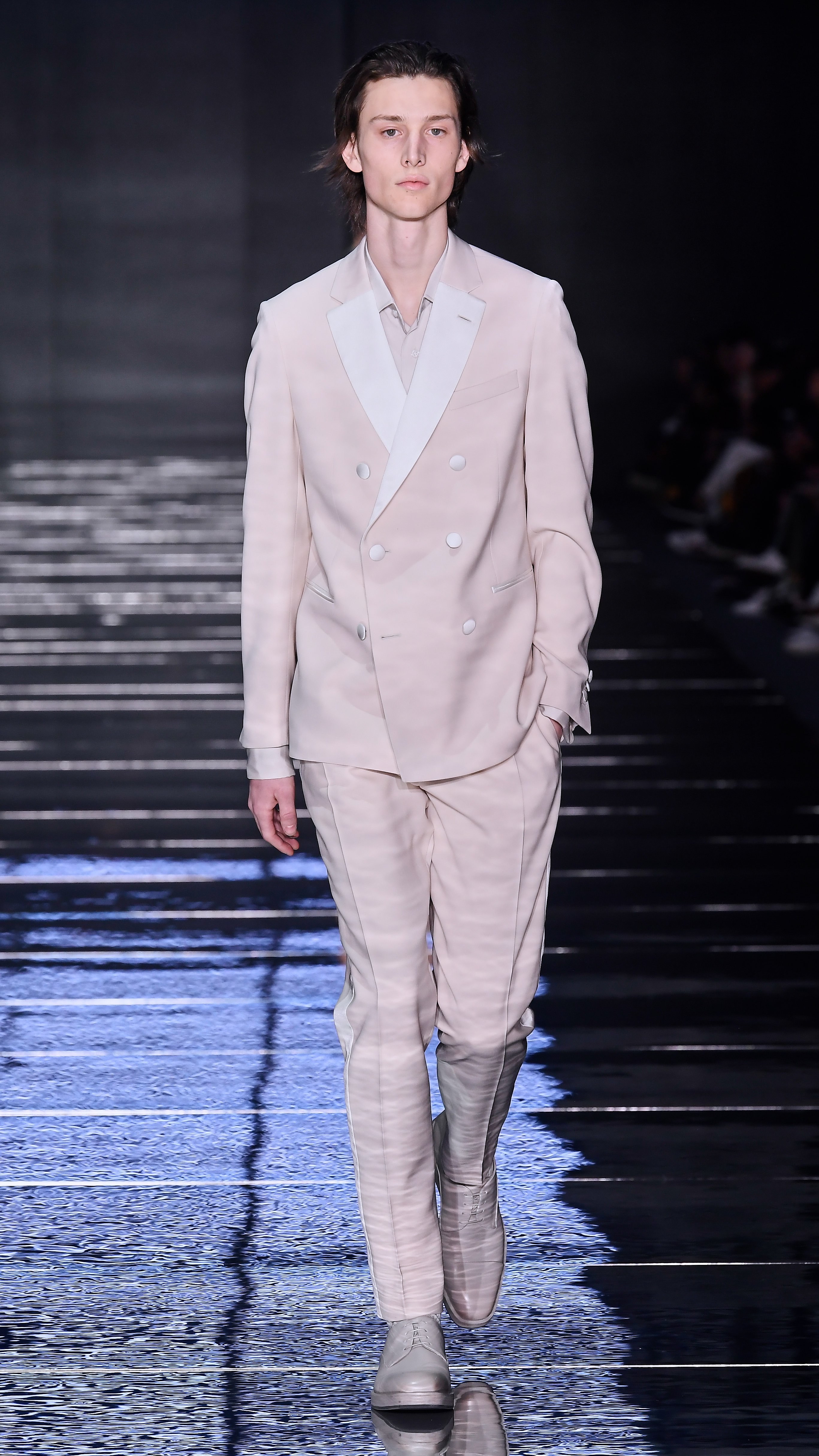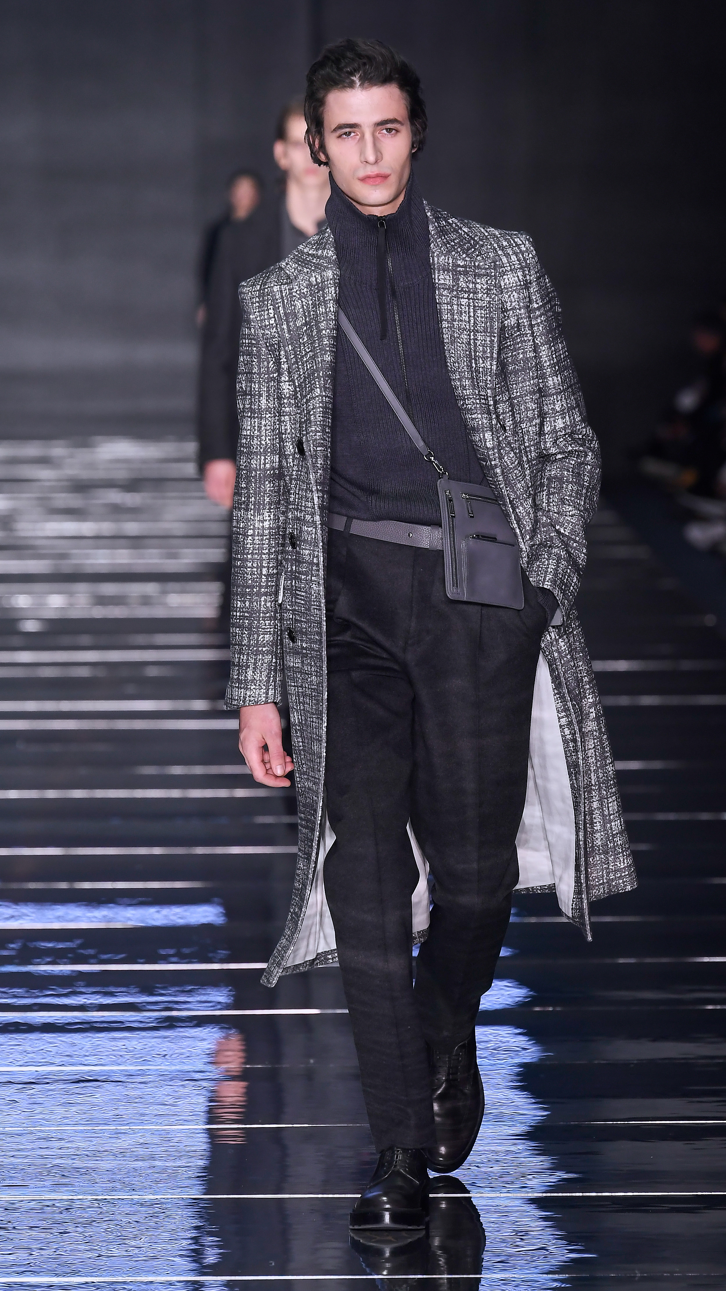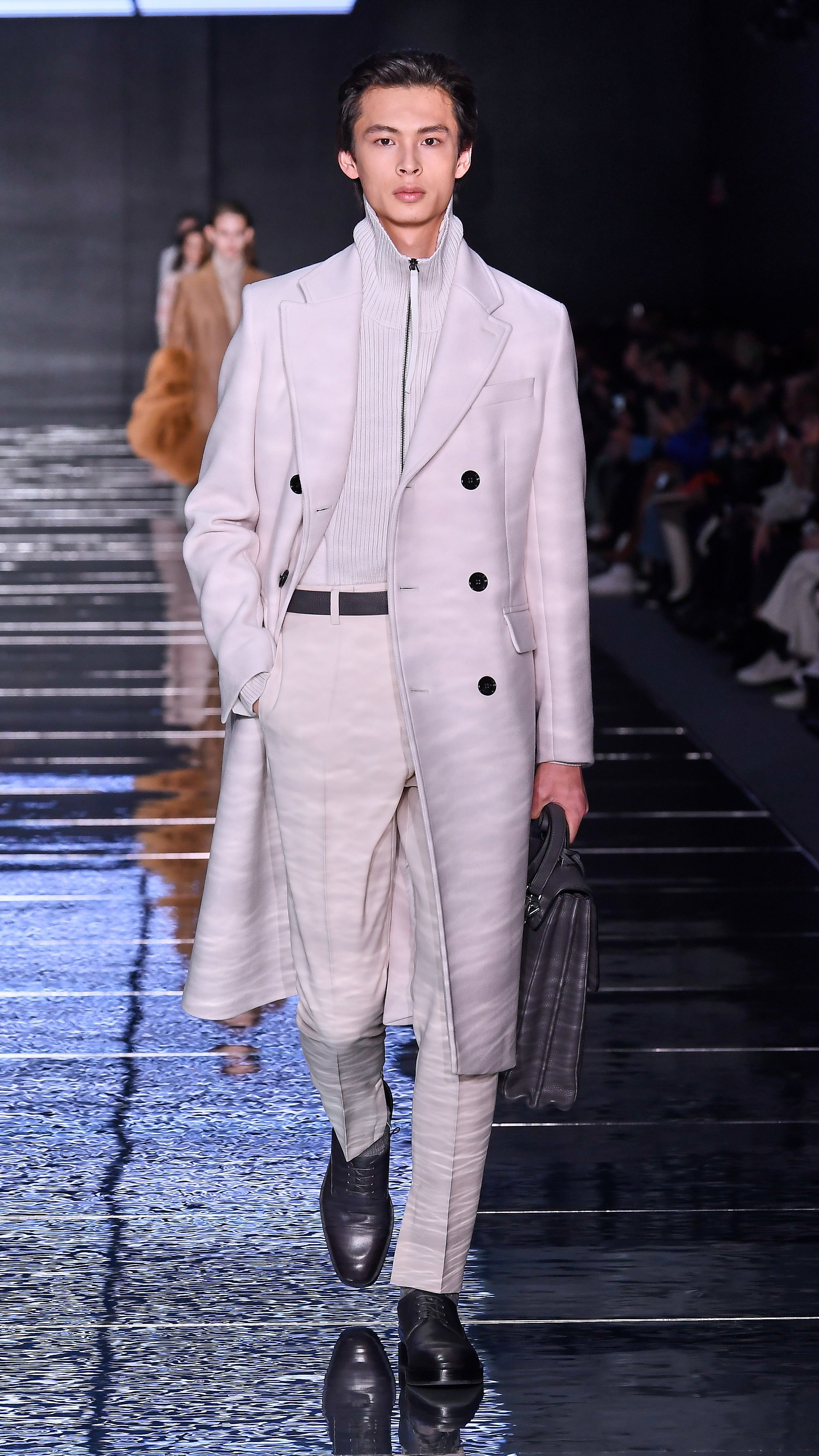 Le costume, point d’orgue de cette nouvelle collection, continue d’évoluer et se targue d’influences sportives avec des proportions revisitées. L’utilisation de matières luxueuses comme la laine d’alpaga et le cachemire se retrouvent dans l’élaboration des costumes. Tout comme les manteaux ou capes qui se parent de détails empruntés à la couture, renforçant et dessinant les nouveaux contours de l’élégance BOSS.