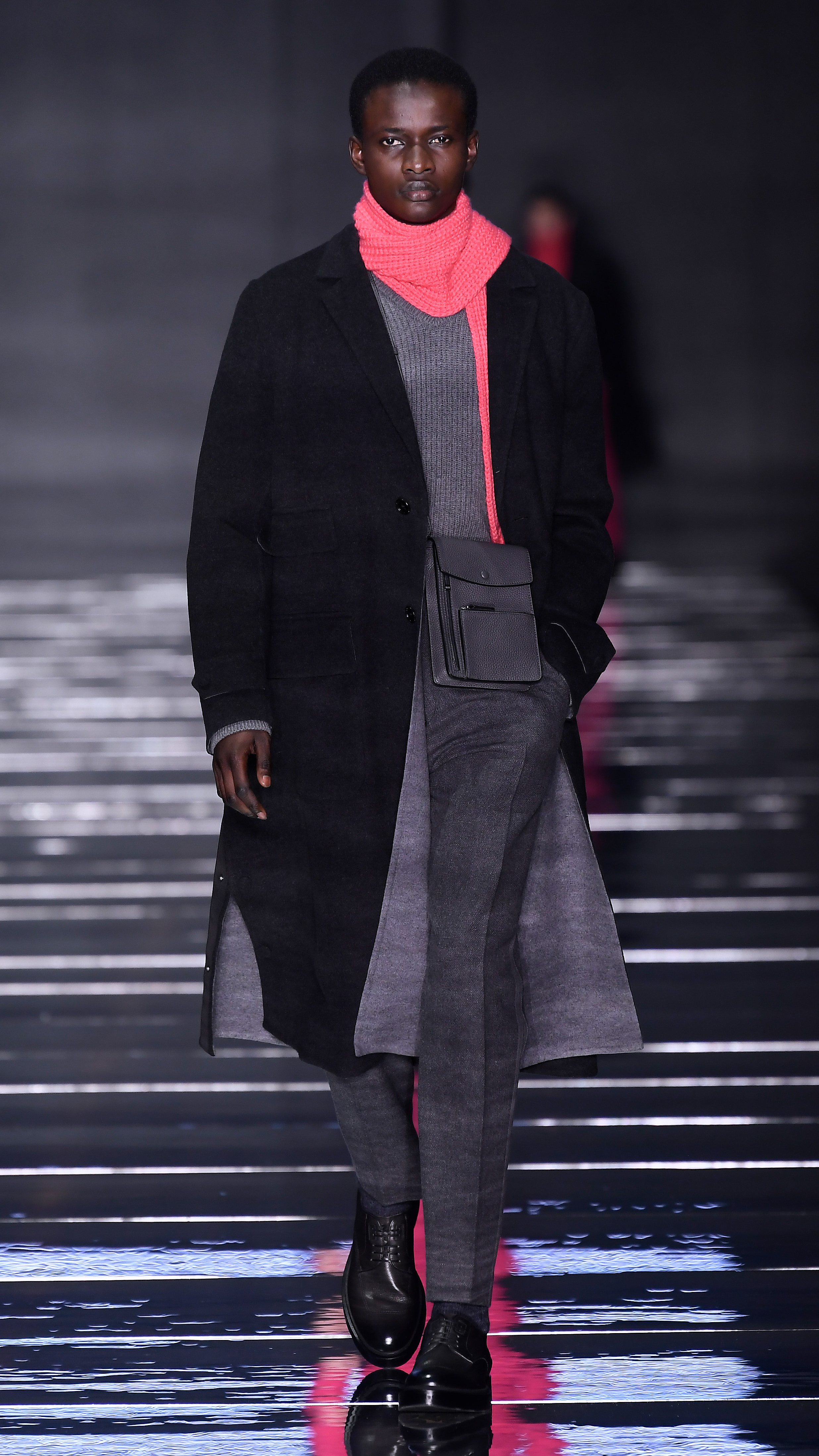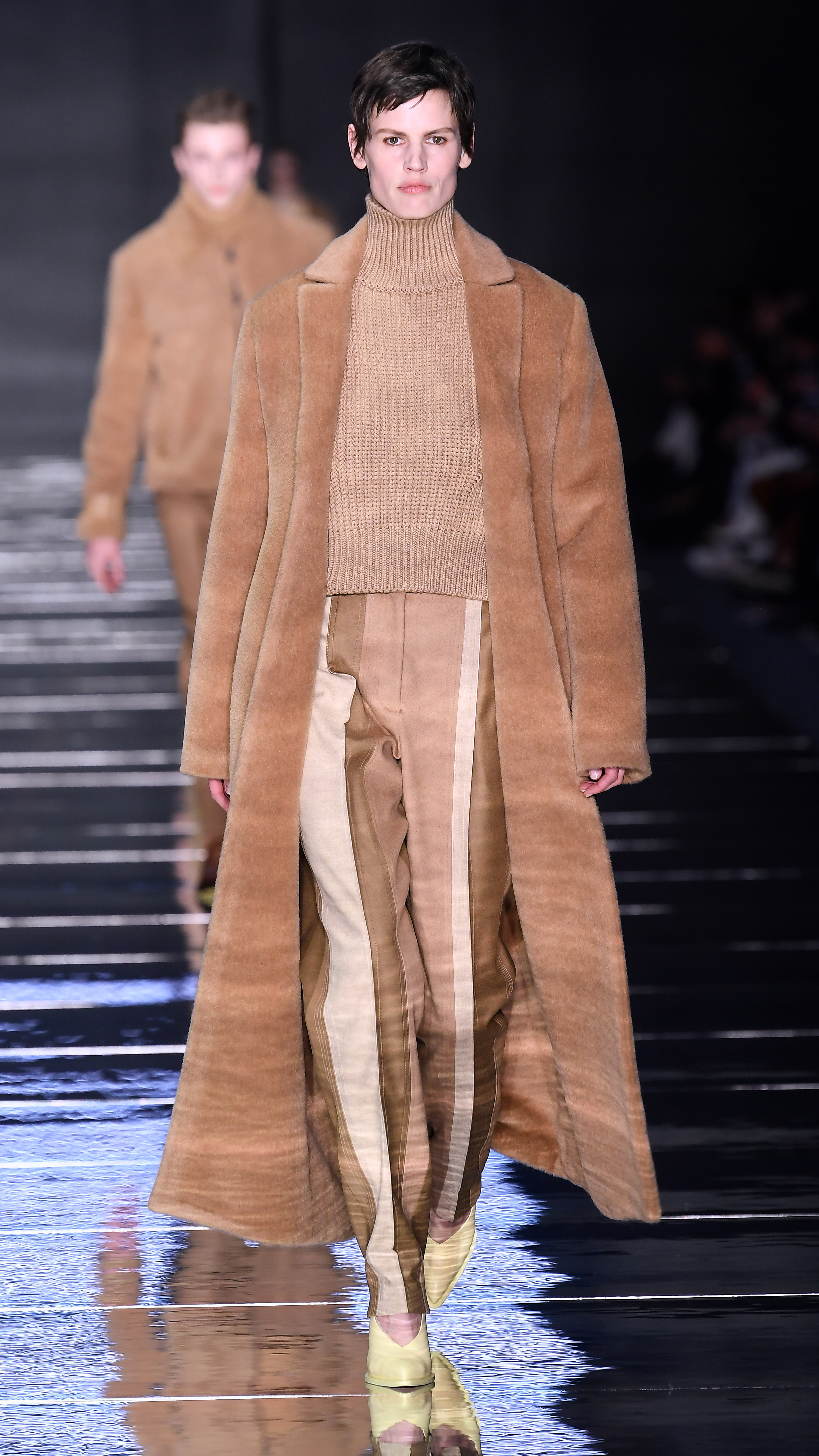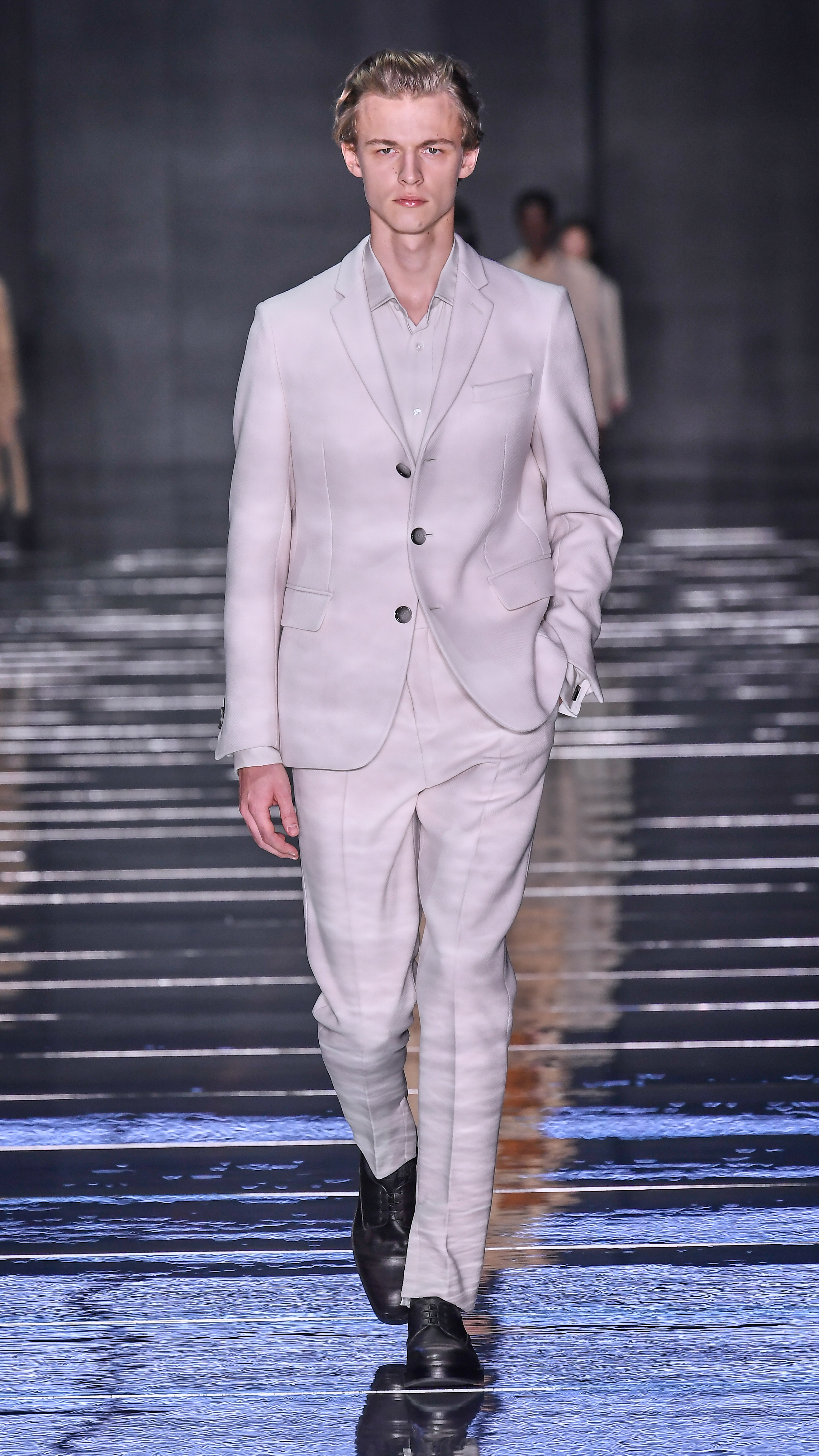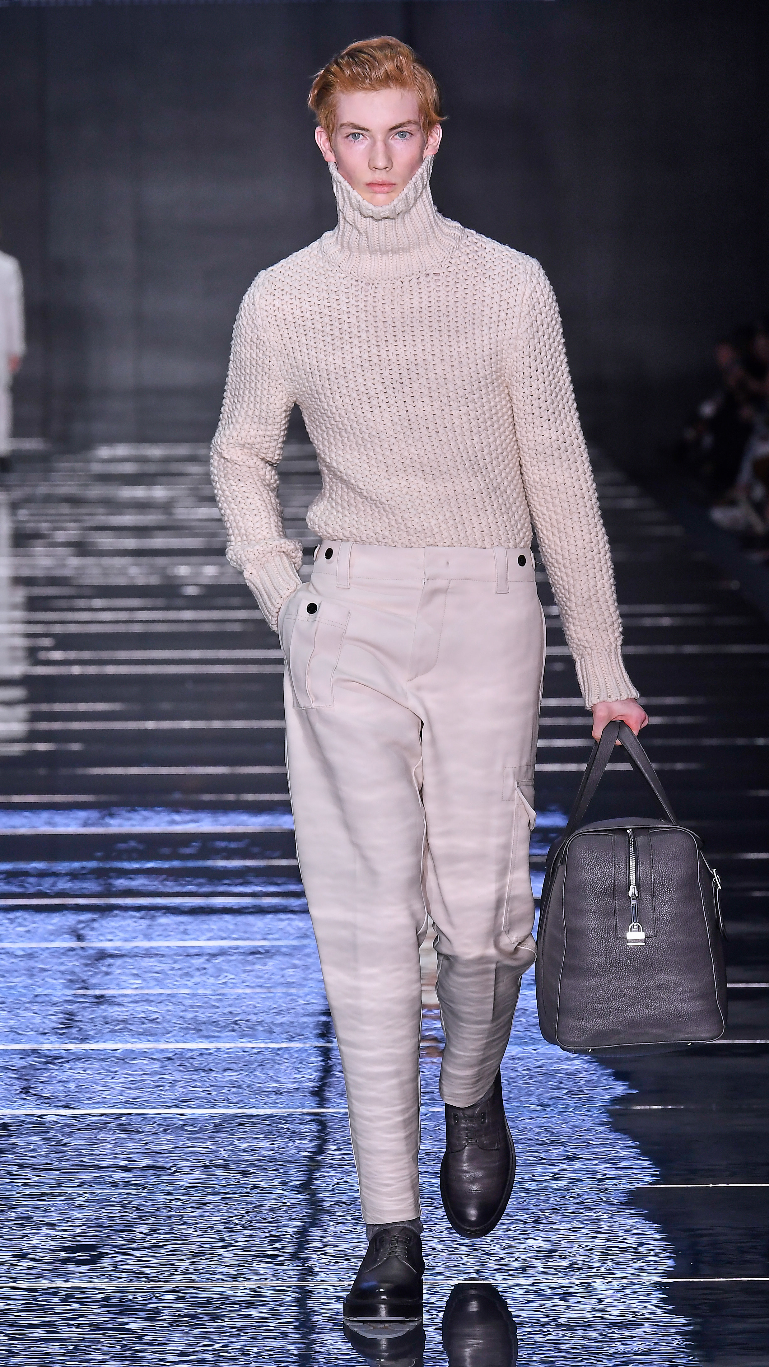 Le costume, point d’orgue de cette nouvelle collection, continue d’évoluer et se targue d’influences sportives avec des proportions revisitées. L’utilisation de matières luxueuses comme la laine d’alpaga et le cachemire se retrouvent dans l’élaboration des costumes. Tout comme les manteaux ou capes qui se parent de détails empruntés à la couture, renforçant et dessinant les nouveaux contours de l’élégance BOSS.