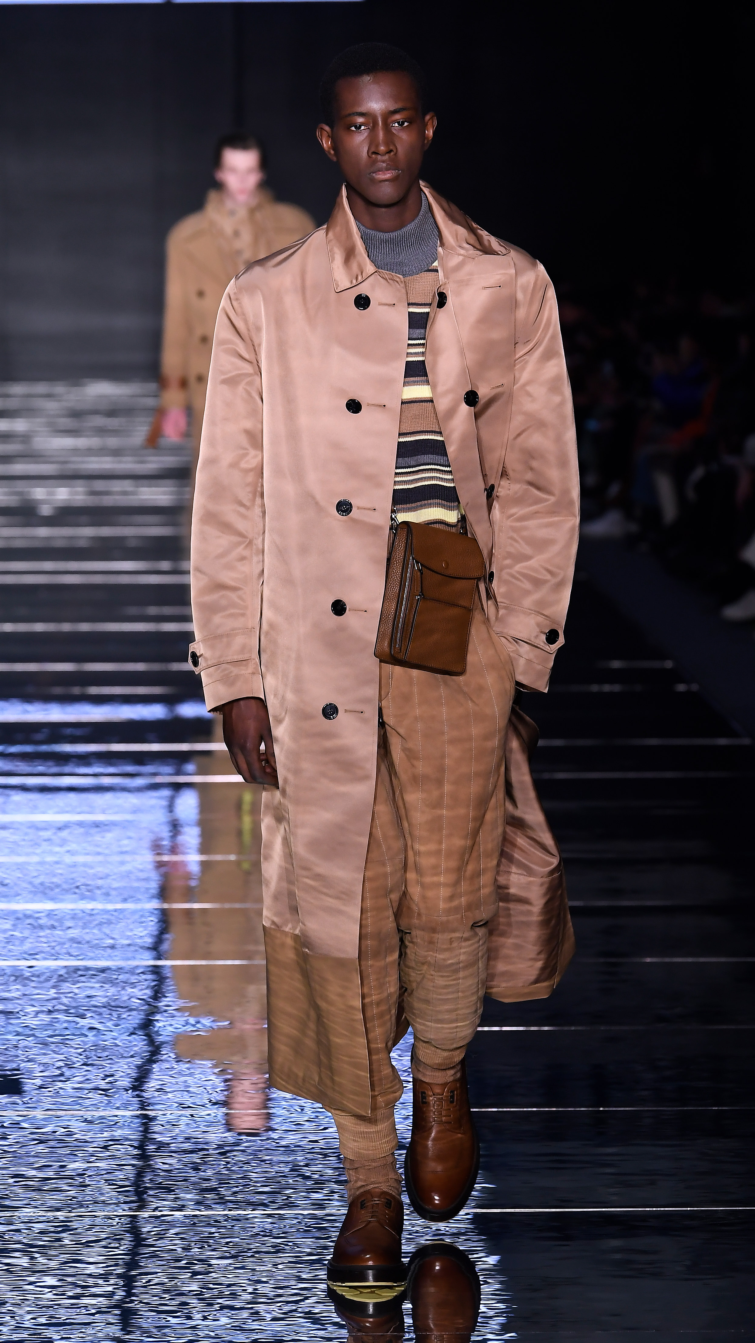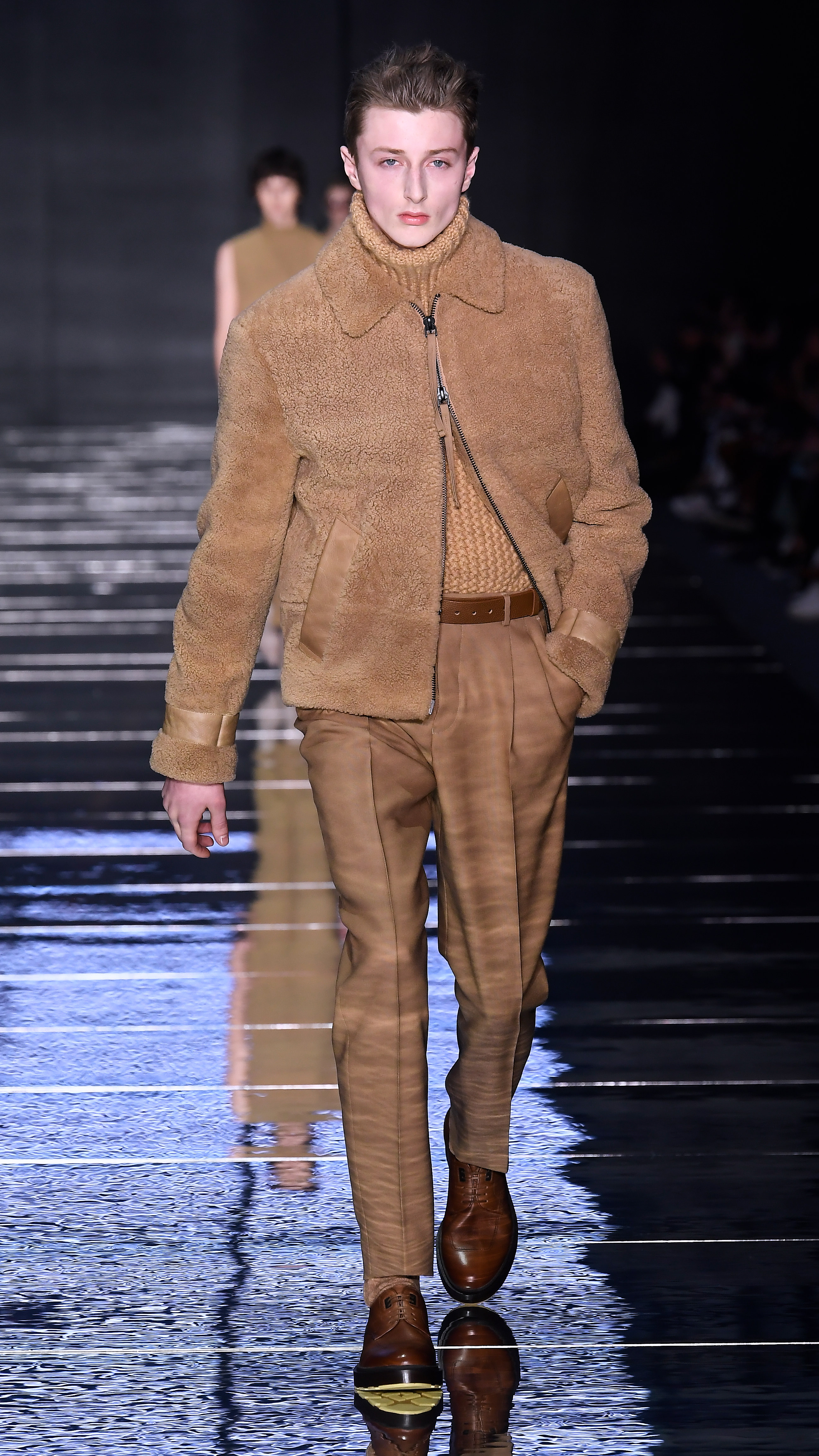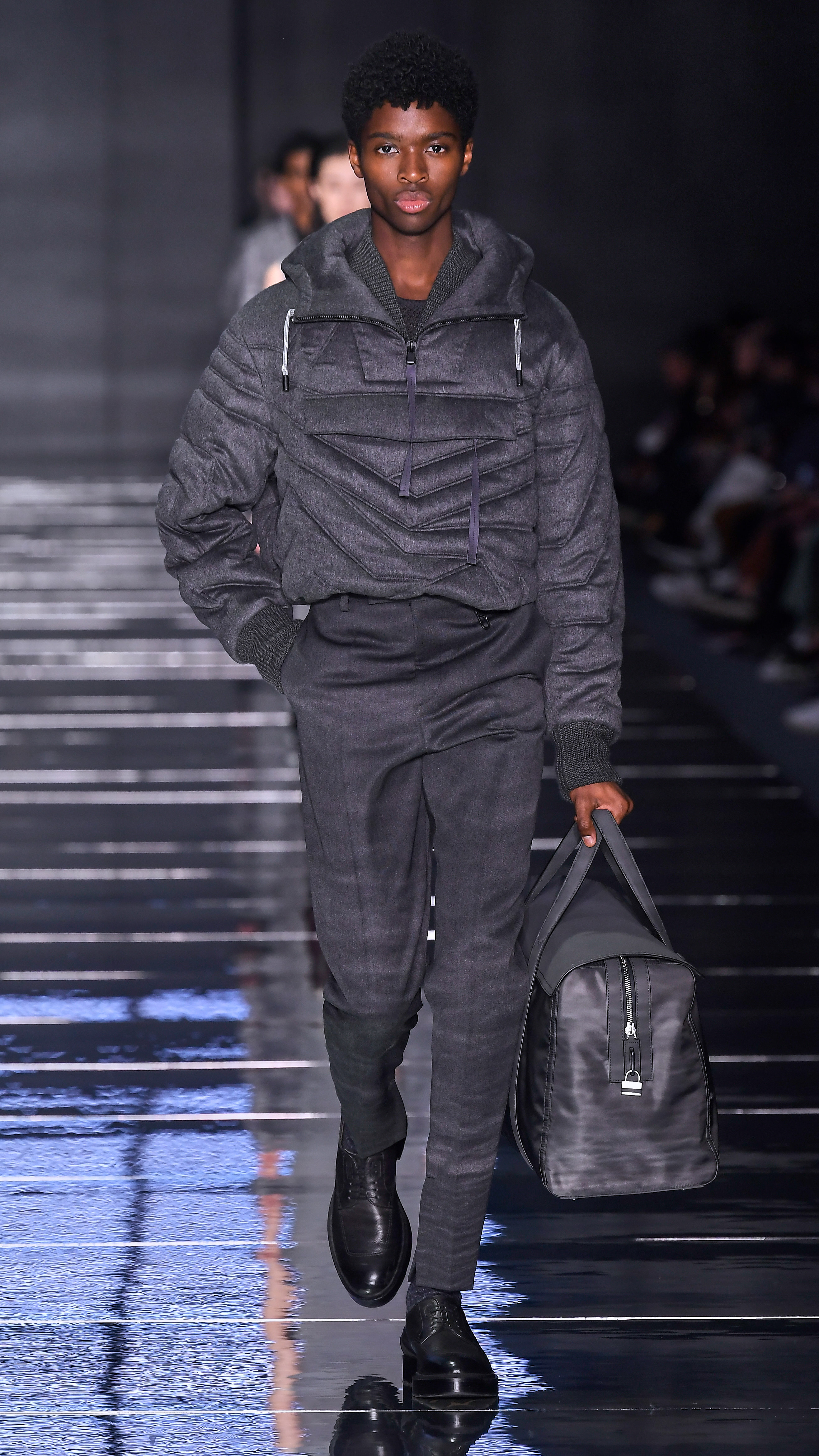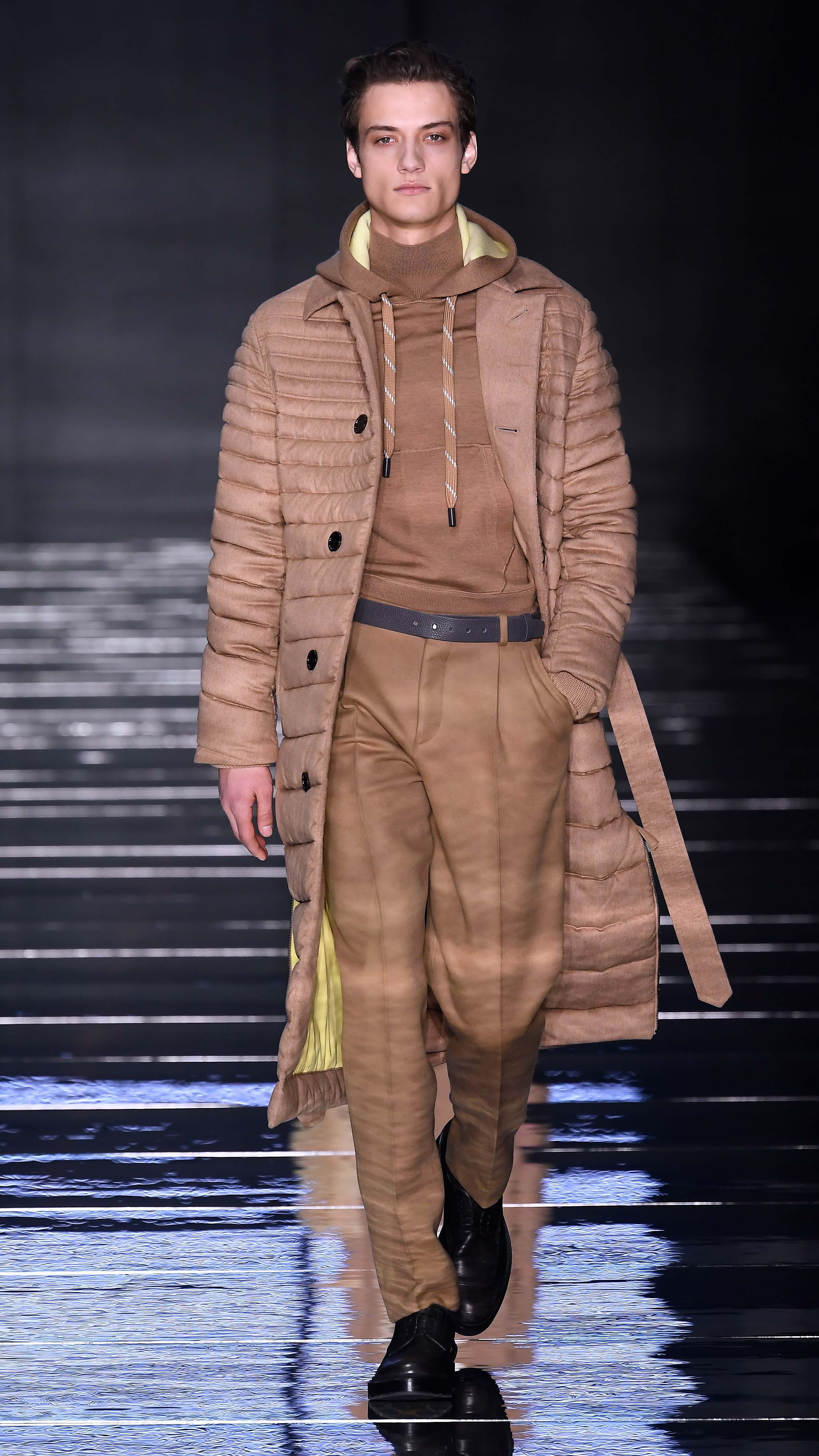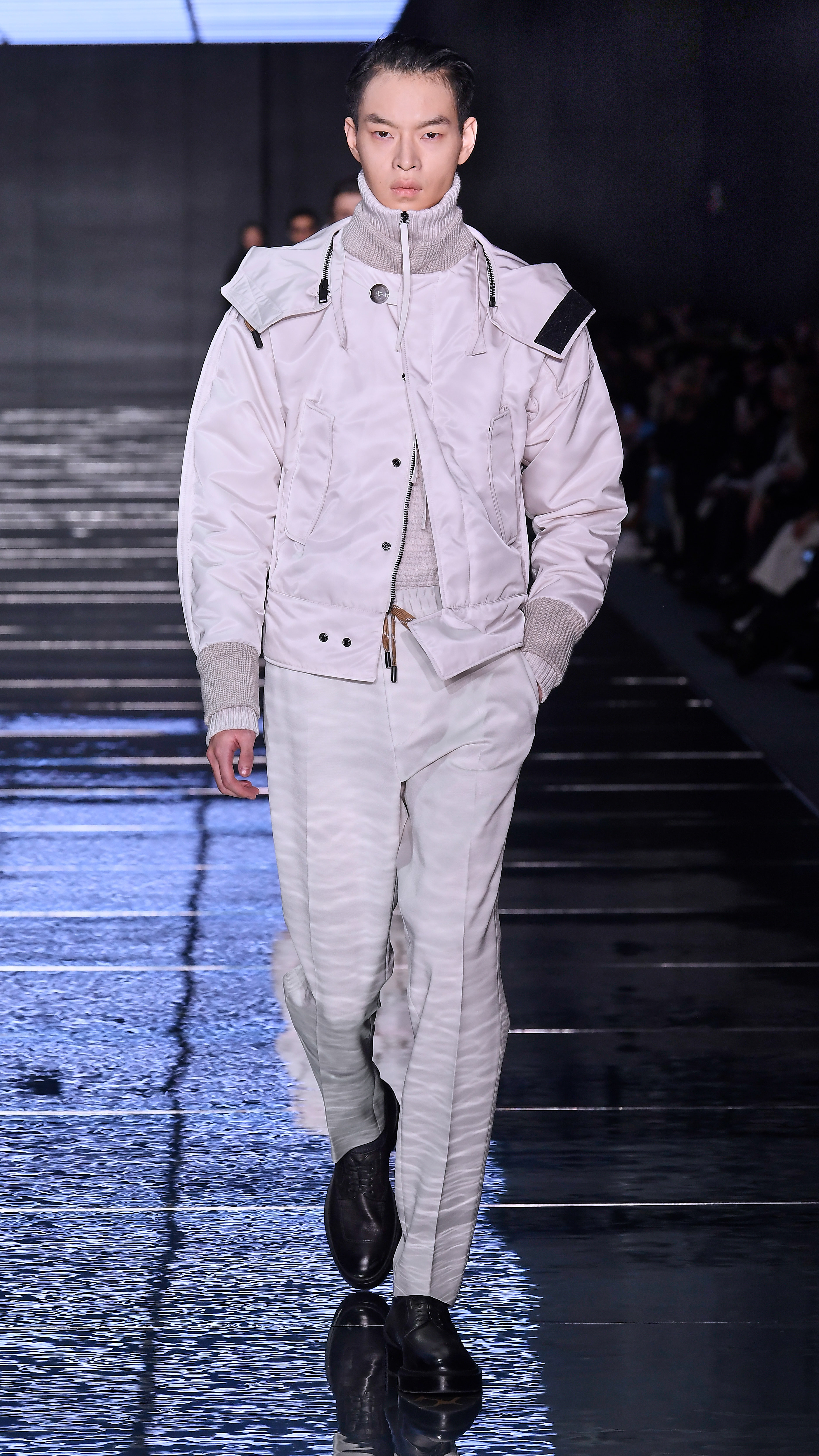 Le costume, point d’orgue de cette nouvelle collection, continue d’évoluer et se targue d’influences sportives avec des proportions revisitées. L’utilisation de matières luxueuses comme la laine d’alpaga et le cachemire se retrouvent dans l’élaboration des costumes. Tout comme les manteaux ou capes qui se parent de détails empruntés à la couture, renforçant et dessinant les nouveaux contours de l’élégance BOSS.