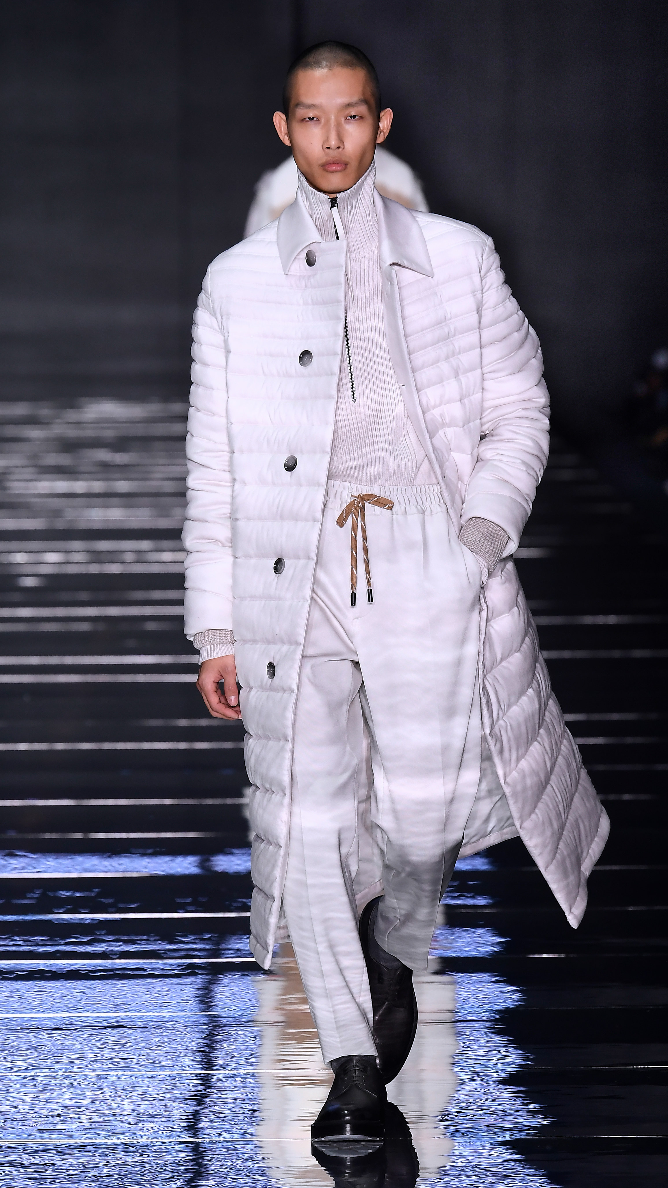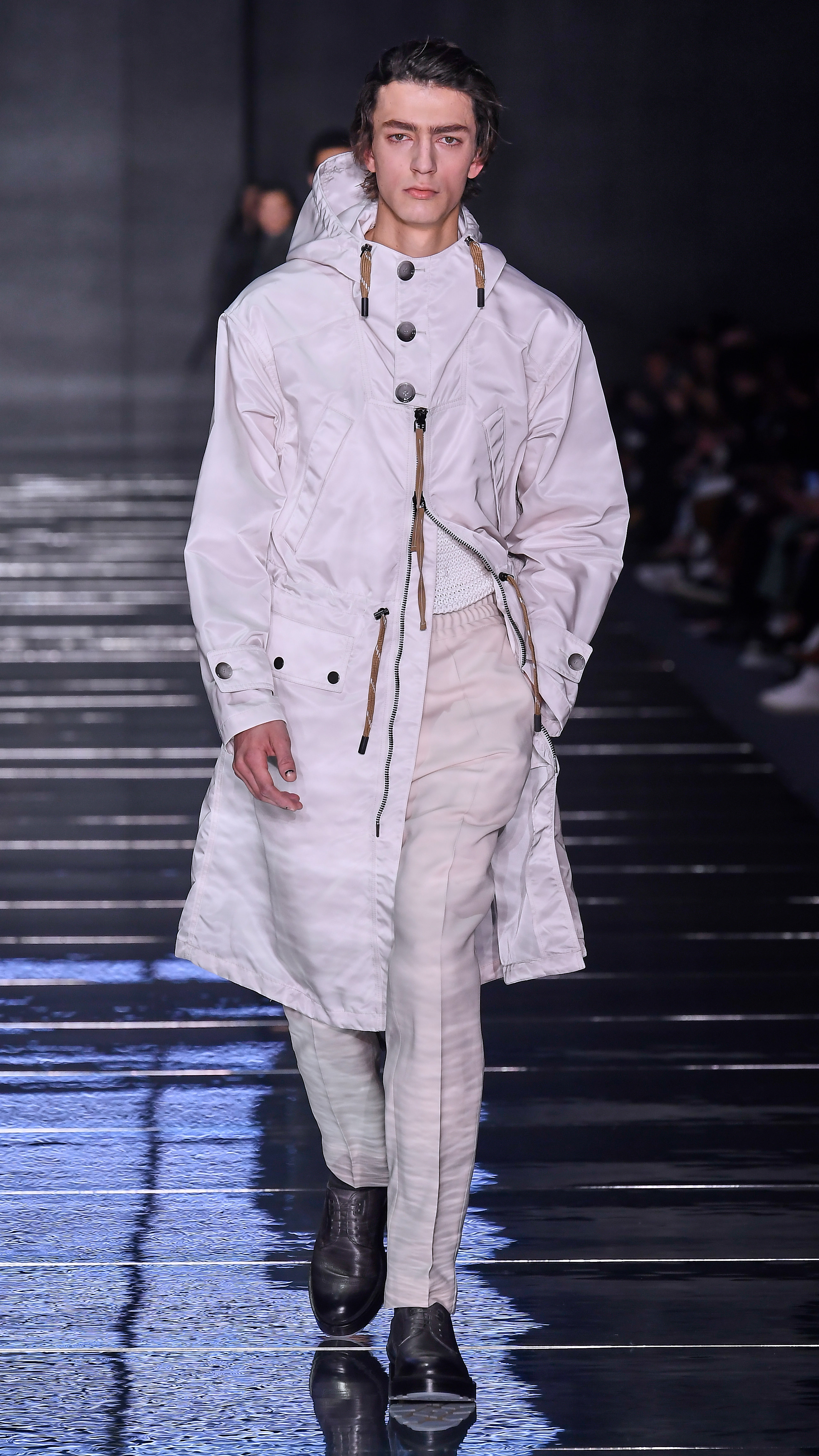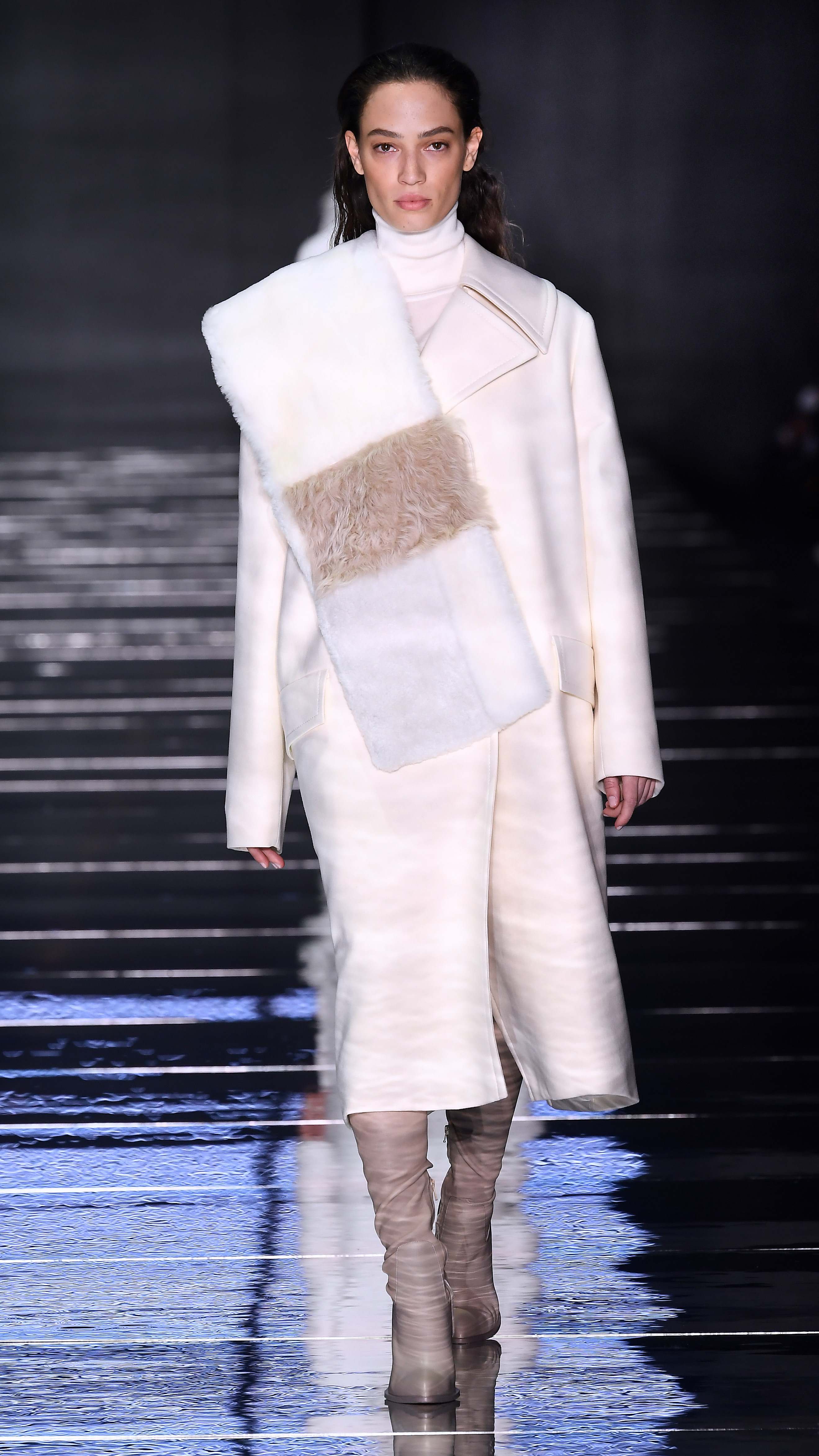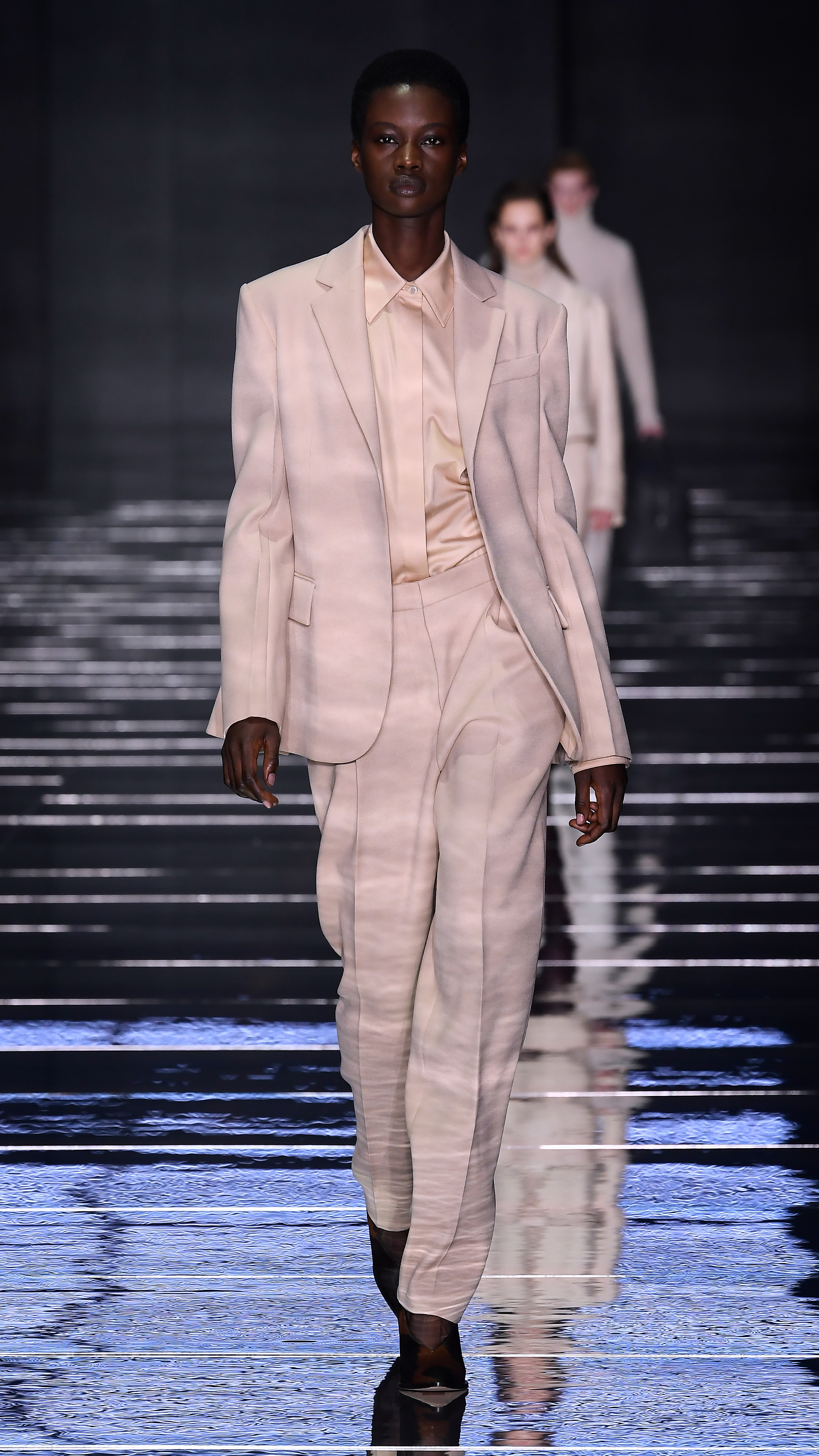 Le costume, point d’orgue de cette nouvelle collection, continue d’évoluer et se targue d’influences sportives avec des proportions revisitées. L’utilisation de matières luxueuses comme la laine d’alpaga et le cachemire se retrouvent dans l’élaboration des costumes. Tout comme les manteaux ou capes qui se parent de détails empruntés à la couture, renforçant et dessinant les nouveaux contours de l’élégance BOSS.