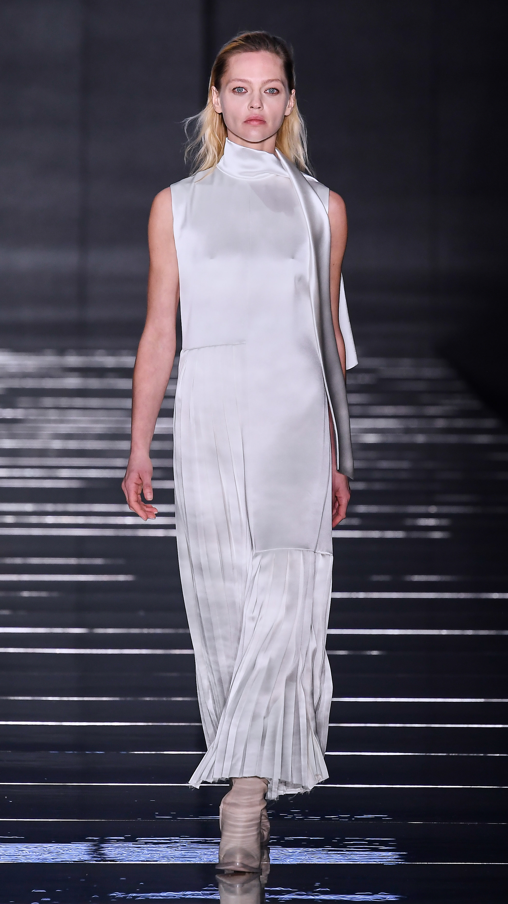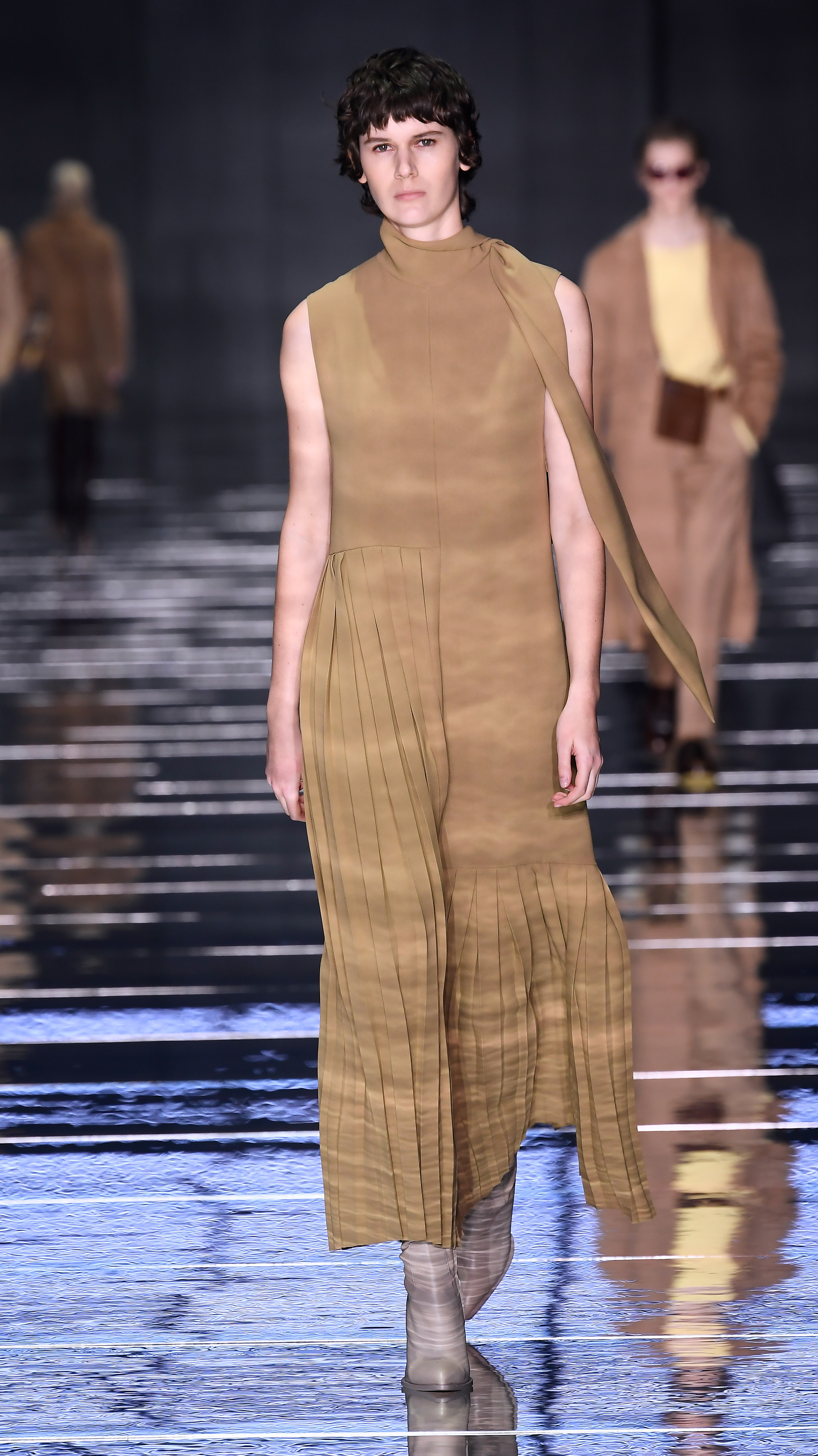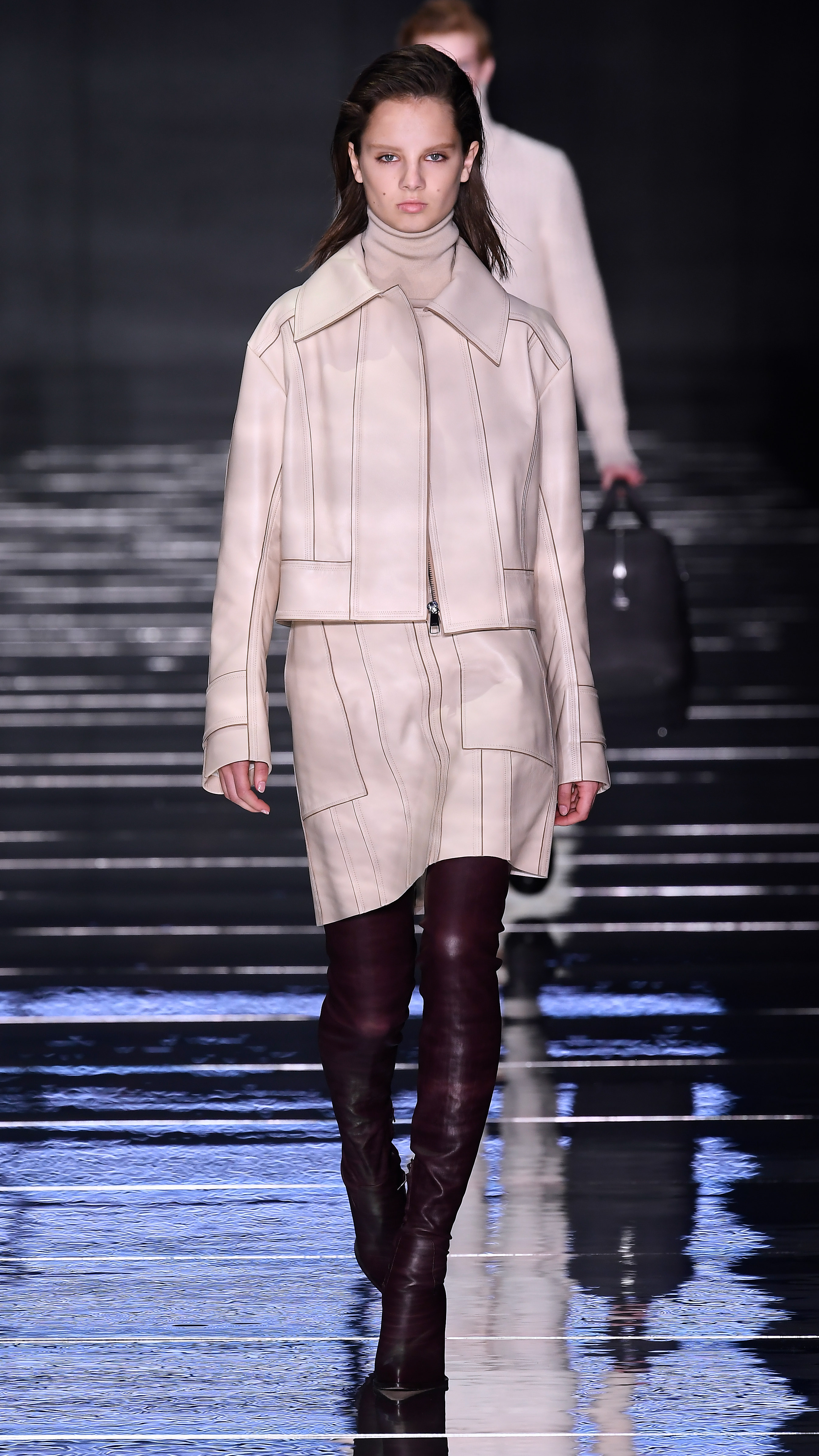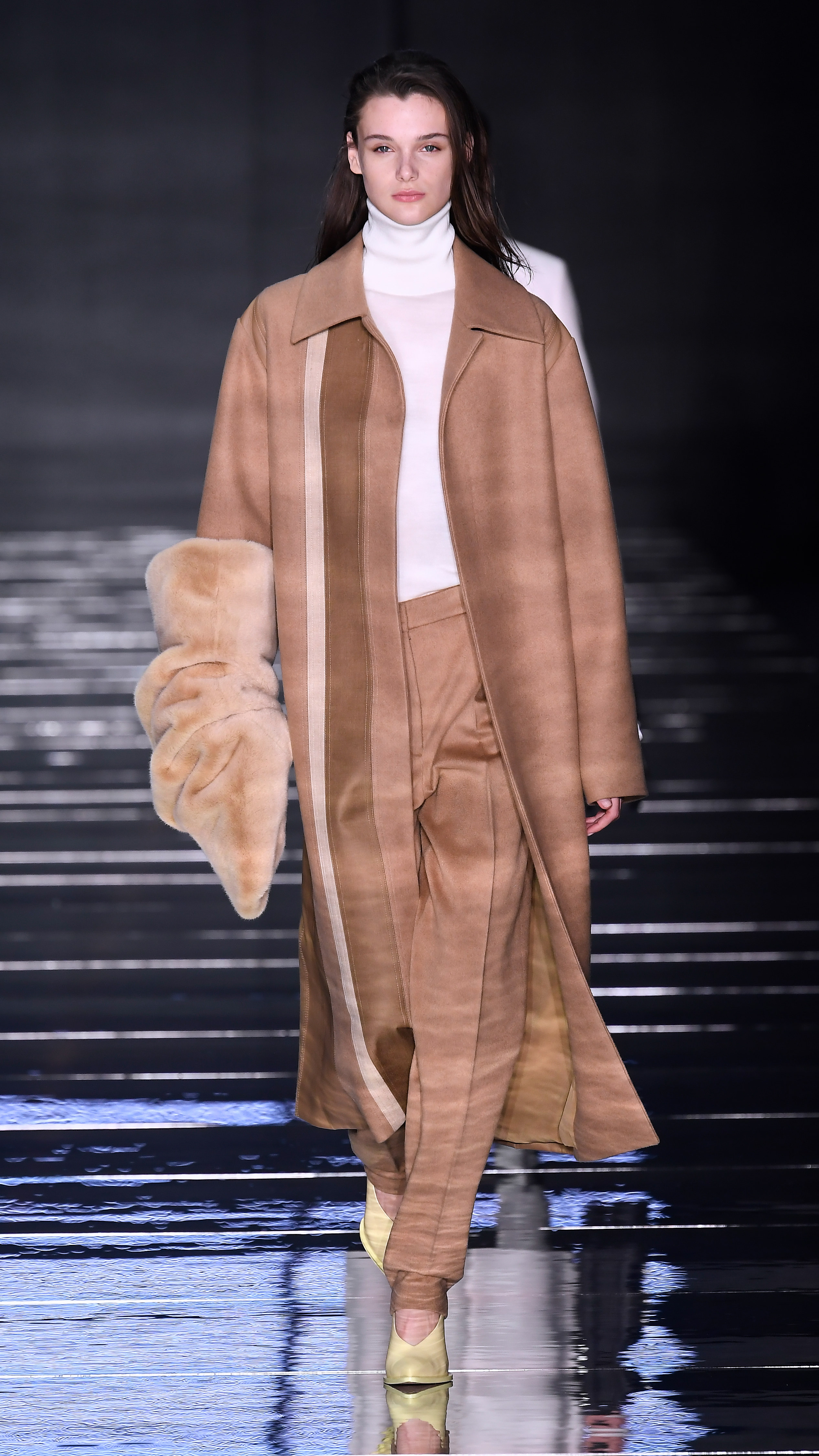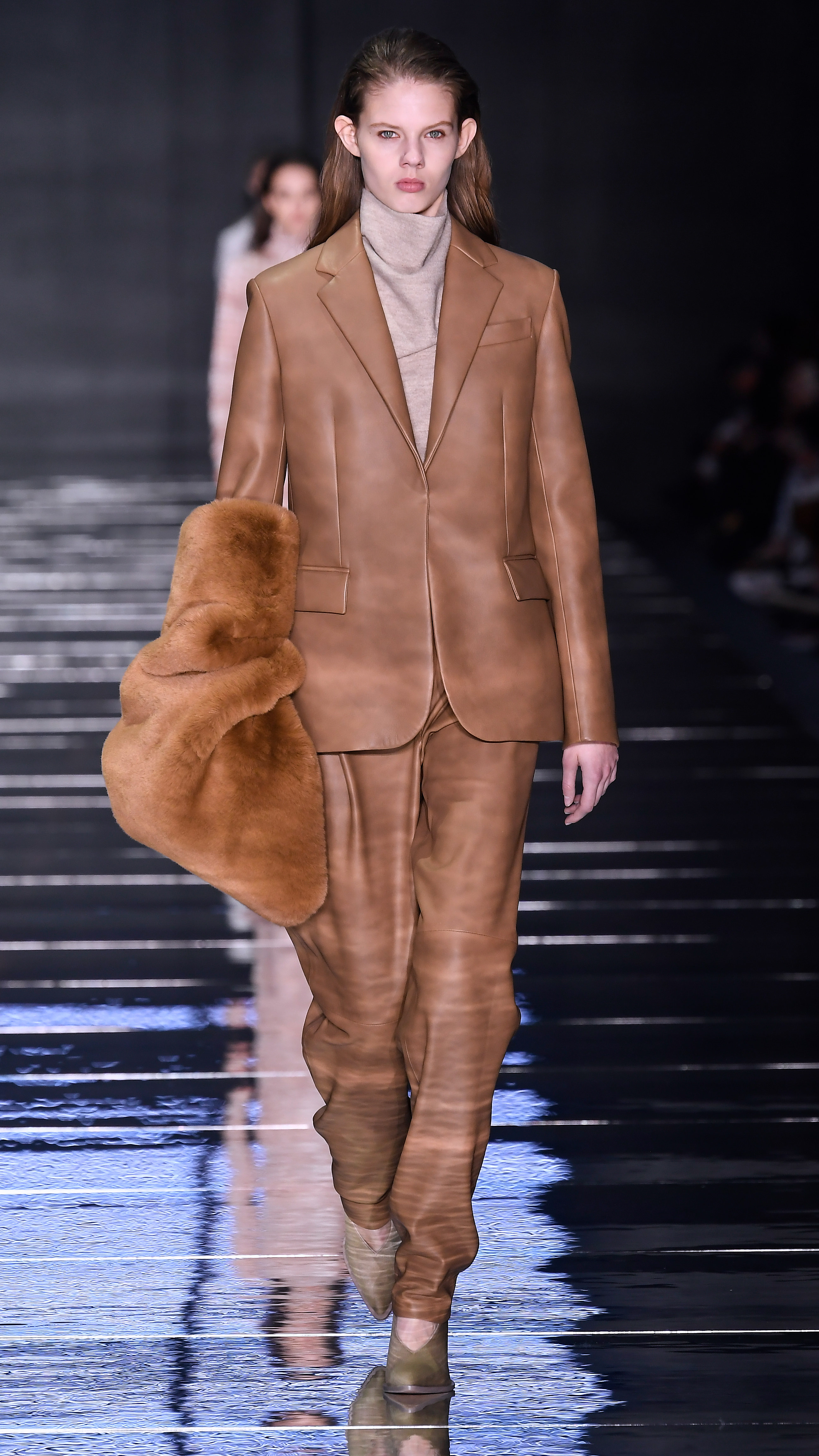 Le costume, point d’orgue de cette nouvelle collection, continue d’évoluer et se targue d’influences sportives avec des proportions revisitées. L’utilisation de matières luxueuses comme la laine d’alpaga et le cachemire se retrouvent dans l’élaboration des costumes. Tout comme les manteaux ou capes qui se parent de détails empruntés à la couture, renforçant et dessinant les nouveaux contours de l’élégance BOSS.