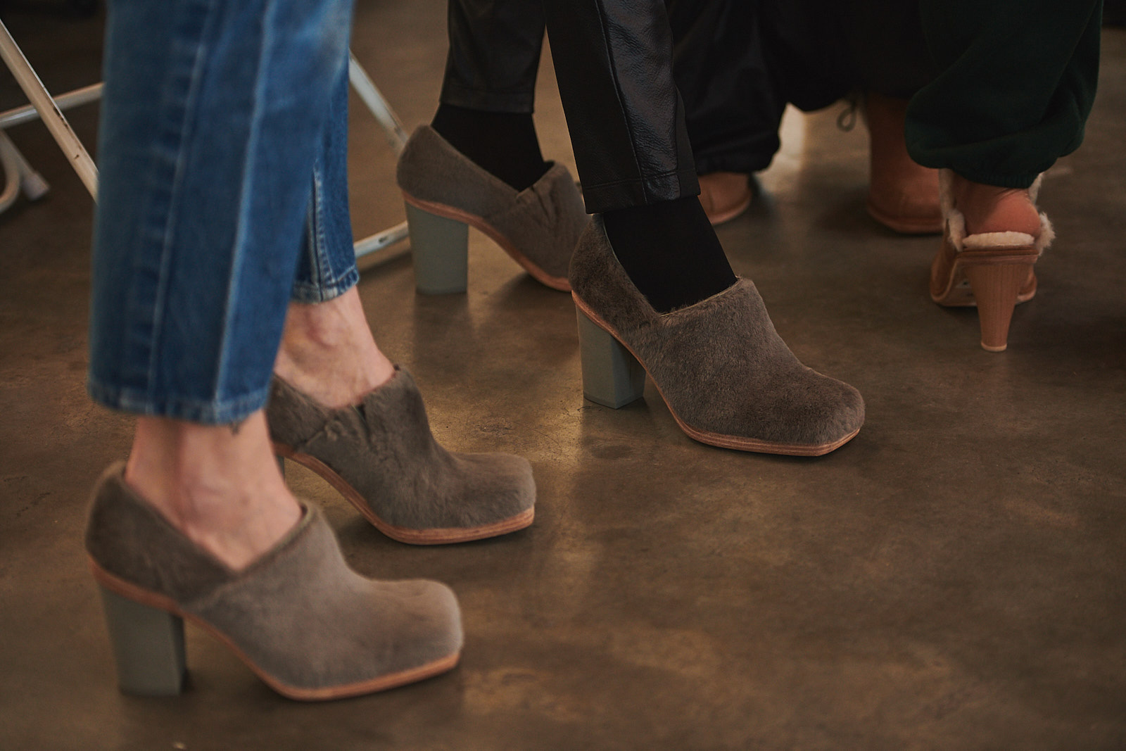 La collection se compose de six modèles de chaussures – 4 pour femmes et 2 unisexes – mais également de 4 manteaux, de véritables pièces mode. La Court Boot et la Court Mule sont dotées d’un talon fin en bois, d’un revêtement en daim d’agneau et d’une doublure en peau de mouton. Le Court Mule Open Toe est dotée d’un talon plus imposant enveloppé de suède et entièrement revêtu de peau de mouton. Offrant le même talon texturé lisse que le Court Mule Open Toe, le Court Not Clog une elle est recouverte d’une luxueuse fourrure Toscane.