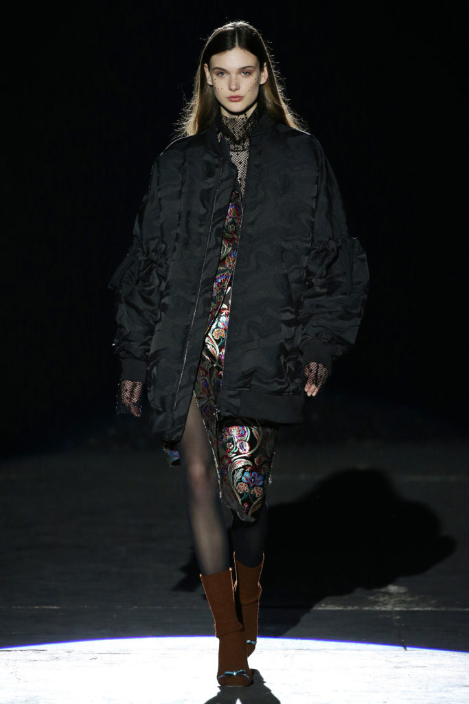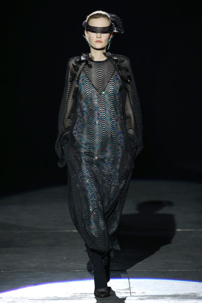 “One of my favorite things in the world is a little ceramic deer from the Forties that I found a few years ago in a small shop. I like it so much, I keep it in a glass case at home: even though it is not precious, it is very precious to me. It’s the same Bambi that I shaped into an invitation to this show. This collection feels very personal: it is filled it with my favorite things. I wanted to celebrate what I like as a designer, what triggers my creativity and makes me love my job. The idea that everything comes together, for instance, even when things are put one next to another for no particular reason but a creative urge. This fateful randomness, which in fact is not randomness, is completely my own, just like the love for lurex, waves, optical motifs; just like the proclivity for macramè, glitter, intensely psychedelic surfaces. I like riffs of the metallic and distorted ladylike. I like velvet and I like a womanly dress, or a very bourgeois ensemble that I twist and turn by way of color, texture or pattern. A touch of kitsch is something I am not afraid of at all. This collection is one hundred percent me, a recollection of the weird and wonderful alphabet of my label, which I launched exactly ten years ago. What is specific and exclusive of this moment is the ease of it all, the pervasive sense of spontaneity. I am feeling light right now. So does my work”.