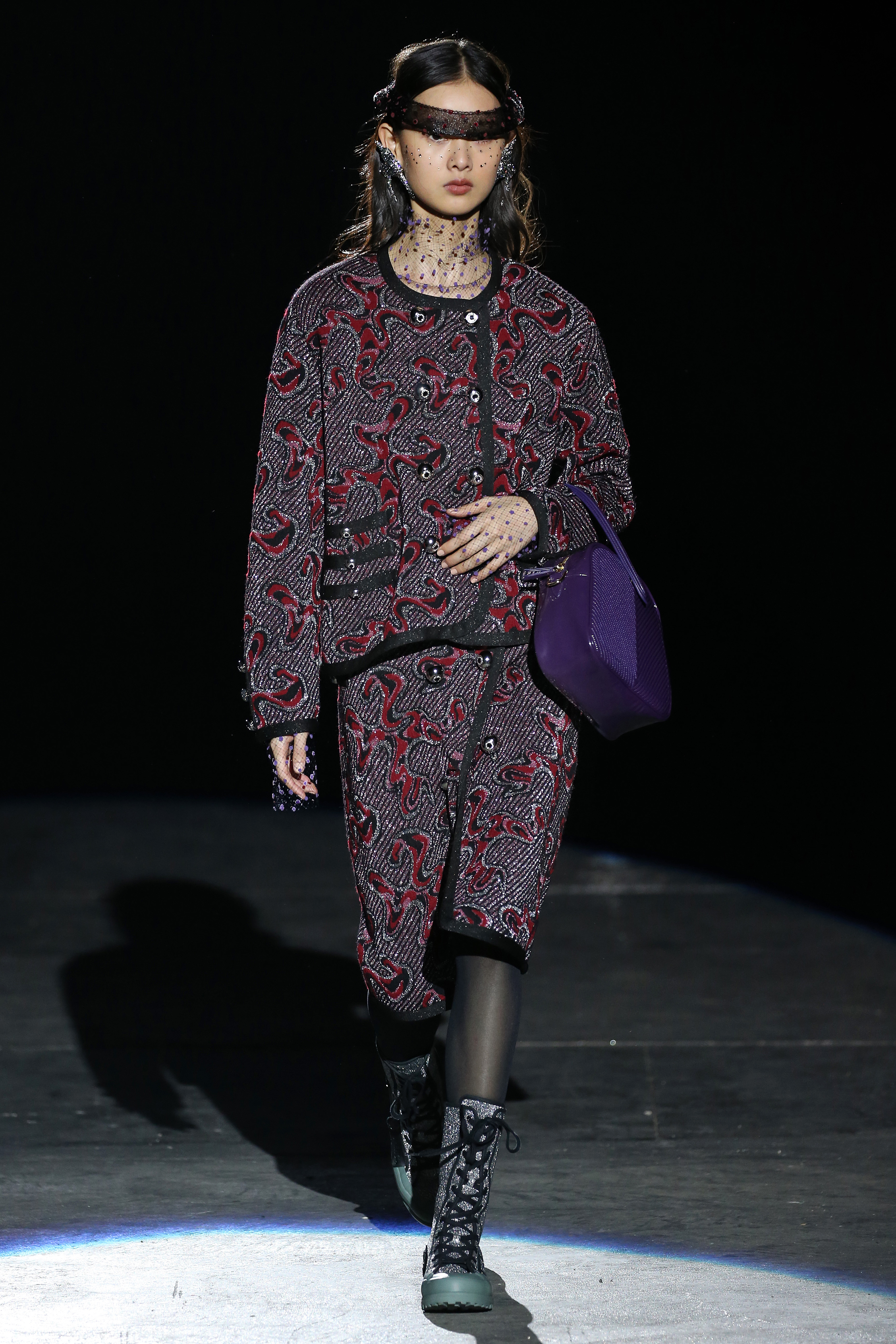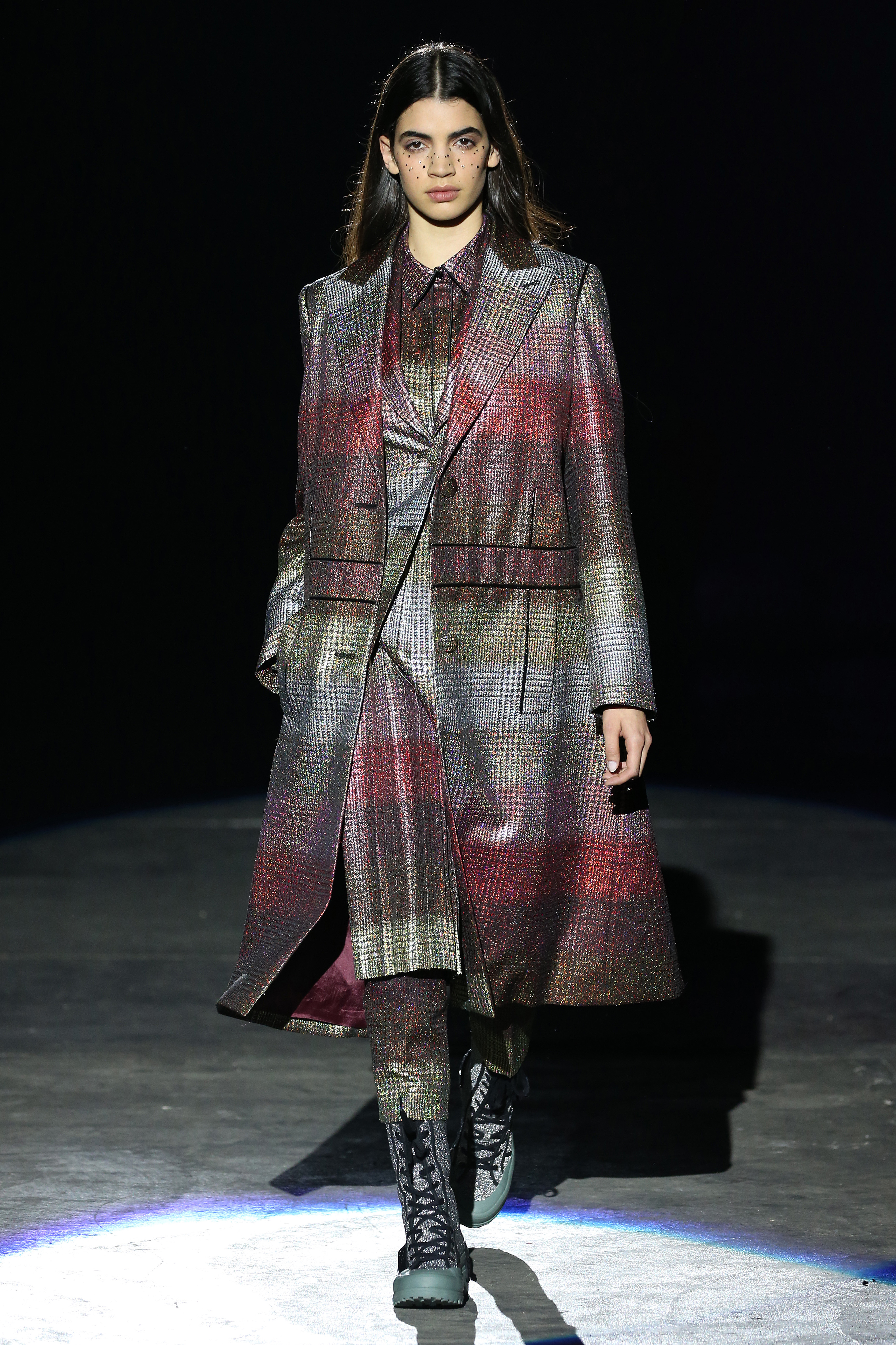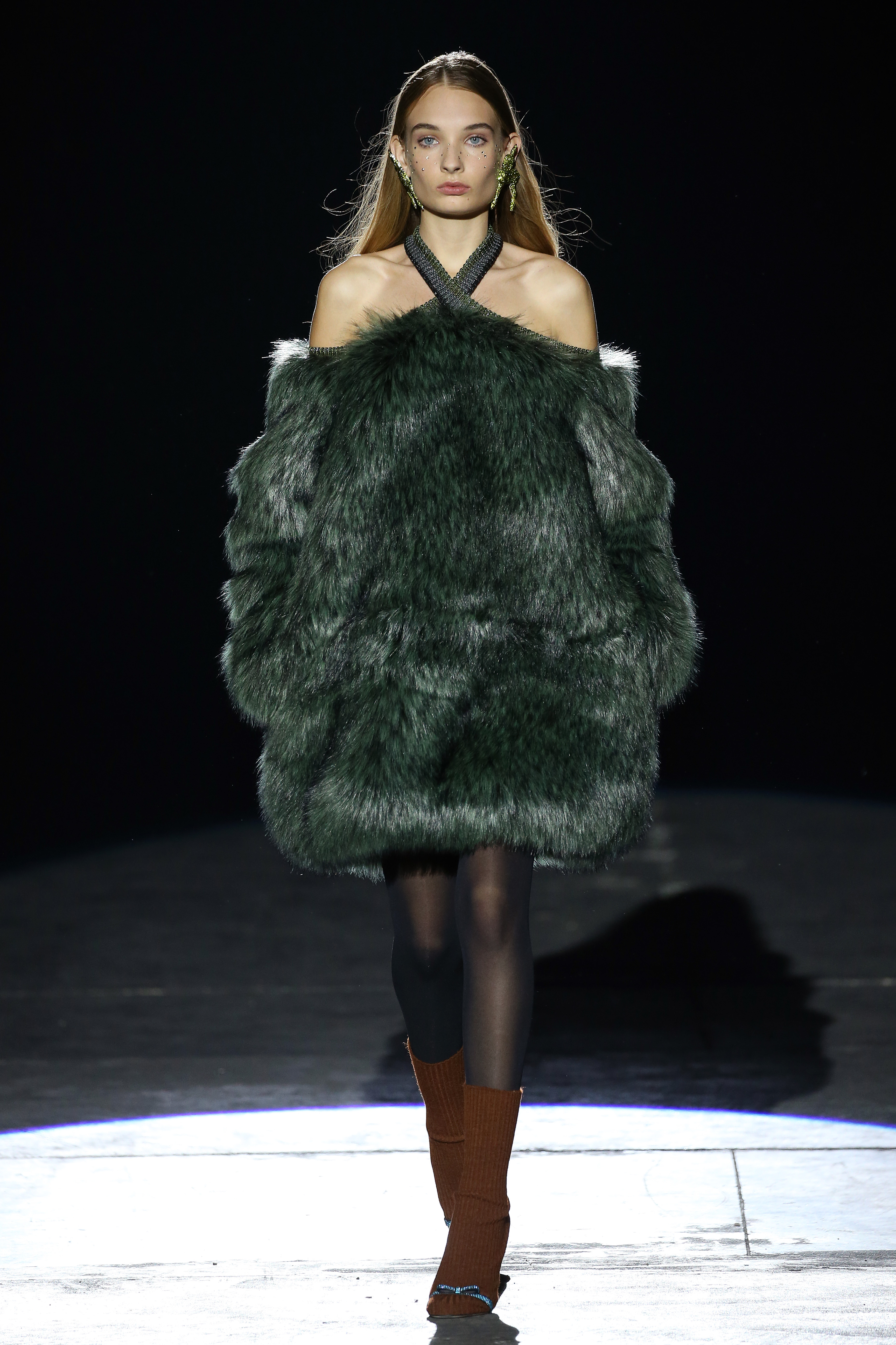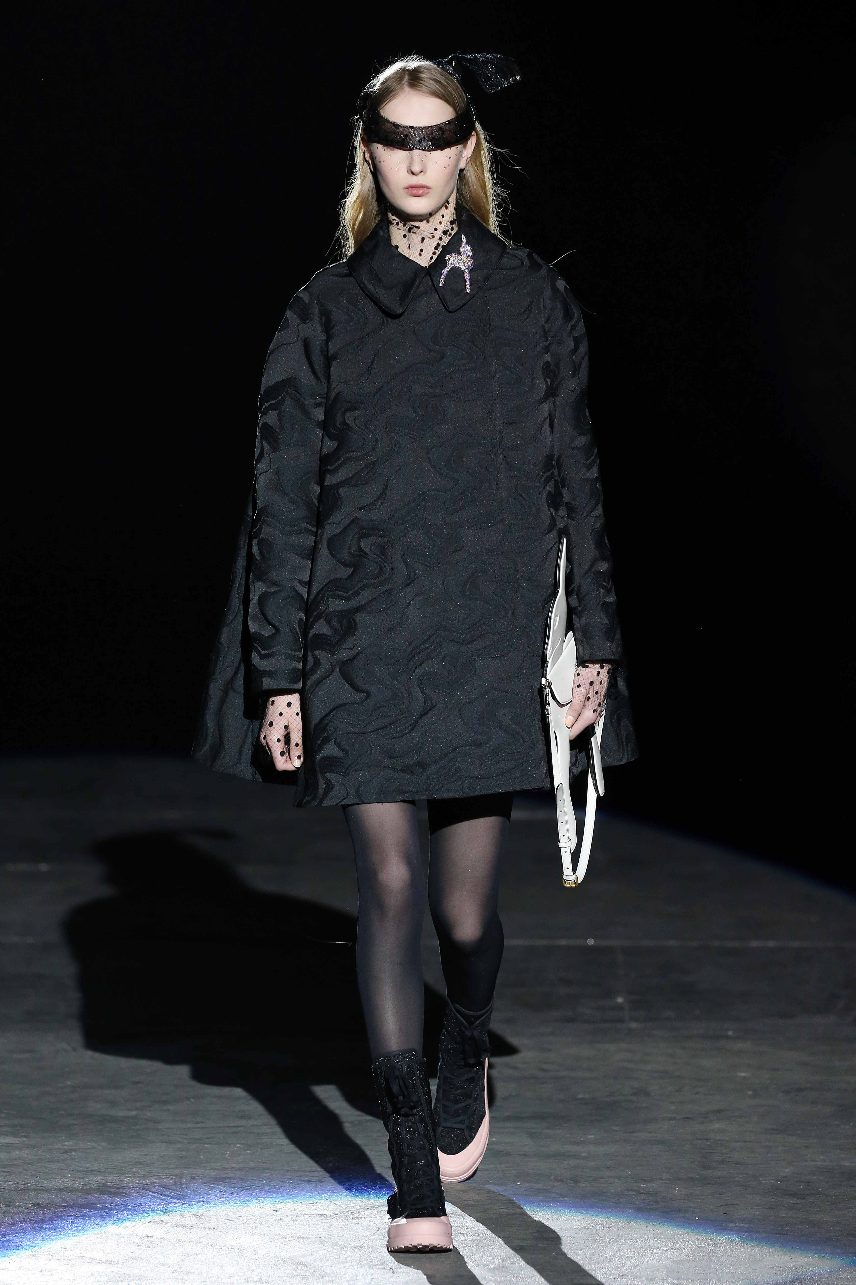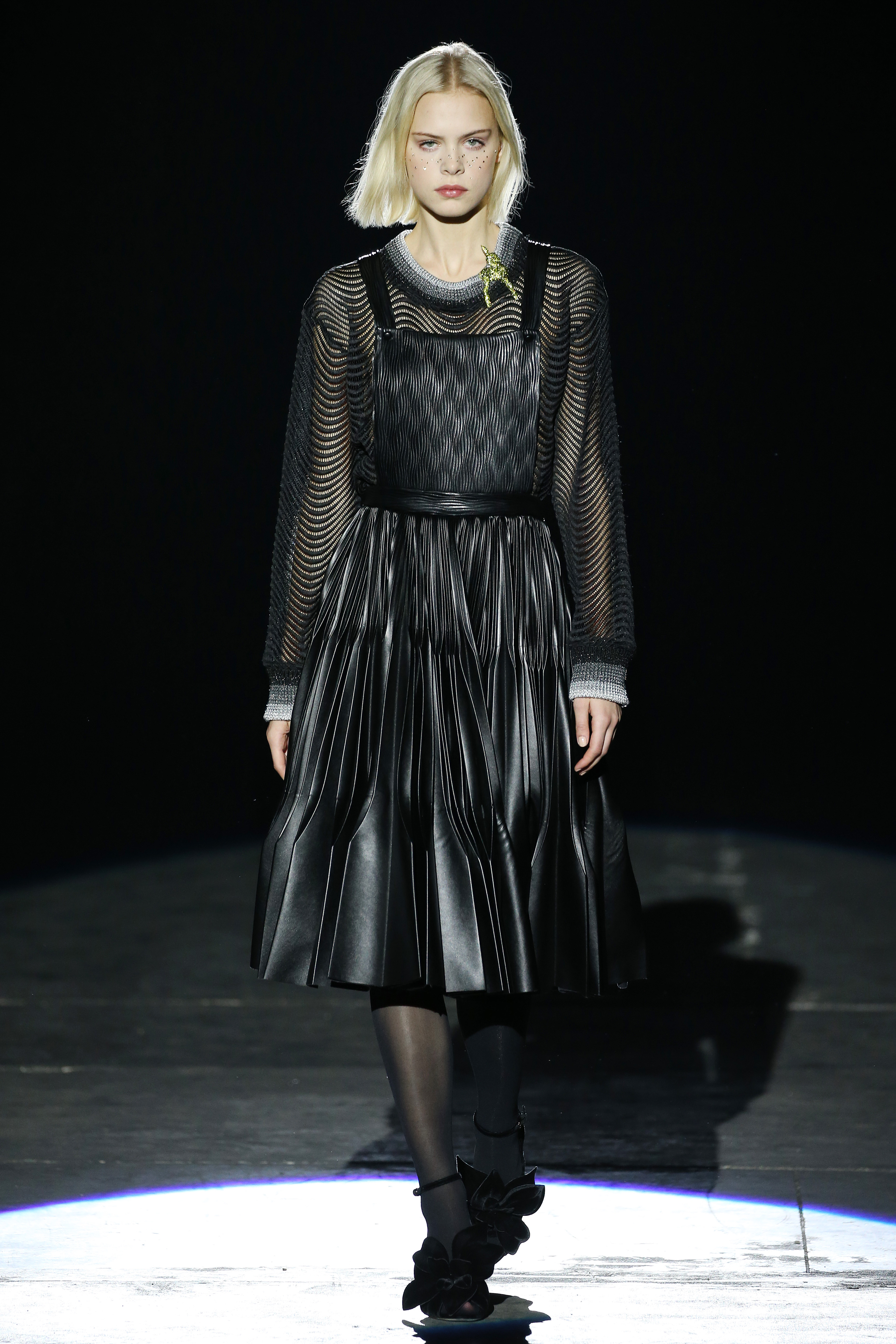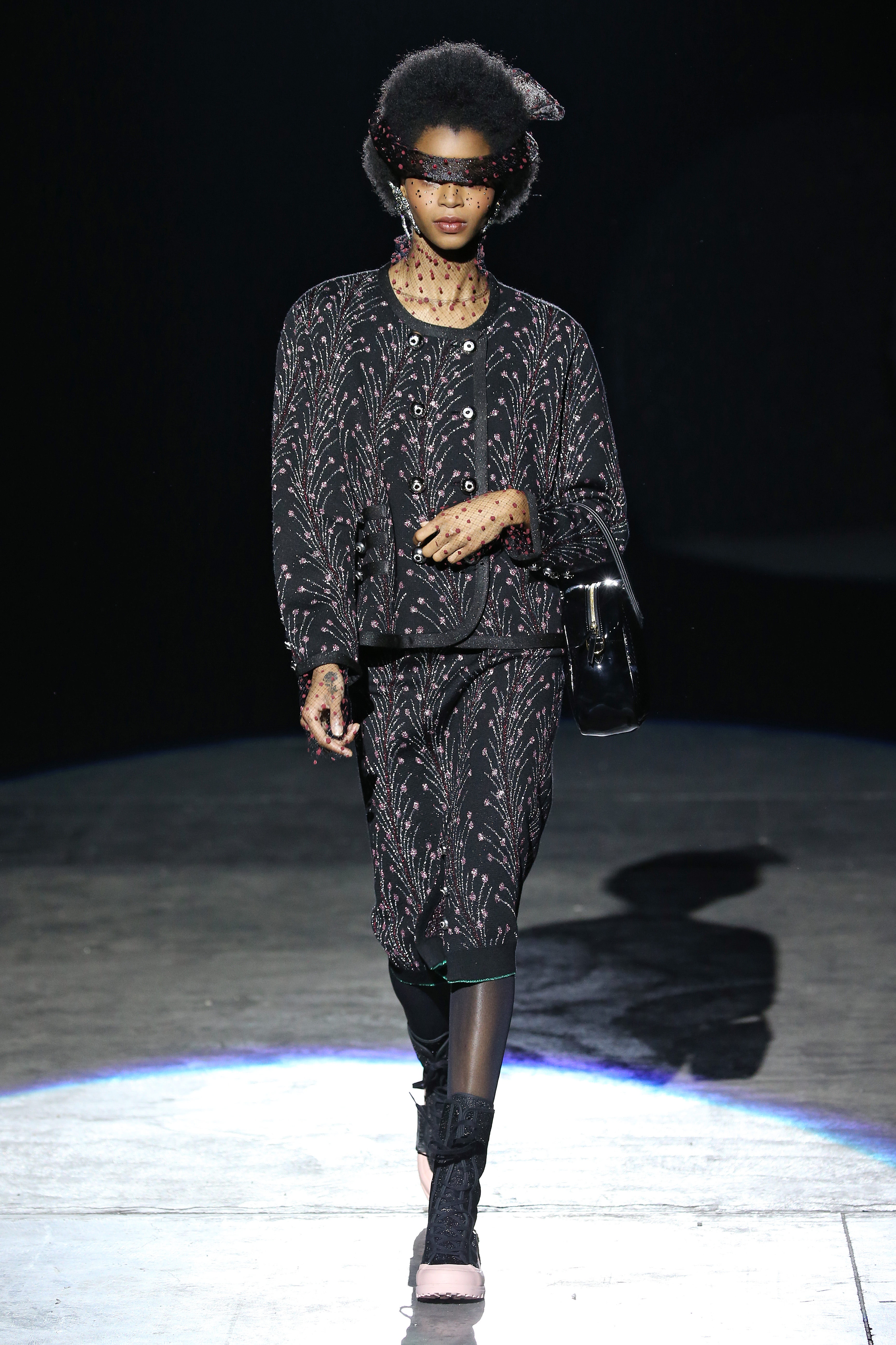 “One of my favorite things in the world is a little ceramic deer from the Forties that I found a few years ago in a small shop. I like it so much, I keep it in a glass case at home: even though it is not precious, it is very precious to me. It’s the same Bambi that I shaped into an invitation to this show. This collection feels very personal: it is filled it with my favorite things. I wanted to celebrate what I like as a designer, what triggers my creativity and makes me love my job. The idea that everything comes together, for instance, even when things are put one next to another for no particular reason but a creative urge. This fateful randomness, which in fact is not randomness, is completely my own, just like the love for lurex, waves, optical motifs; just like the proclivity for macramè, glitter, intensely psychedelic surfaces. I like riffs of the metallic and distorted ladylike. I like velvet and I like a womanly dress, or a very bourgeois ensemble that I twist and turn by way of color, texture or pattern. A touch of kitsch is something I am not afraid of at all. This collection is one hundred percent me, a recollection of the weird and wonderful alphabet of my label, which I launched exactly ten years ago. What is specific and exclusive of this moment is the ease of it all, the pervasive sense of spontaneity. I am feeling light right now. So does my work”.