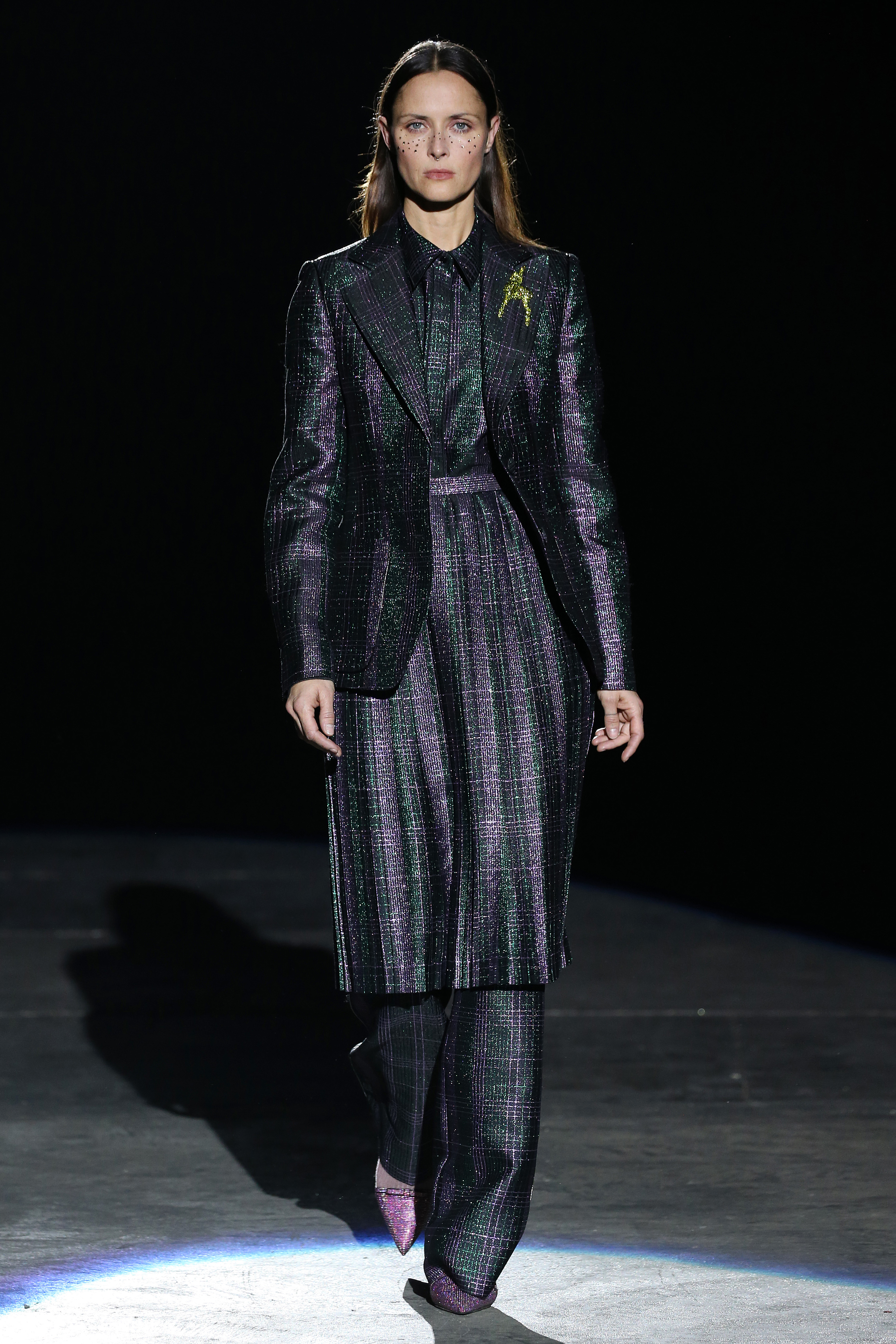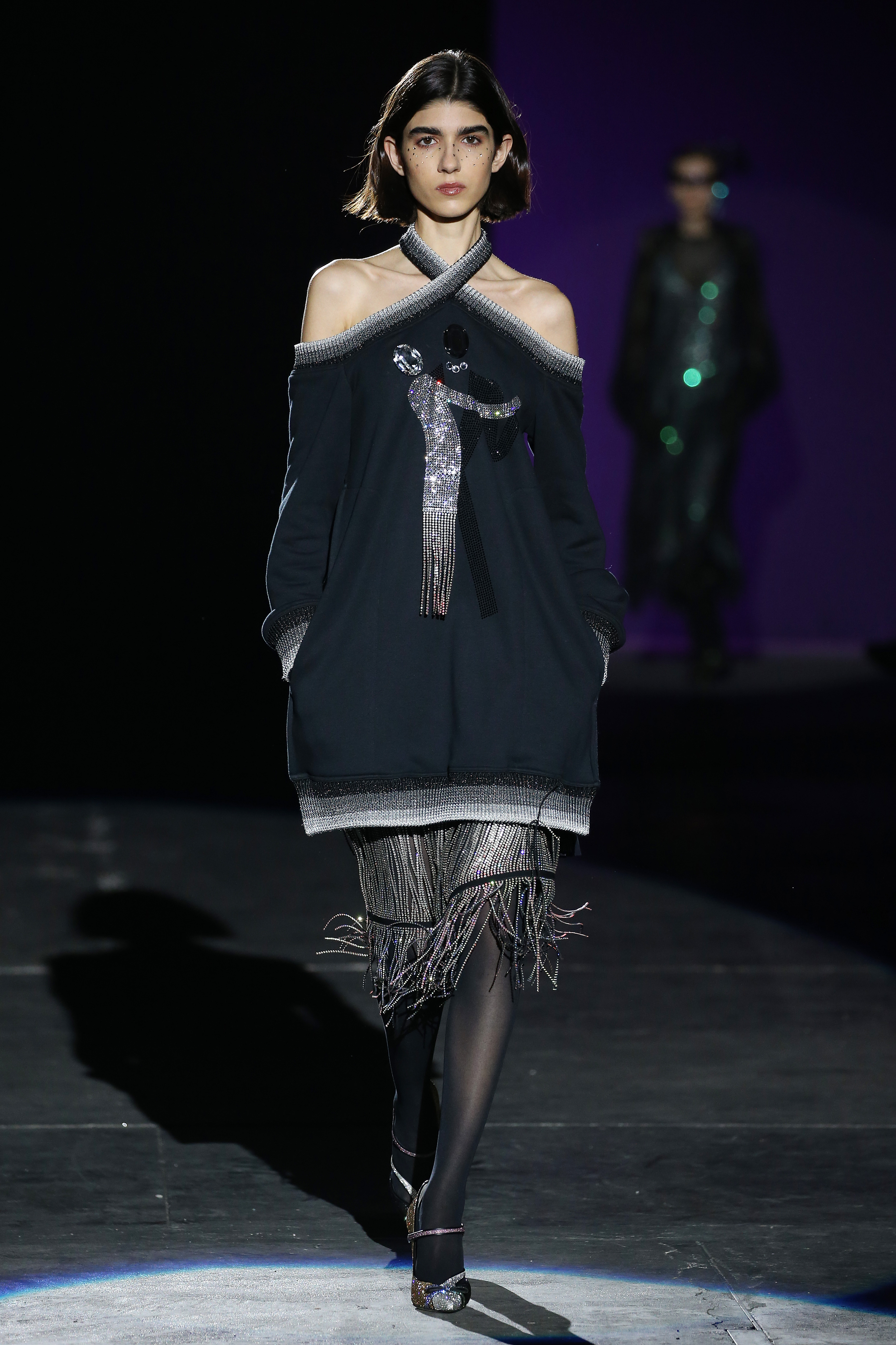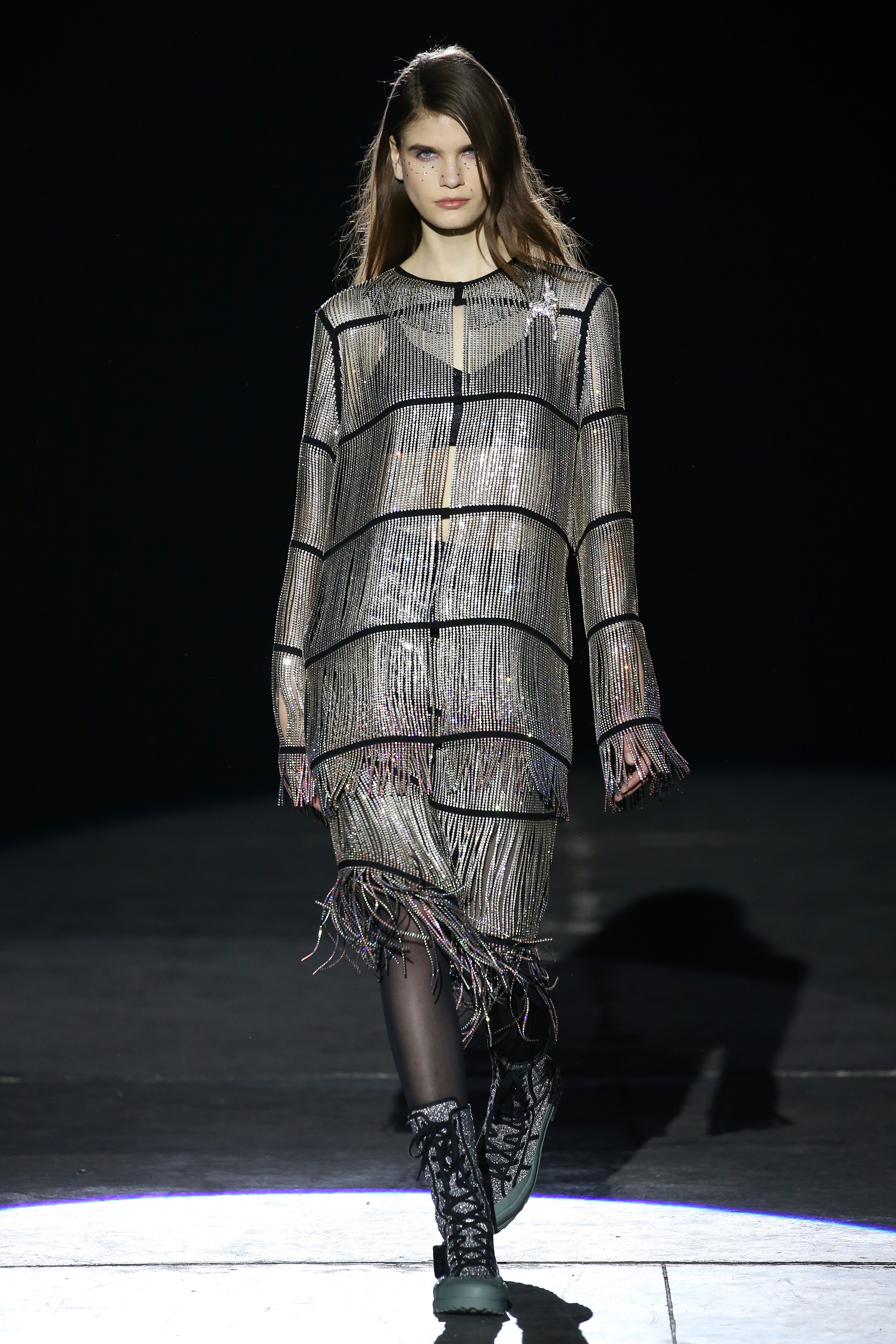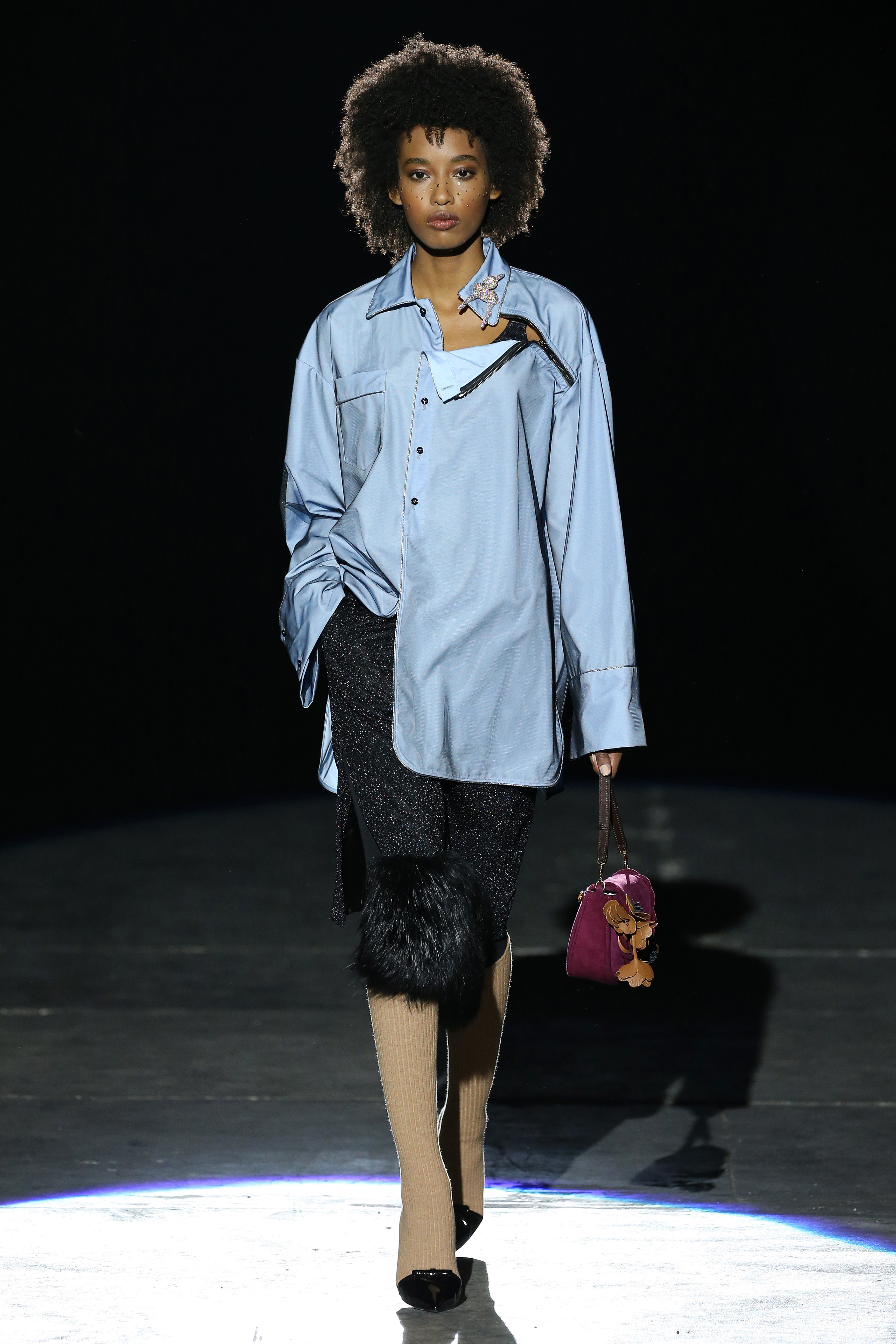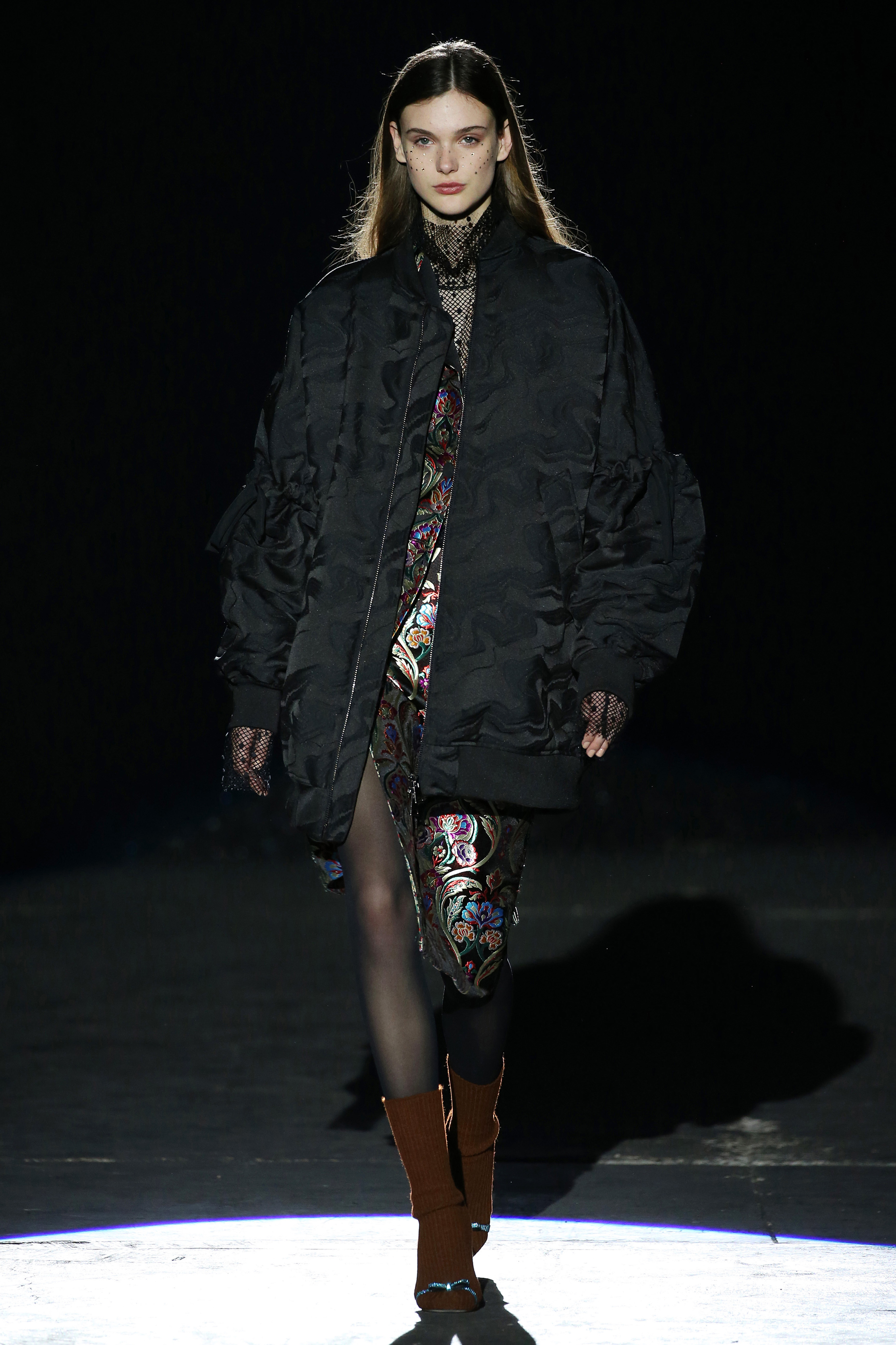 “One of my favorite things in the world is a little ceramic deer from the Forties that I found a few years ago in a small shop. I like it so much, I keep it in a glass case at home: even though it is not precious, it is very precious to me. It’s the same Bambi that I shaped into an invitation to this show. This collection feels very personal: it is filled it with my favorite things. I wanted to celebrate what I like as a designer, what triggers my creativity and makes me love my job. The idea that everything comes together, for instance, even when things are put one next to another for no particular reason but a creative urge. This fateful randomness, which in fact is not randomness, is completely my own, just like the love for lurex, waves, optical motifs; just like the proclivity for macramè, glitter, intensely psychedelic surfaces. I like riffs of the metallic and distorted ladylike. I like velvet and I like a womanly dress, or a very bourgeois ensemble that I twist and turn by way of color, texture or pattern. A touch of kitsch is something I am not afraid of at all. This collection is one hundred percent me, a recollection of the weird and wonderful alphabet of my label, which I launched exactly ten years ago. What is specific and exclusive of this moment is the ease of it all, the pervasive sense of spontaneity. I am feeling light right now. So does my work”.