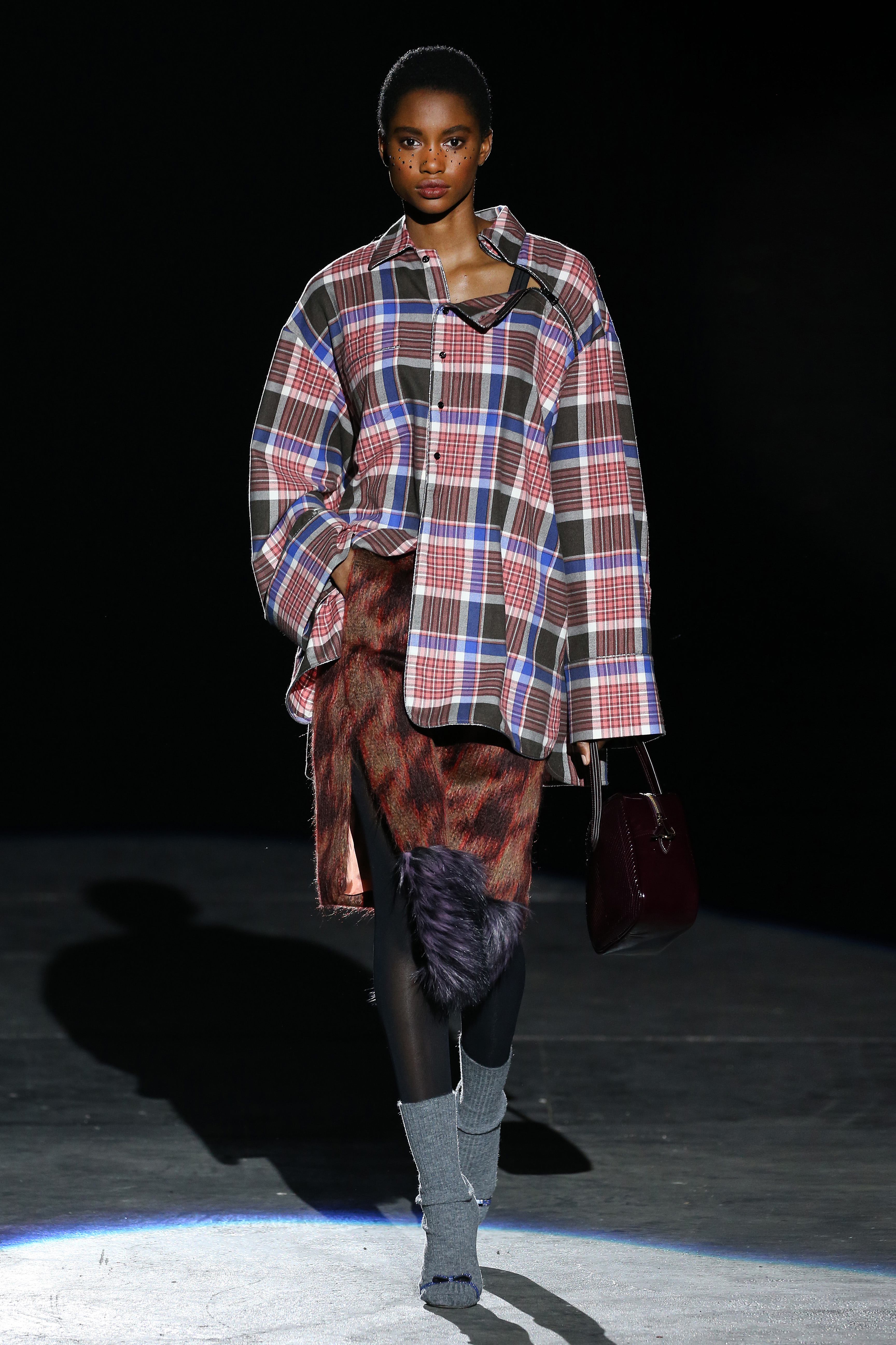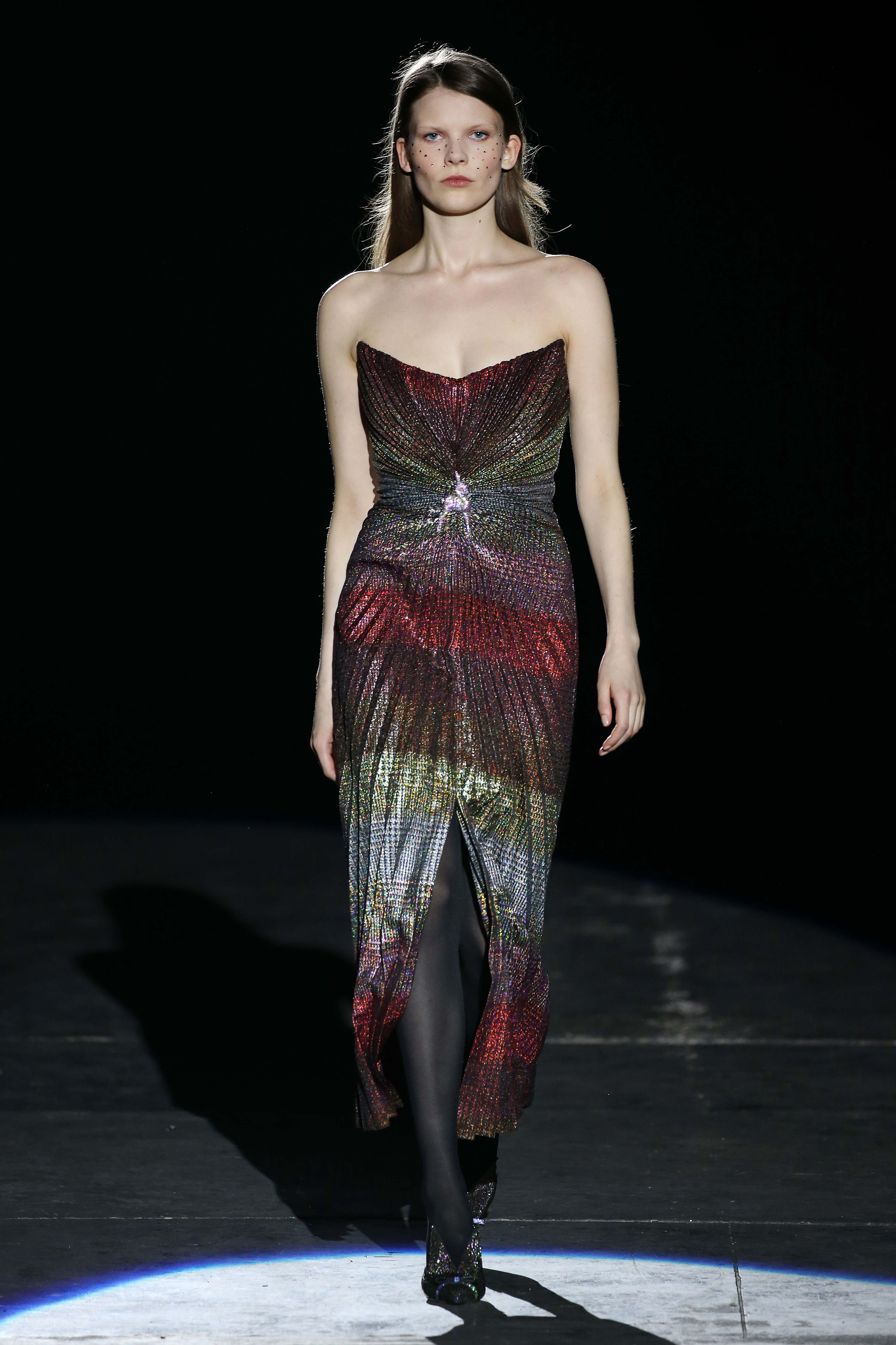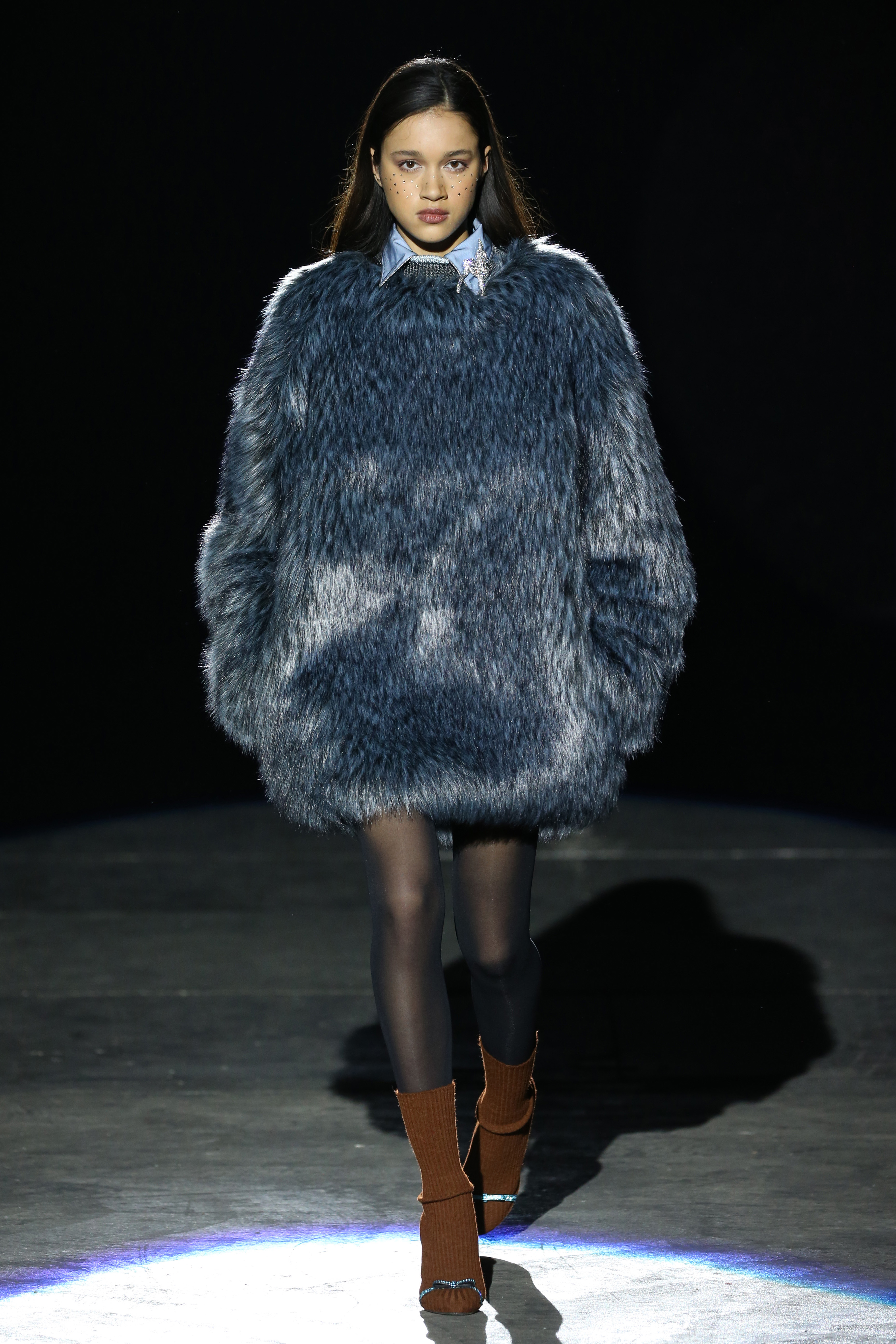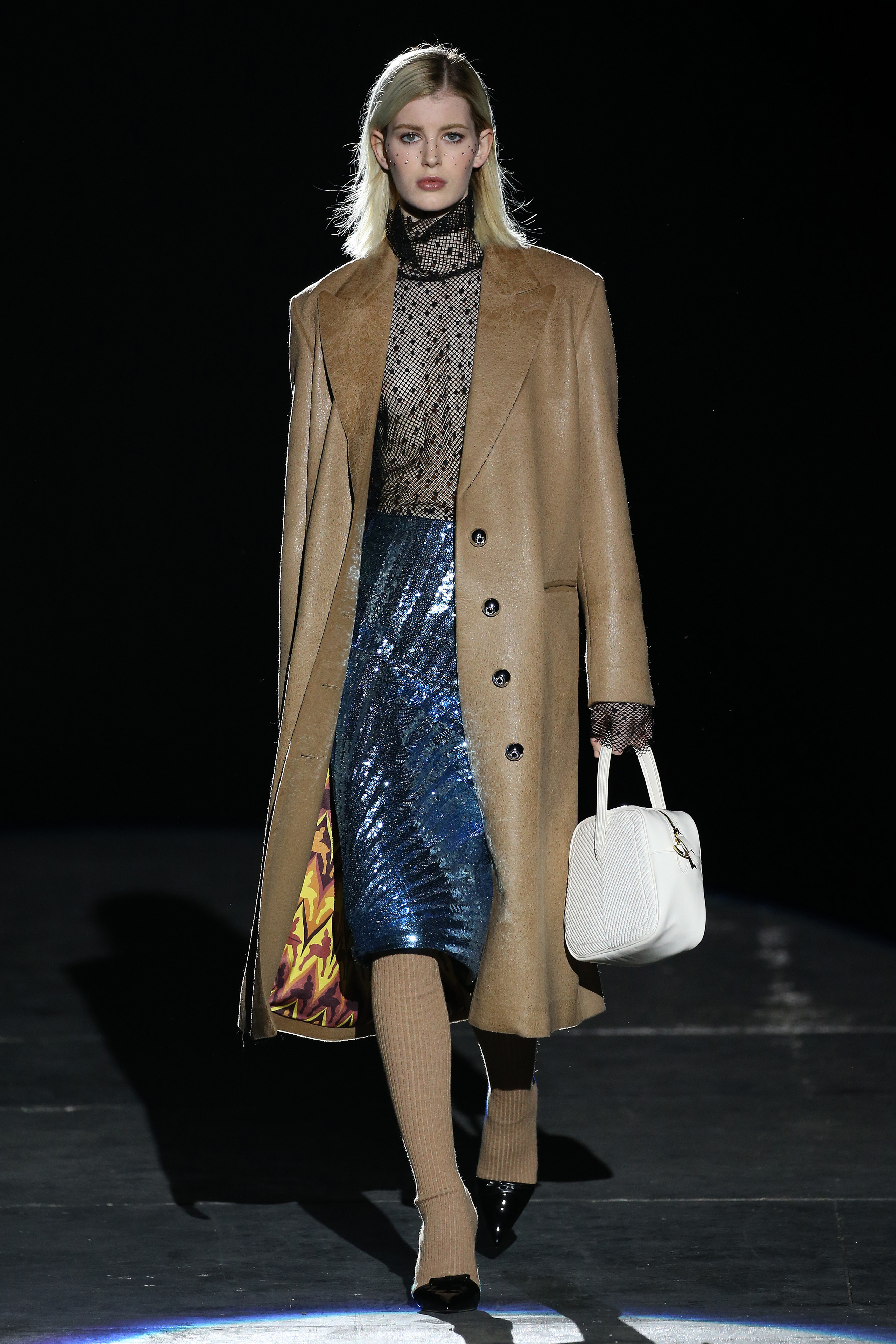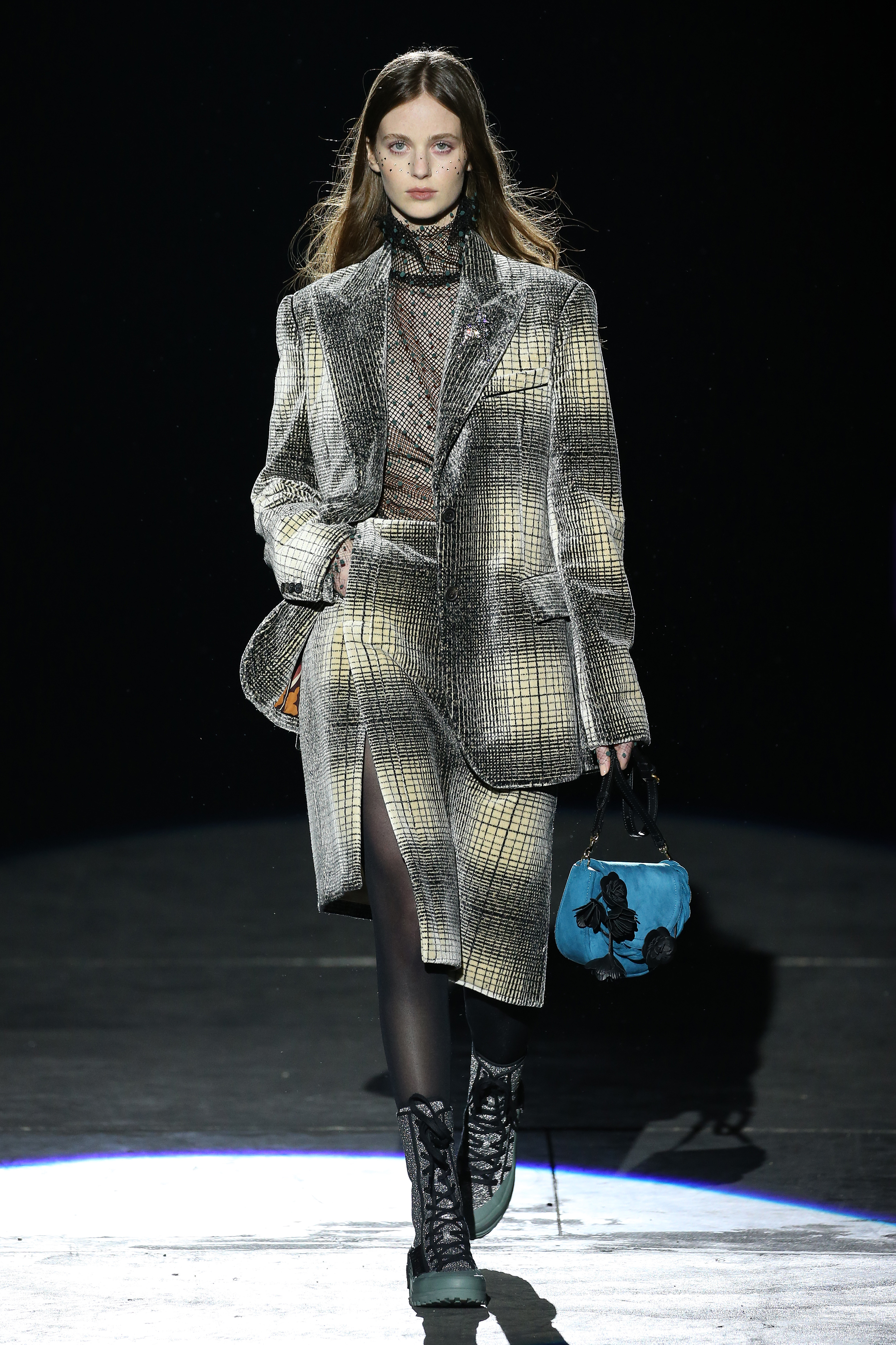 “One of my favorite things in the world is a little ceramic deer from the Forties that I found a few years ago in a small shop. I like it so much, I keep it in a glass case at home: even though it is not precious, it is very precious to me. It’s the same Bambi that I shaped into an invitation to this show. This collection feels very personal: it is filled it with my favorite things. I wanted to celebrate what I like as a designer, what triggers my creativity and makes me love my job. The idea that everything comes together, for instance, even when things are put one next to another for no particular reason but a creative urge. This fateful randomness, which in fact is not randomness, is completely my own, just like the love for lurex, waves, optical motifs; just like the proclivity for macramè, glitter, intensely psychedelic surfaces. I like riffs of the metallic and distorted ladylike. I like velvet and I like a womanly dress, or a very bourgeois ensemble that I twist and turn by way of color, texture or pattern. A touch of kitsch is something I am not afraid of at all. This collection is one hundred percent me, a recollection of the weird and wonderful alphabet of my label, which I launched exactly ten years ago. What is specific and exclusive of this moment is the ease of it all, the pervasive sense of spontaneity. I am feeling light right now. So does my work”.