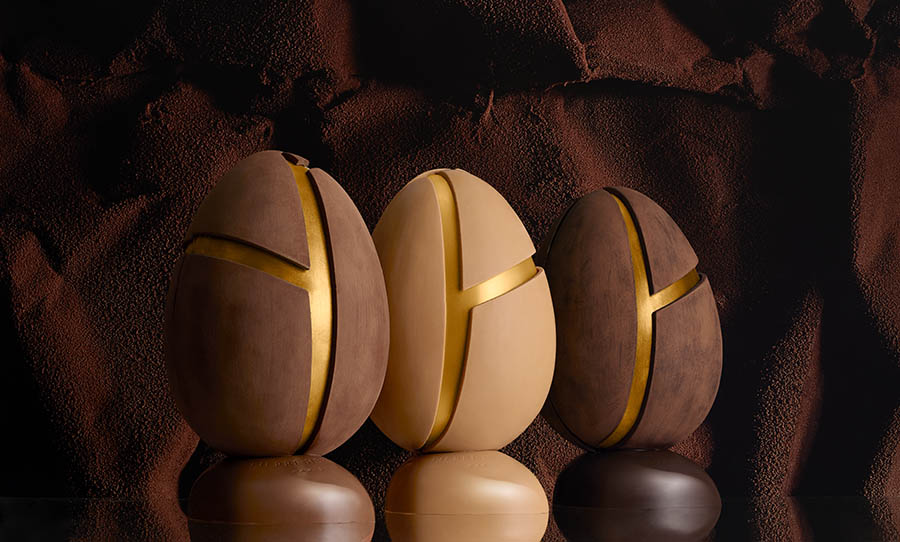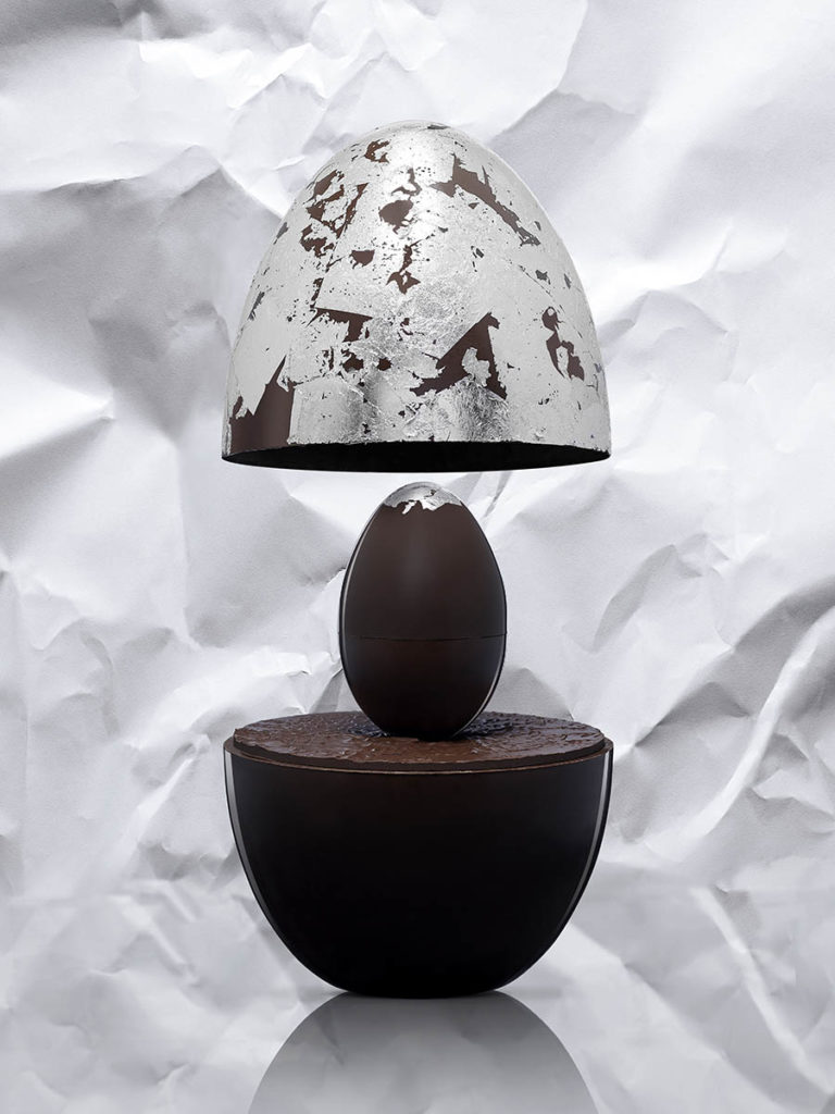 Cette année, Pierre Hermé a choisi de bousculer les codes de l’œuf traditionnel en chocolat en imaginant une interprétation gourmande du MOOD de la célèbre marque d’orfèvrerie française Christofle.