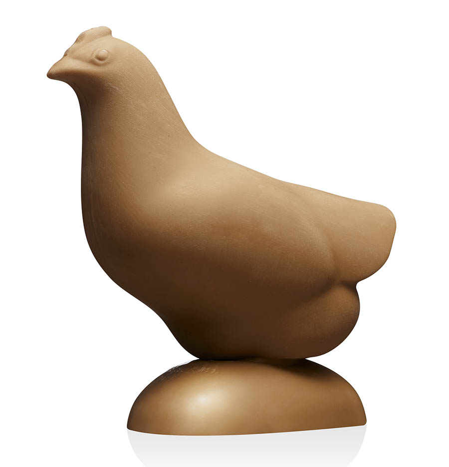 Avec son Lapin et Poule d’après François Pompon, Pierre Hermé célèbre les lignes épurées et rondes des sculptures de ce visionnaire de la fin du XIXe. Poules et lapins en chocolat arborent des formes lisses, pleines et arrondies, rendant hommage à la puissance douce et au rendu du mouvement des créations de François Pompon.