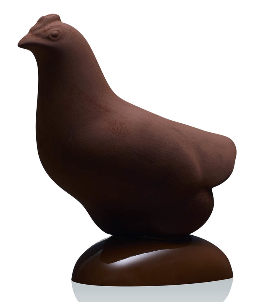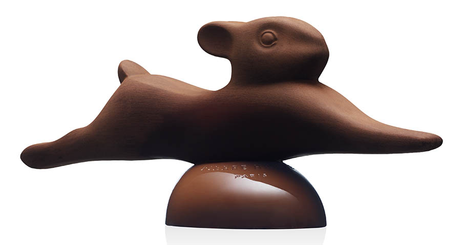 Avec son Lapin et Poule d’après François Pompon, Pierre Hermé célèbre les lignes épurées et rondes des sculptures de ce visionnaire de la fin du XIXe. Poules et lapins en chocolat arborent des formes lisses, pleines et arrondies, rendant hommage à la puissance douce et au rendu du mouvement des créations de François Pompon.