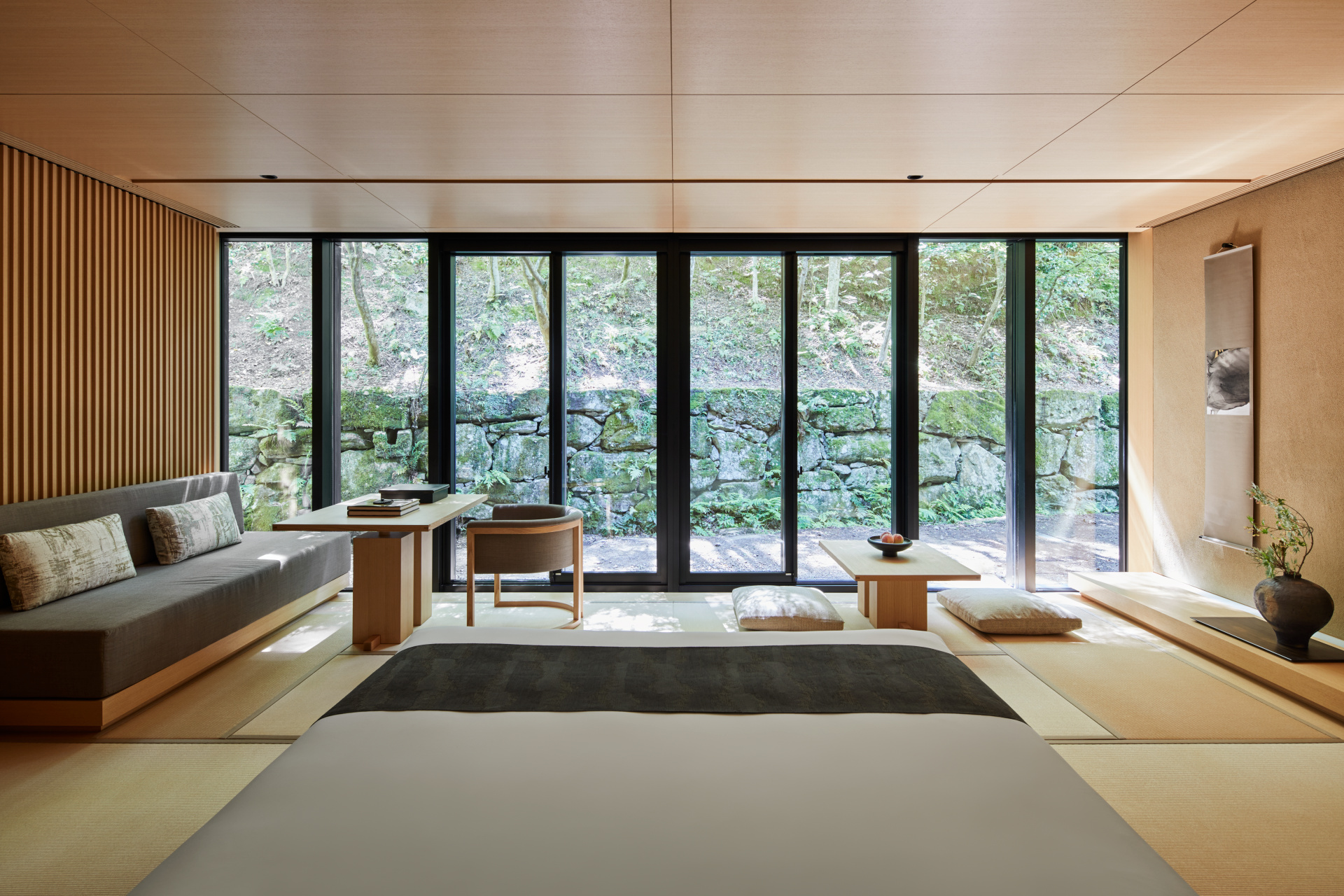 Exemplaire dans sa simplicité, Aman Kyoto est un pur chef-d’œuvre architectural mis au point par le cabinet Kerry Hill Architects, qui s’est inspiré des antiques ryokans et des onsens afin de recréer un sanctuaire authentique mais contemporain immergé dans la nature.