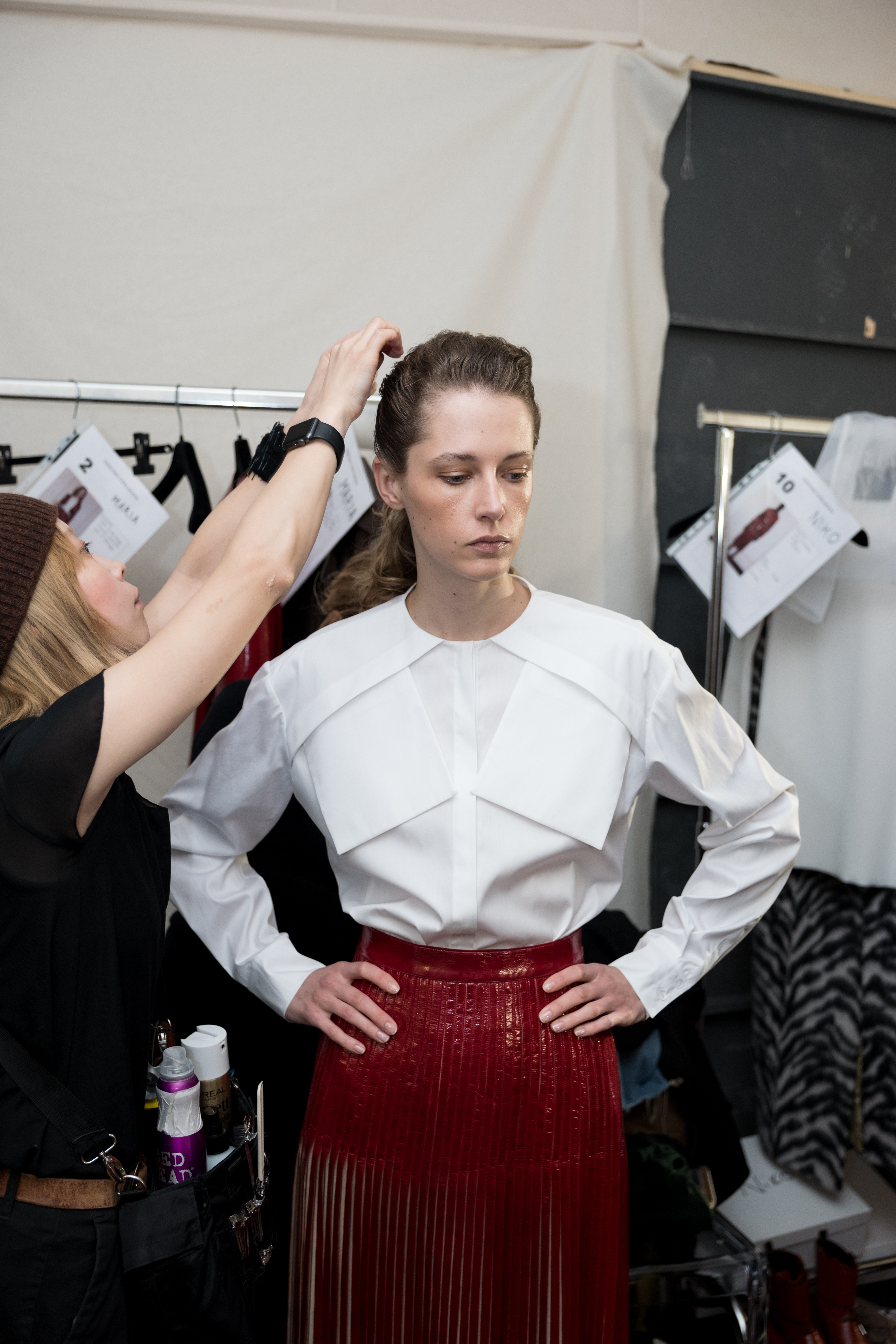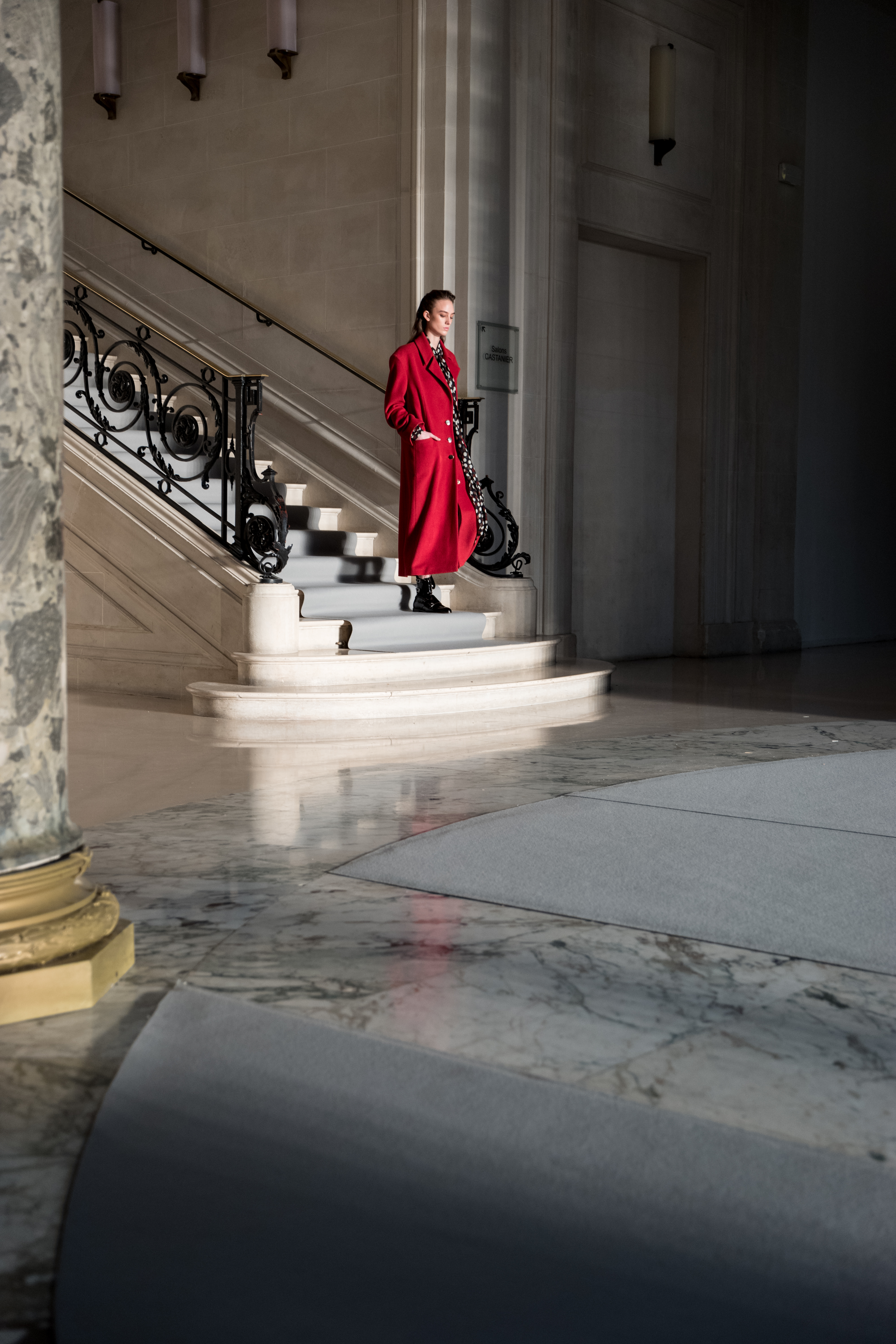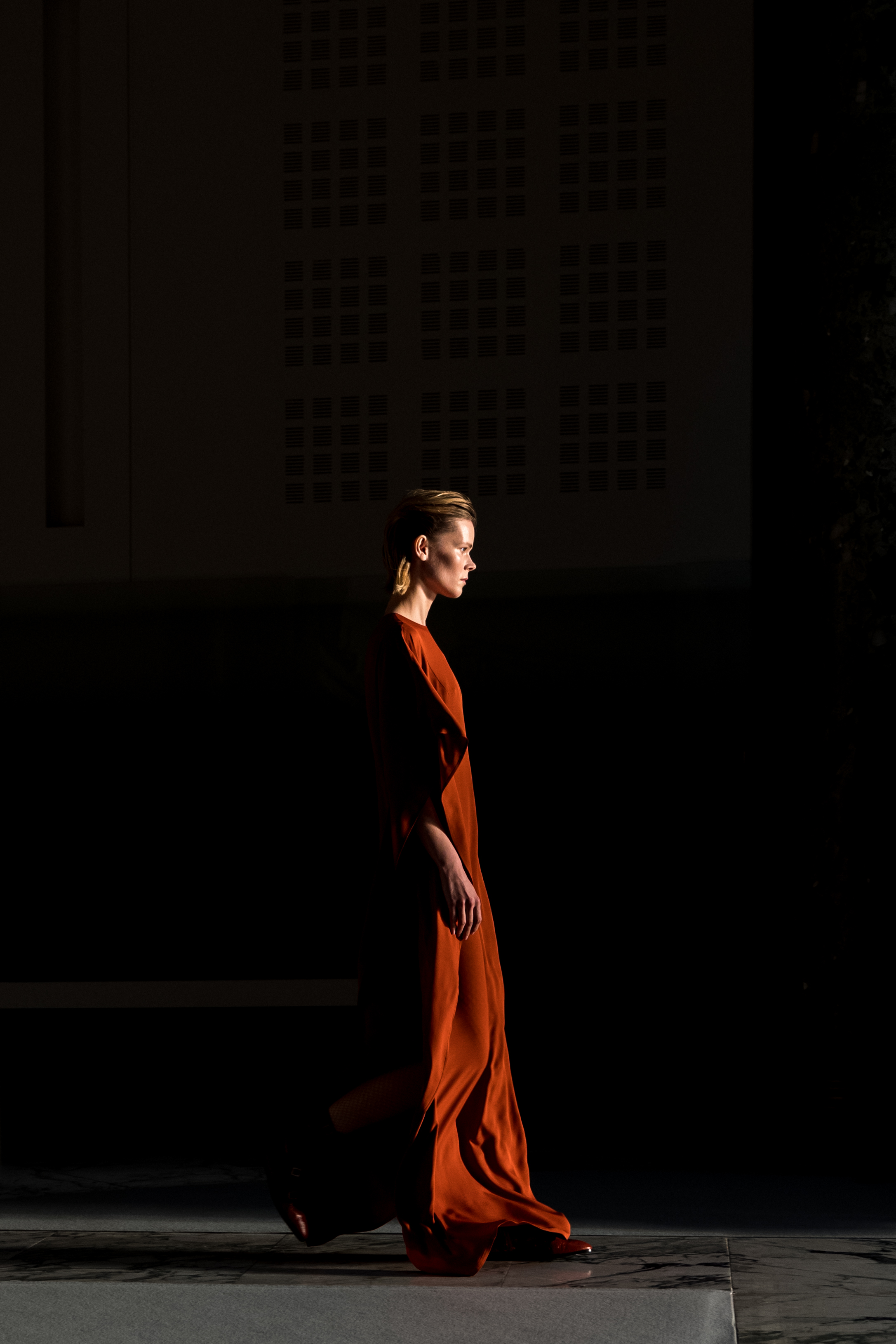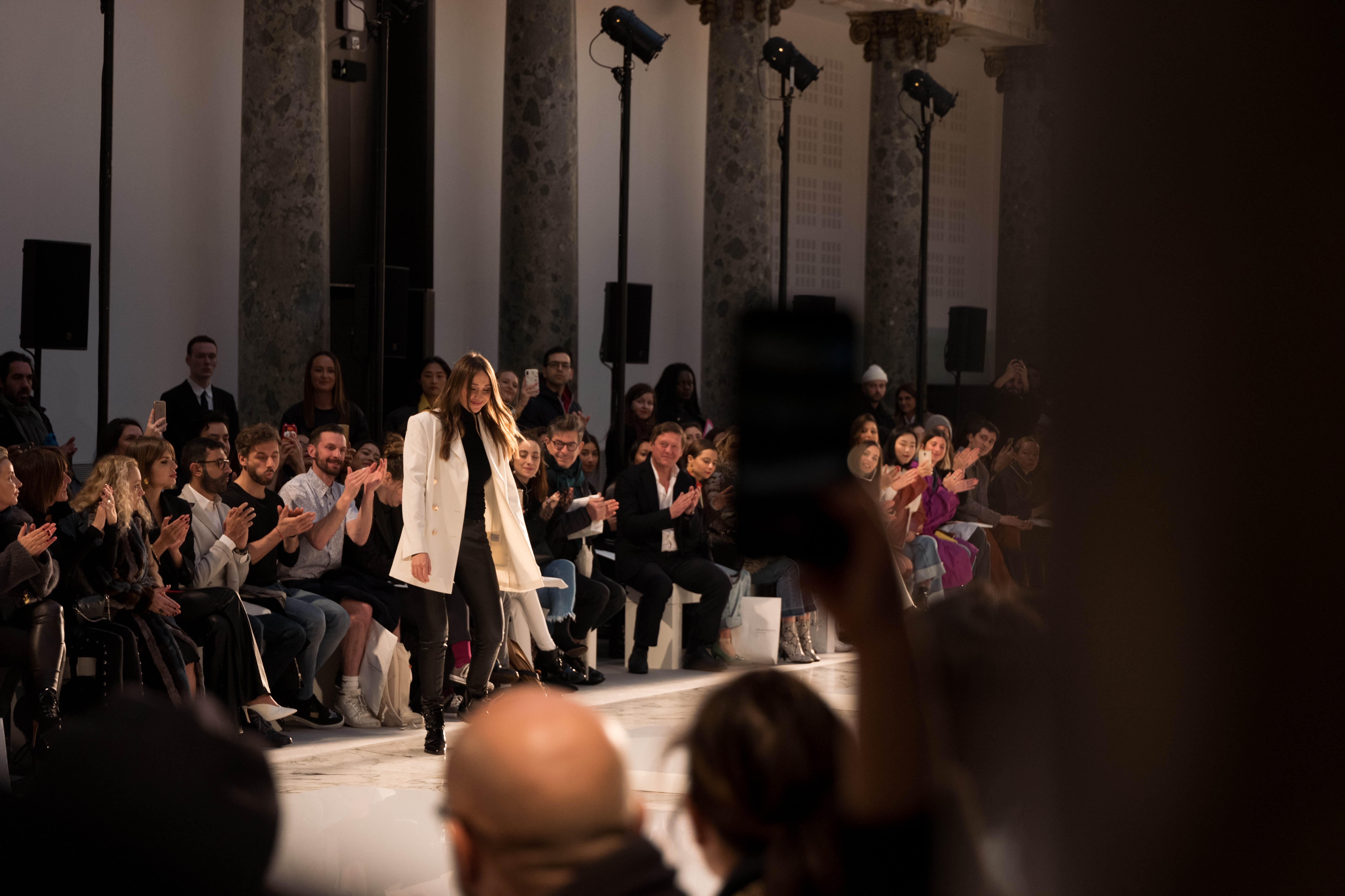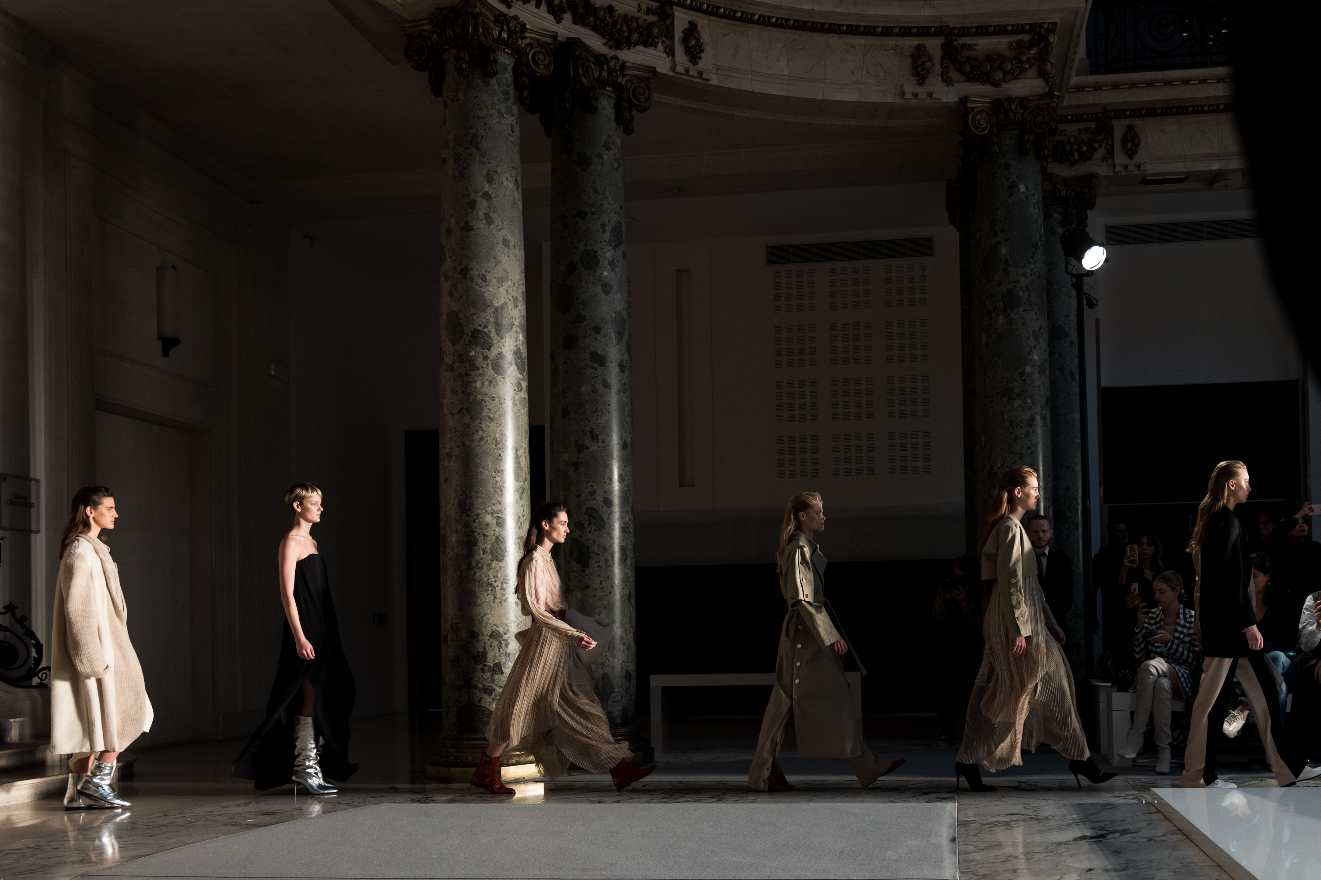 La collection Automne/Hiver 2019 de Kristina Fidelskaya est conçue autour d’un mélange de textures : de la laine peignée et du sergé de viscose lavé, des matières qui dégagent une sensation de confort et de douceur. Chaque pièce a été développée afin d’évoquer une émotion par les sens : des chemises en soie fluides et des trenchs en cuir d’agneau à imprimé alligator, des robes structurées et des manteaux en flanelle de laine. La palette de couleurs se décline en un mélange de tons noir, rouge, jaune, camel et rose.