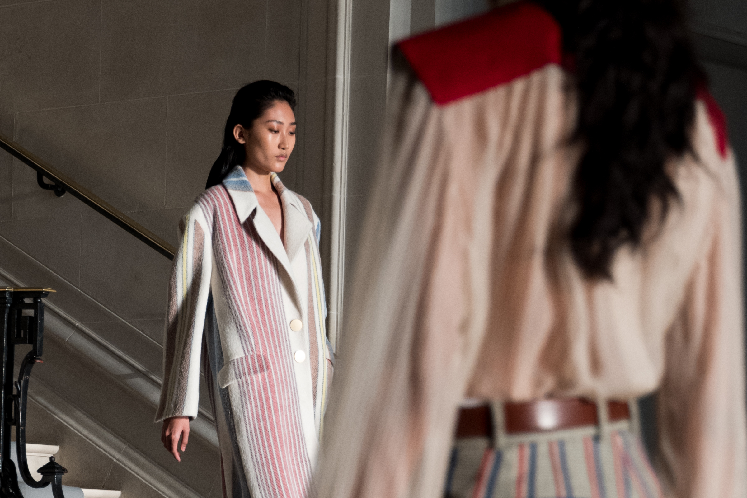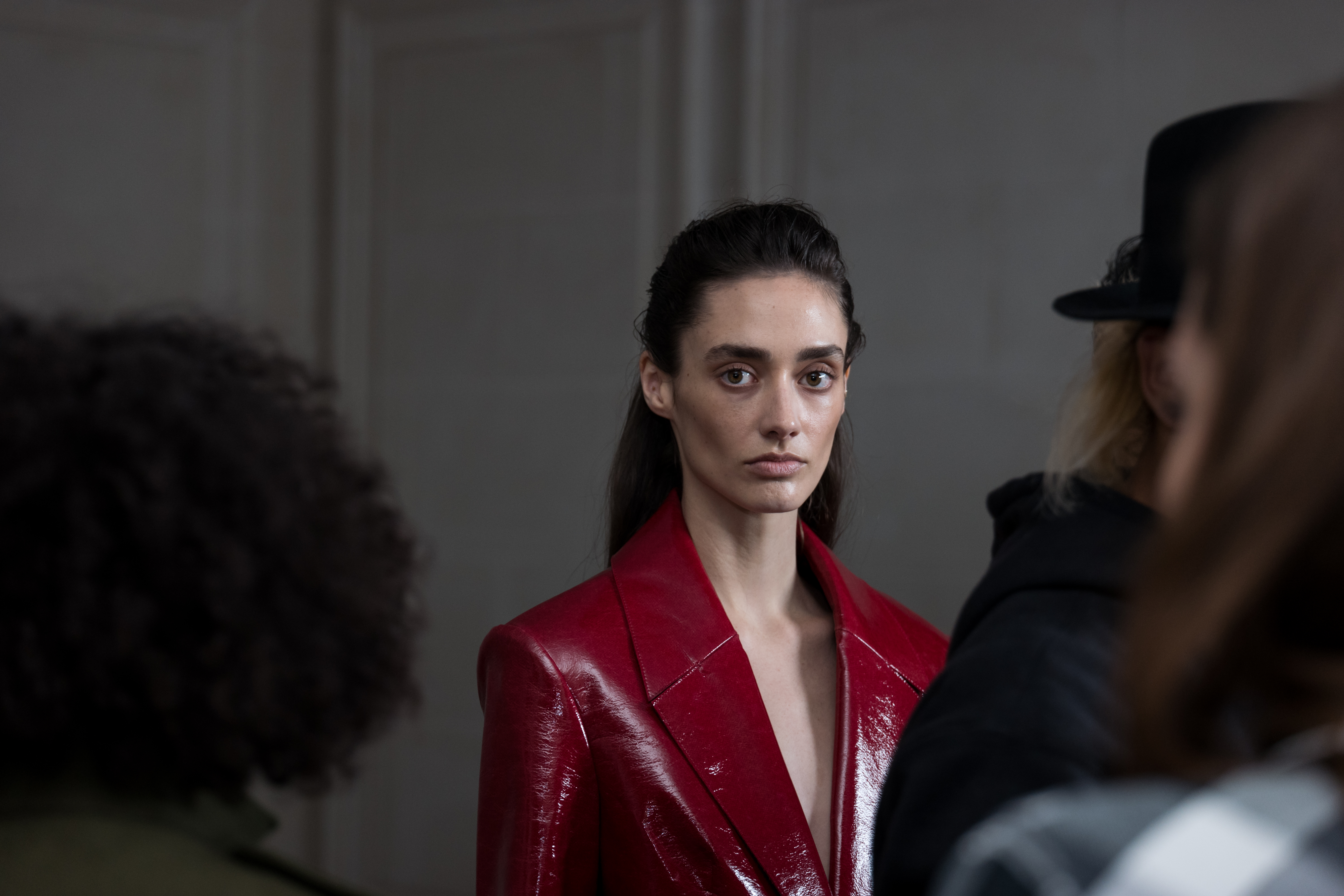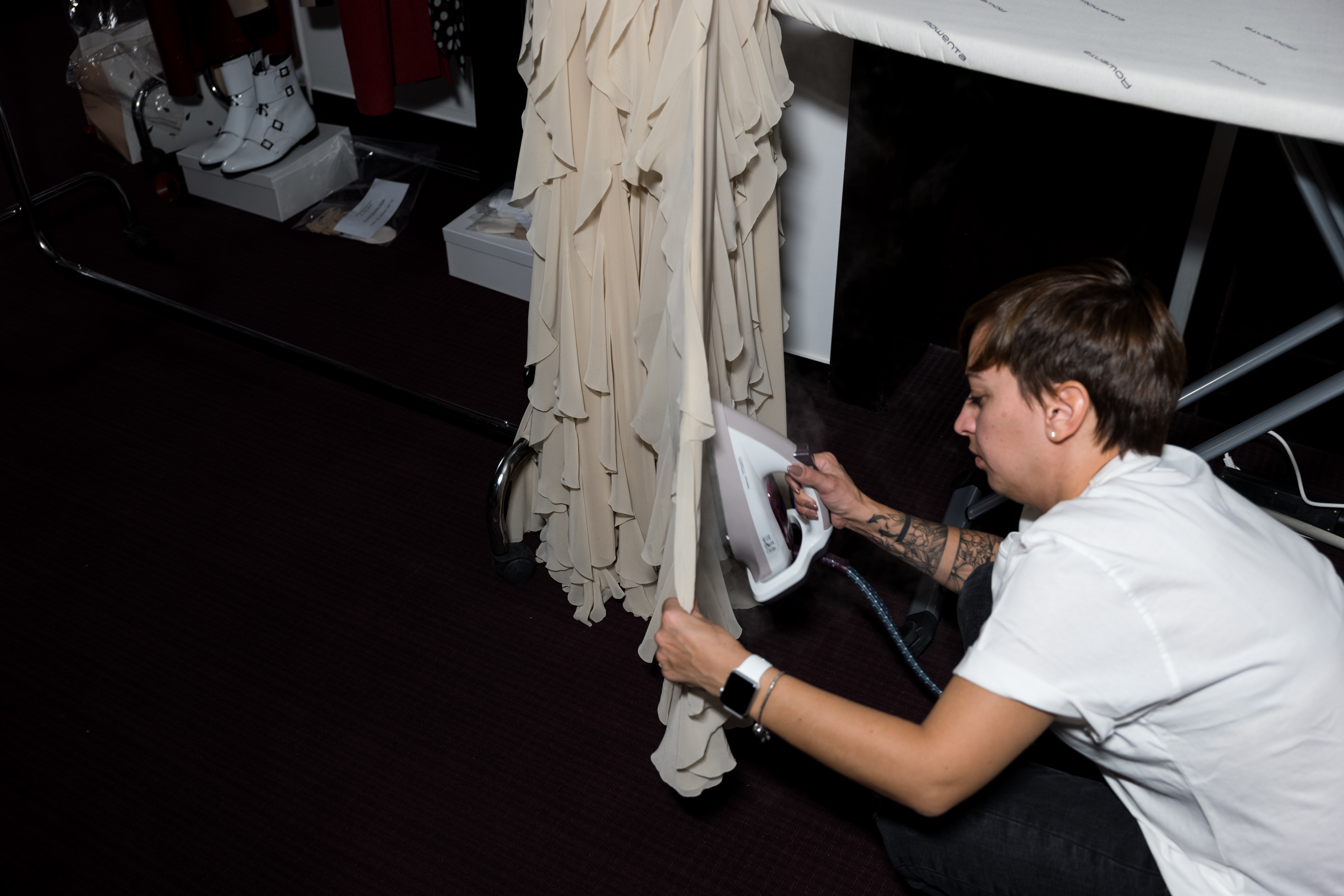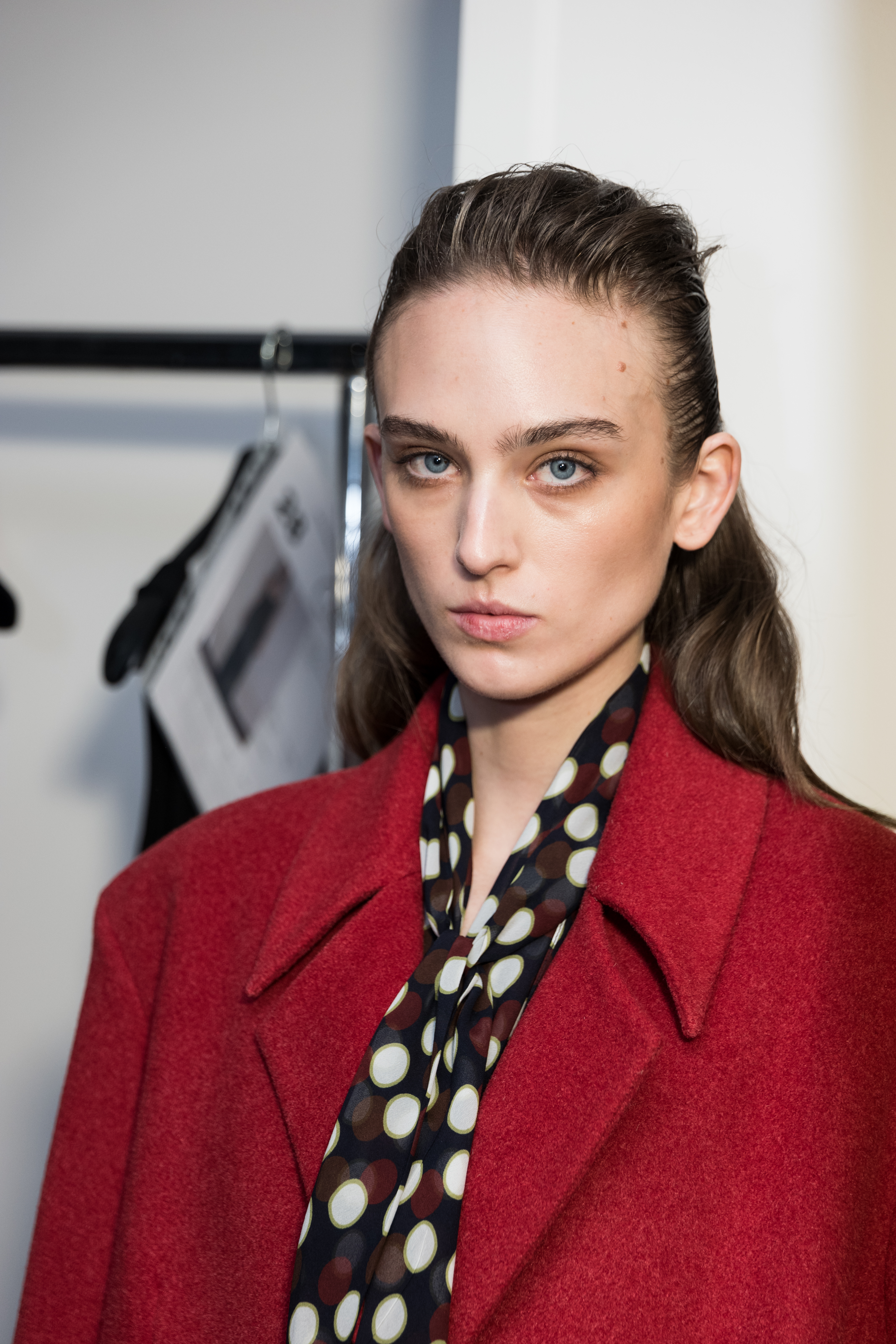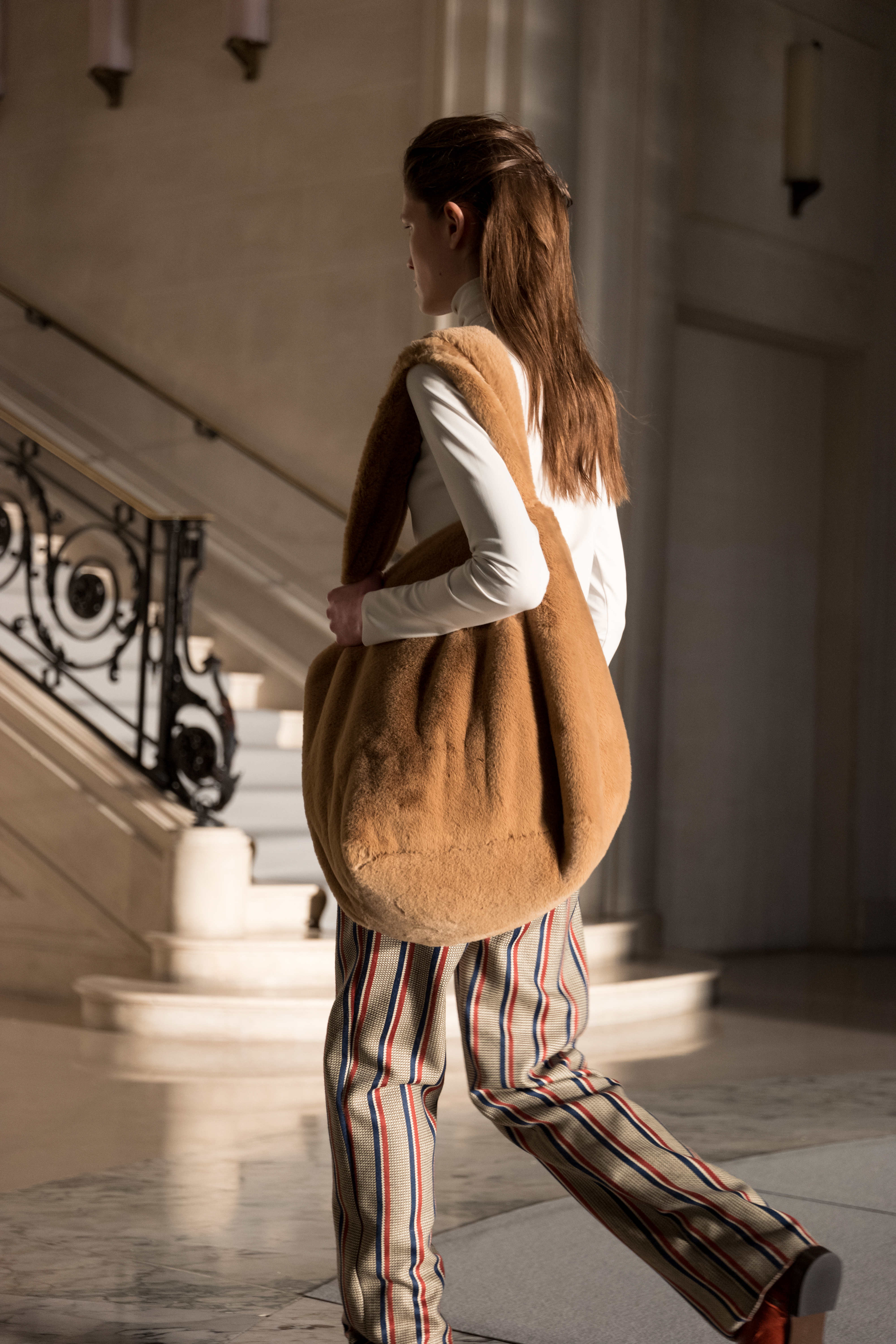 La collection Automne/Hiver 2019 de Kristina Fidelskaya est conçue autour d’un mélange de textures : de la laine peignée et du sergé de viscose lavé, des matières qui dégagent une sensation de confort et de douceur. Chaque pièce a été développée afin d’évoquer une émotion par les sens : des chemises en soie fluides et des trenchs en cuir d’agneau à imprimé alligator, des robes structurées et des manteaux en flanelle de laine. La palette de couleurs se décline en un mélange de tons noir, rouge, jaune, camel et rose.