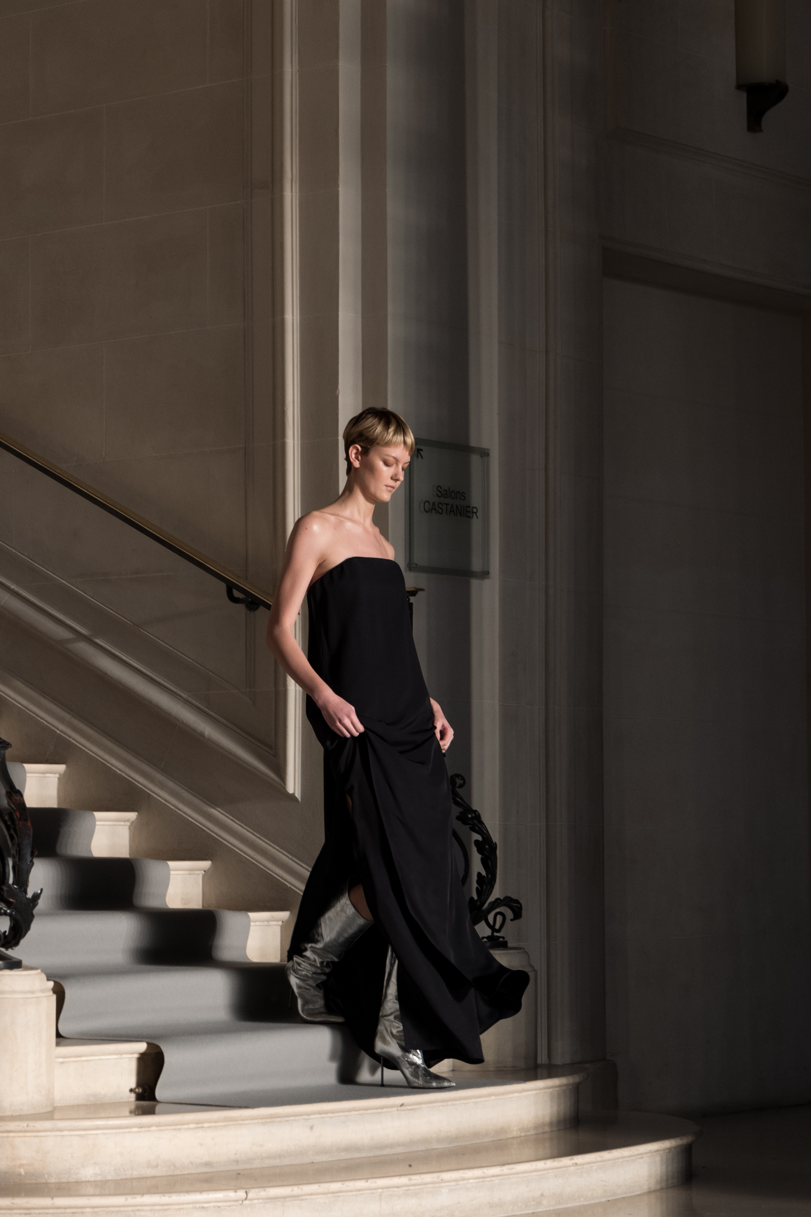 Le savoir-faire se retrouve dans les coutures de chaque pièce. Kristina s’adresse au monde moderne tout en capturant l’essence des années 90 : des manteaux sur mesure, des épaules tombantes surdimensionnées, des blazers à boutons dorés et des robes crayon.