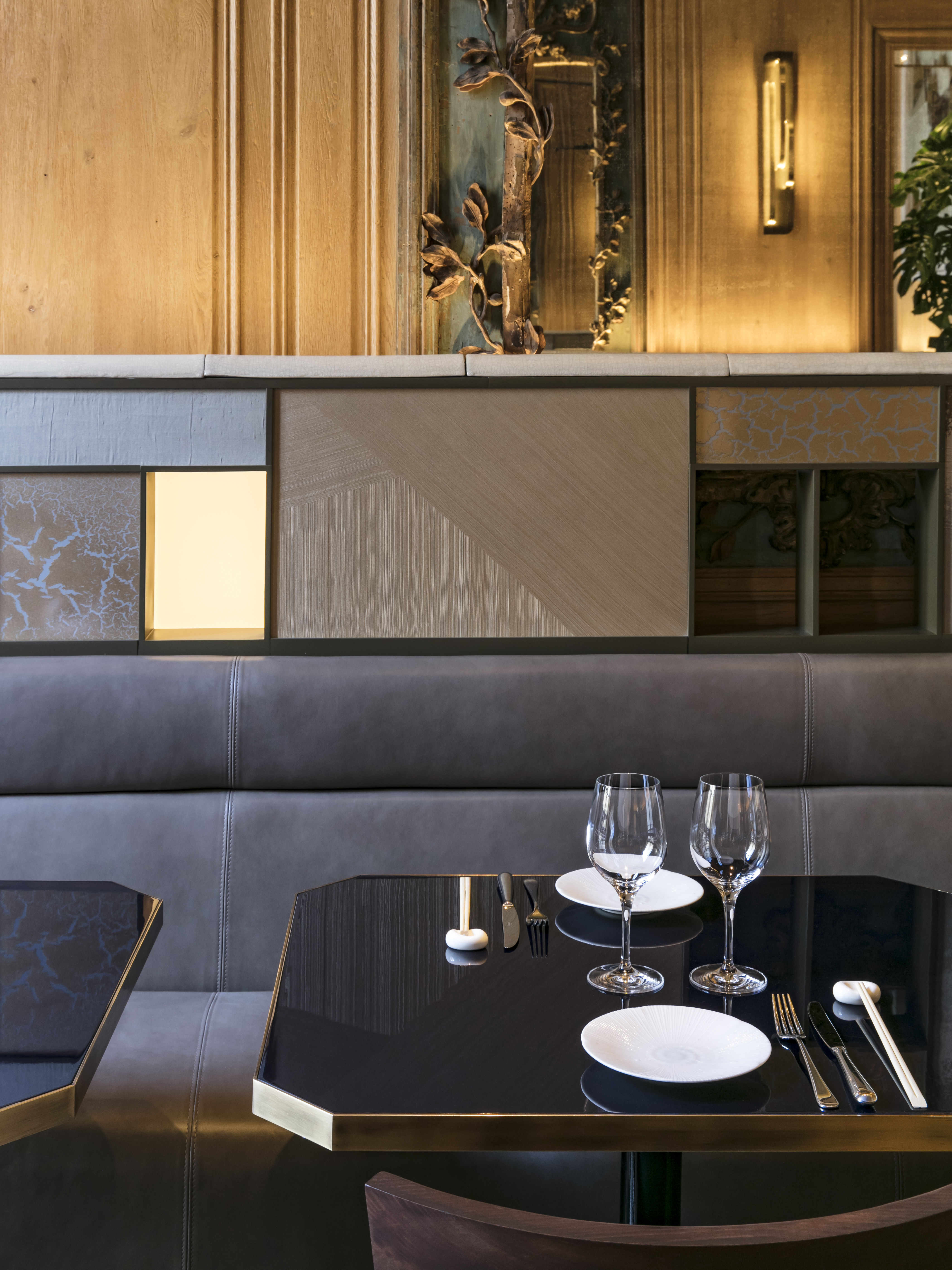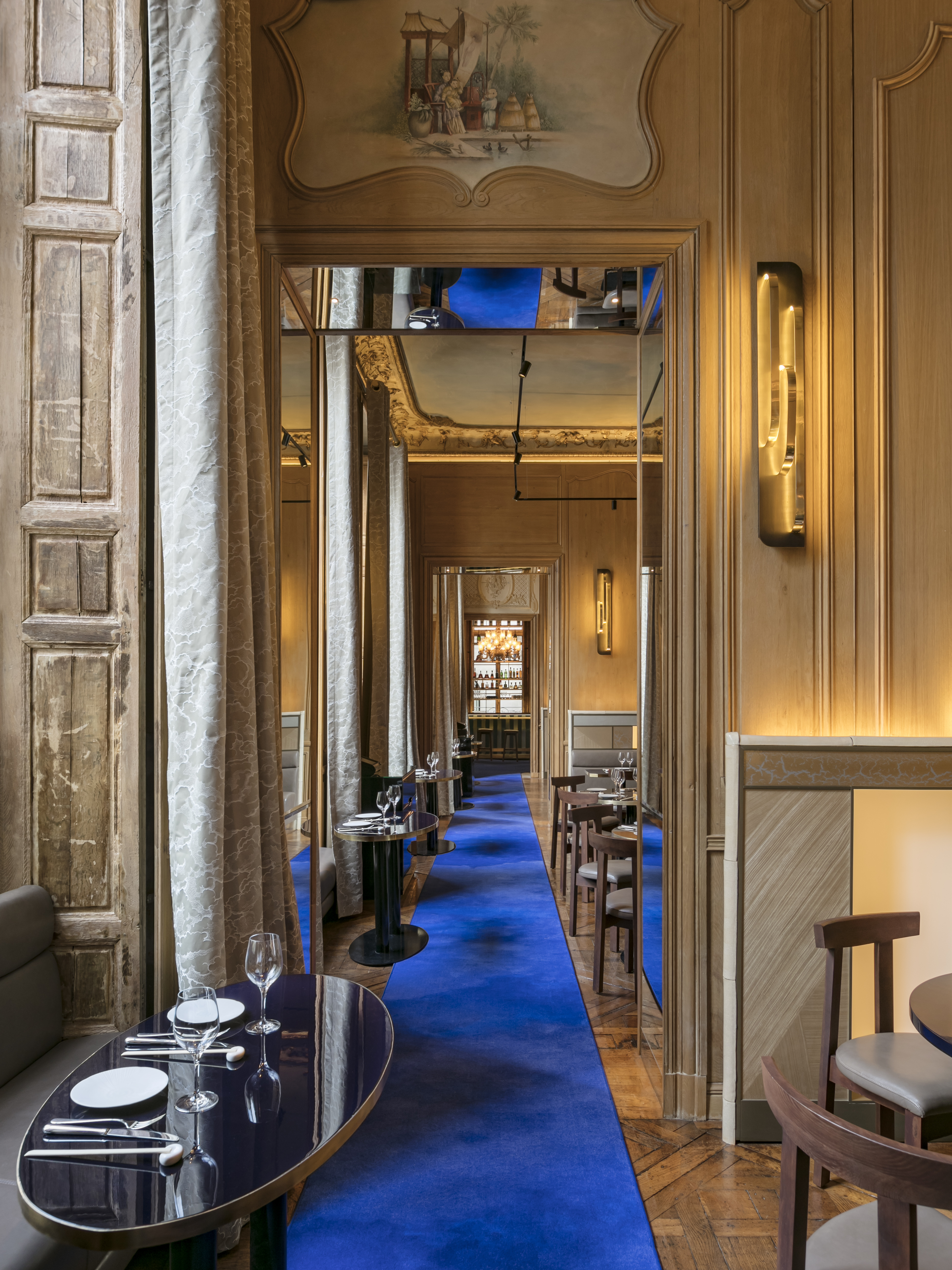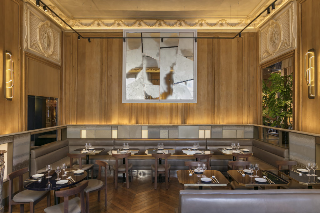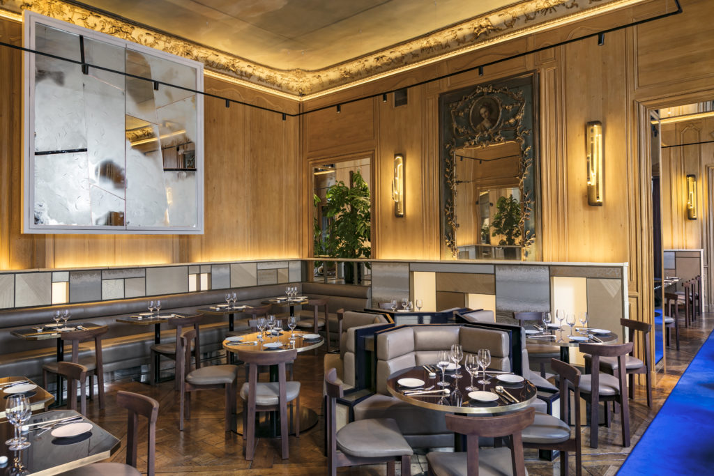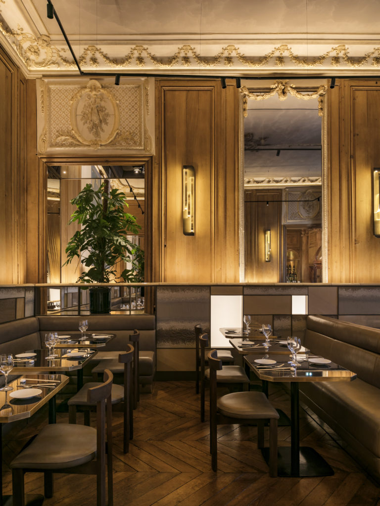esthétique et raffinée s’exprime chez RAN autour de mélanges de matières et de lumières dans l’écrin des boiseries anciennes et sublime l’esprit du lieu.
