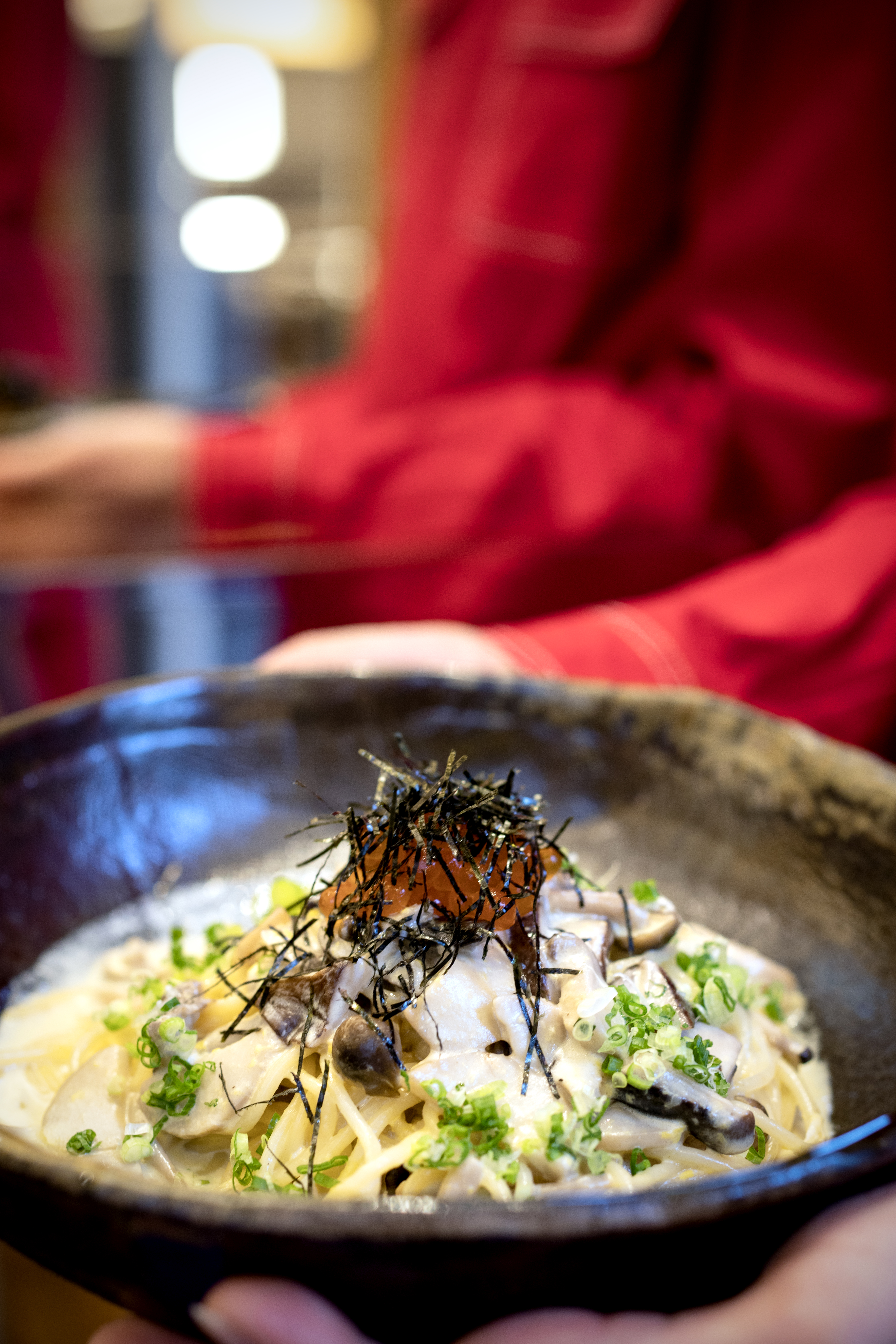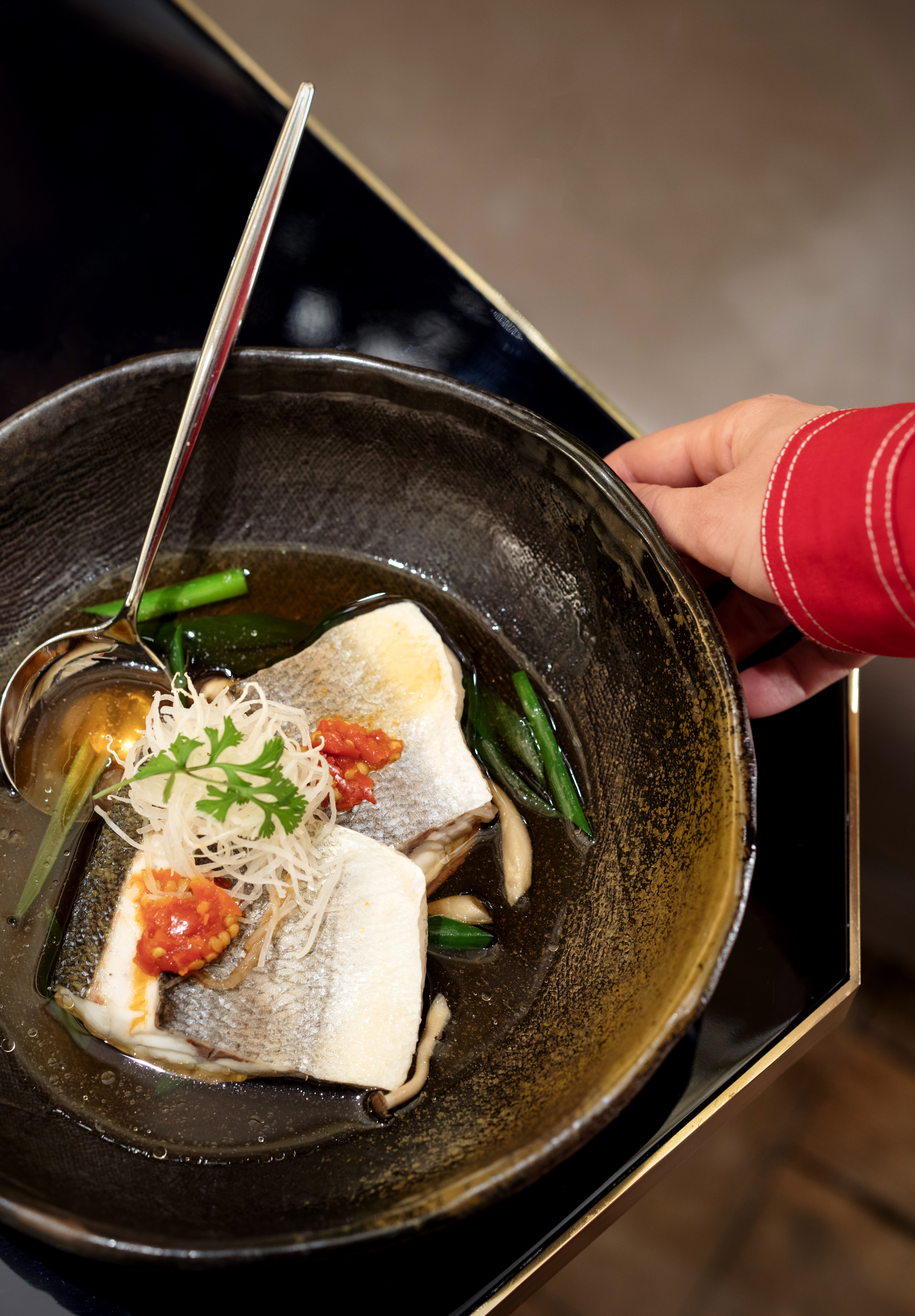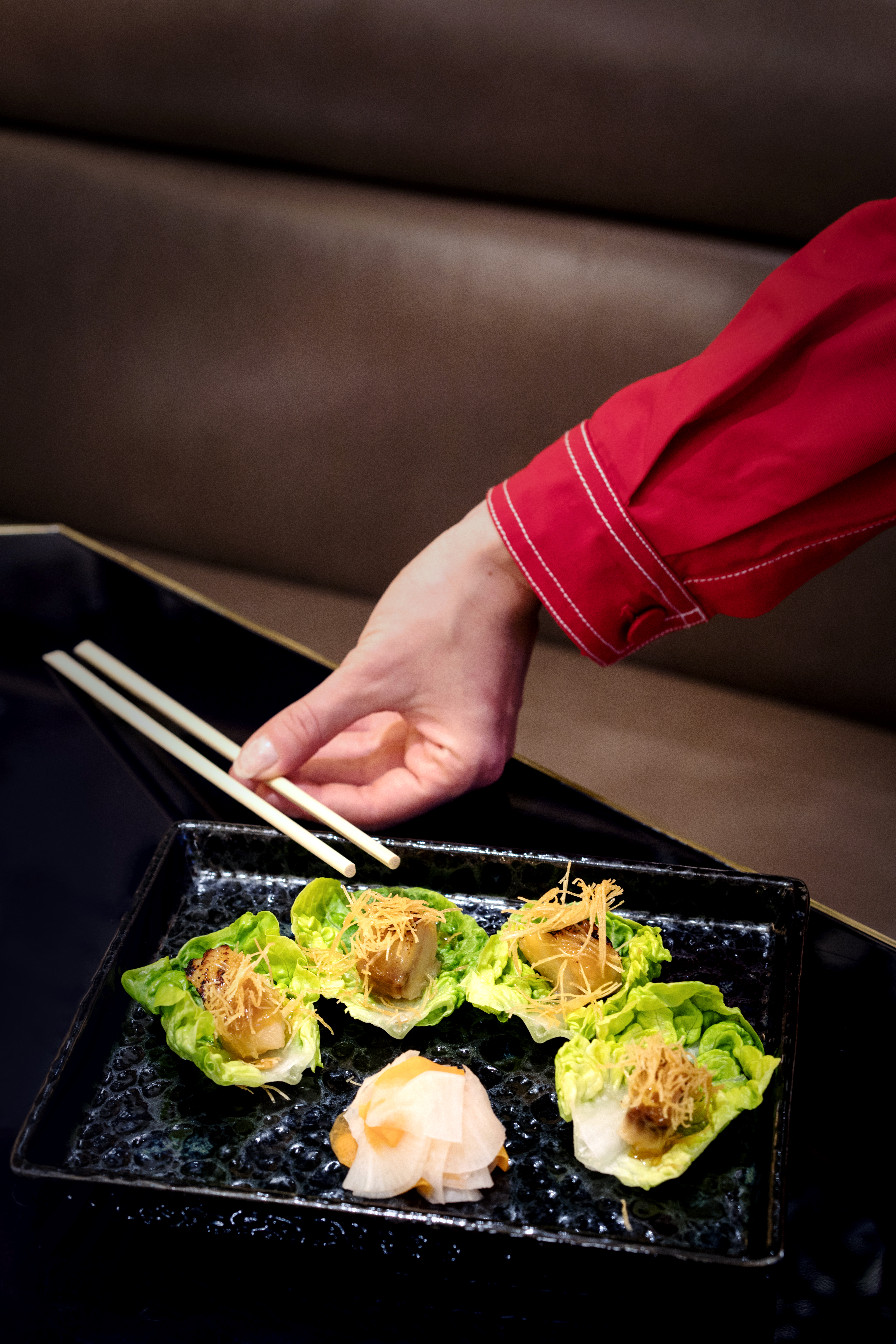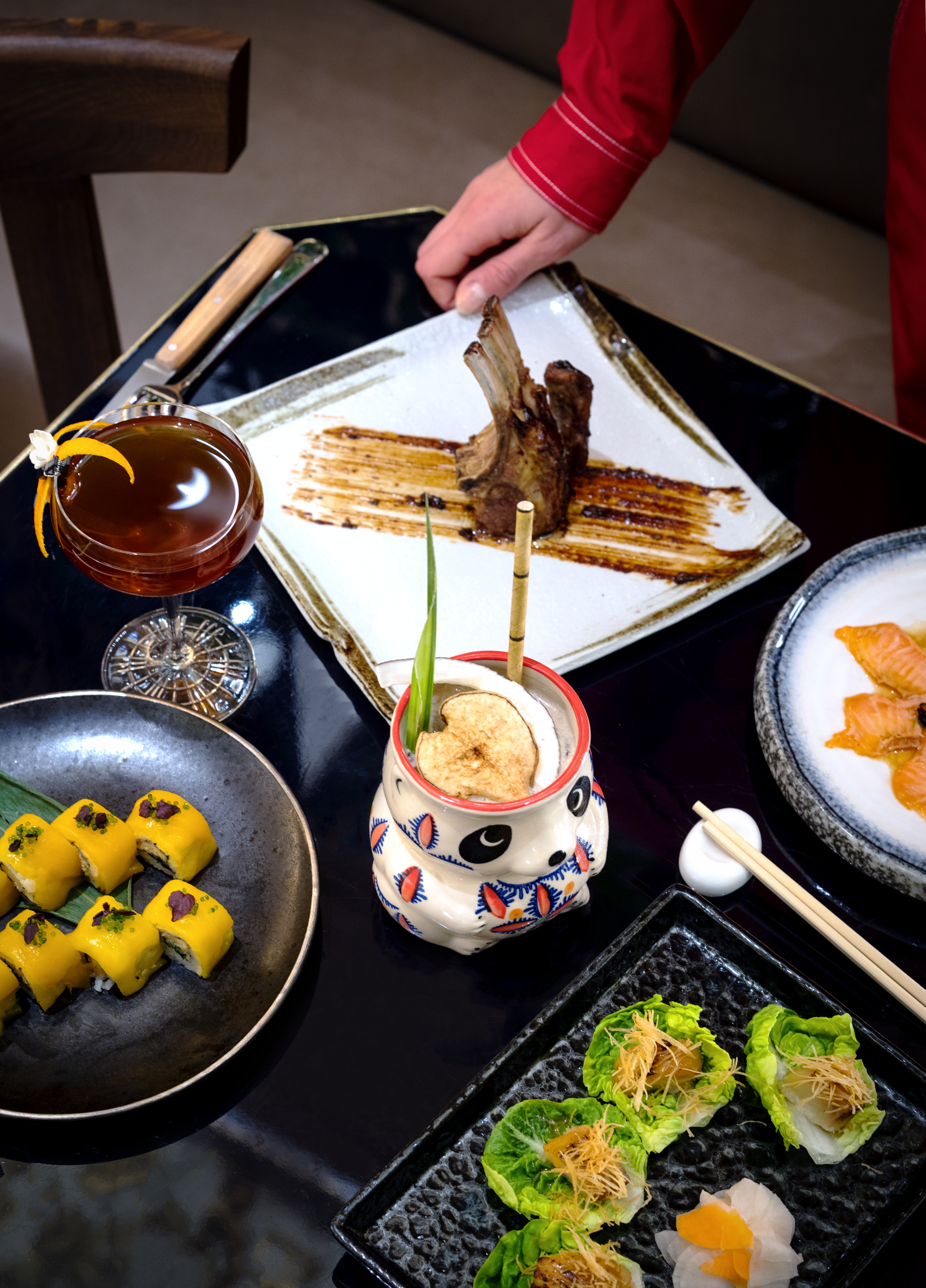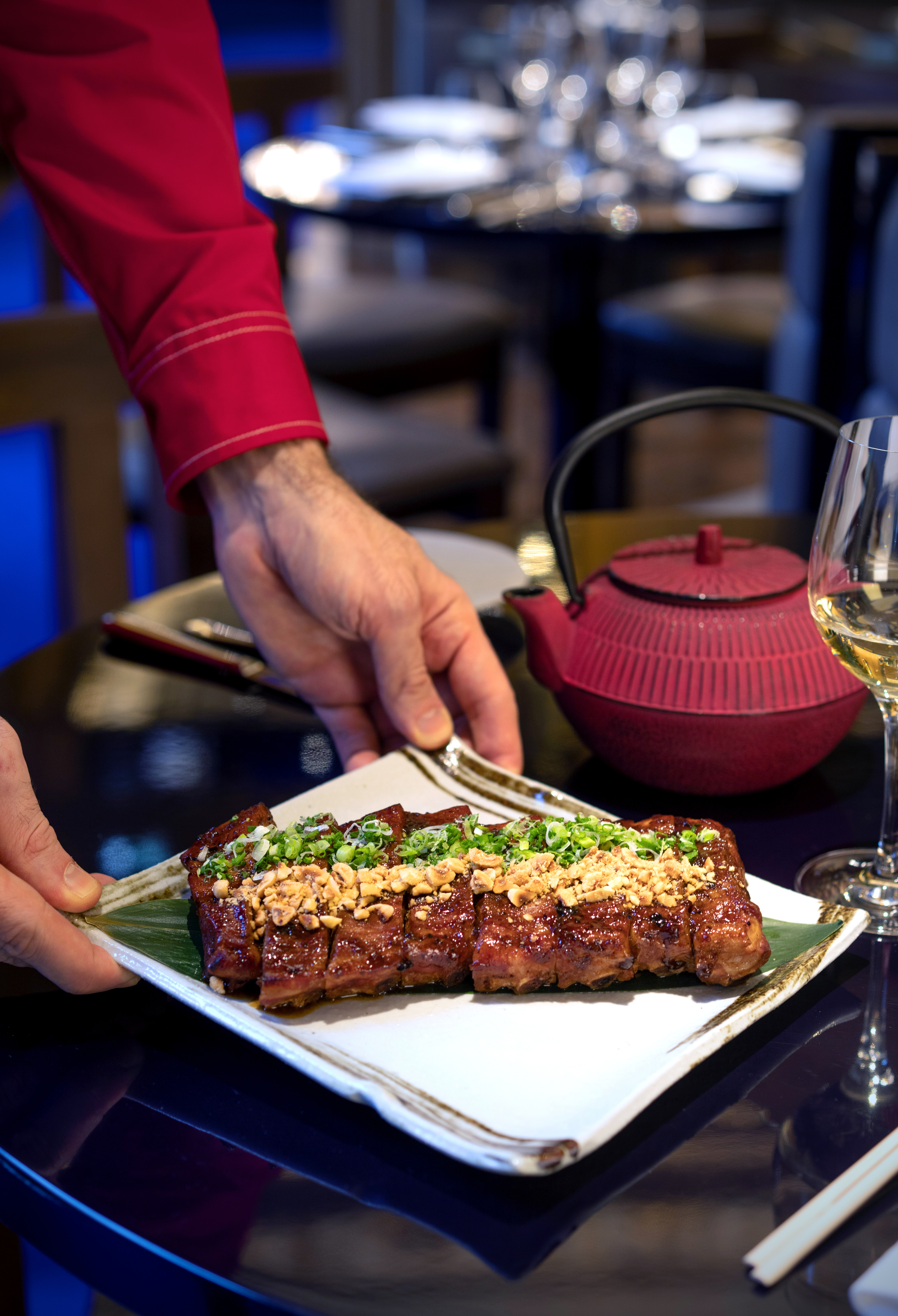 Chaque dîner à la table de RAN offre une expérience remarquable – le service, qui emmène la clientèle dans un monde unique, avec des codes, un dynamisme entraînant, les silhouettes mystérieuses qui apparaissent et disparaissent au fil de la soirée et se reflètent dans les miroirs de la salle comme dans une mise en scène.