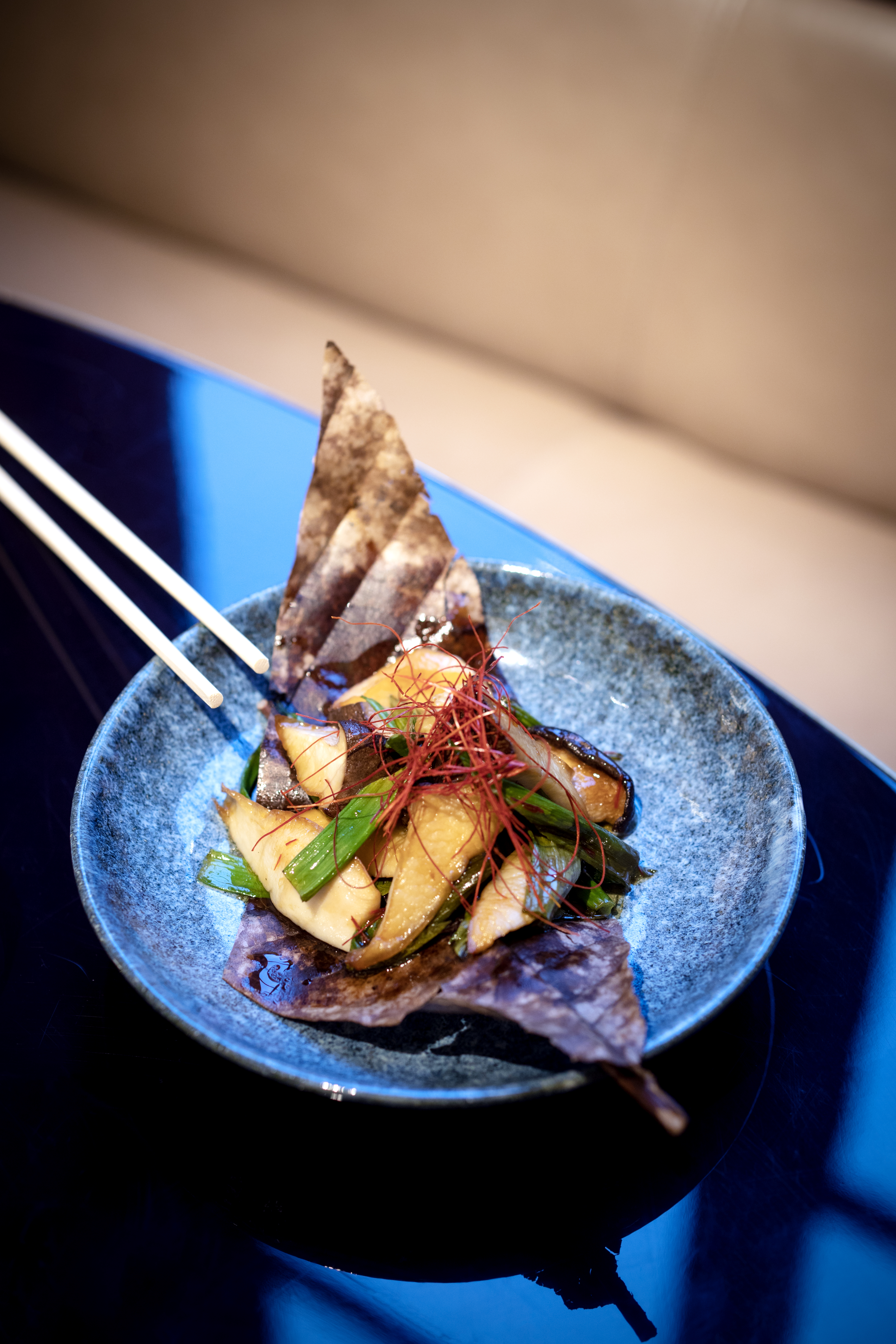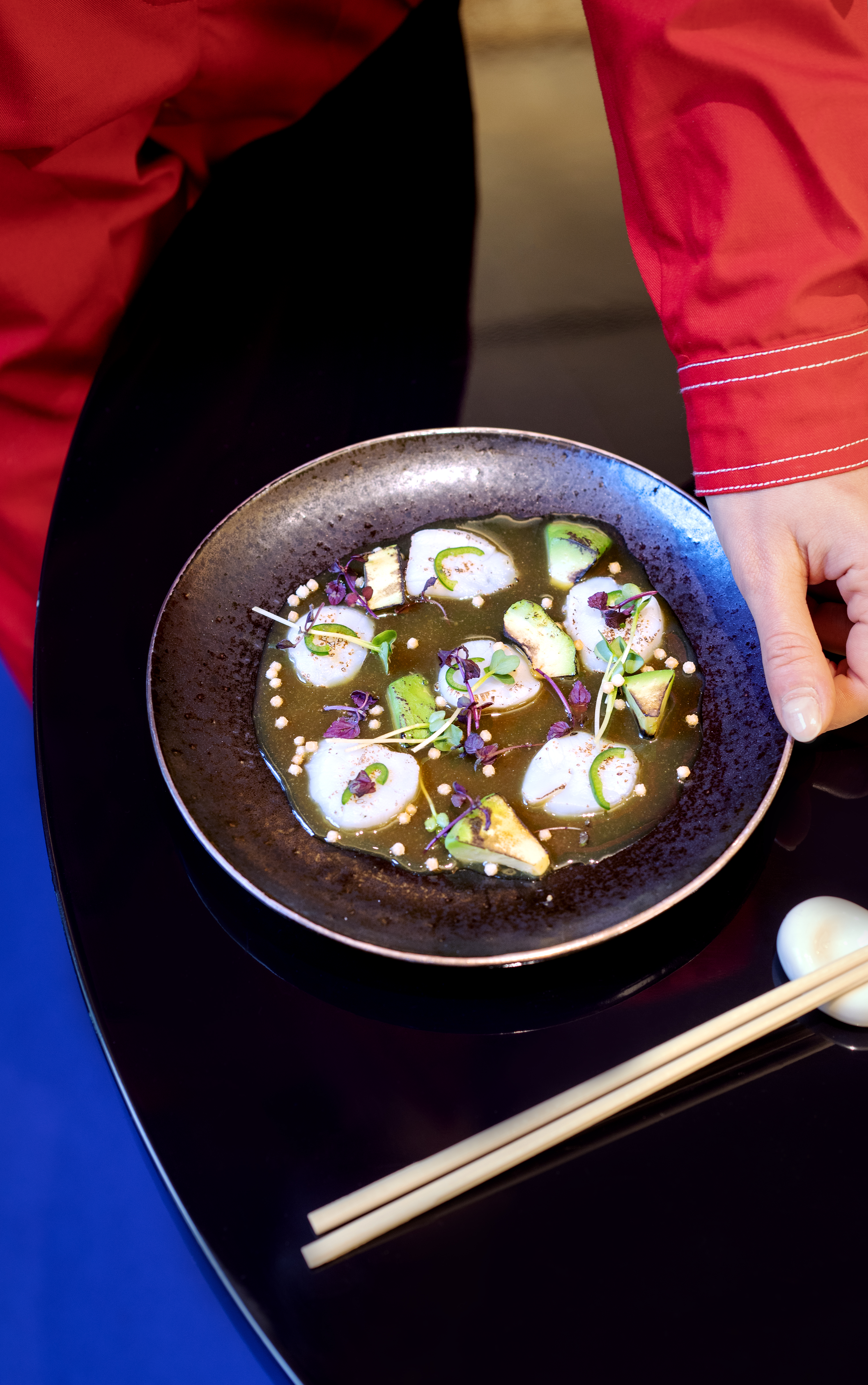 Chez RAN, l’artistique est au cœur du lieu. Les acteurs sont en salle et en cuisine. Le Chef Shuhei Yamashita, auparavant aux commandes du Kinugawa Vendôme de Blackcode, signe ici une carte alliant l’audace de la gastronomie