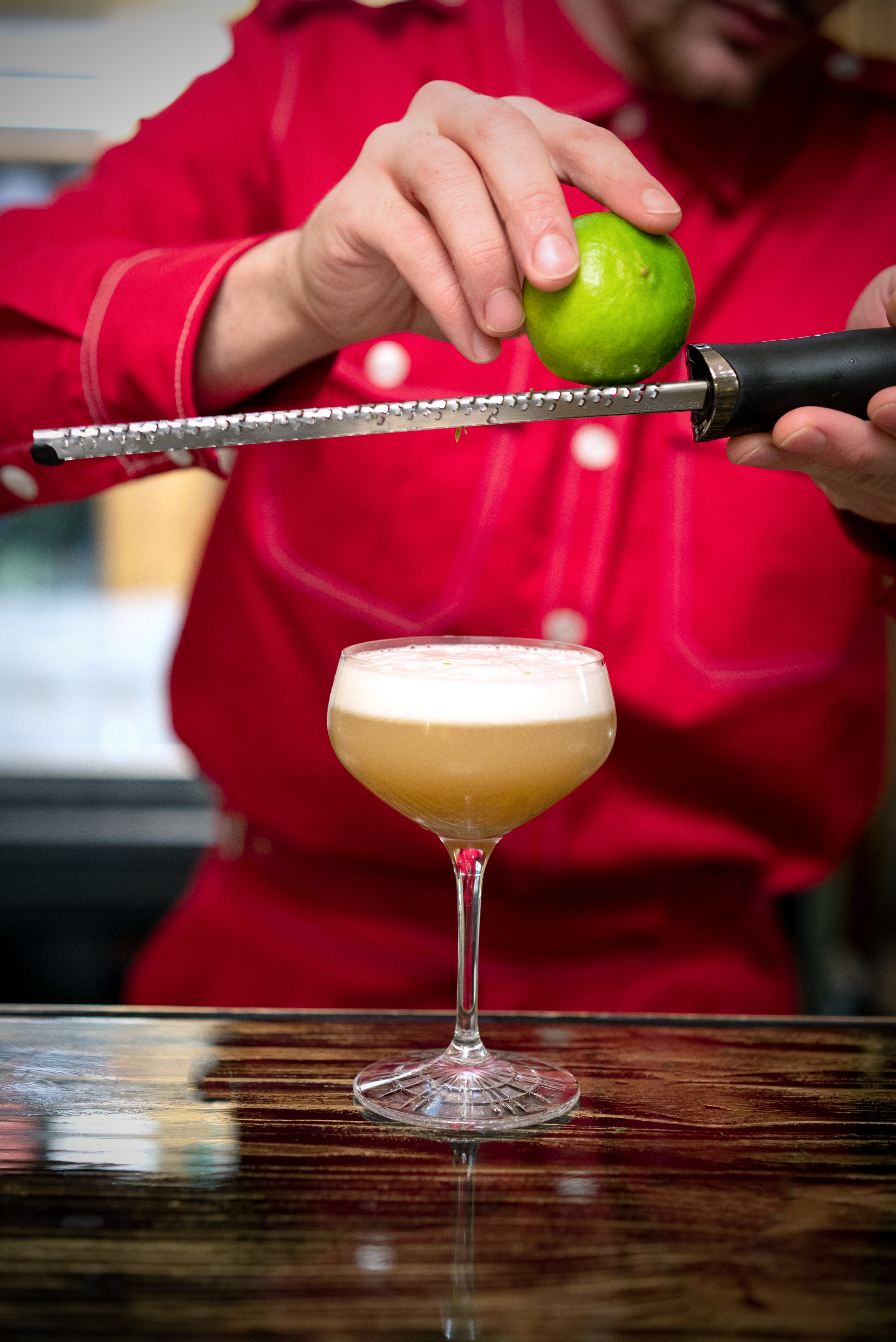 Au bar comme au restaurant, le service et les barmen vêtus de carmin nous éblouissent, comme un ballet incessant qui plonge les clients au cœur même du spectacle.