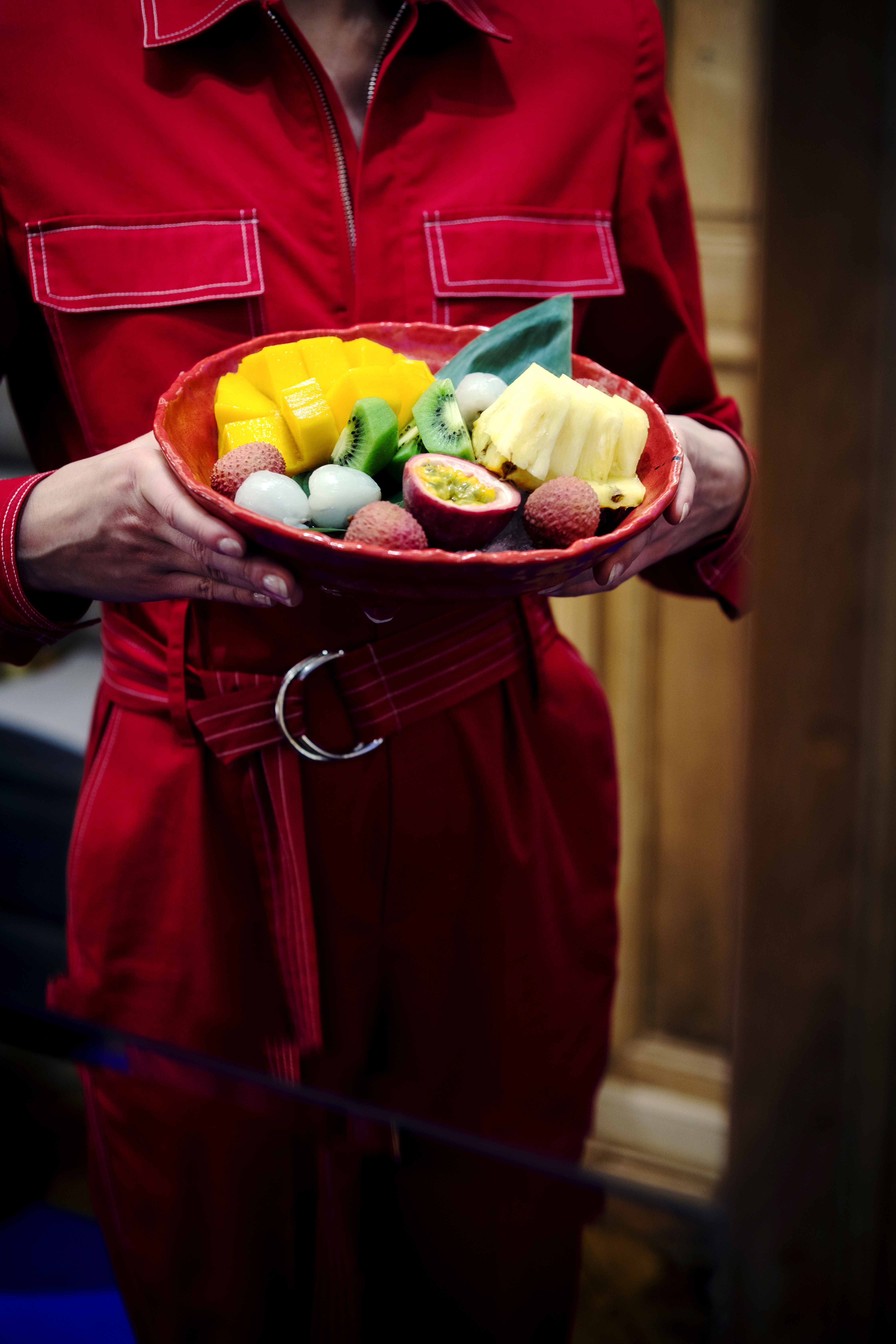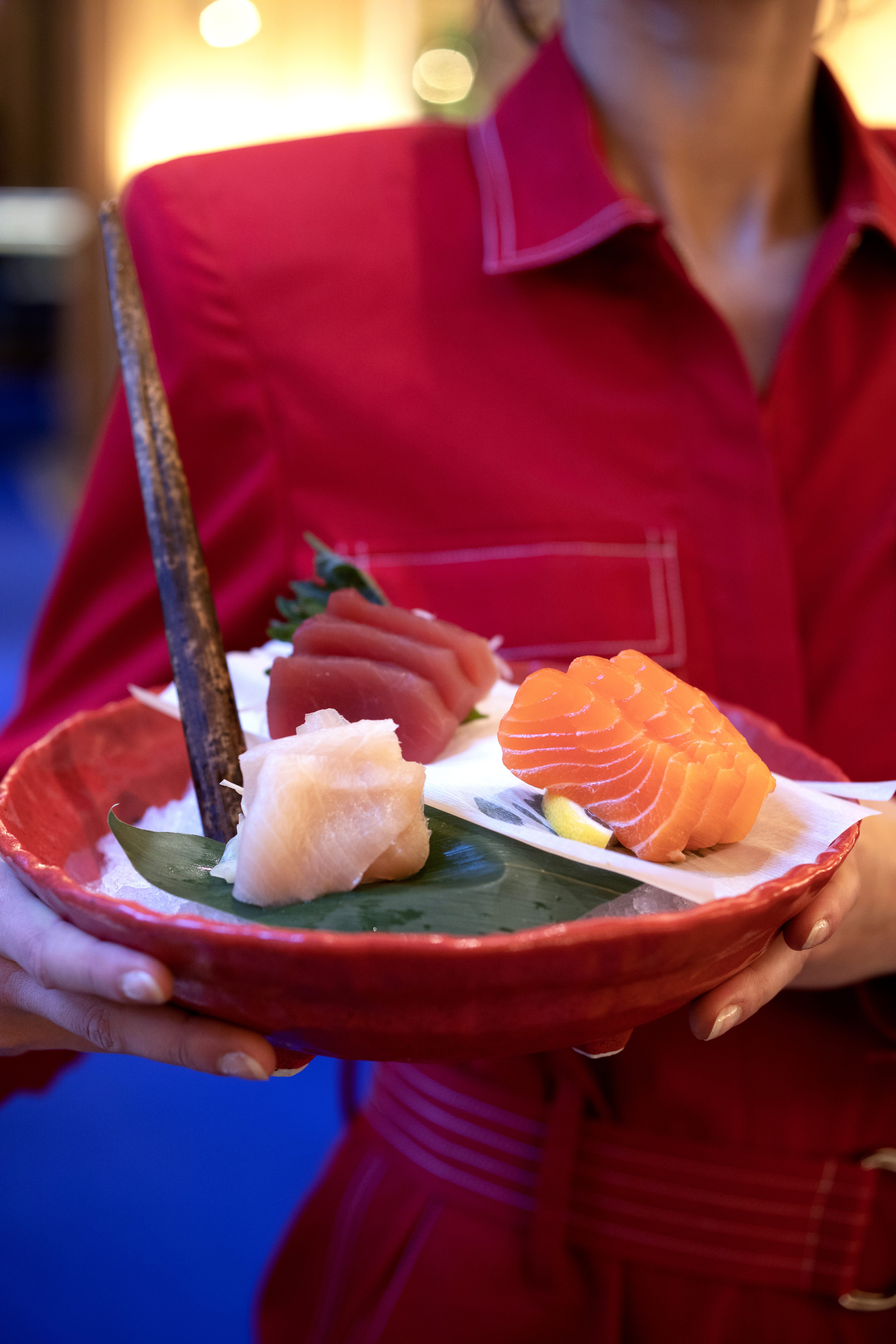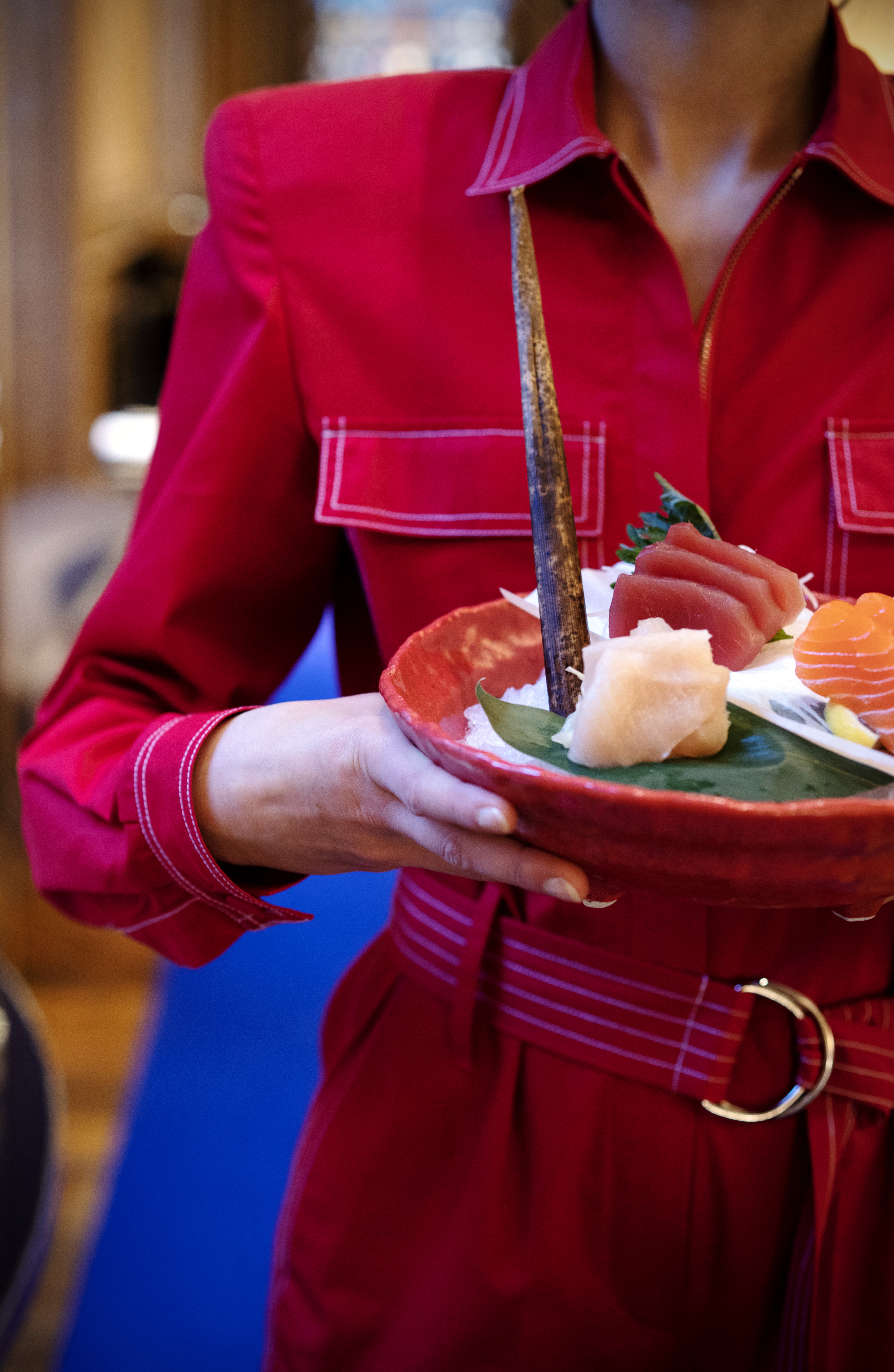 Pour le look en salle, RAN s’associe à «Nouvelle Affaire» et dévoile des tenues rouge intense, made in Paris. Une couleur significative dans la culture japonaise, considérée comme le symbole fondamental du principe de vie avec sa force, sa puissance et son éclat : une image d’ardeur et de beauté. Le personnel y défile comme une armée futuriste rappelant un film de science-fiction.