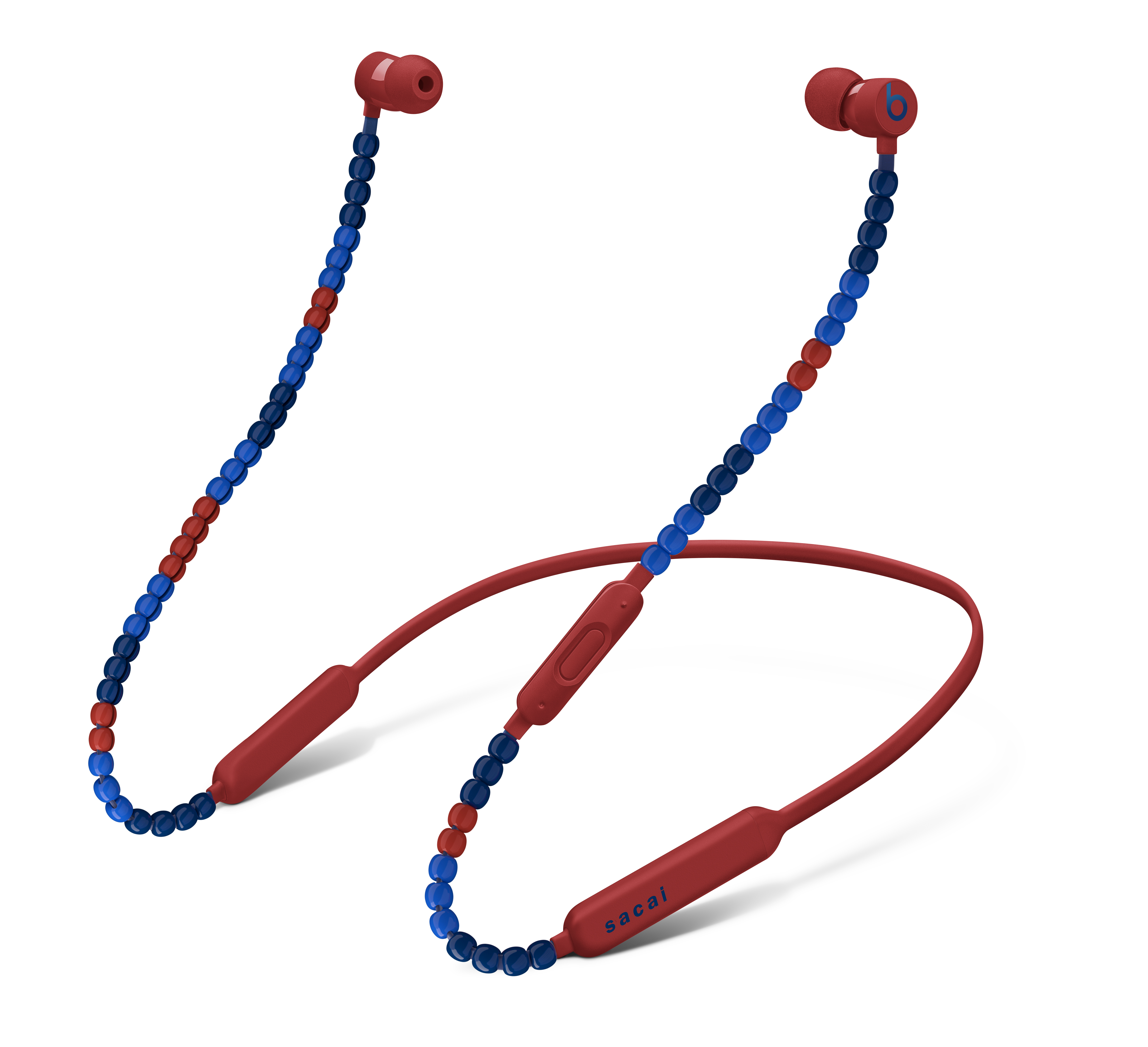 Beats by Dre et Sacai se sont unis afin de réinventer les écouteurs sans fil BeatsX dans trois modèles aux couleurs fantaisistes : Rouge Ardent, Blanc Absolu, et Noir Intense. La collection s’inspire de bijoux, et les combine avec l’utilité quotidienne des écouteurs en ajoutant des perles personnalisables qui peuvent y être jointes, pour épouser l’esthétique unique de l’utilisateur. Le résultat est donc un accessoire personnel ludique et individualisé, qui vous connecte avec la musique.