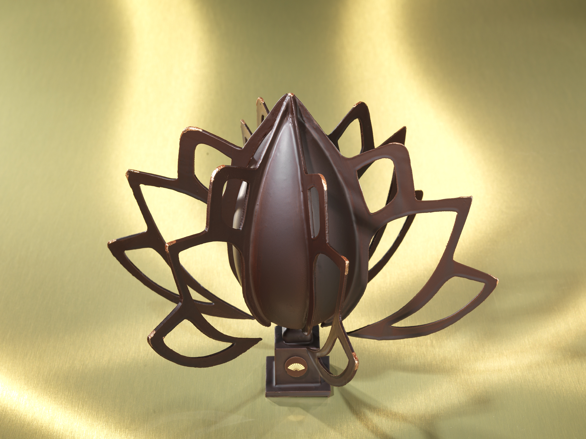 Pour Pâques 2019, Adrien Bozzolo a travaillé sur une sculpture en chocolat prenant la forme d’une fleur de camélia aux lignes épurées. Symbole de longévité, de fidélité et de bonheur dans le langage des fleurs, le camélia habille le jardin intérieur de l’hôtel et donne son nom à l’un des deux restaurants de l’hôtel dirigés par Thierry Marx. Composé d’un chocolat noir Grand Cru 70%, l’œuf de Pâques révèle à l’intérieur de sa coque des mendiants au chocolat noir, amandes, noisettes, graines de courge et raisins secs et des palets fondants au chocolat au lait Jivara 40%.