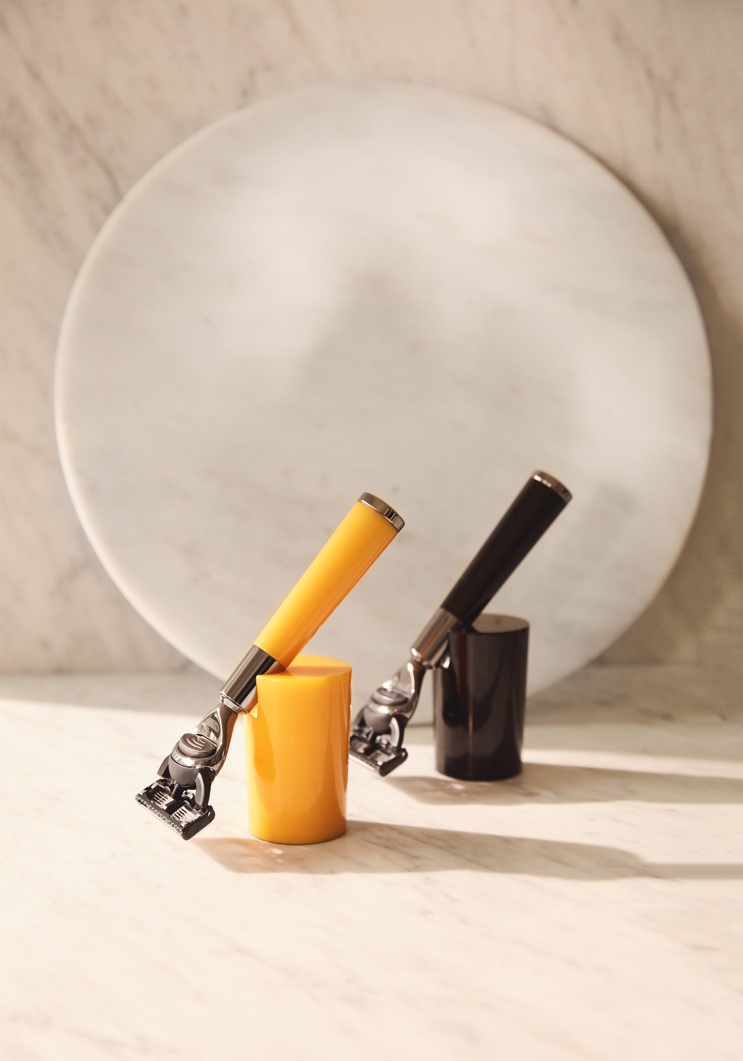 Le rasoir est disponible en deux versions chromatiques sophistiquées, jaune Parme ou noire.
