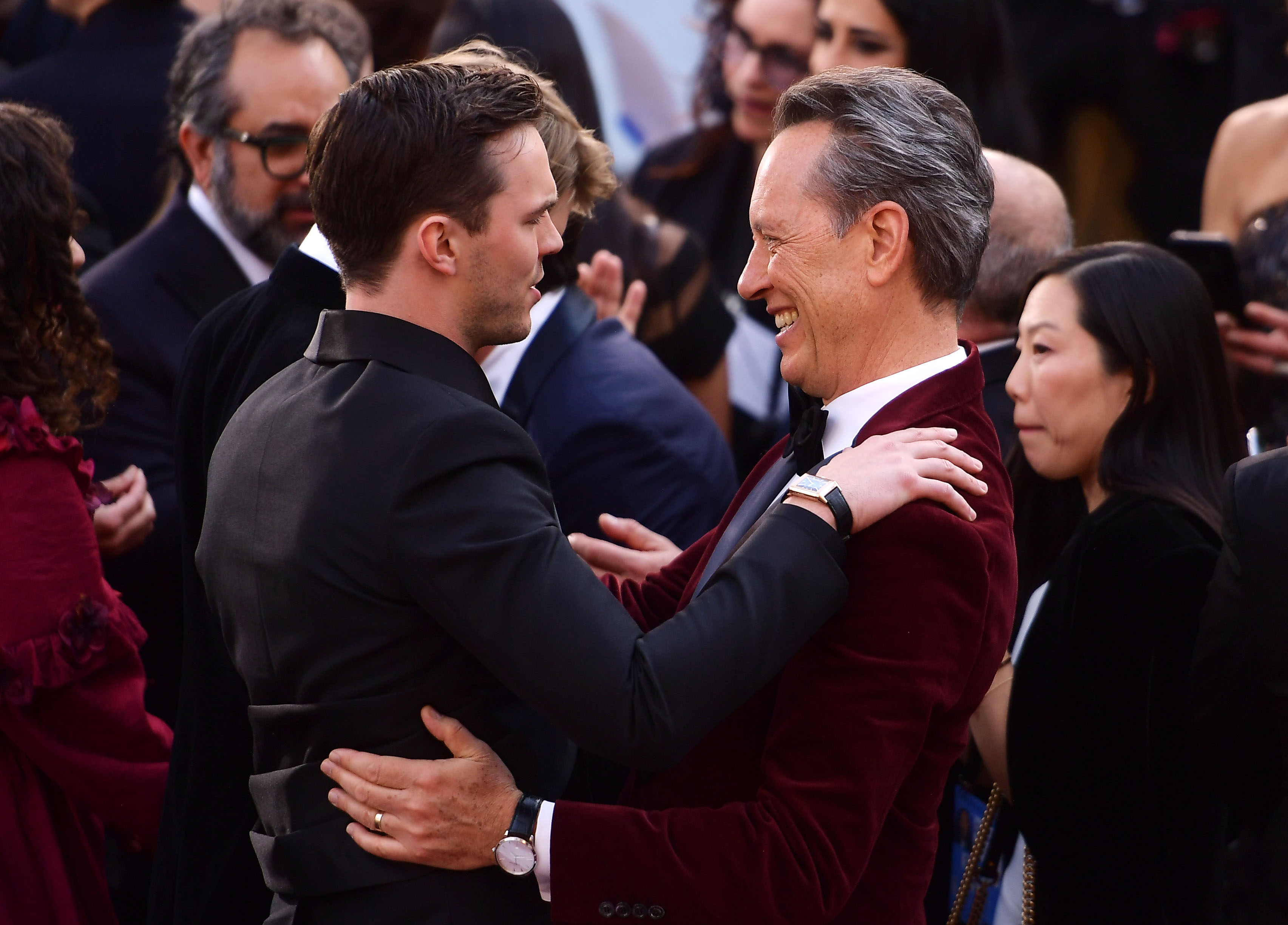 HOLLYWOOD, CALIFORNIA – FEBRUARY 24: (L-R) Nicholas Hoult and Richard E. Grant attend the 91st Annual Academy Awards at Hollywood and Highland on February 24, 2019 in Hollywood, California. (Photo by Matt Winkelmeyer/Getty Images)