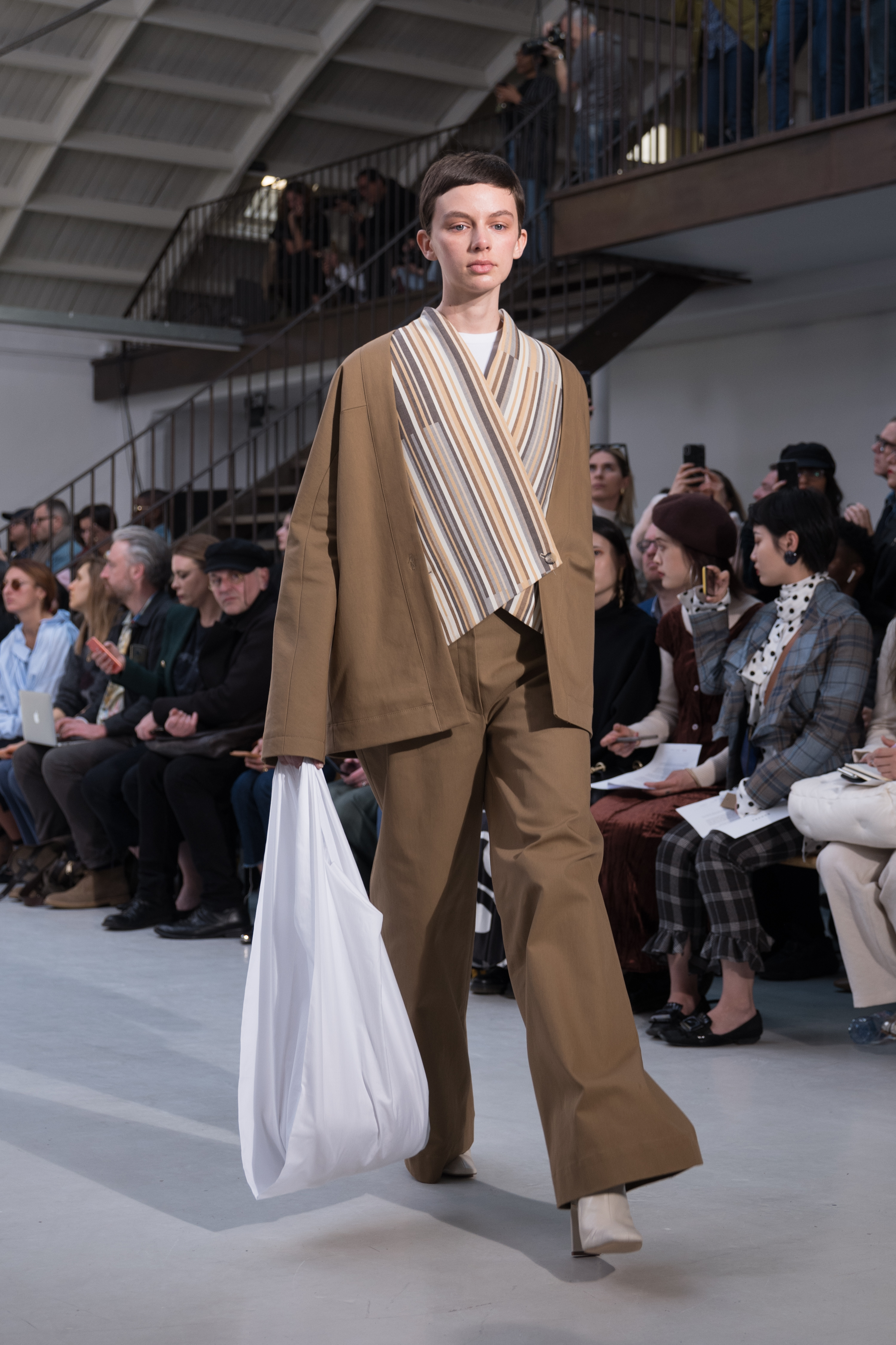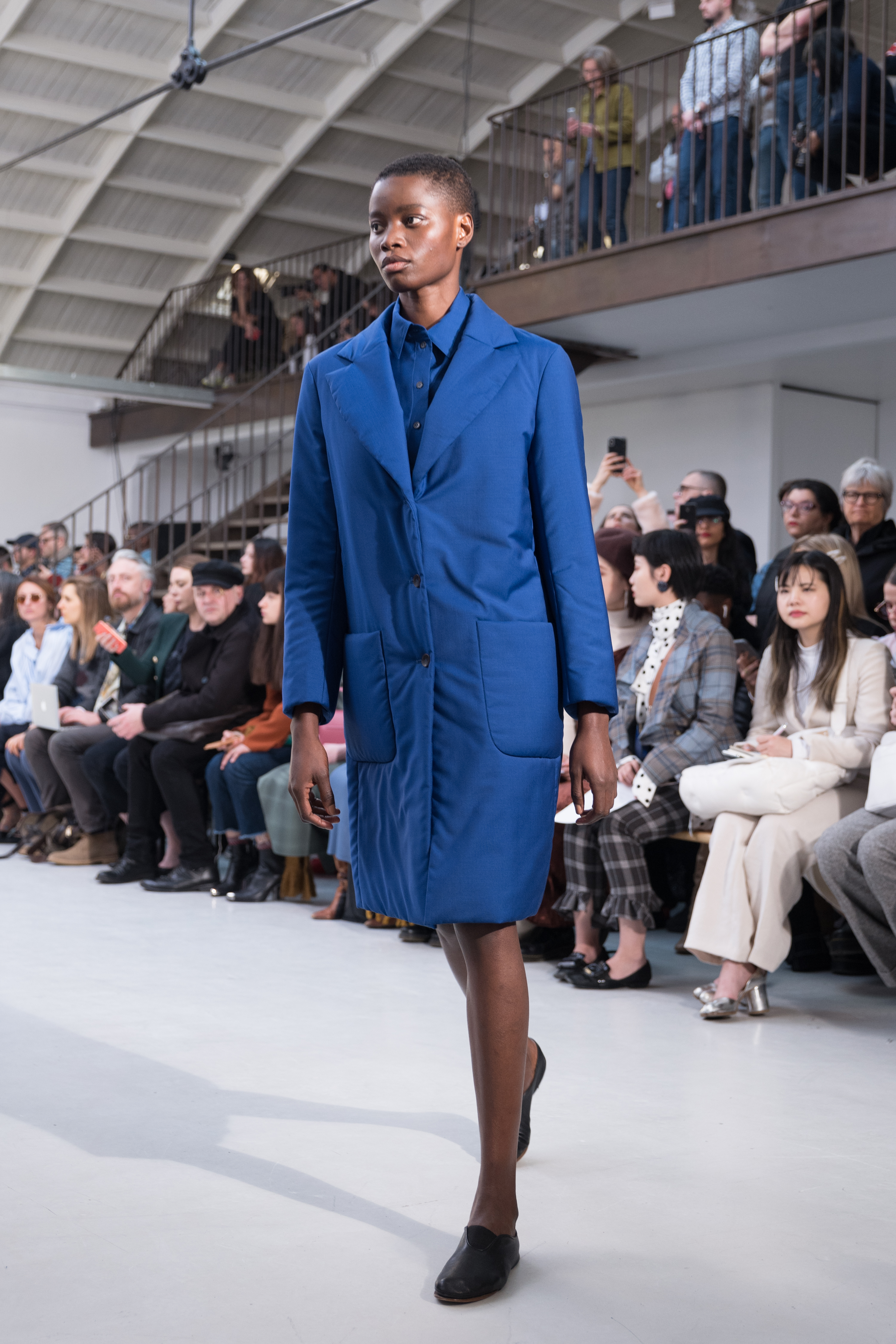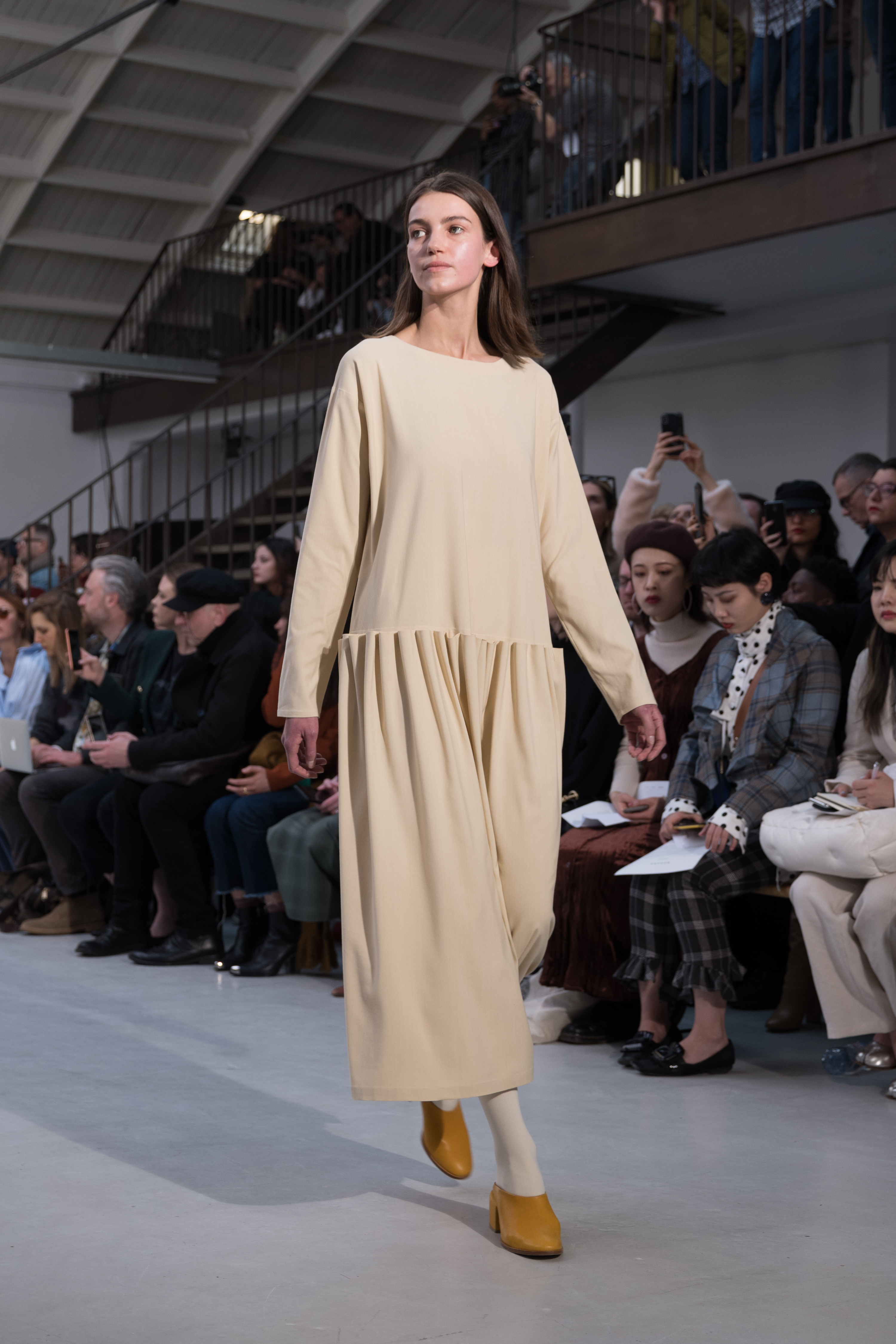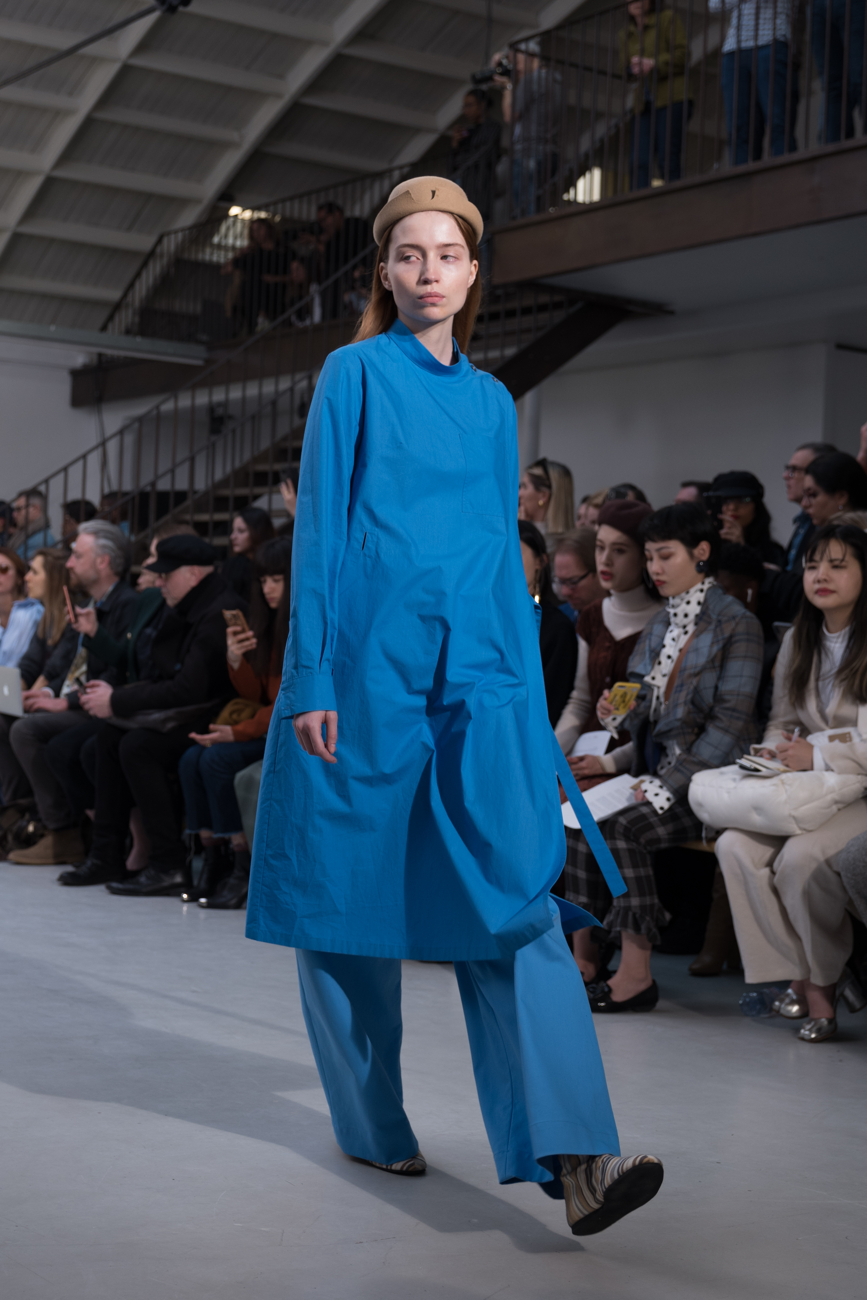 The artist’s functional working attire sparks inspiration for the season in smock shirting, lab coats and other workwear, while the show pieces are curated to harness a bolder and more polished feel, incorporating tailored, sleek and structured pieces. Channelling the spirit of Hannah Hoch and Emilie Flöge, the debut of the collection marks the Presentation of an accomplished, sophisticated, strong woman. Finally emerging from the studio and stepping confidently into the gallery, she introduces her work and herself to the world.