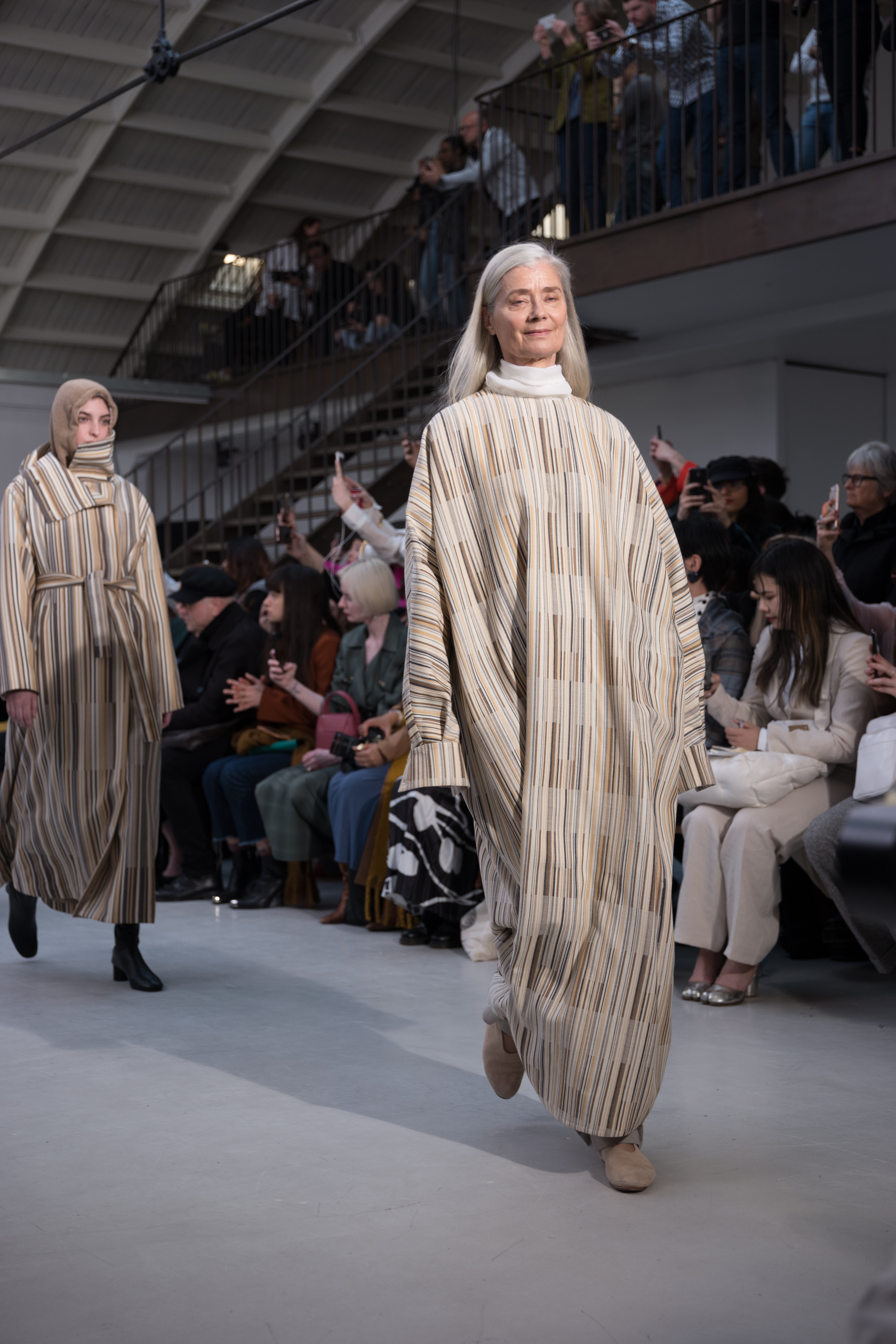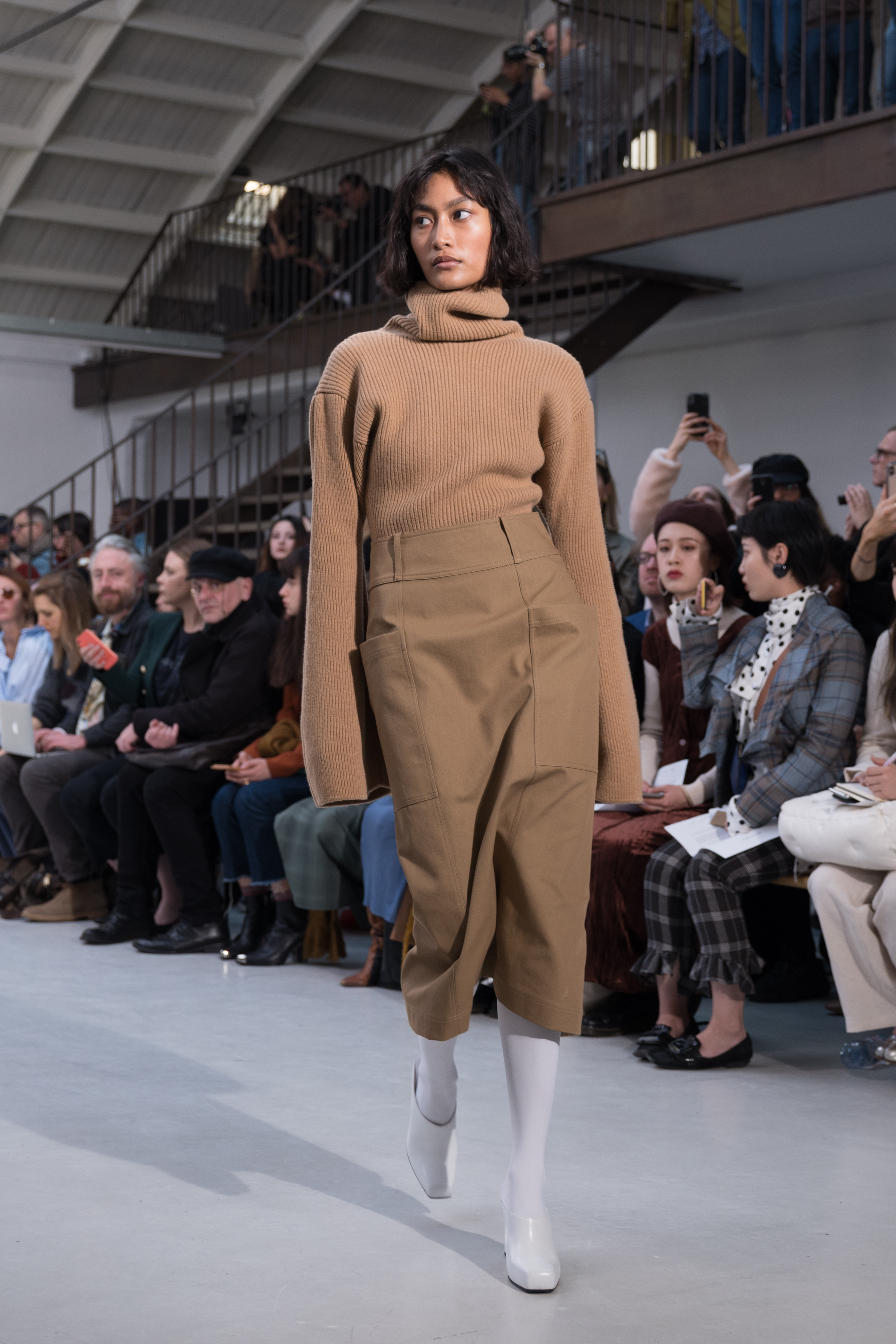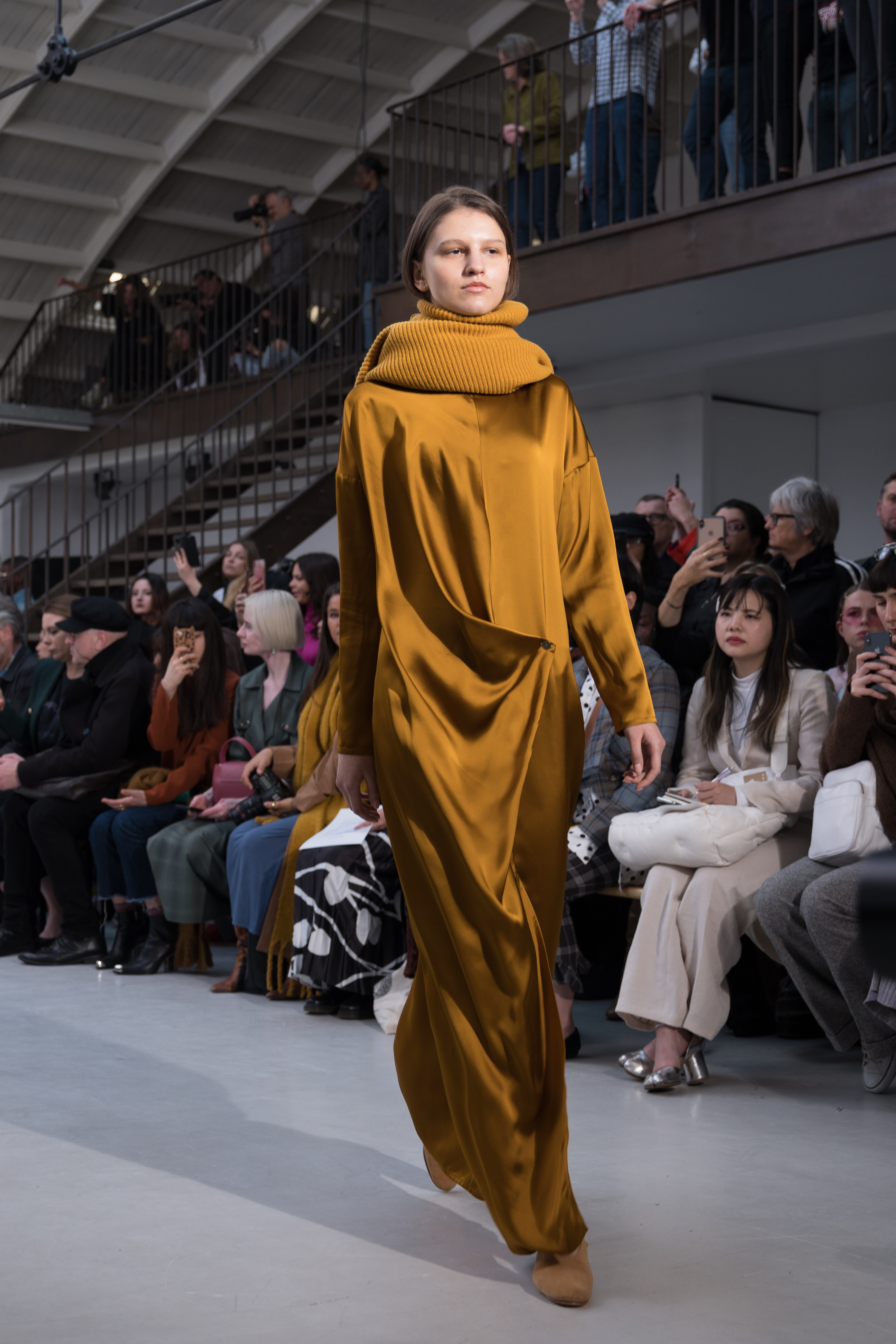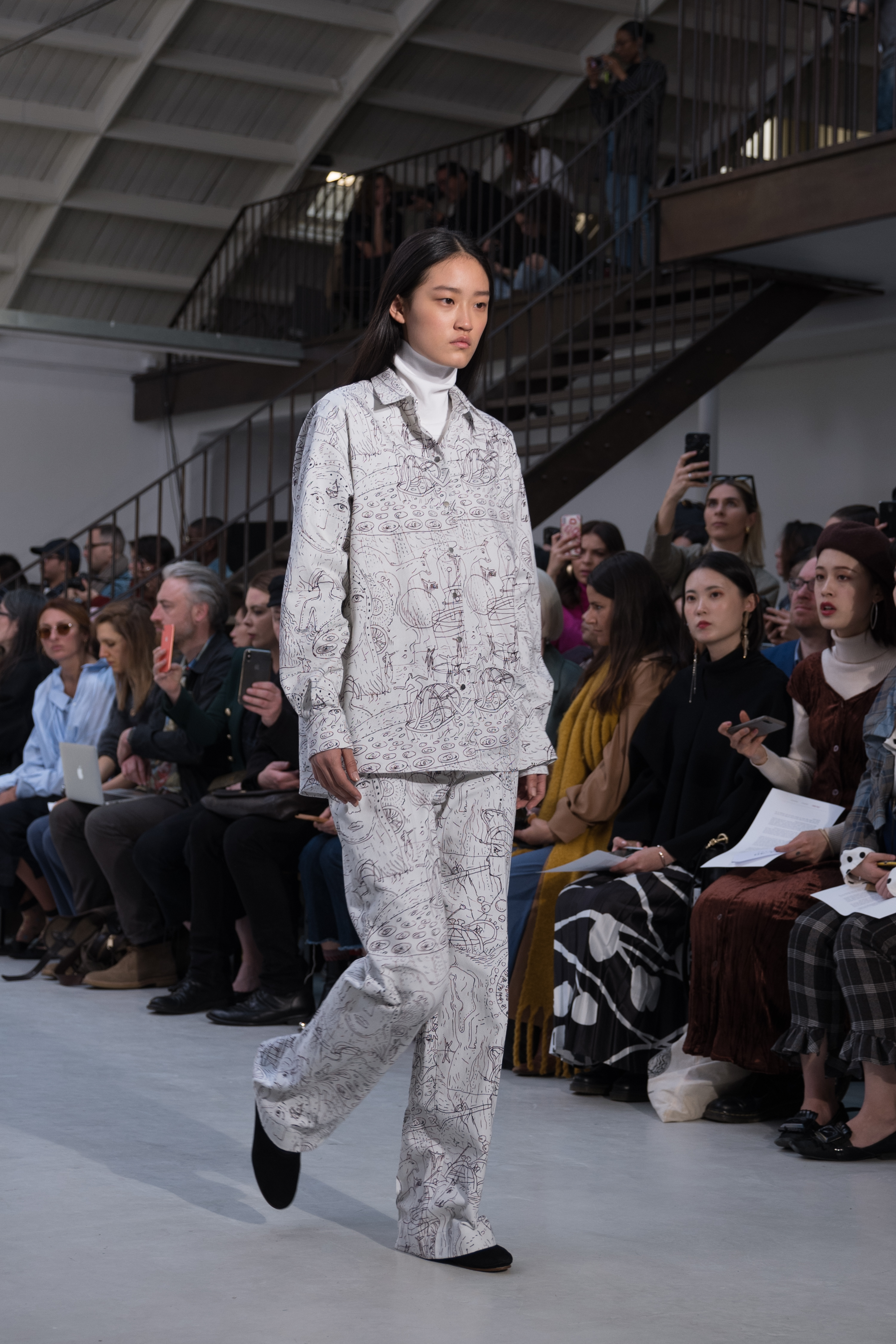 The artist’s functional working attire sparks inspiration for the season in smock shirting, lab coats and other workwear, while the show pieces are curated to harness a bolder and more polished feel, incorporating tailored, sleek and structured pieces. Channelling the spirit of Hannah Hoch and Emilie Flöge, the debut of the collection marks the Presentation of an accomplished, sophisticated, strong woman. Finally emerging from the studio and stepping confidently into the gallery, she introduces her work and herself to the world.