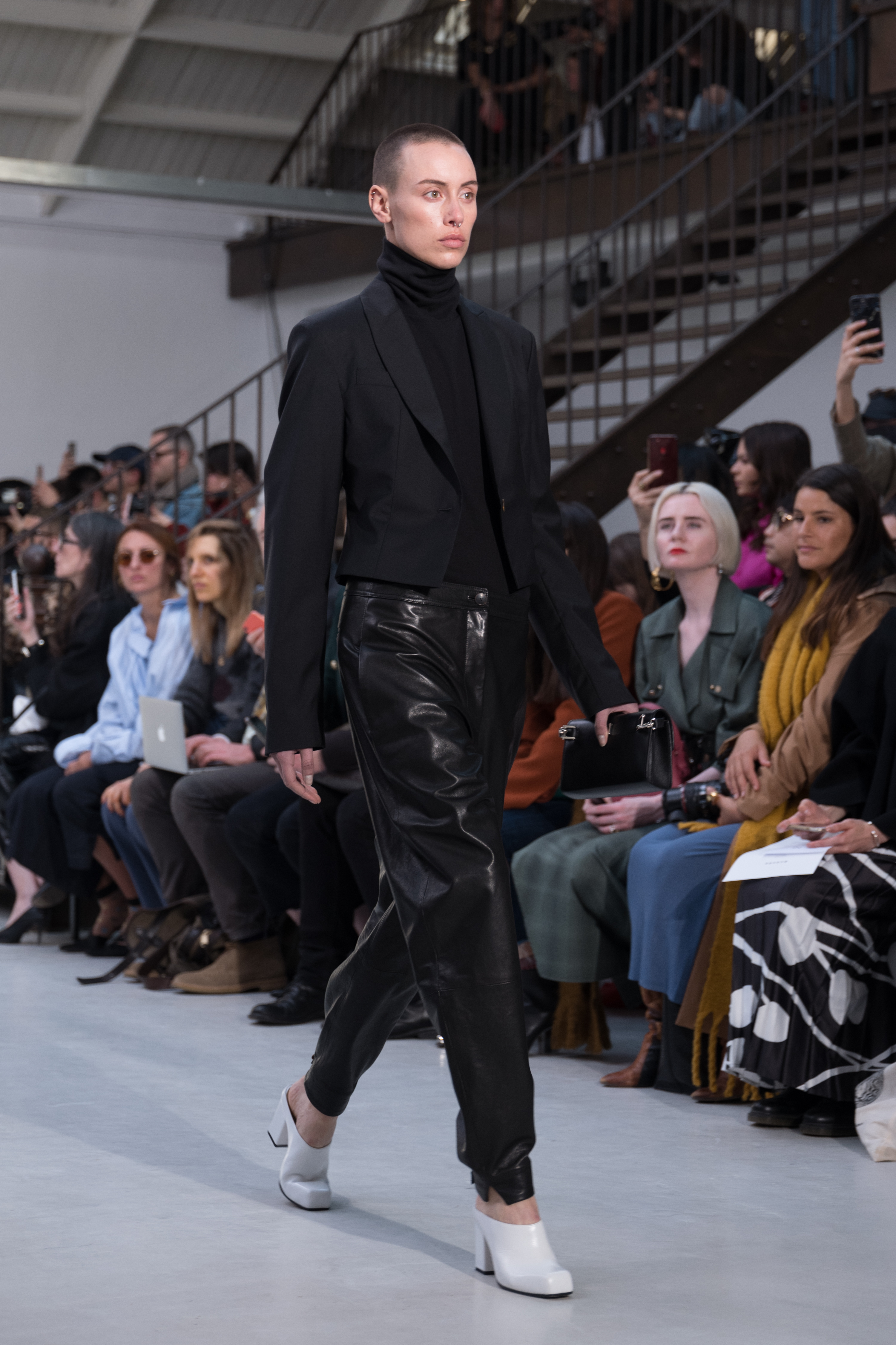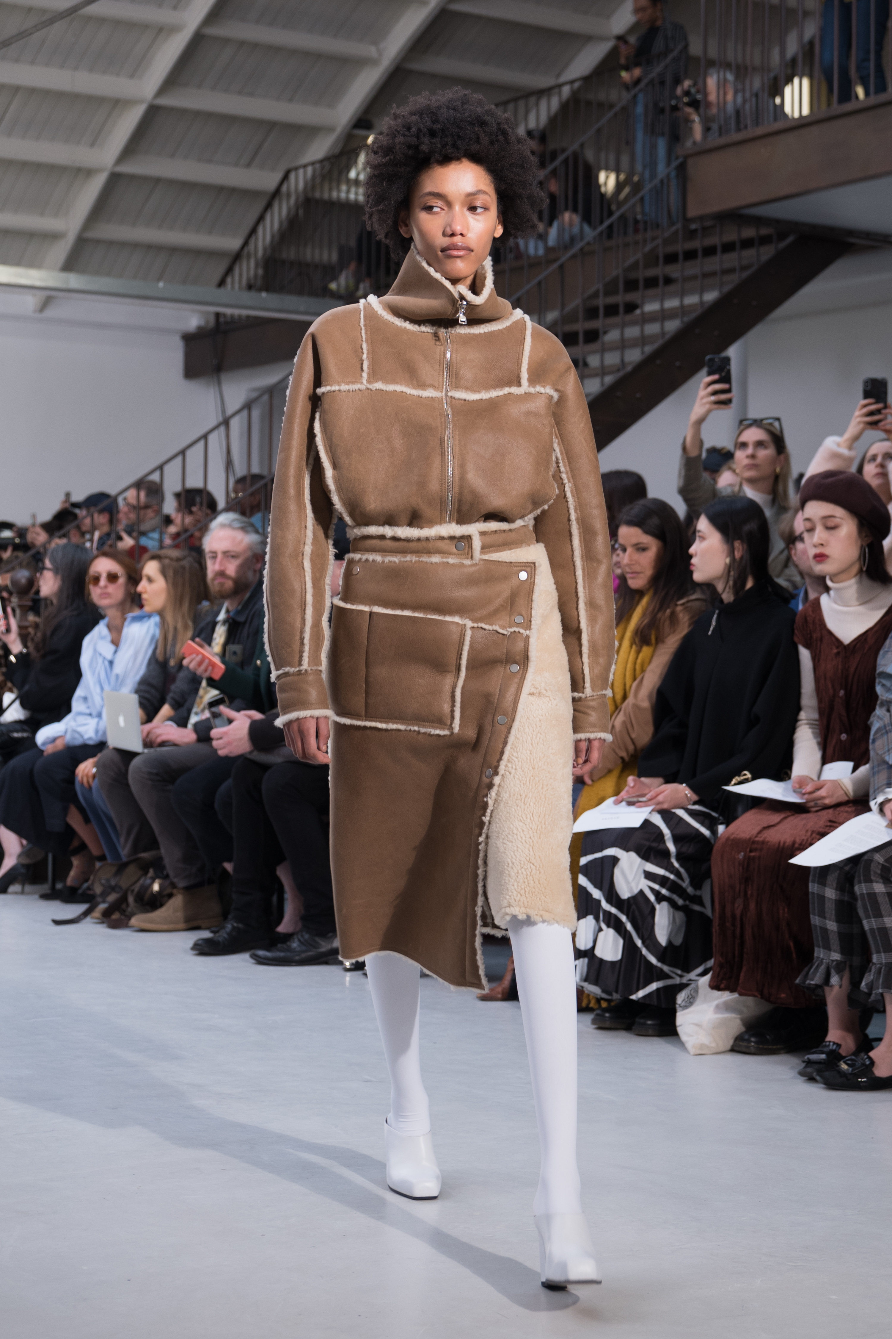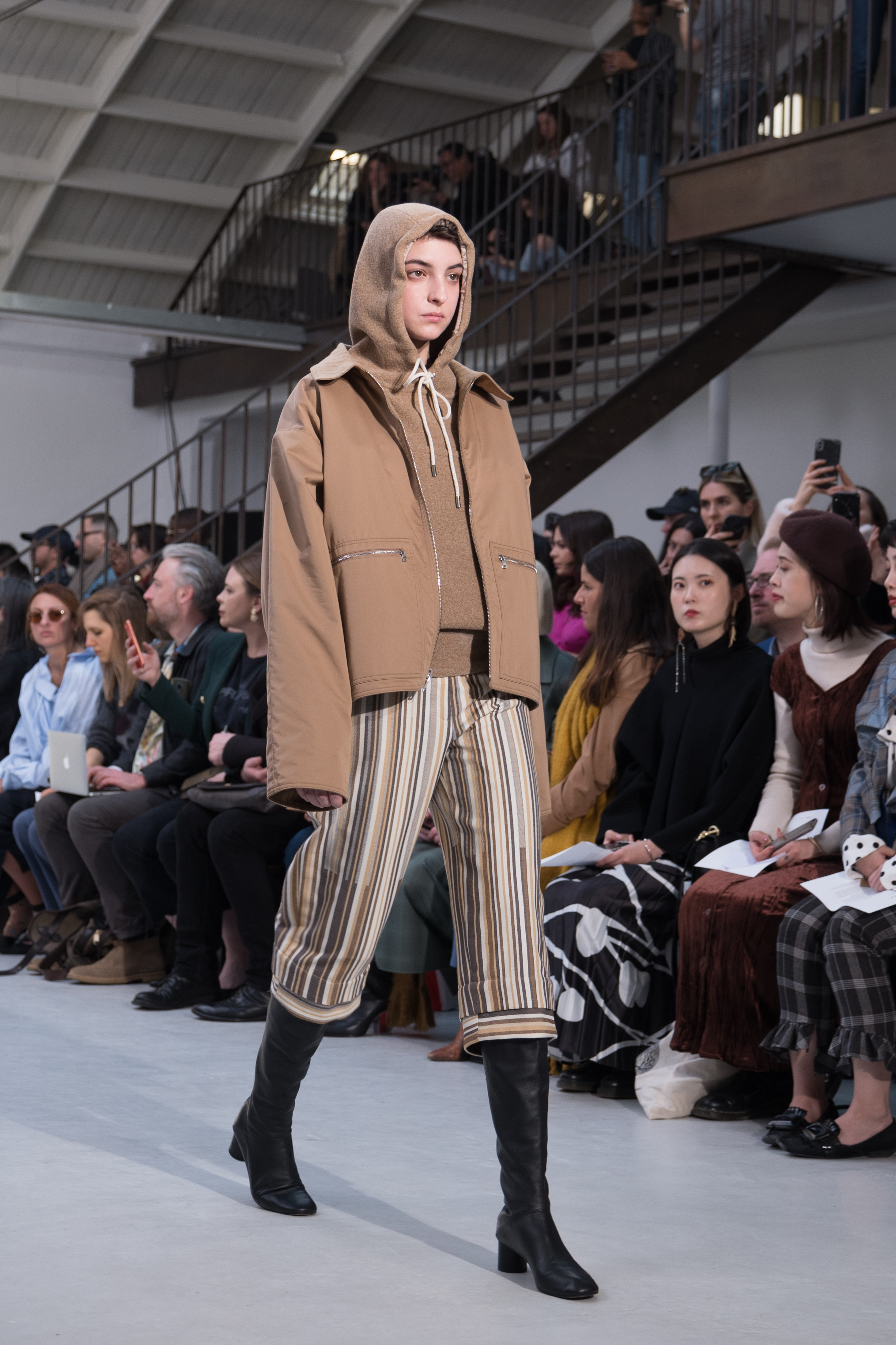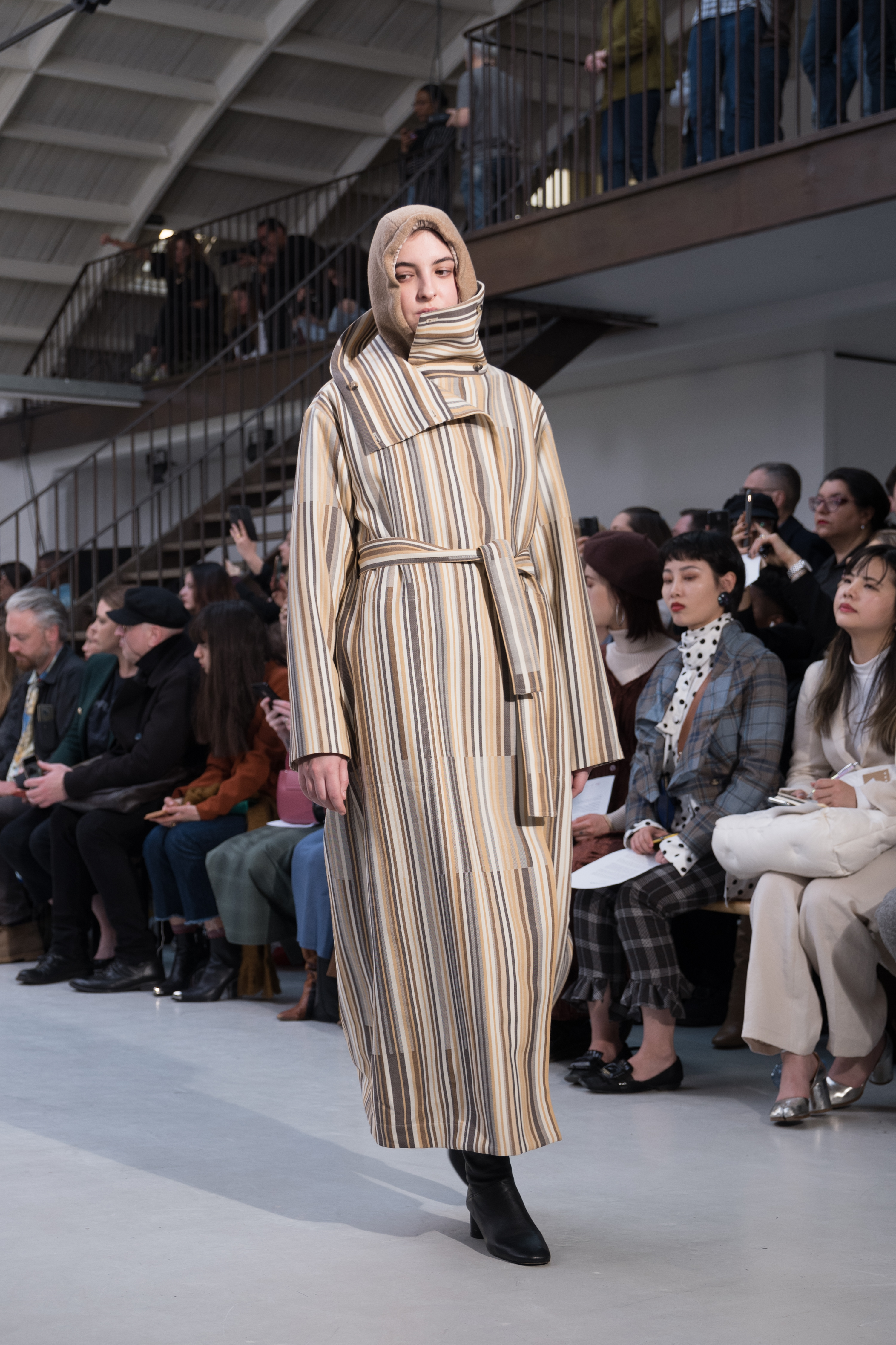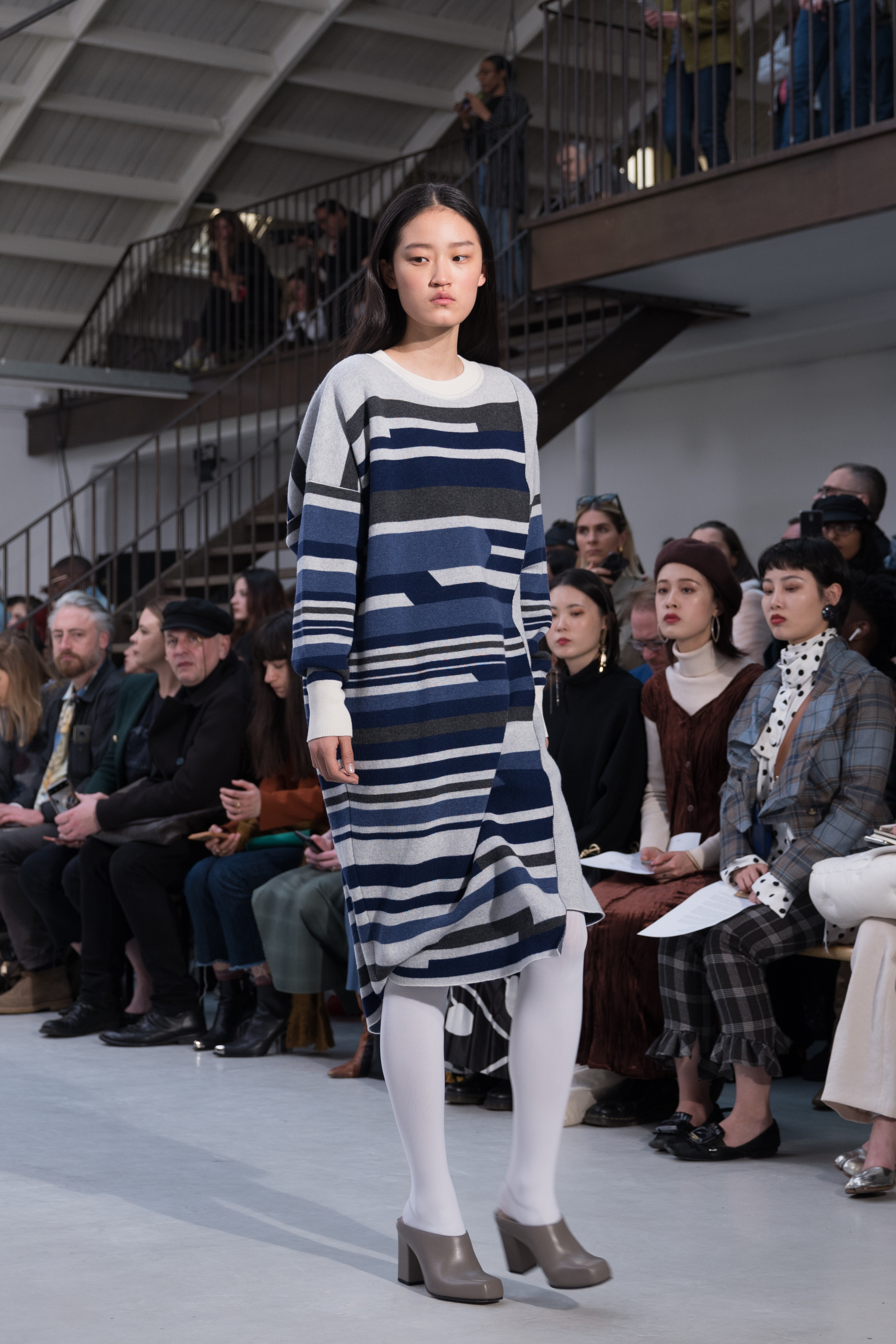 Made exclusively for NEHERA in its native Slovakia, a woven fabric reminiscent of Annie Albers’ tapestries can be found across the collection, including on knee-high and mid-calf boots. Colourful graphics are placed on panelled jacquard knitwear and printed viscose pieces. This season’s colour evolves from last collections palette of blues, browns and honey, bringing with it rich shades of aubergine, vigorous orange, light blue denim and steel grey.