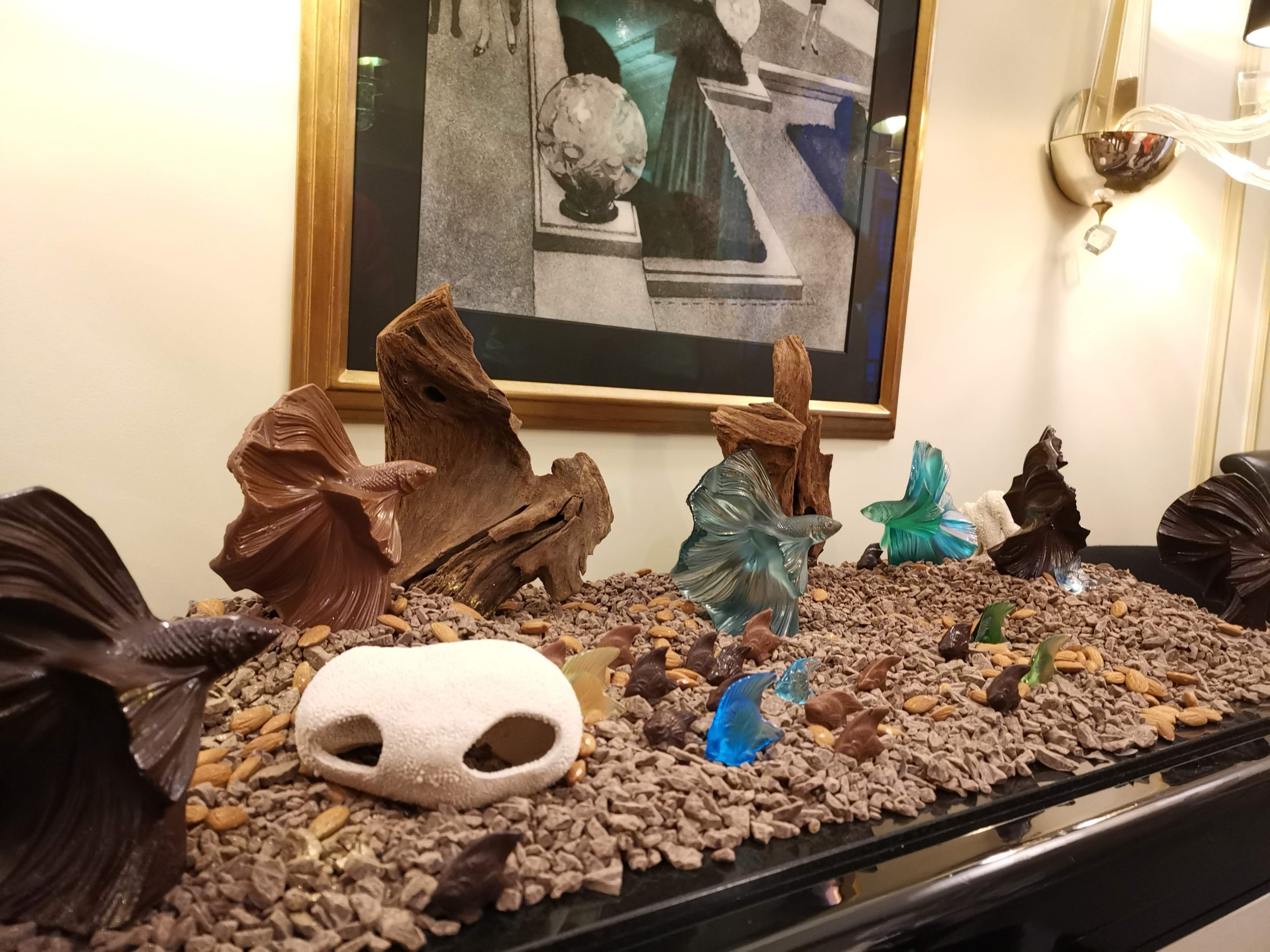 En cette année anniversaire des 90 ans du Prince de Galles, les deux signatures gastronomiques de l’établissement se sont associées à la célèbre Maison Lalique, fleuron de la cristallerie française, afin d’imaginer une création chocolatée. Ces deux maisons symboles de l’Art Décoratif, ont puisé l’inspiration dans la nouvelle collection Aquatique signée Lalique.