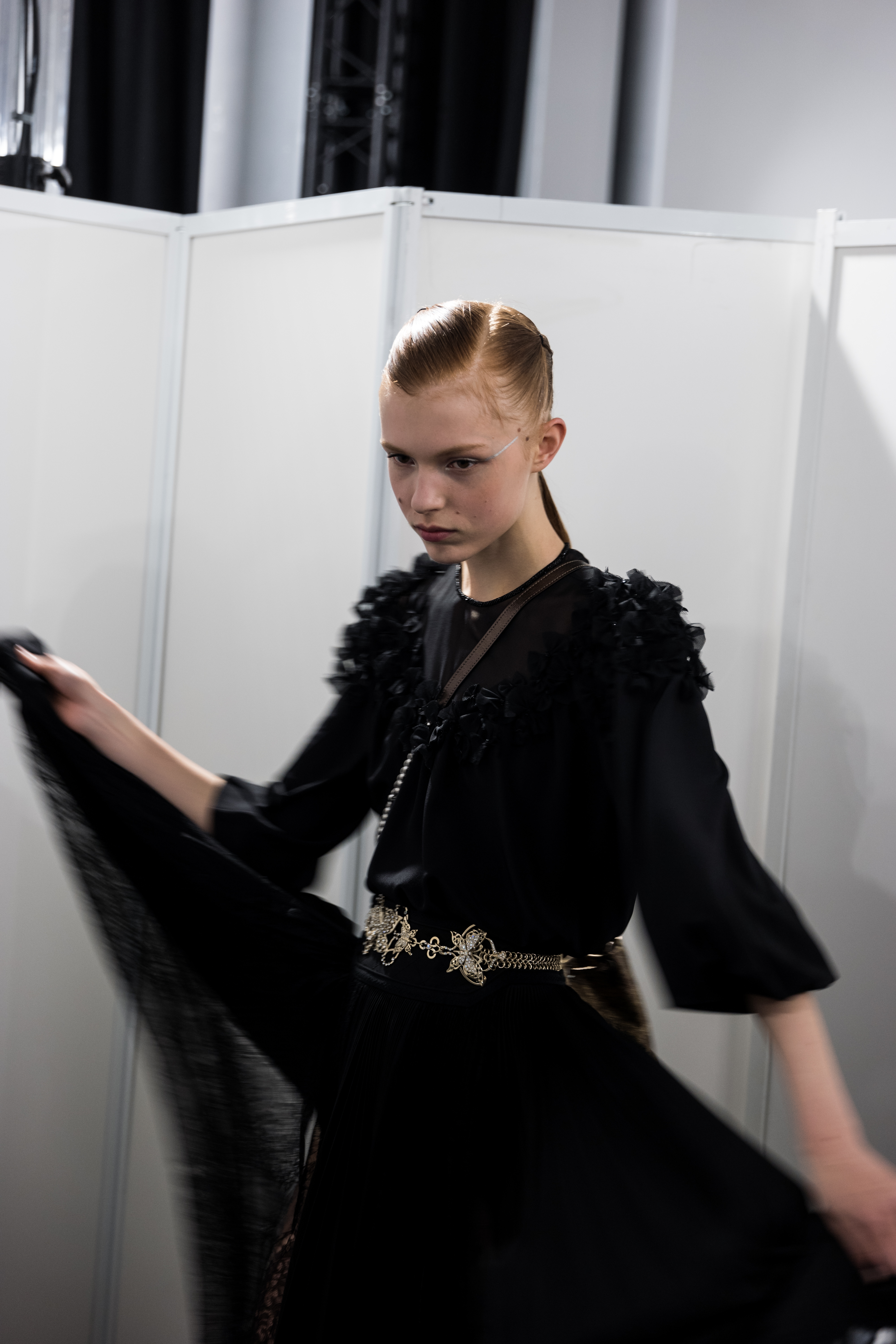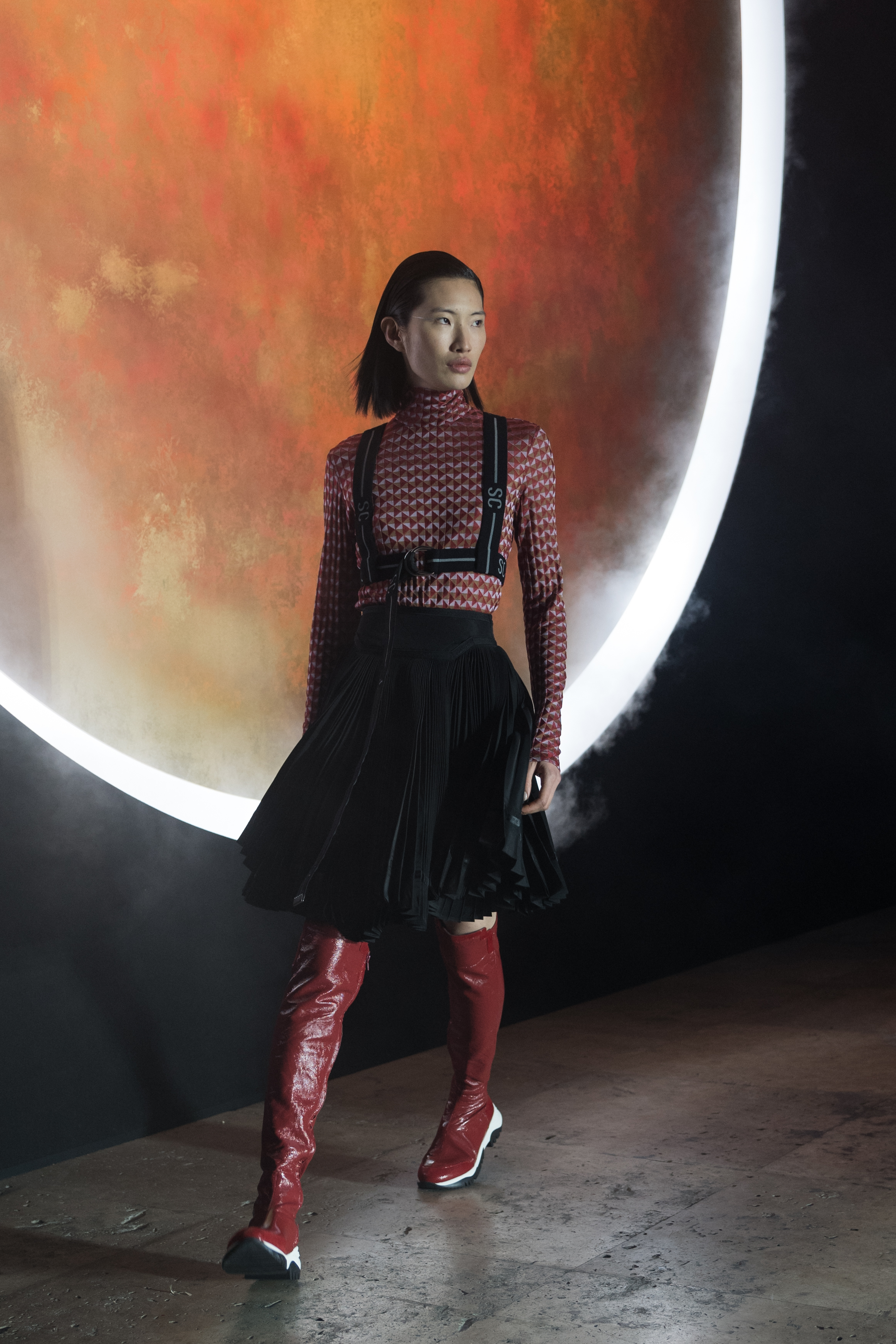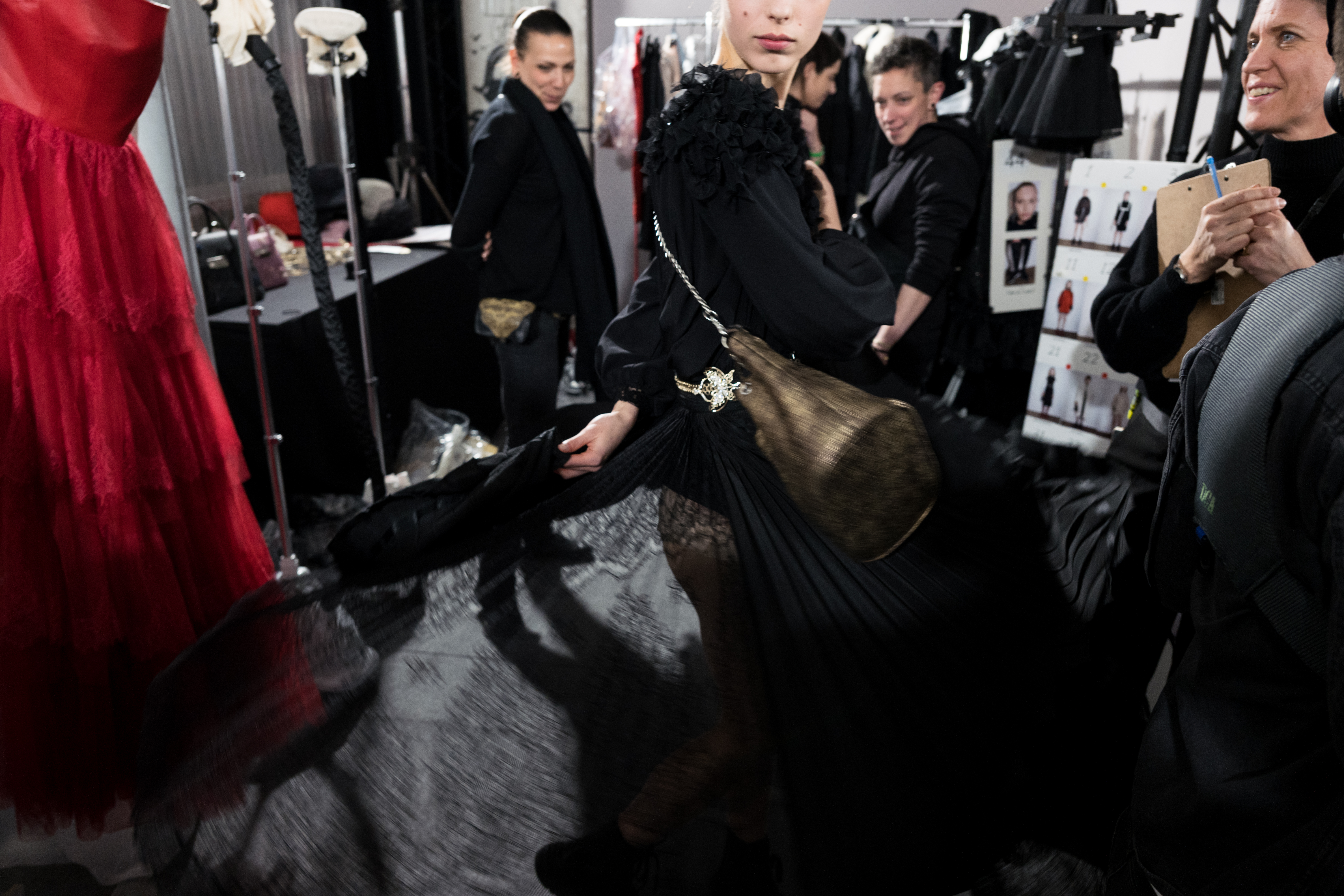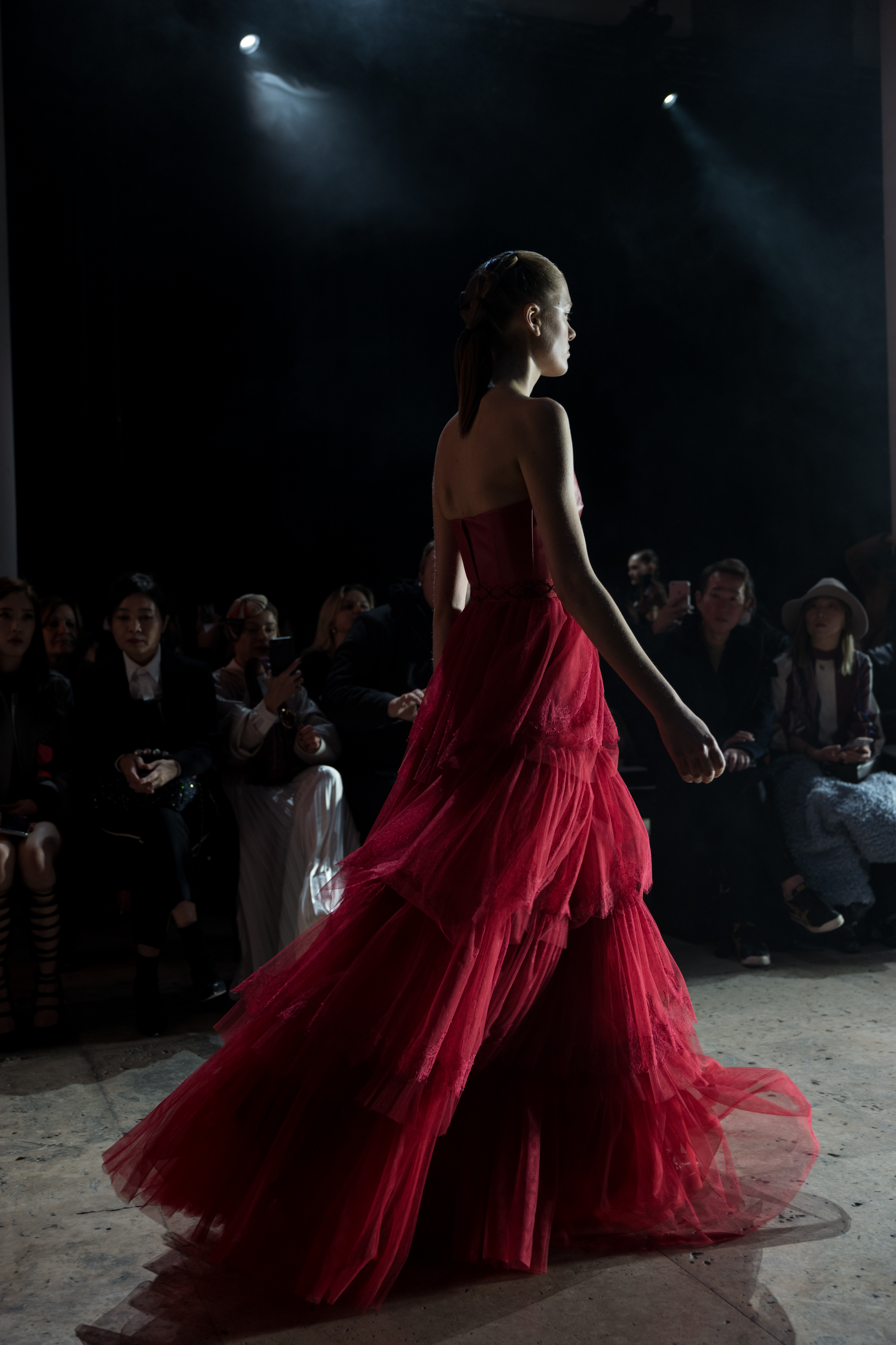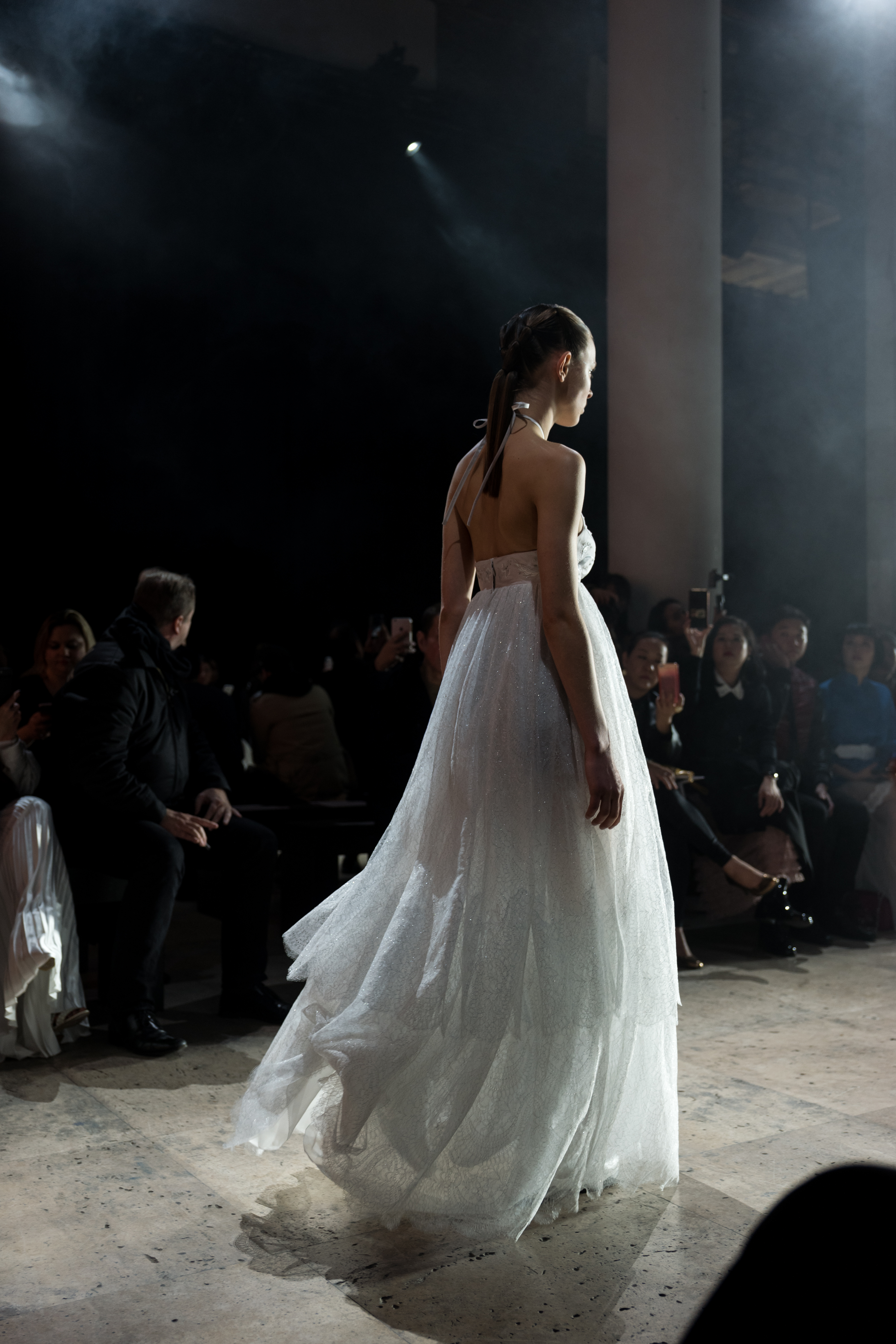 La Mythologie s’apprivoise ici à la manière d’un discours, et l’attitude devient la nouvelle arme absolue du style. Le concept « deep affection » adopté par Shiatzy Chen puise son inspiration dans l’image traditionnelle du porte-bébé des femmes Hmong Miao du sud-ouest de la Chine, exquises créatrices de textile. Chaque point et chaque fil de la broderie représentent l’attache affectueuse d’une mère pour son enfant.