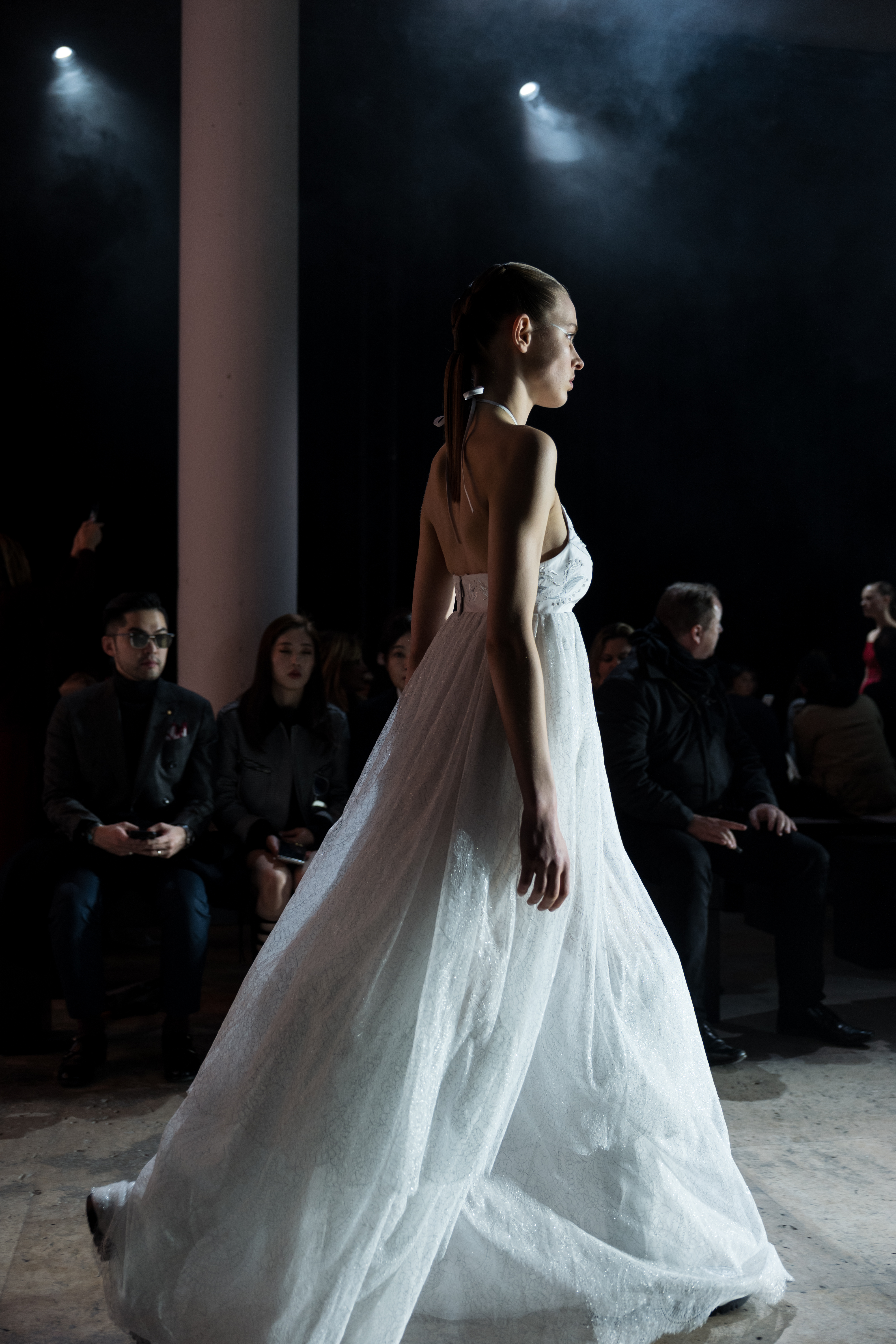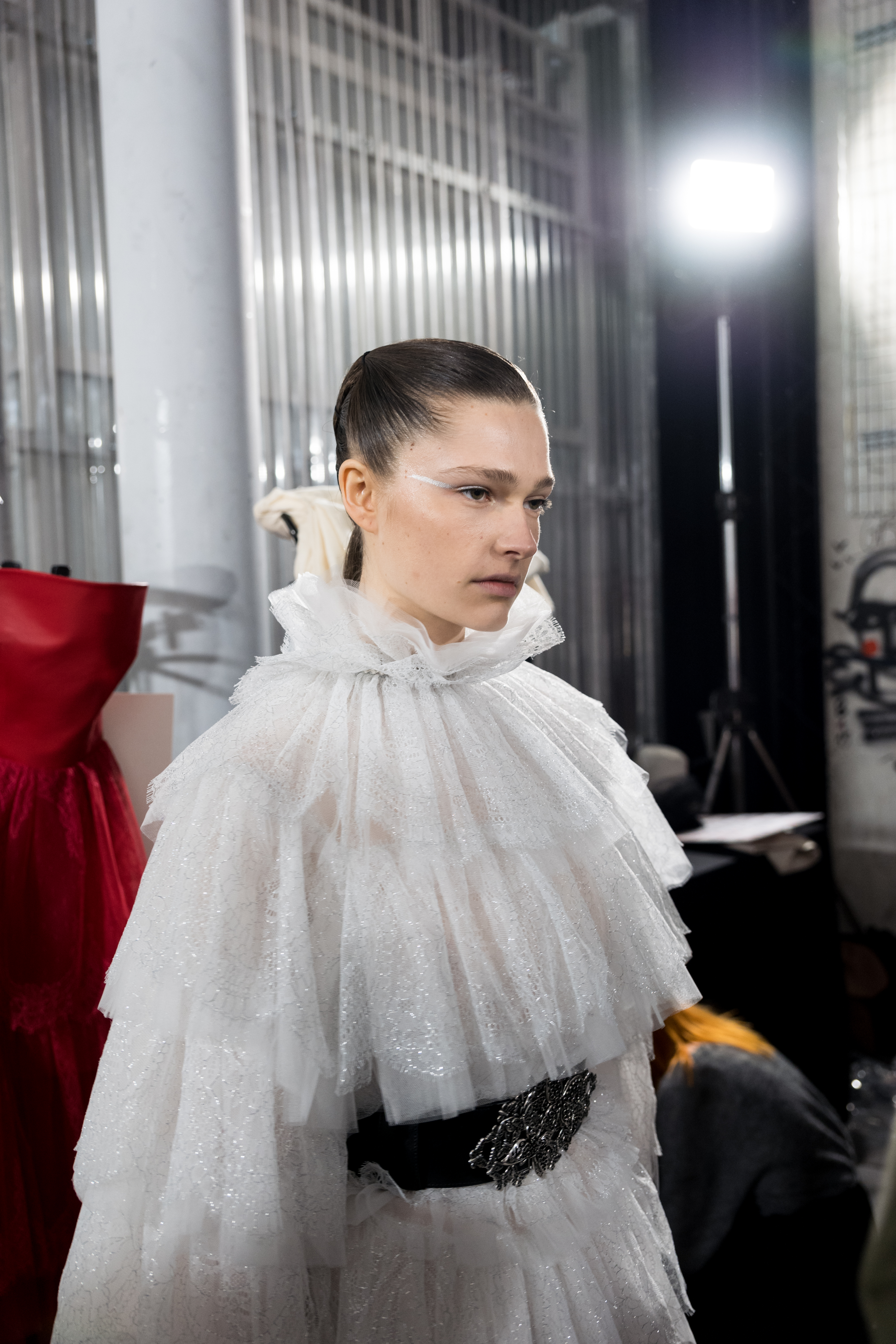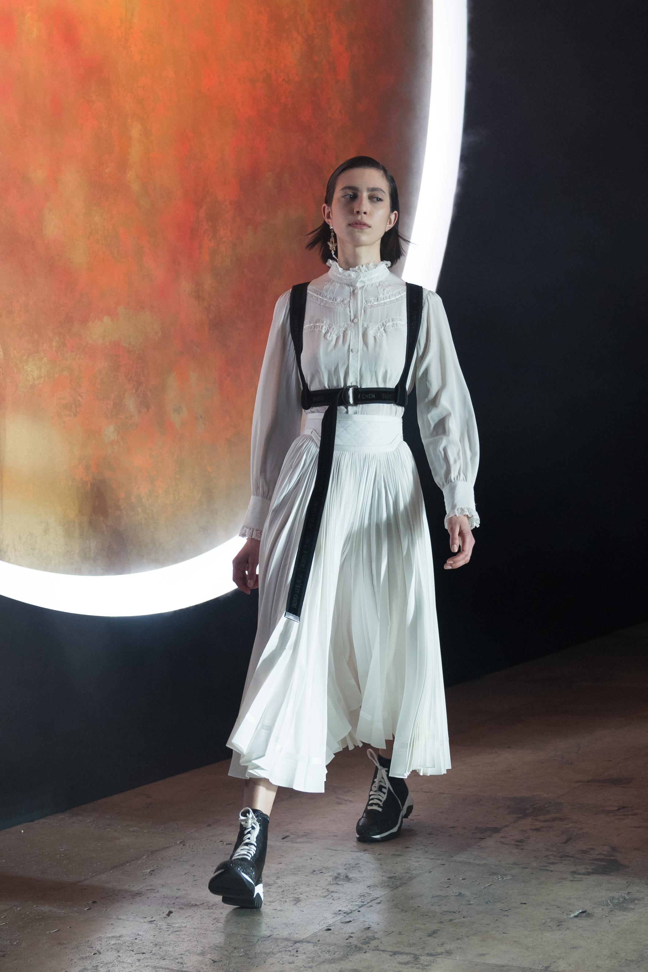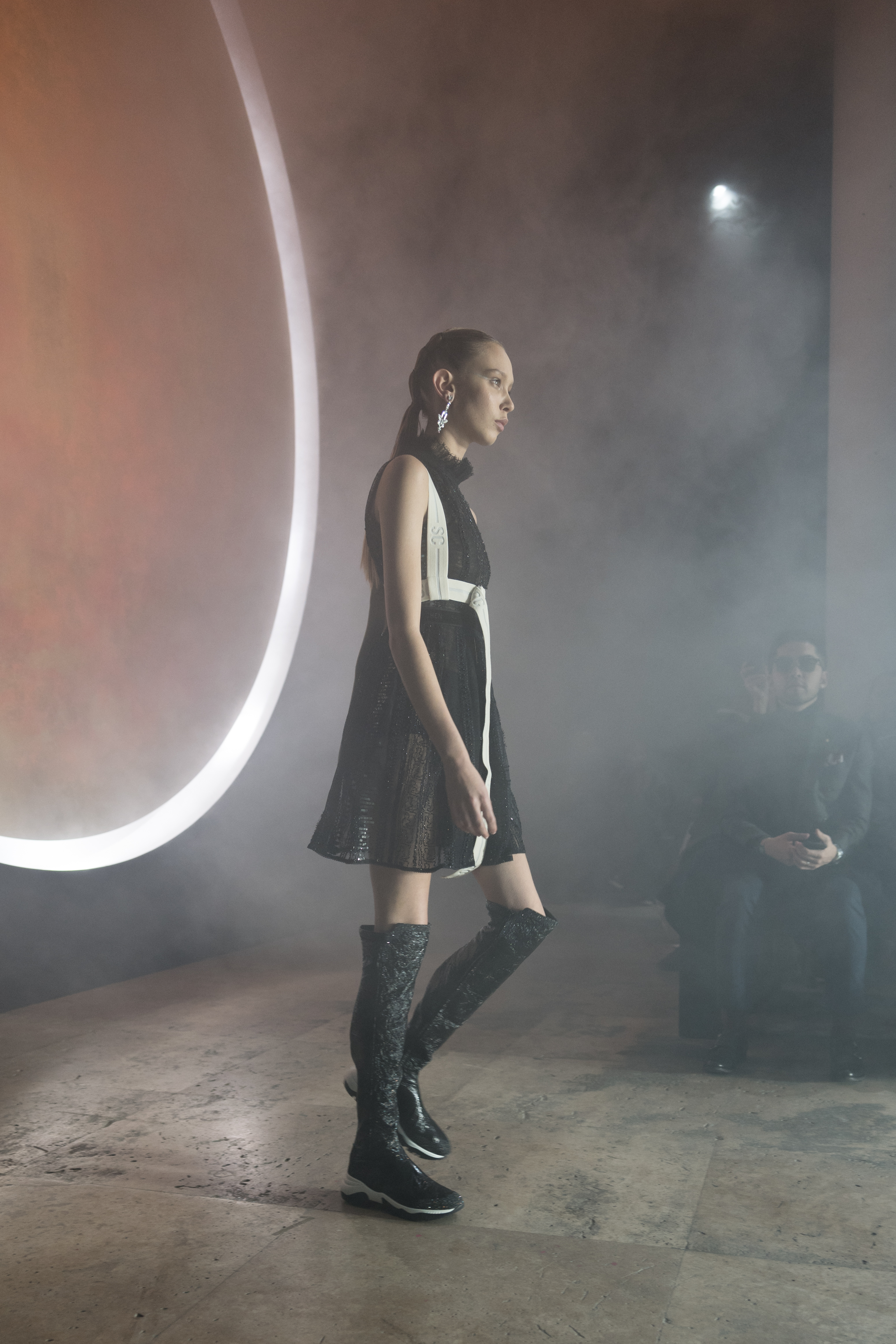 La Mythologie s’apprivoise ici à la manière d’un discours, et l’attitude devient la nouvelle arme absolue du style. Le concept « deep affection » adopté par Shiatzy Chen puise son inspiration dans l’image traditionnelle du porte-bébé des femmes Hmong Miao du sud-ouest de la Chine, exquises créatrices de textile. Chaque point et chaque fil de la broderie représentent l’attache affectueuse d’une mère pour son enfant.