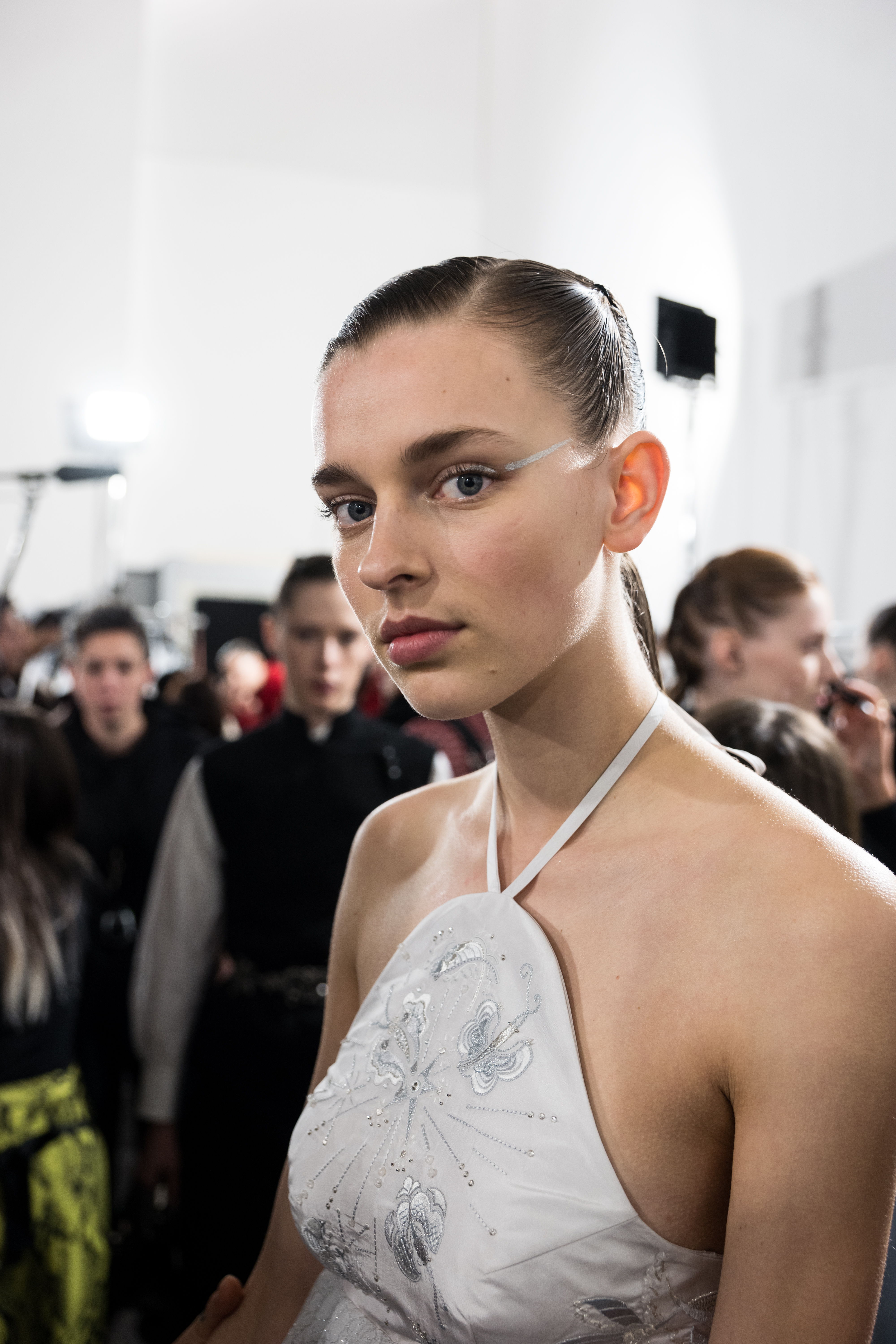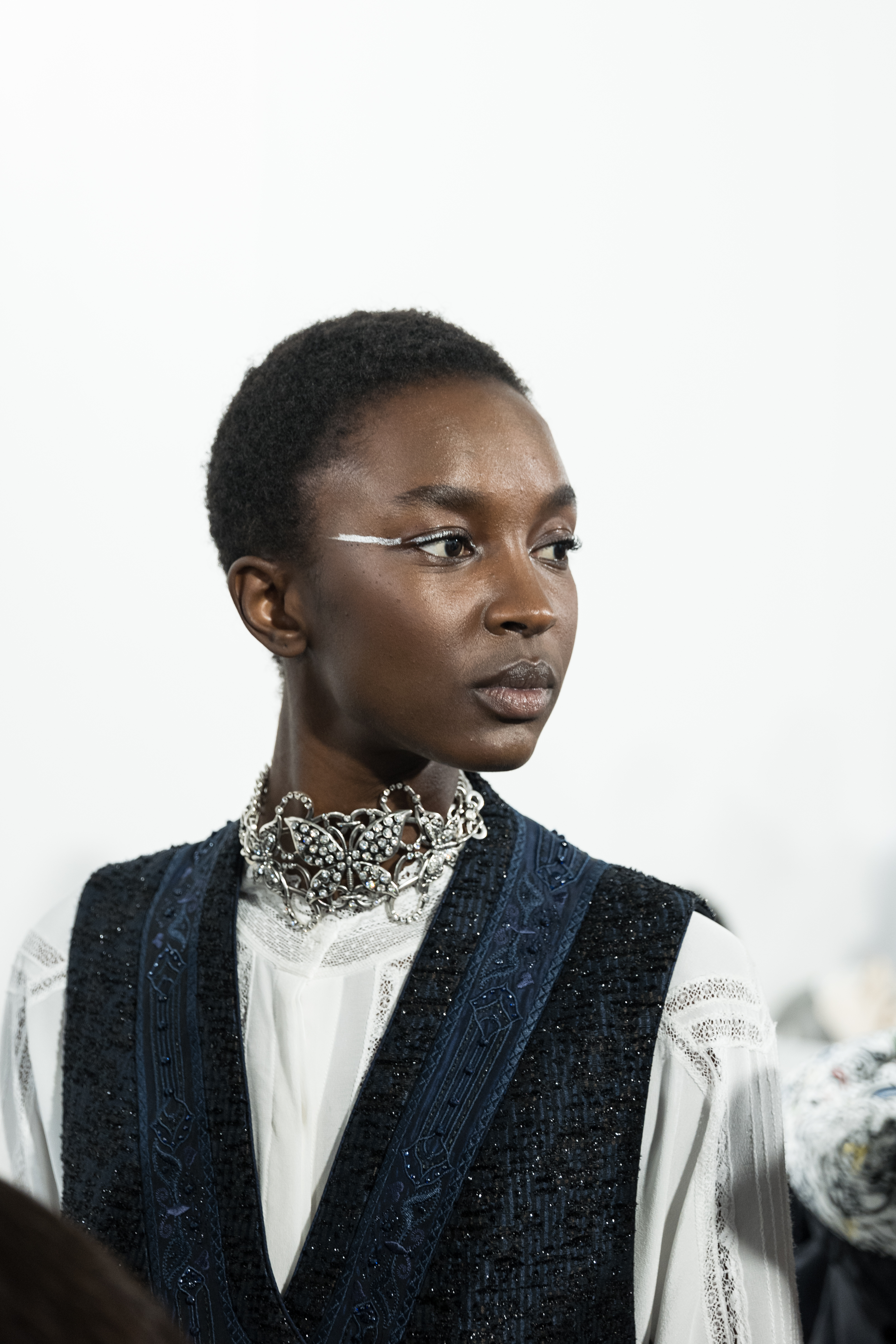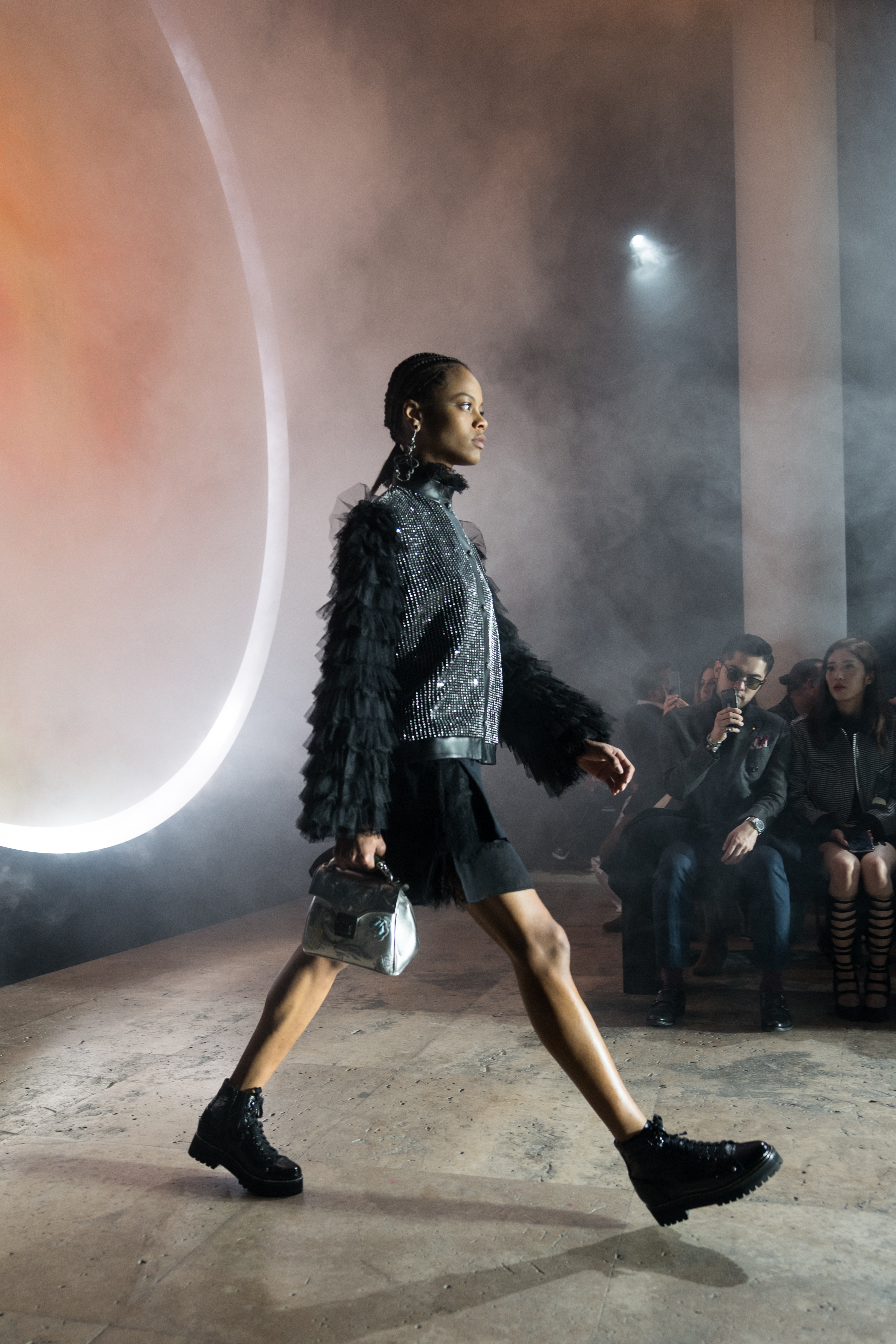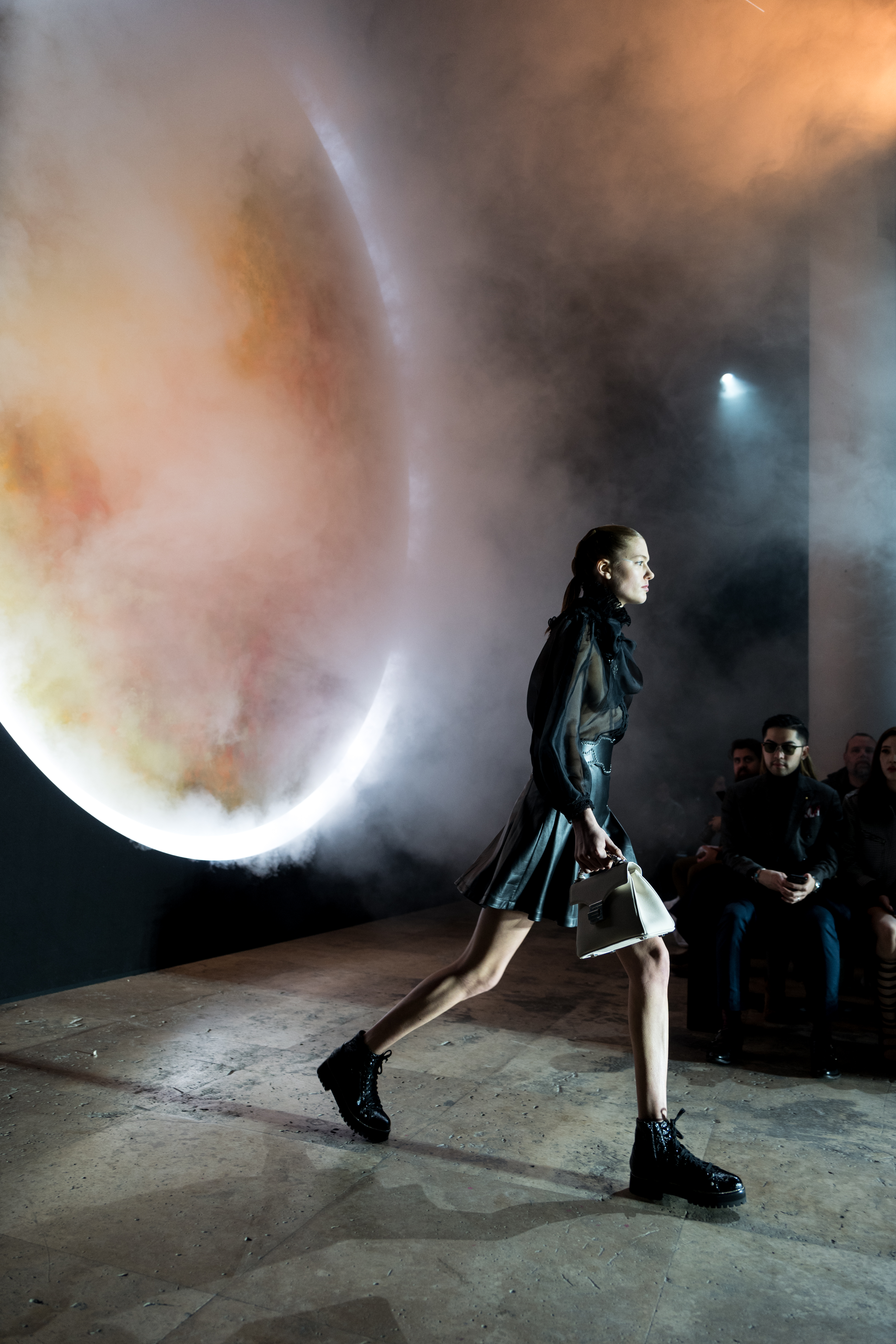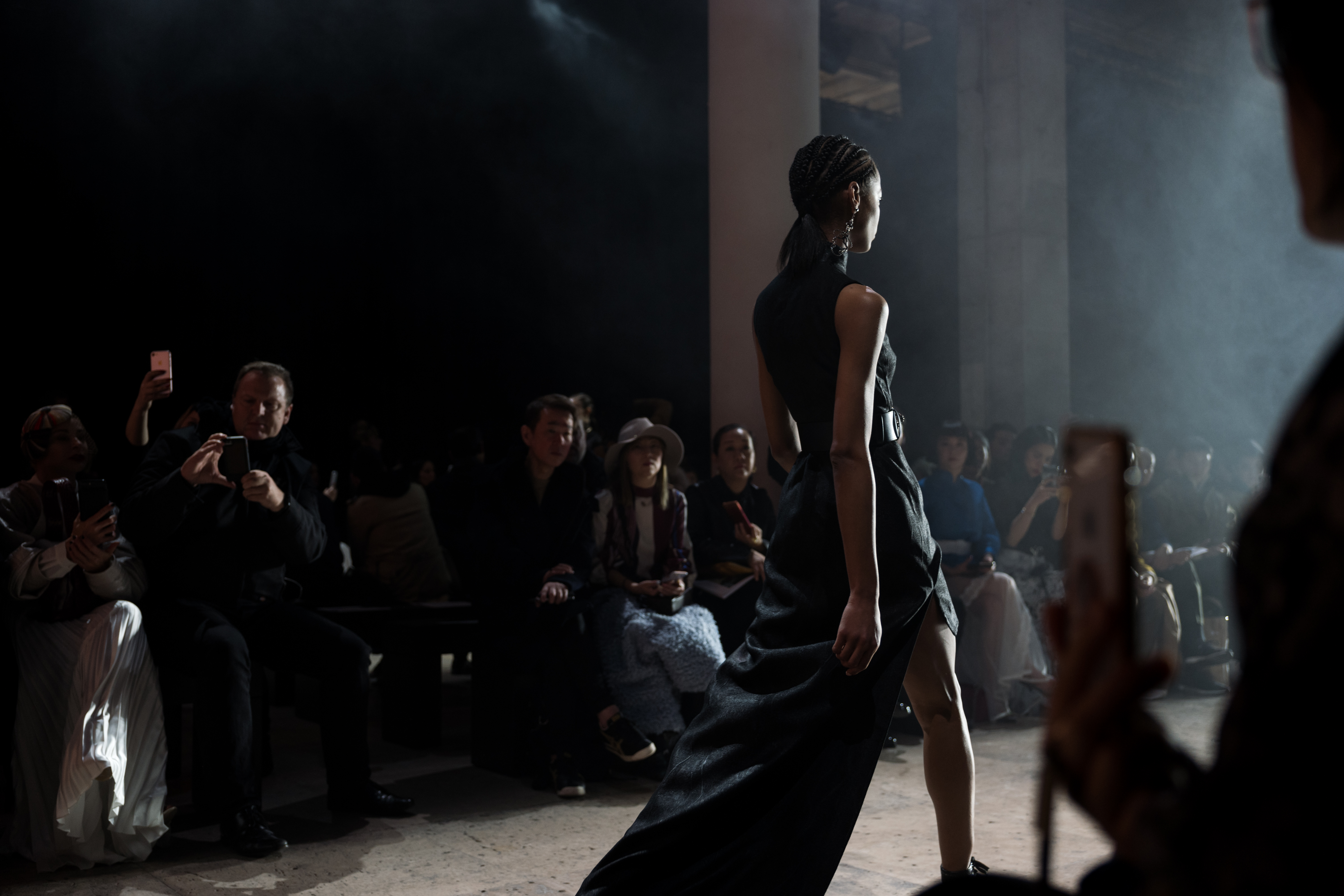 La Mythologie s’apprivoise ici à la manière d’un discours, et l’attitude devient la nouvelle arme absolue du style. Le concept « deep affection » adopté par Shiatzy Chen puise son inspiration dans l’image traditionnelle du porte-bébé des femmes Hmong Miao du sud-ouest de la Chine, exquises créatrices de textile. Chaque point et chaque fil de la broderie représentent l’attache affectueuse d’une mère pour son enfant.
