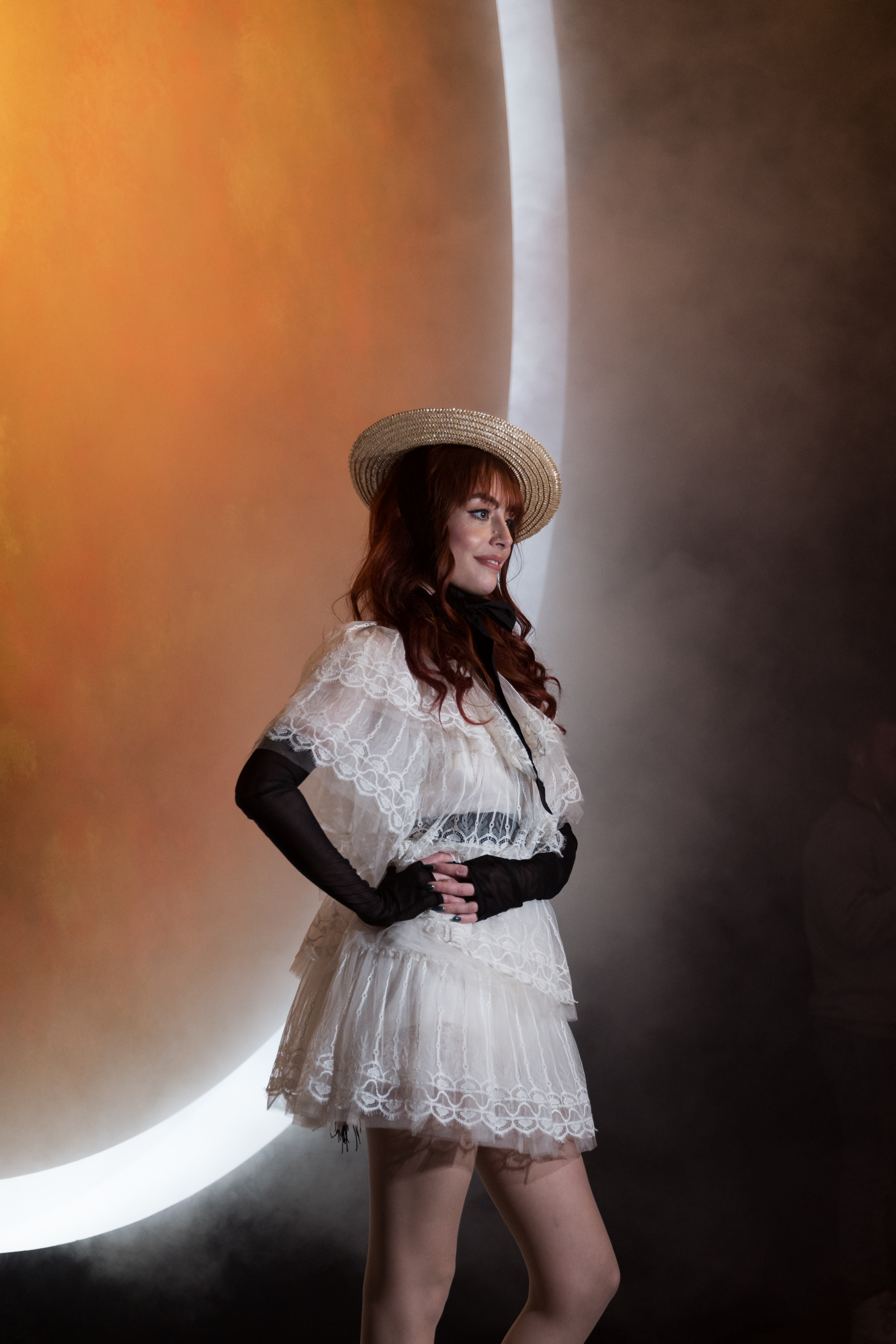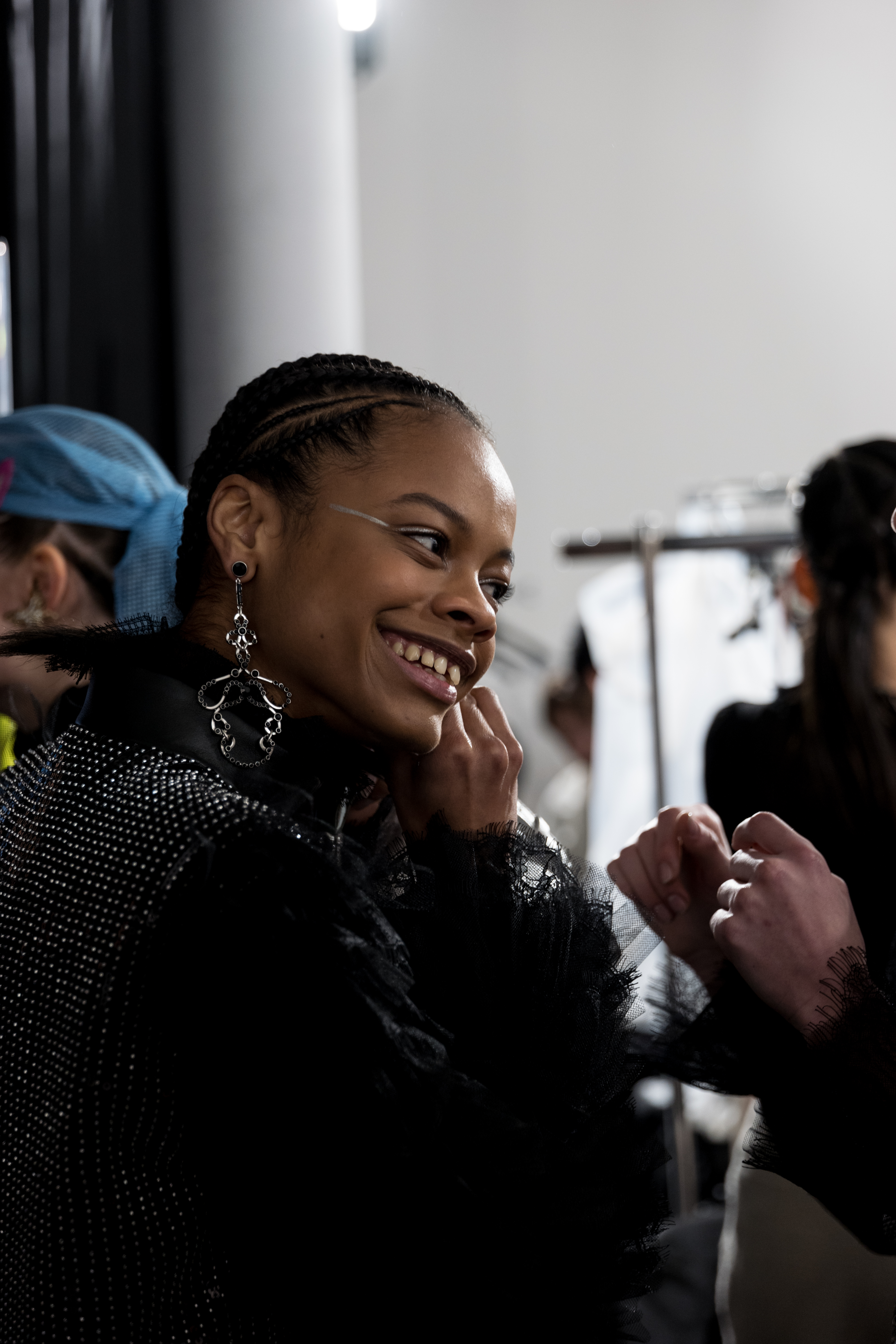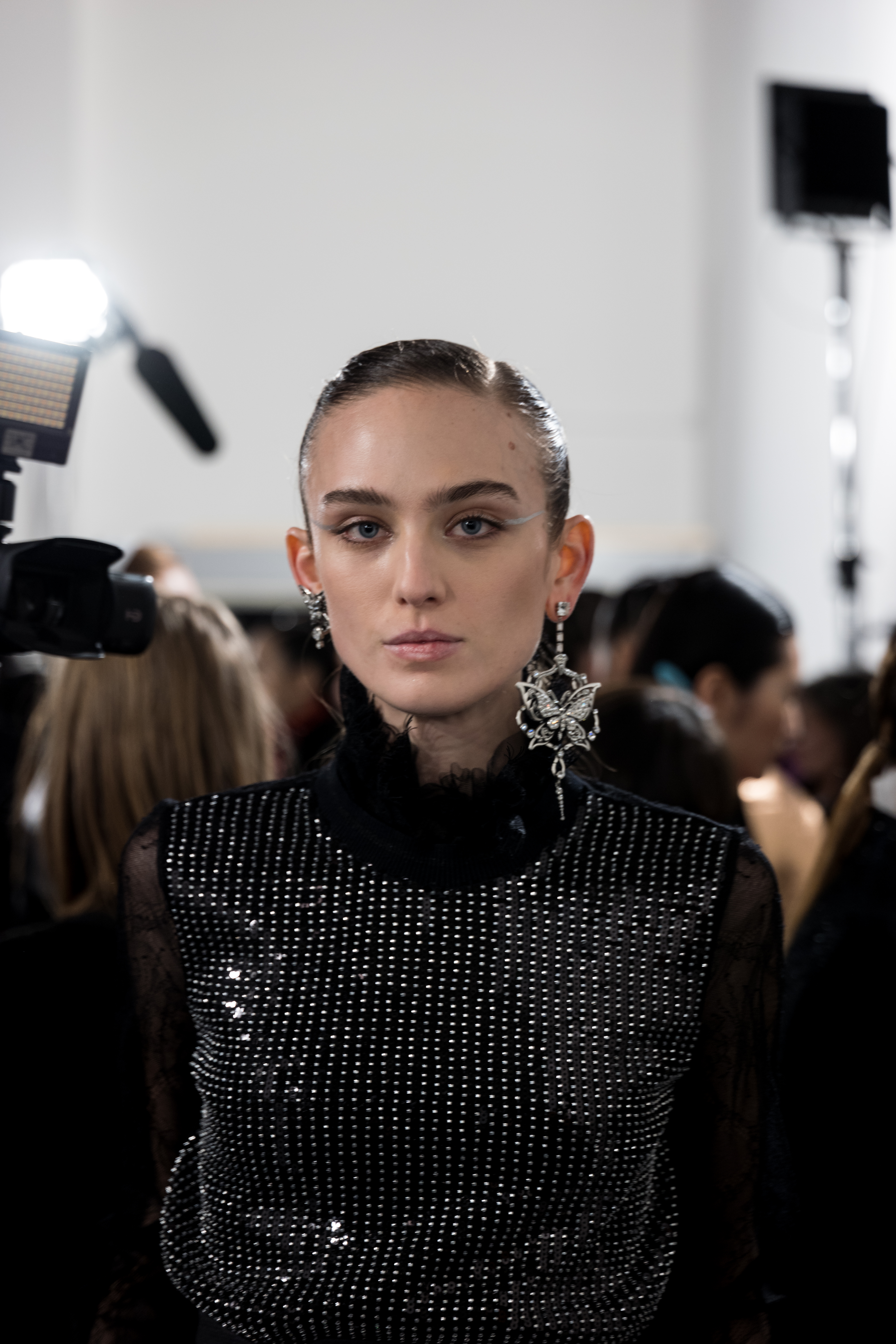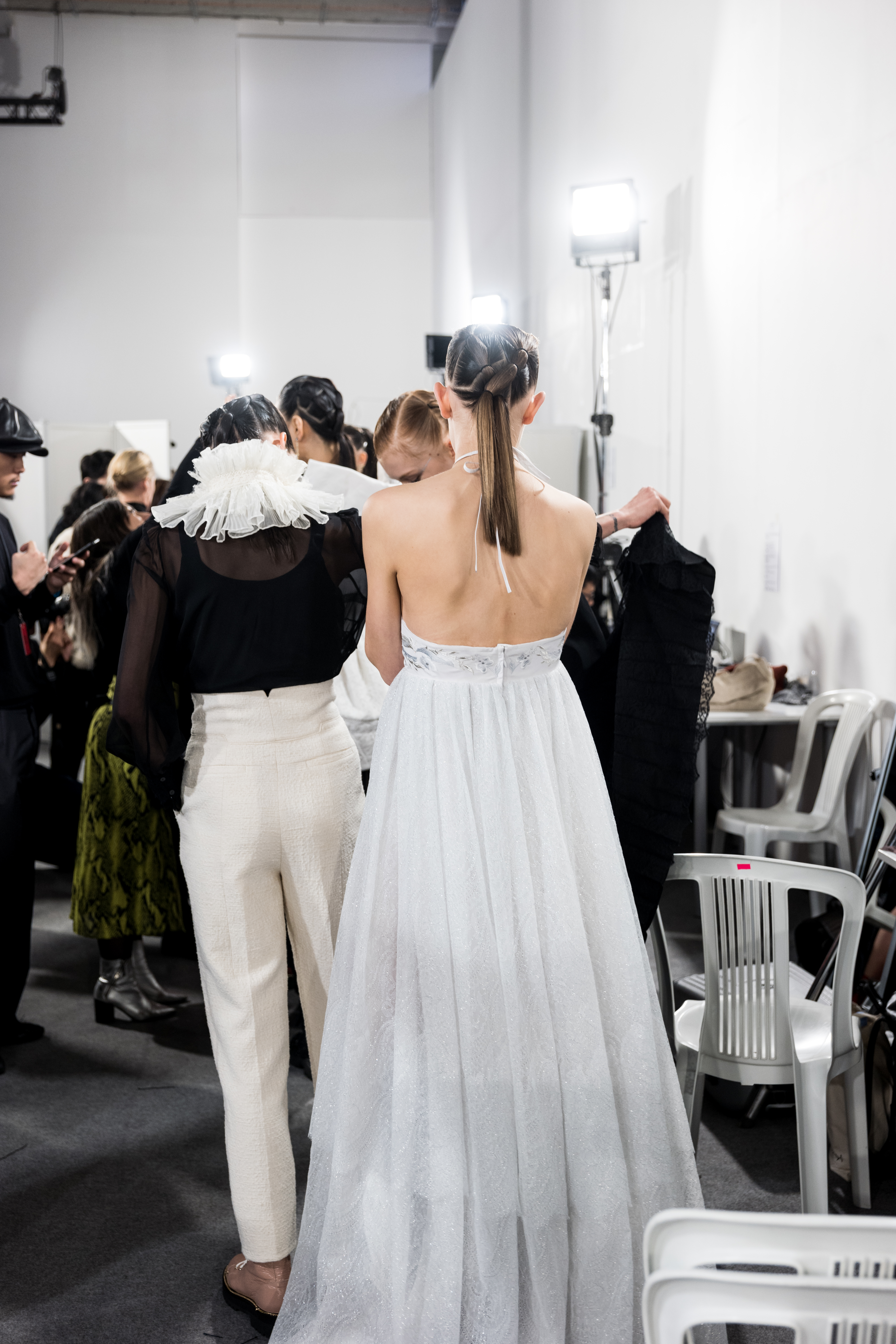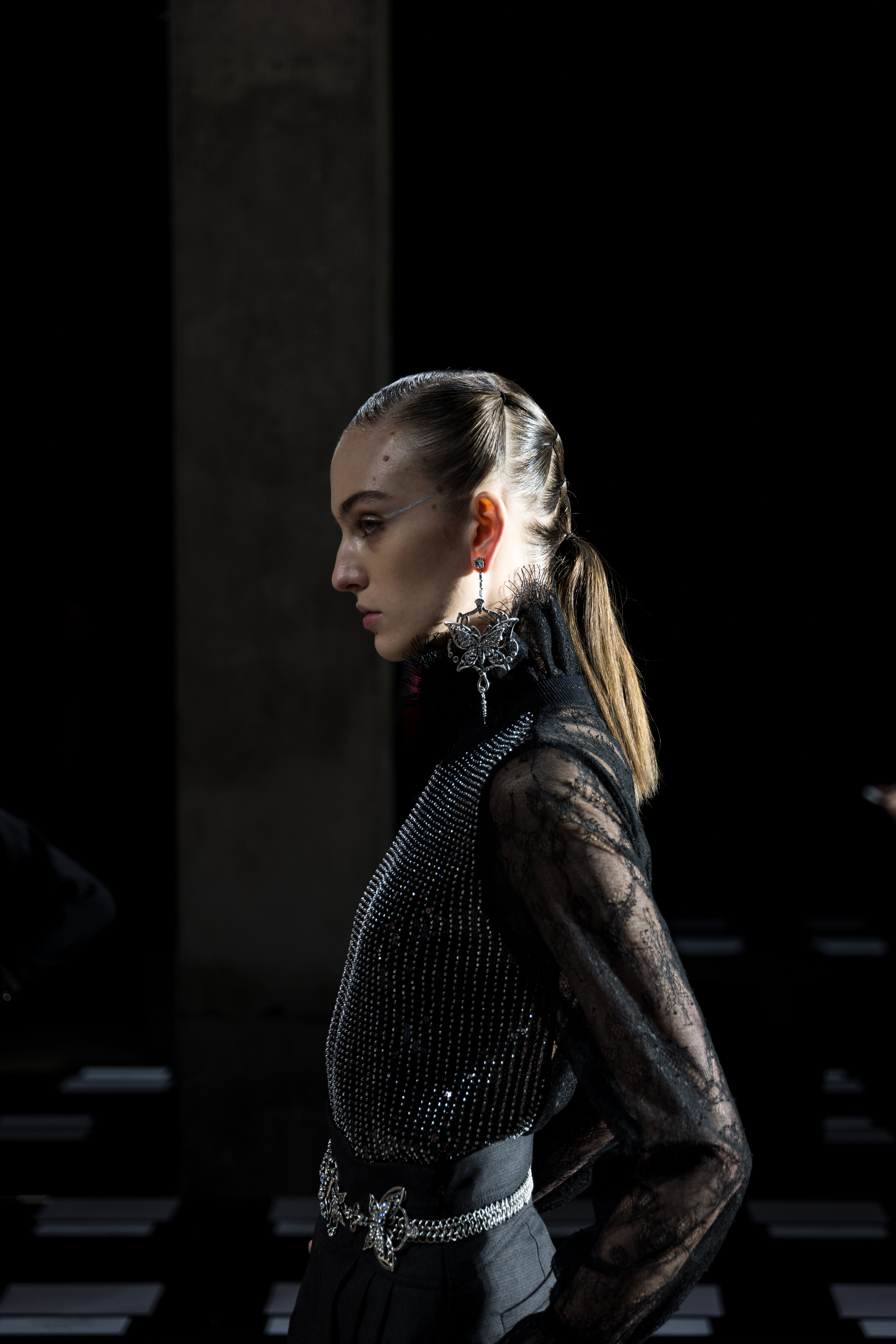 La Mythologie s’apprivoise ici à la manière d’un discours, et l’attitude devient la nouvelle arme absolue du style. Le concept « deep affection » adopté par Shiatzy Chen puise son inspiration dans l’image traditionnelle du porte-bébé des femmes Hmong Miao du sud-ouest de la Chine, exquises créatrices de textile. Chaque point et chaque fil de la broderie représentent l’attache affectueuse d’une mère pour son enfant.