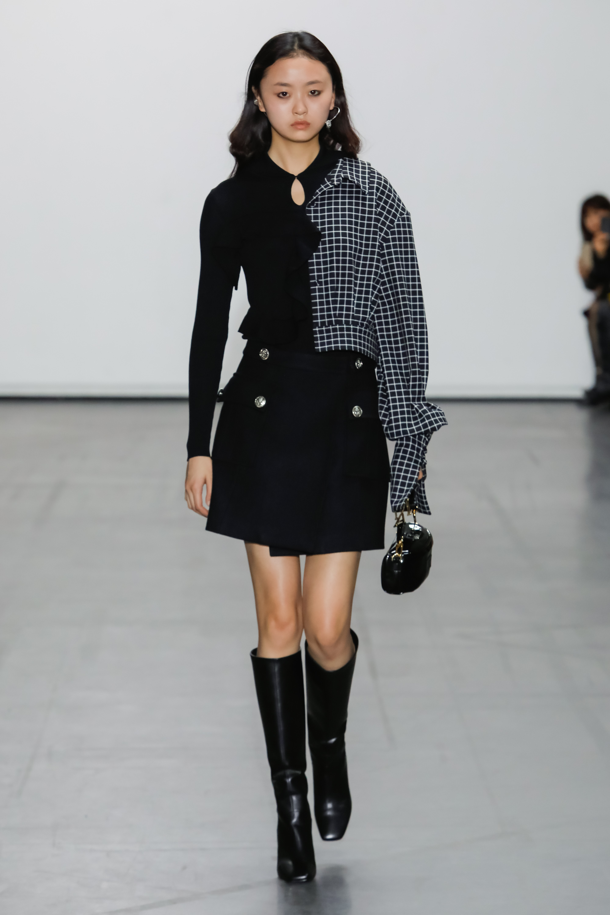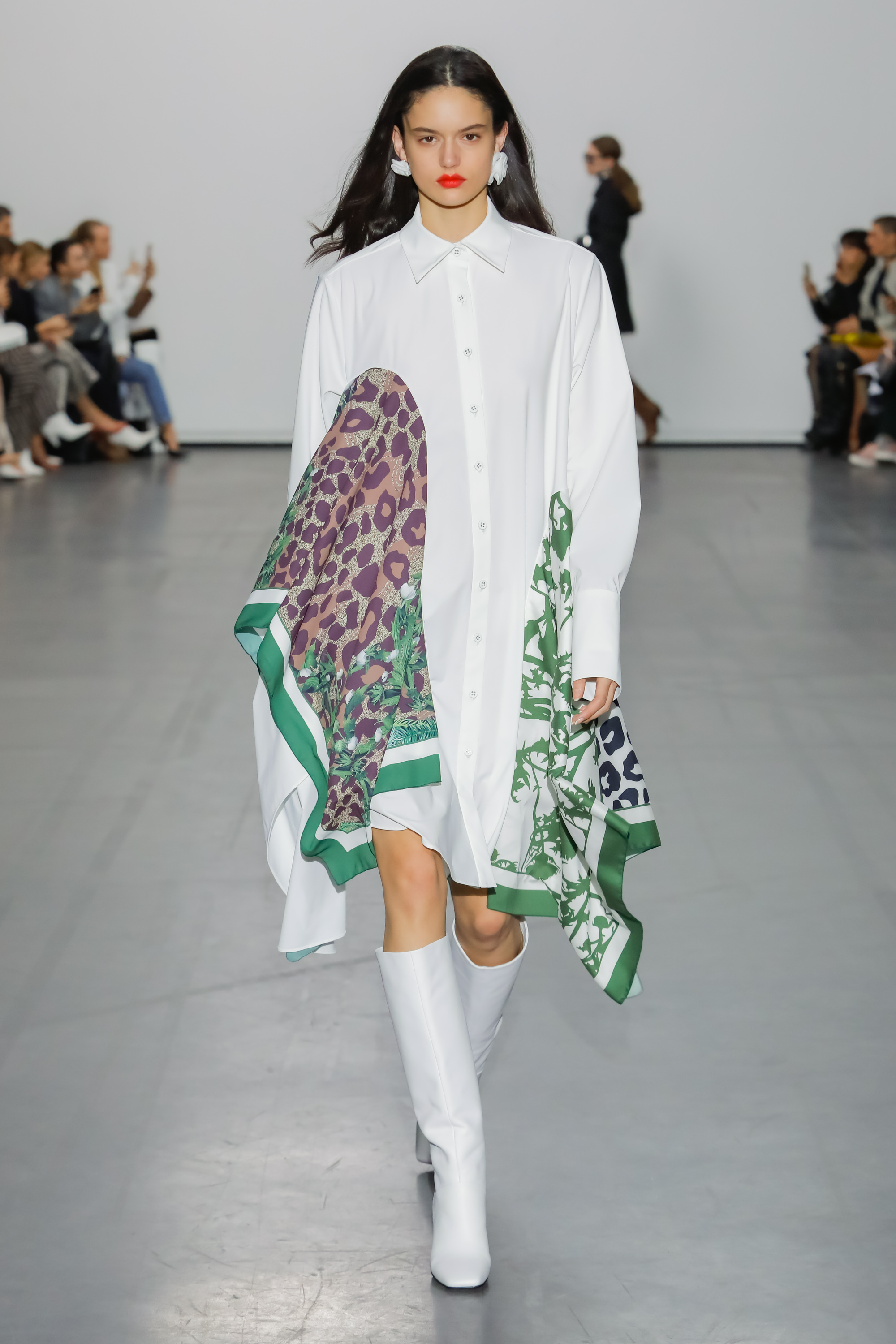 This season, the designer continues to explore multiple cuts and asymmetries. Knitted fabrics, scarves and suits are new additions to the collection. In contrasts with the previous season’s oversized silhouettes, shirts and lace evening dresses are tighter on the body, highlighting the elegance and sensuality of the female figure.