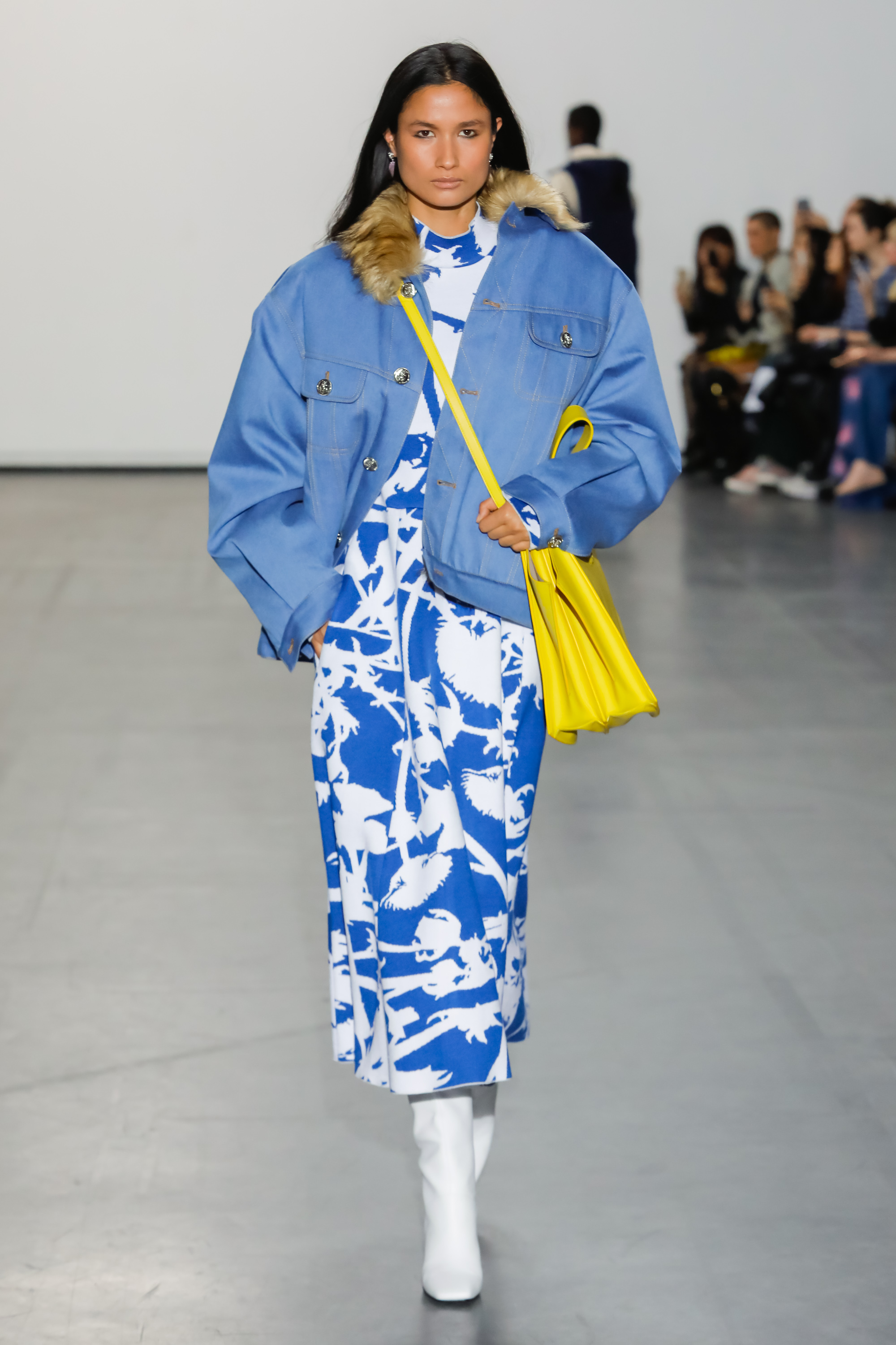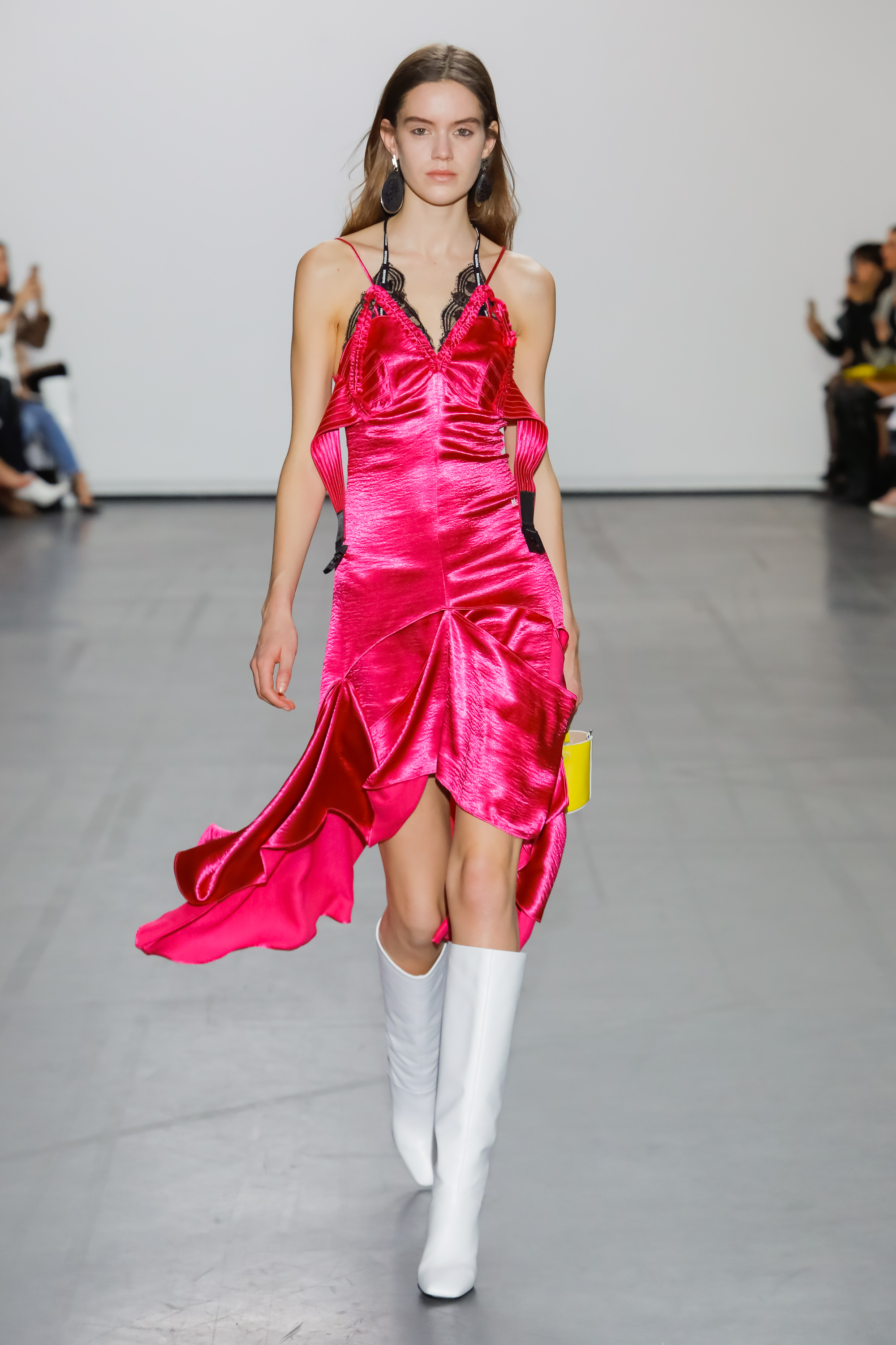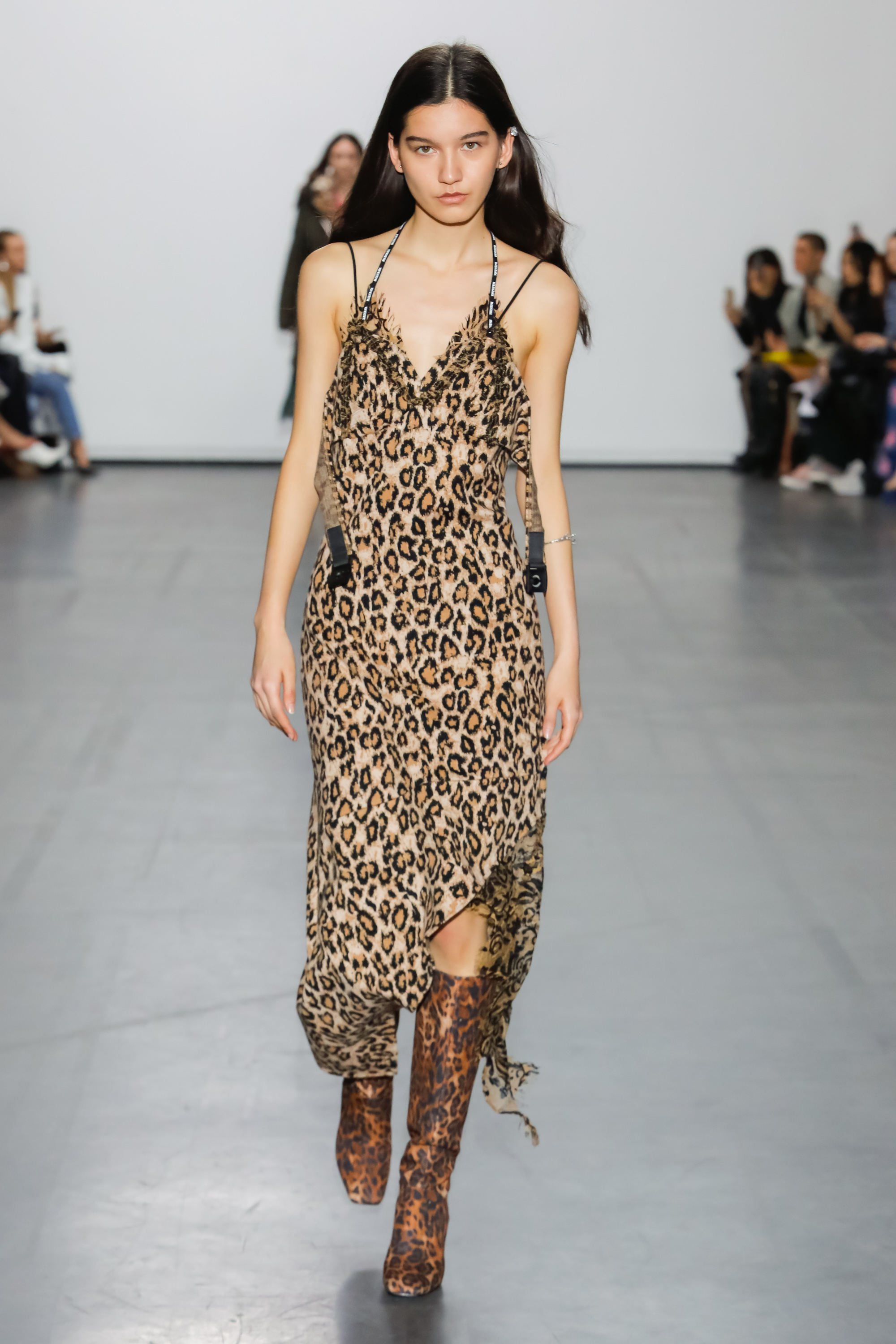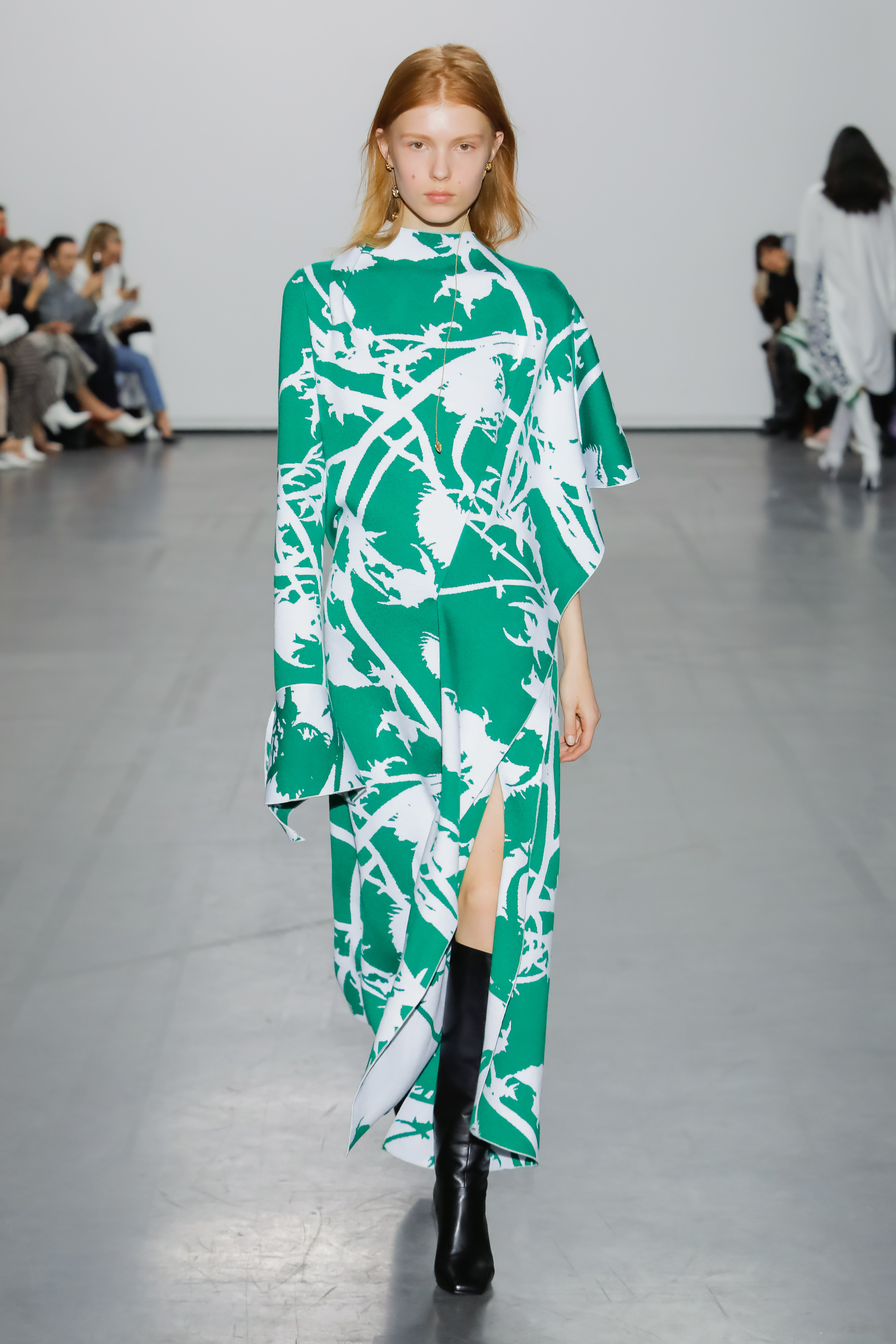 The collection examines and looks at the world from a new perspective. Fuchsia silks, jade Azalea printed knits and leopard print fake fur come together to create a surreal but life-like scene. The fabrics used in some of the outerwear pieces are made from recycled plastic bottles, using the ‘REPREVE’ technology.