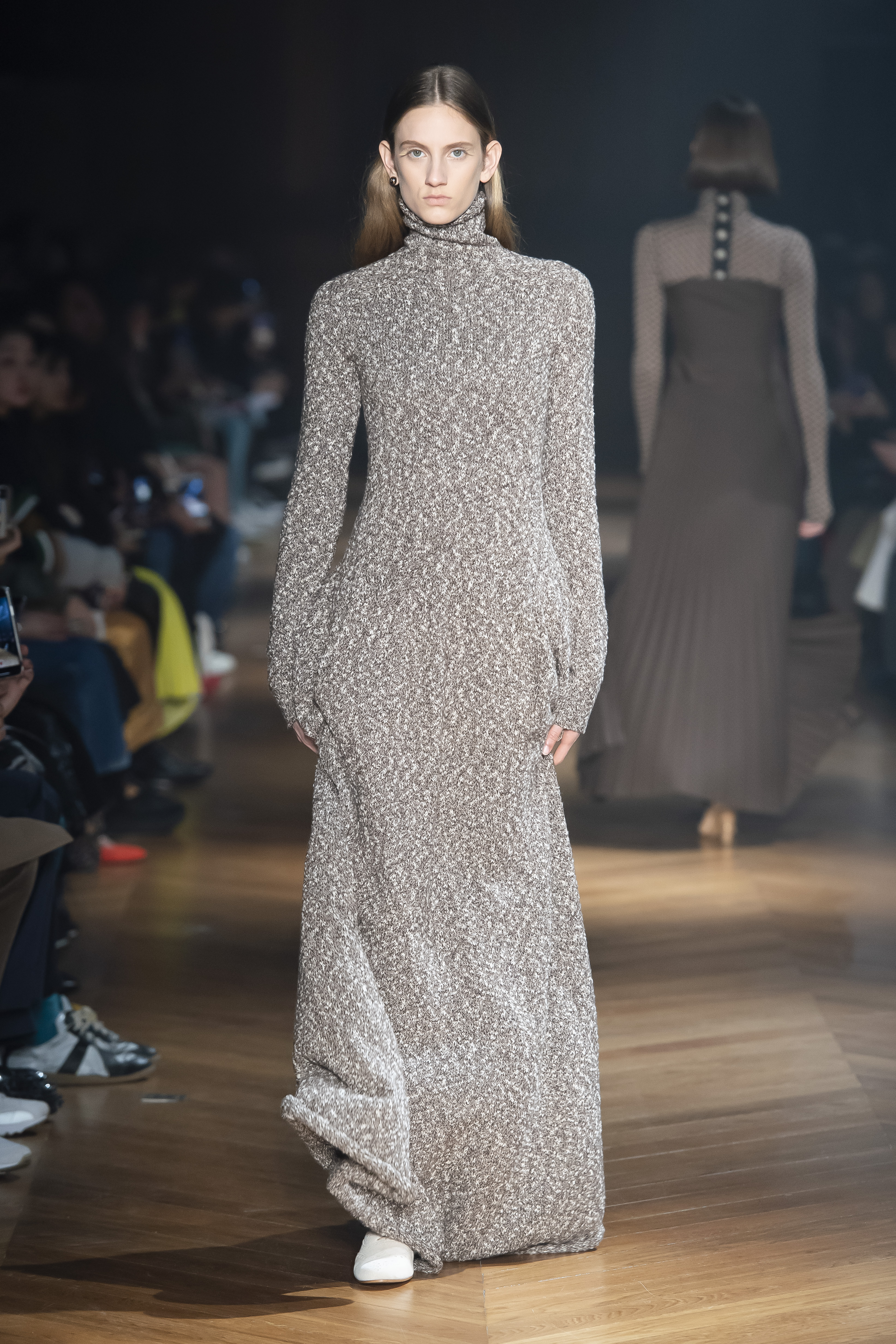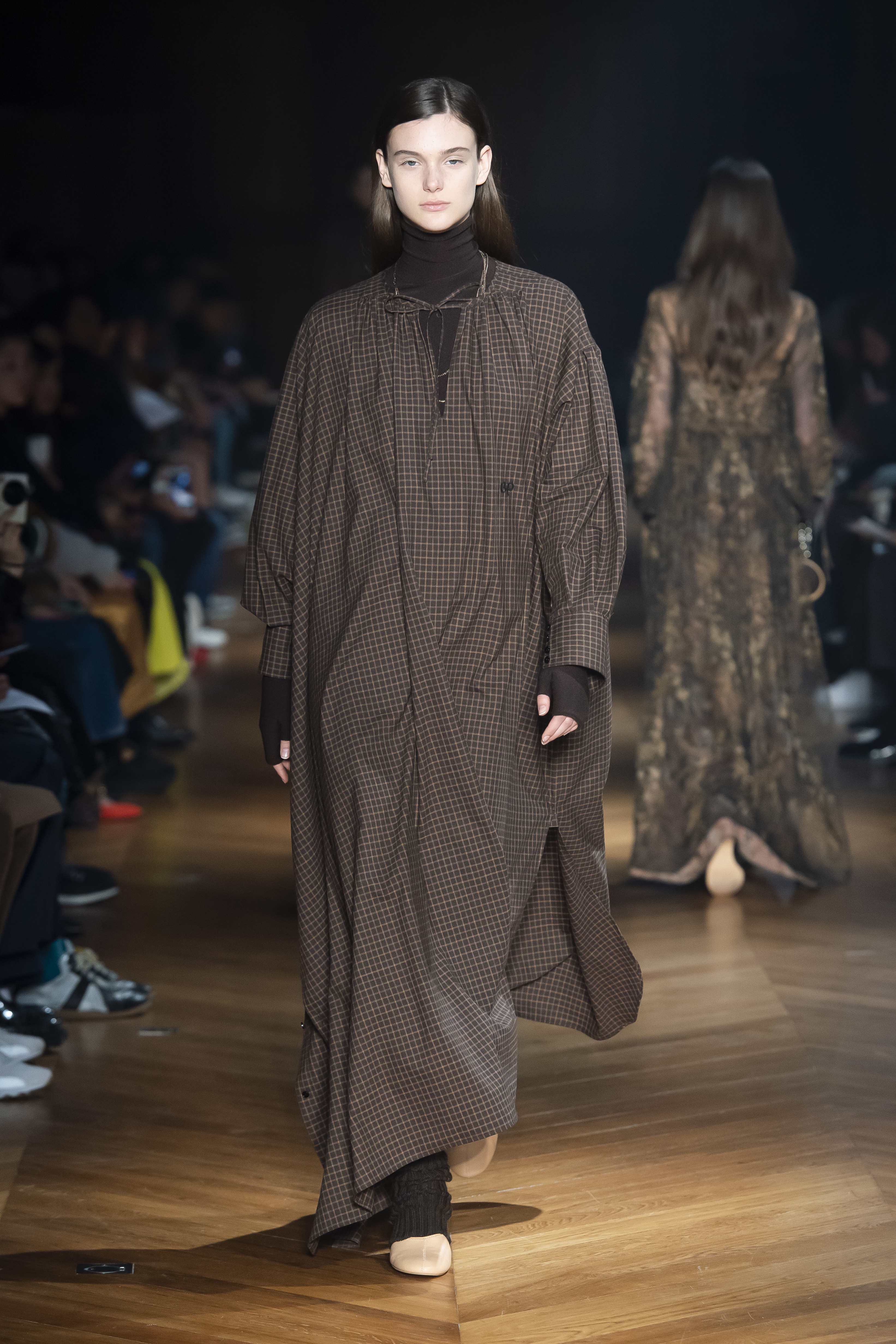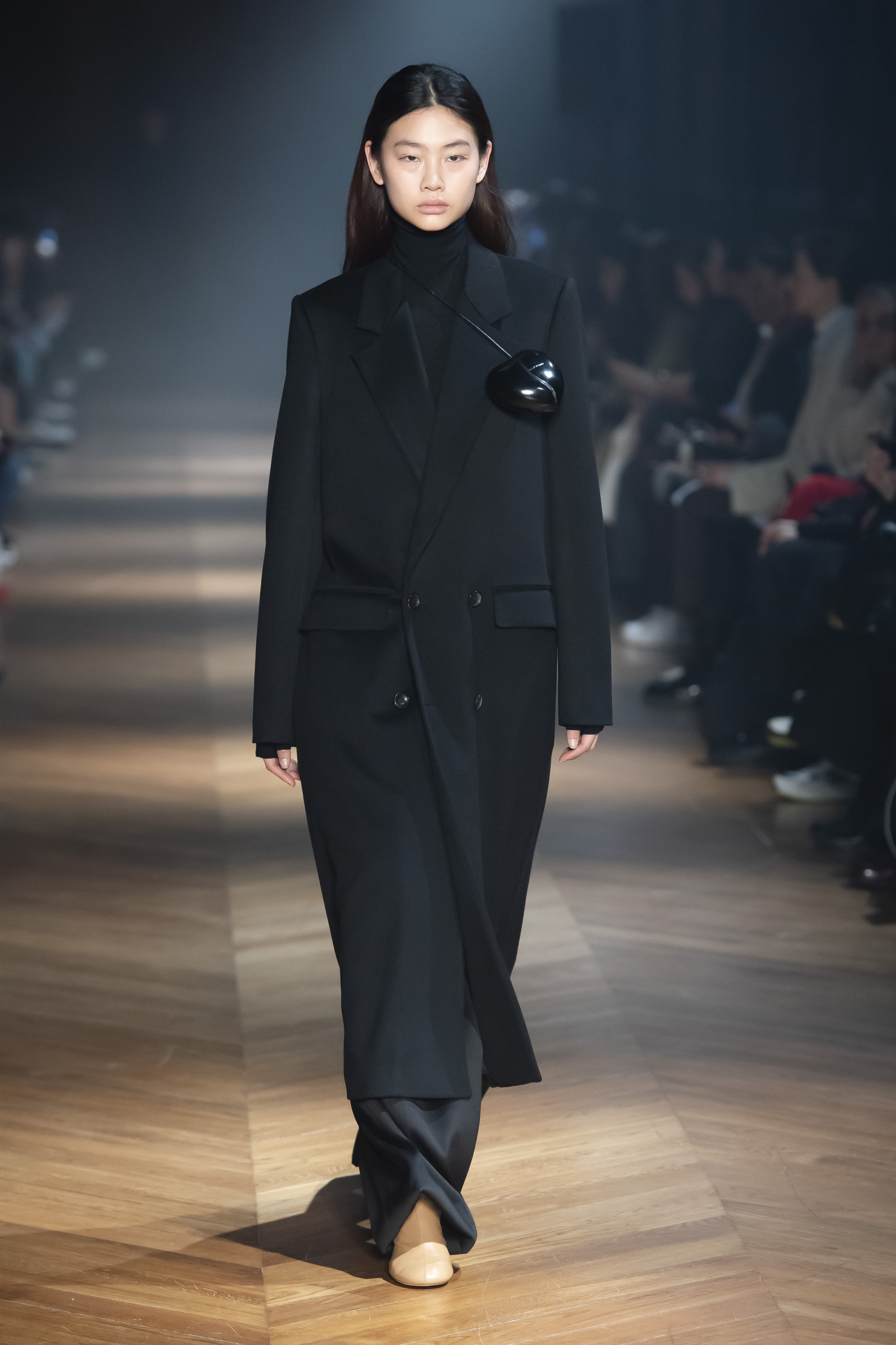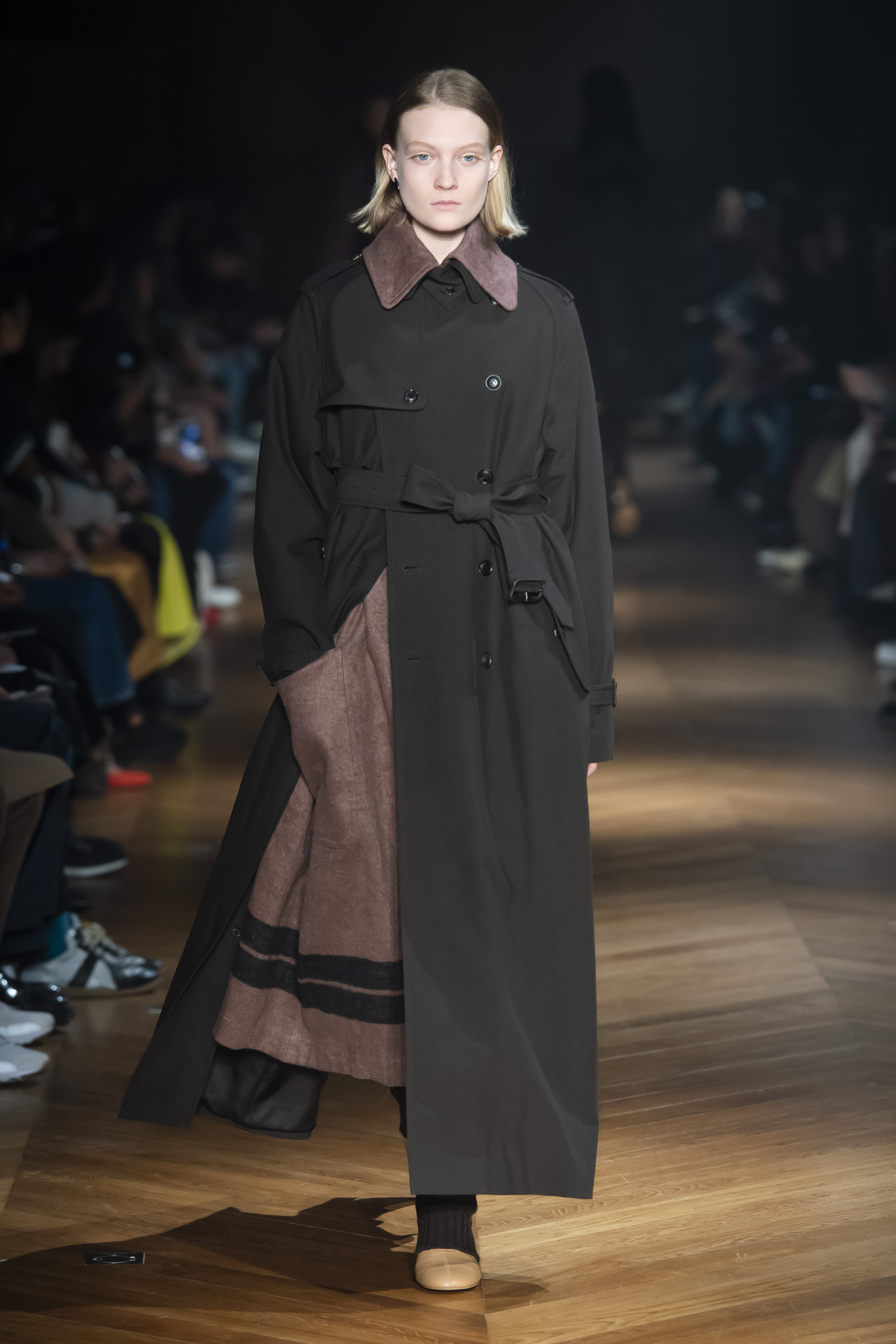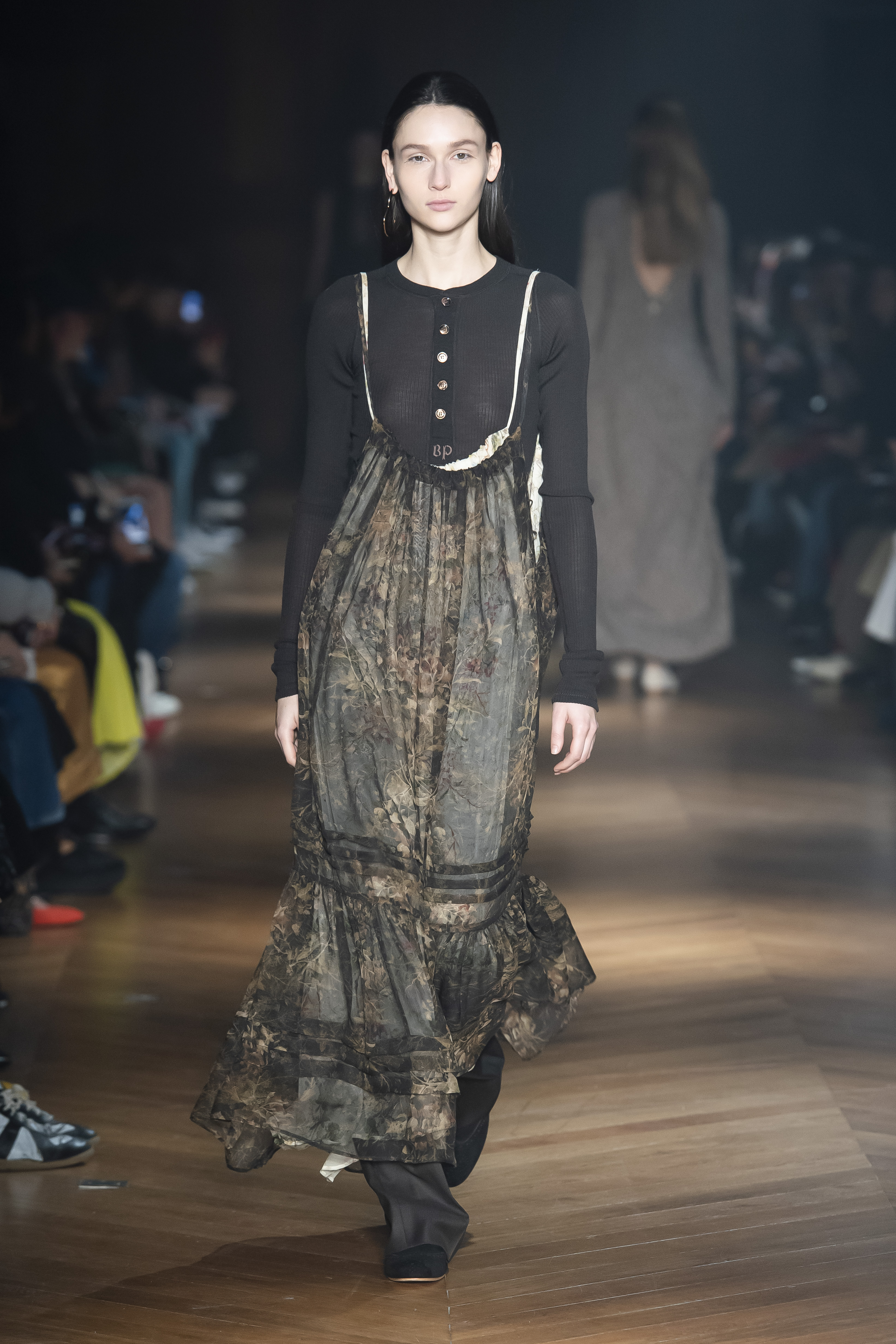 An interplay of restraint and indulgence, of covering up and revealing, for transformative pieces that can be interpreted in countless ways. The silhouette is long and fluid: coats, trenchcoats, dresses, knits draw a restrained long line that lets the body to be felt and the skin be seen. Floral and vegetal motifs are printed all over dresses or turned into jacquards on knitwear, following the patterns of what is generally hidden: the circulation and muscles systems, the internal organs. The invisible becomes visible, morphed to side C.