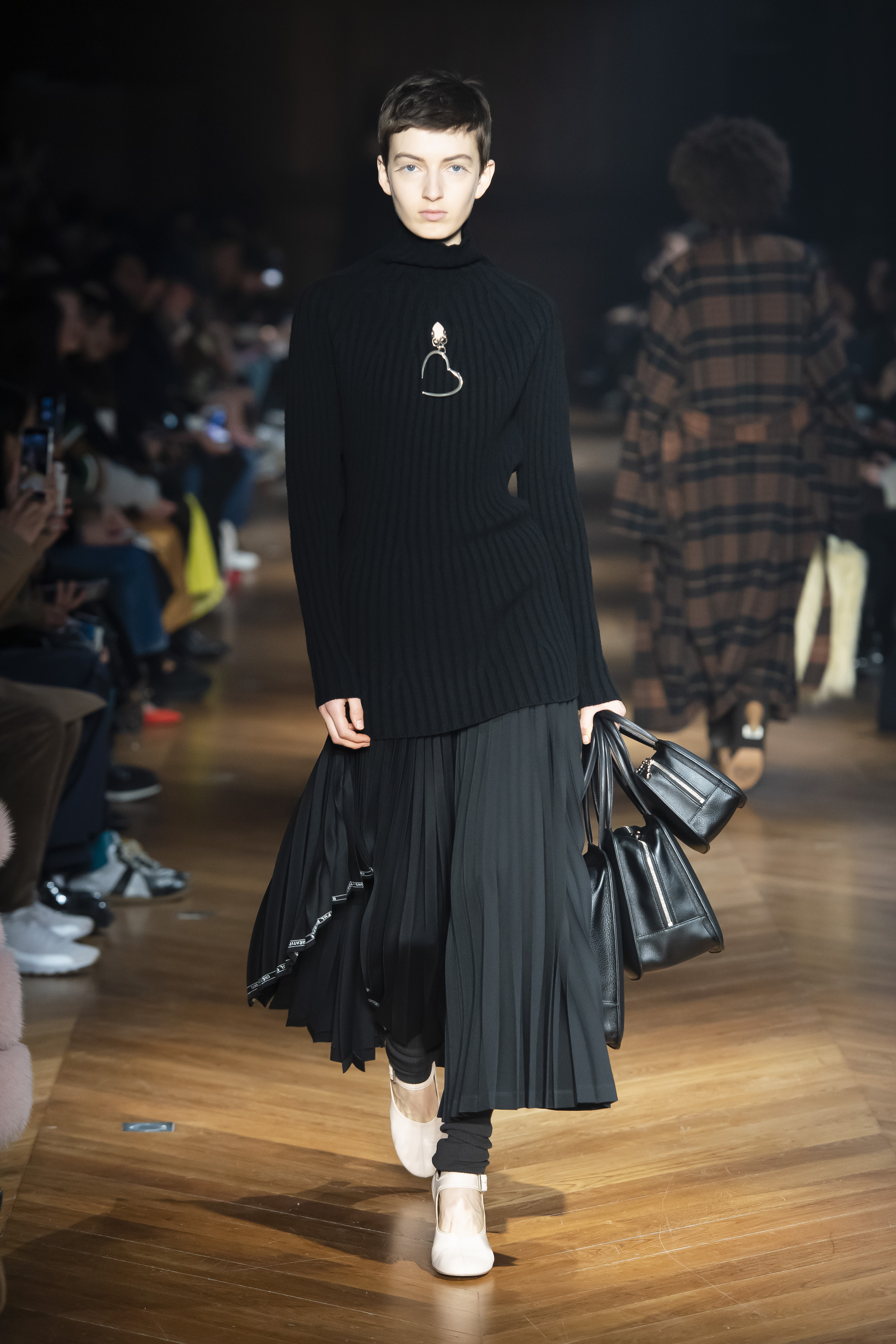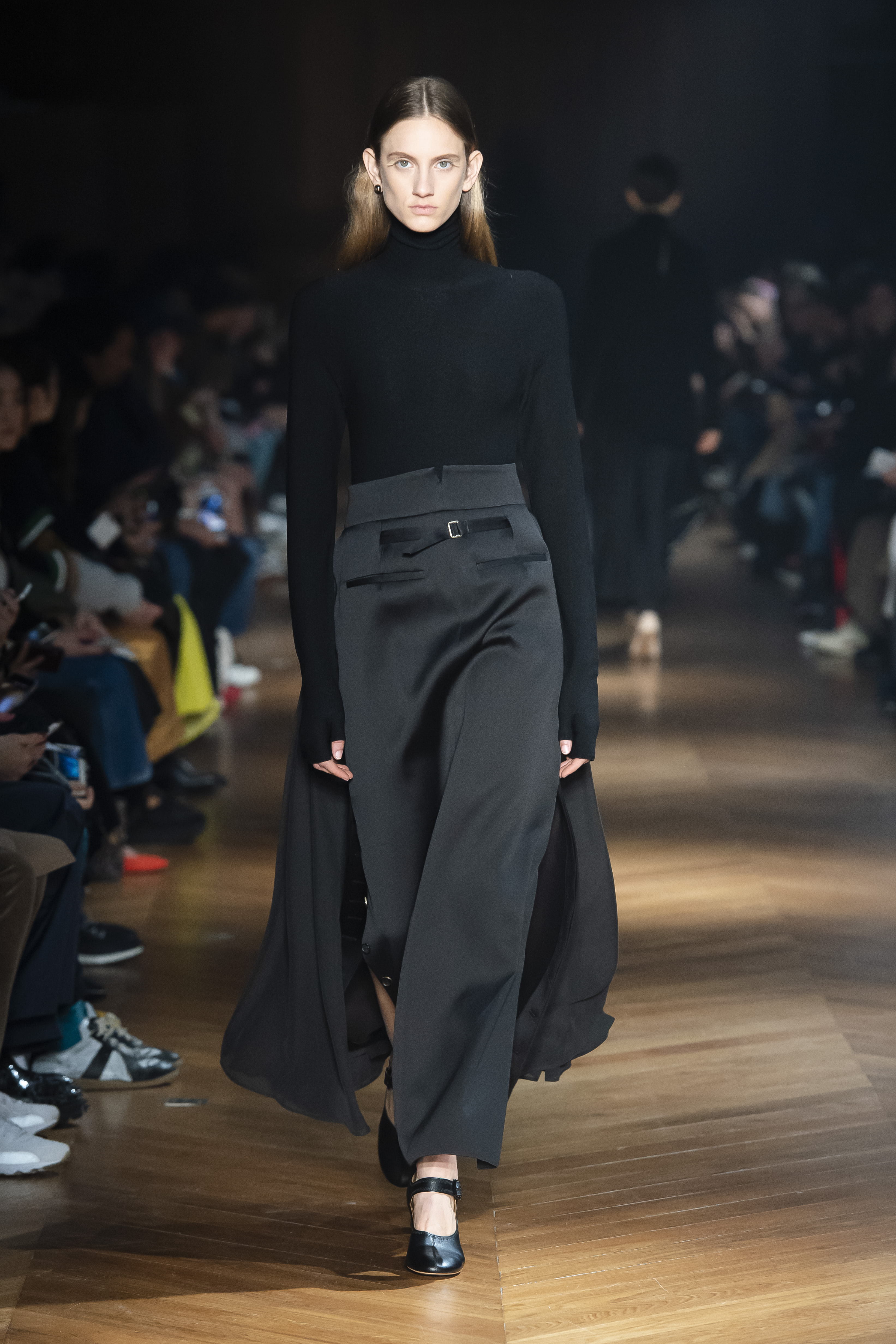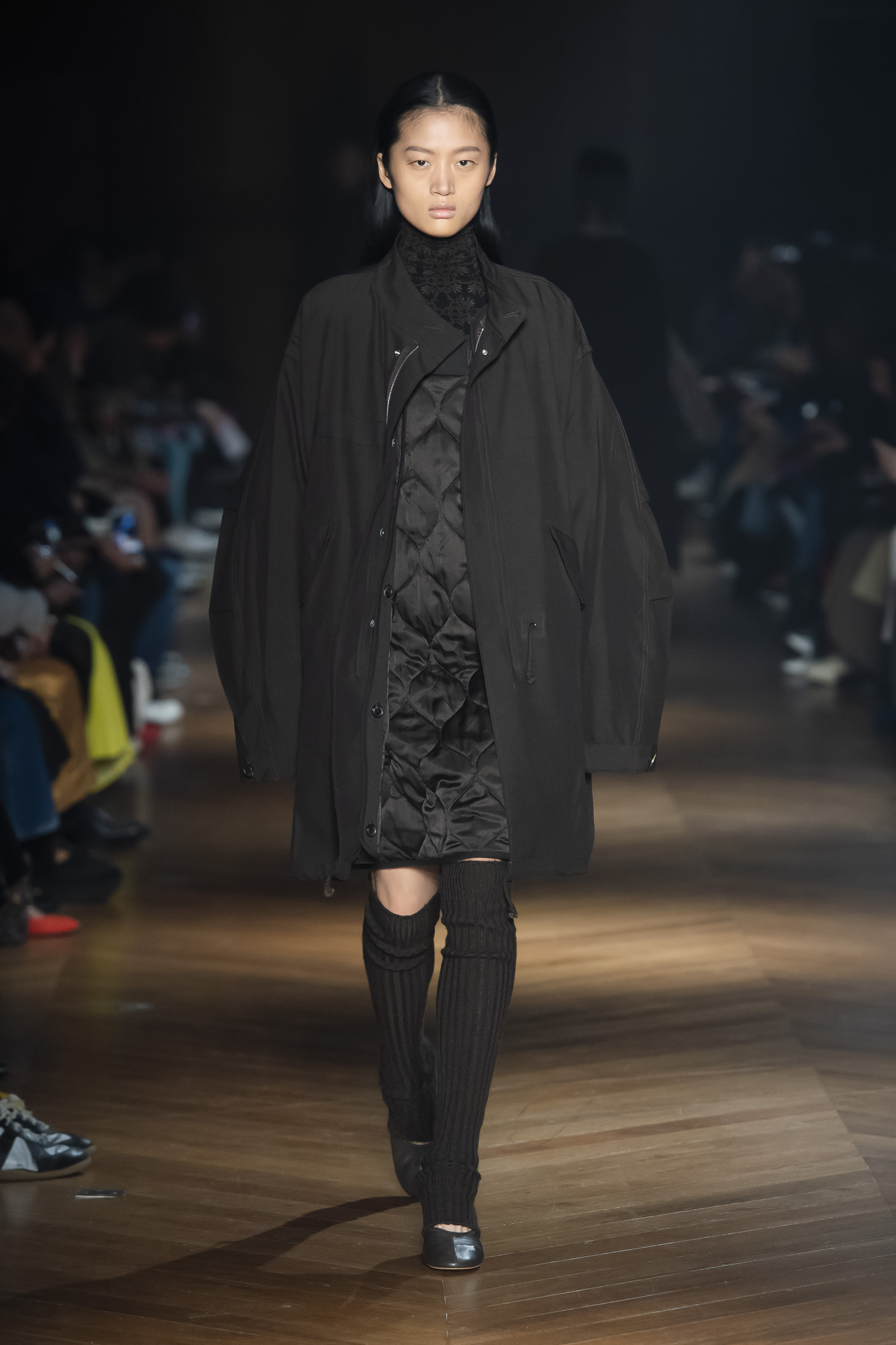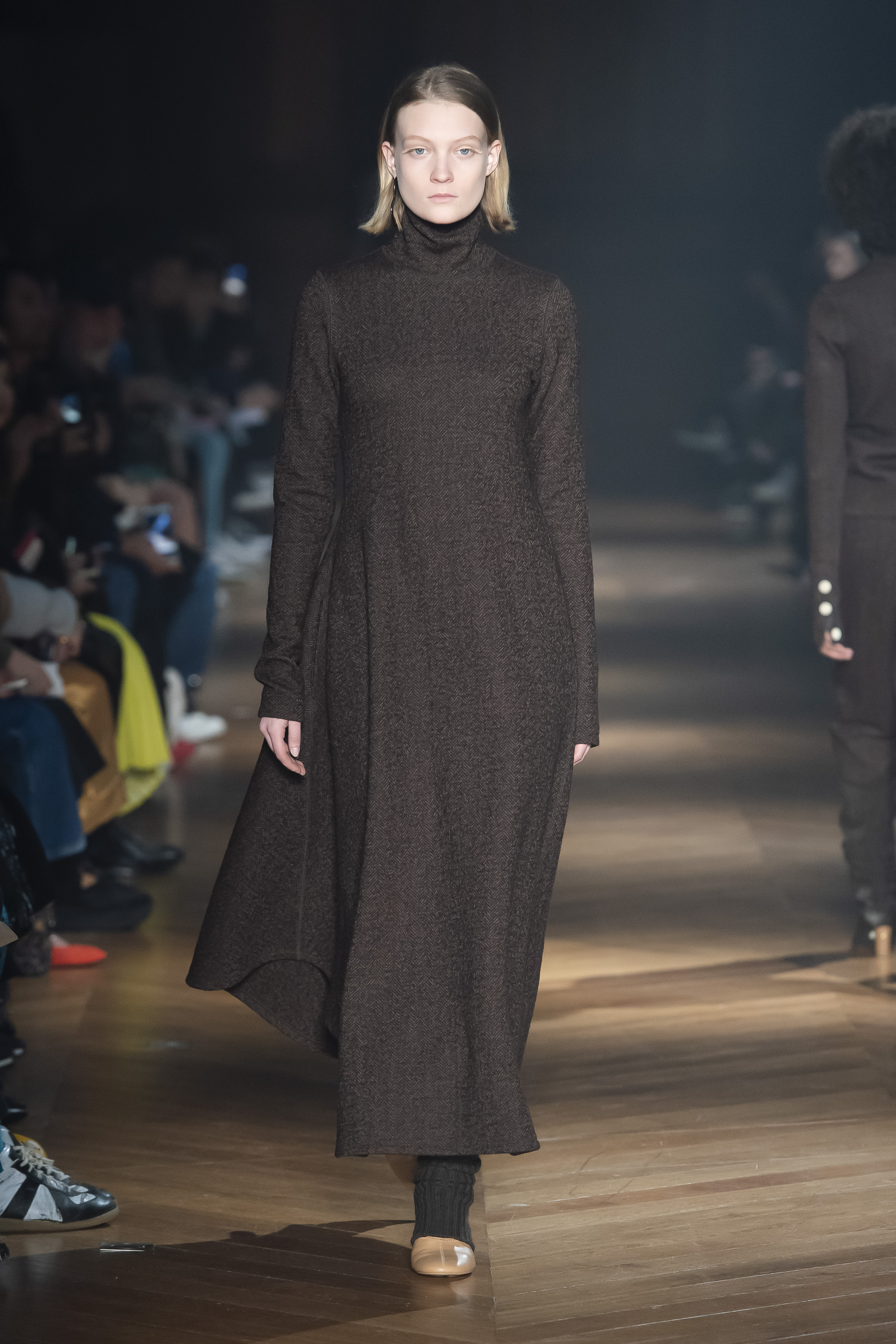 An interplay of restraint and indulgence, of covering up and revealing, for transformative pieces that can be interpreted in countless ways. The silhouette is long and fluid: coats, trenchcoats, dresses, knits draw a restrained long line that lets the body to be felt and the skin be seen. Floral and vegetal motifs are printed all over dresses or turned into jacquards on knitwear, following the patterns of what is generally hidden: the circulation and muscles systems, the internal organs. The invisible becomes visible, morphed to side C.