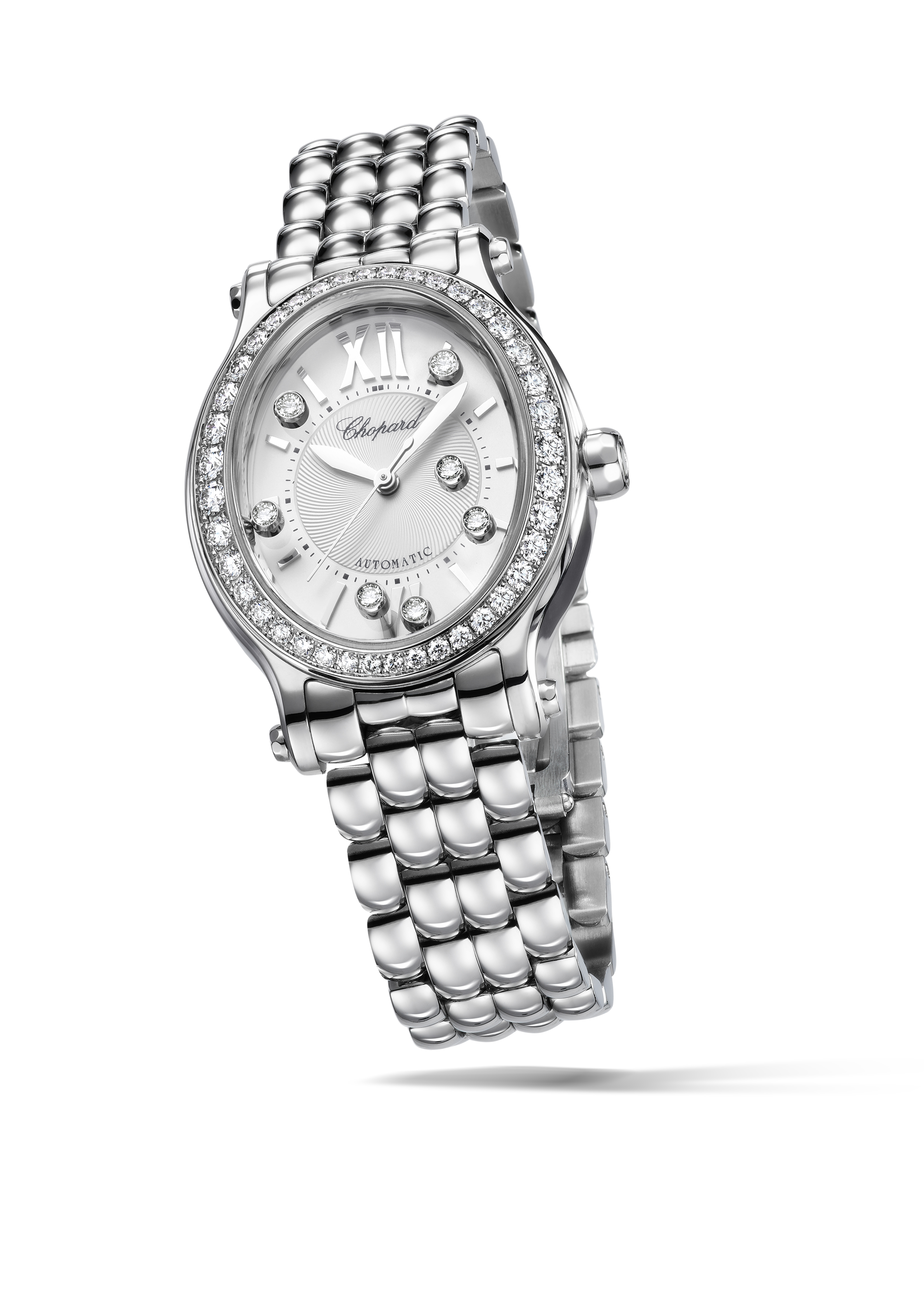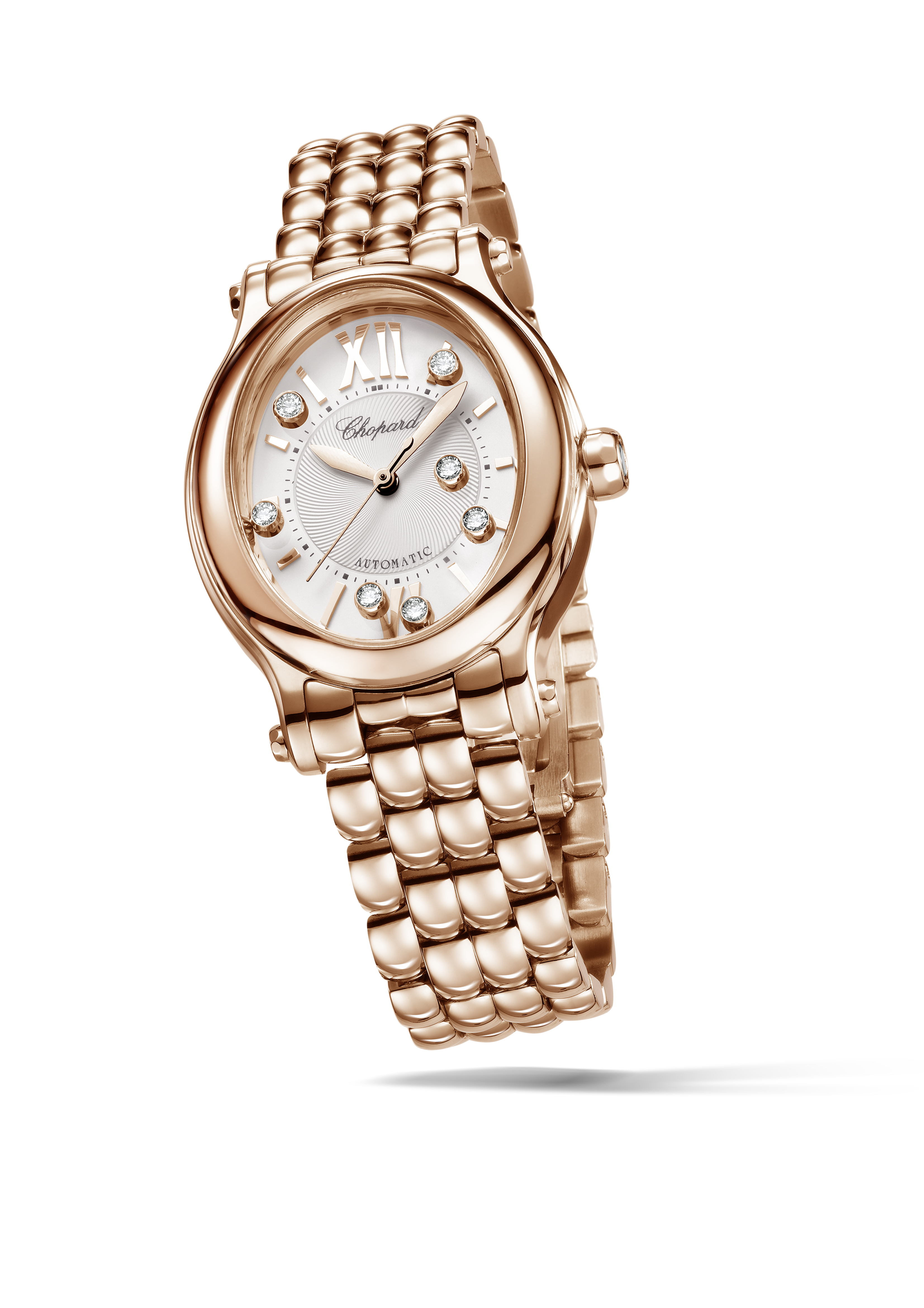 La montre Happy Sport Oval est disponible en version or rose 18 carats ou en acier avec la lunette sertie de diamants. Son bracelet est entièrement produit à l’interne par les artisans de la manufacture Chopard ; il est le témoin de l’intégration verticale de tous les métiers et des compétences qui font la grandeur des pôles horlogers et joailliers de la Maison. Une conjugaison unique des talents, qui permet à la fois une complémentarité et une maîtrise interne de chaque étape nécessaire à la réalisation d’une pièce d’exception, comme l’est chaque création qui sort des ateliers Chopard.