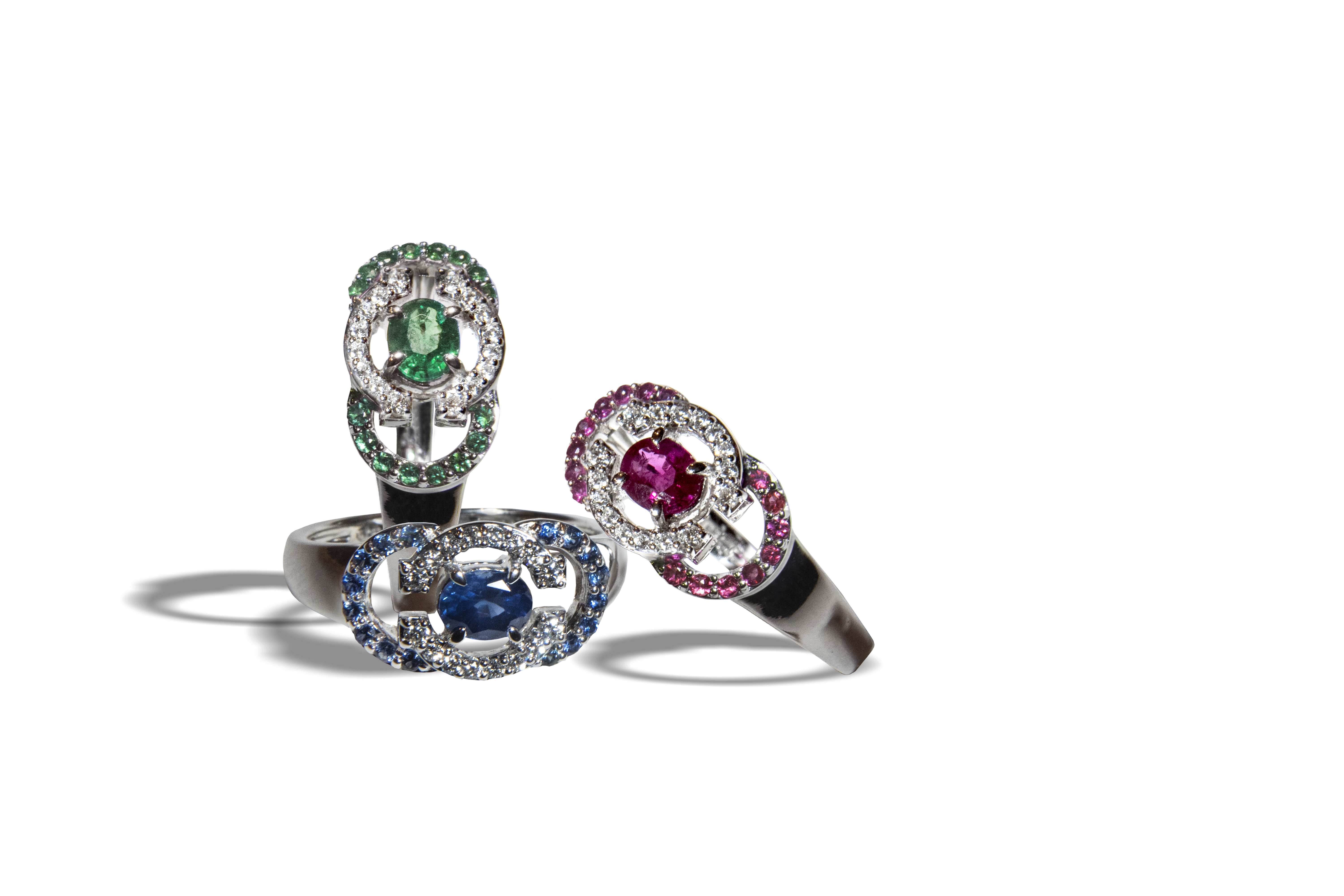 Cerclées d’allées de diamants scintillants, des parterres d’émeraudes, de saphirs ou de rubis étincellent dans un labyrinthe d’or blanc majestueux. Omniprésentes par leur charme délicat, ces bagues cristalliseront votre féminité avec raffinement.
