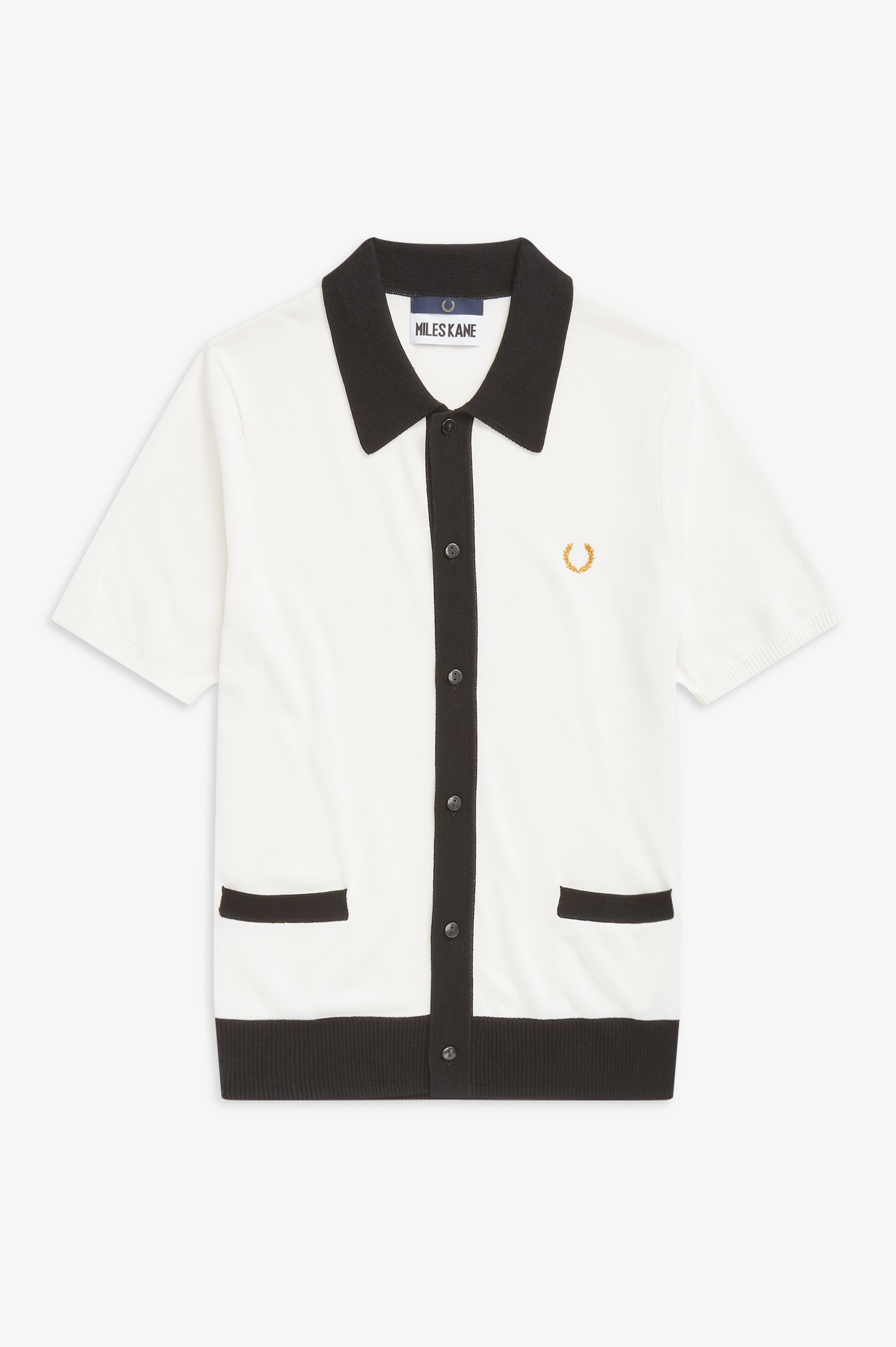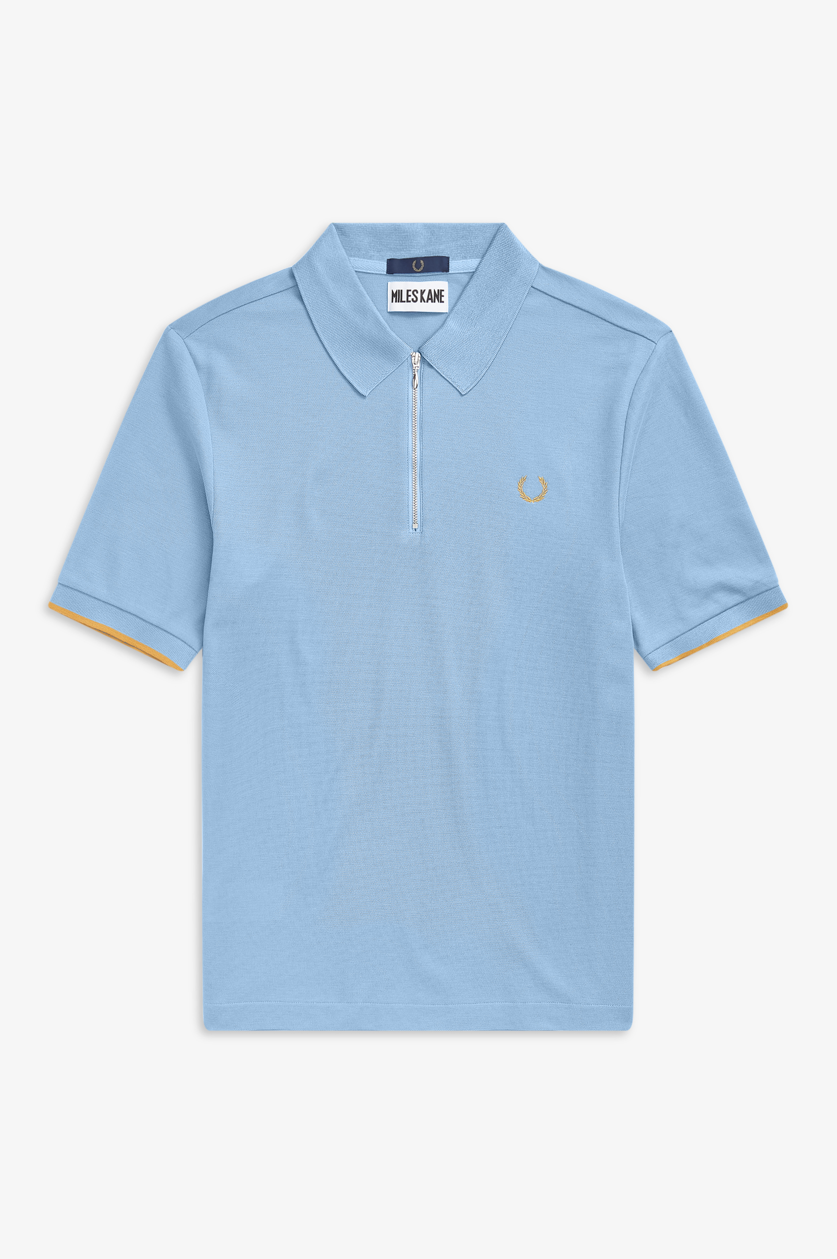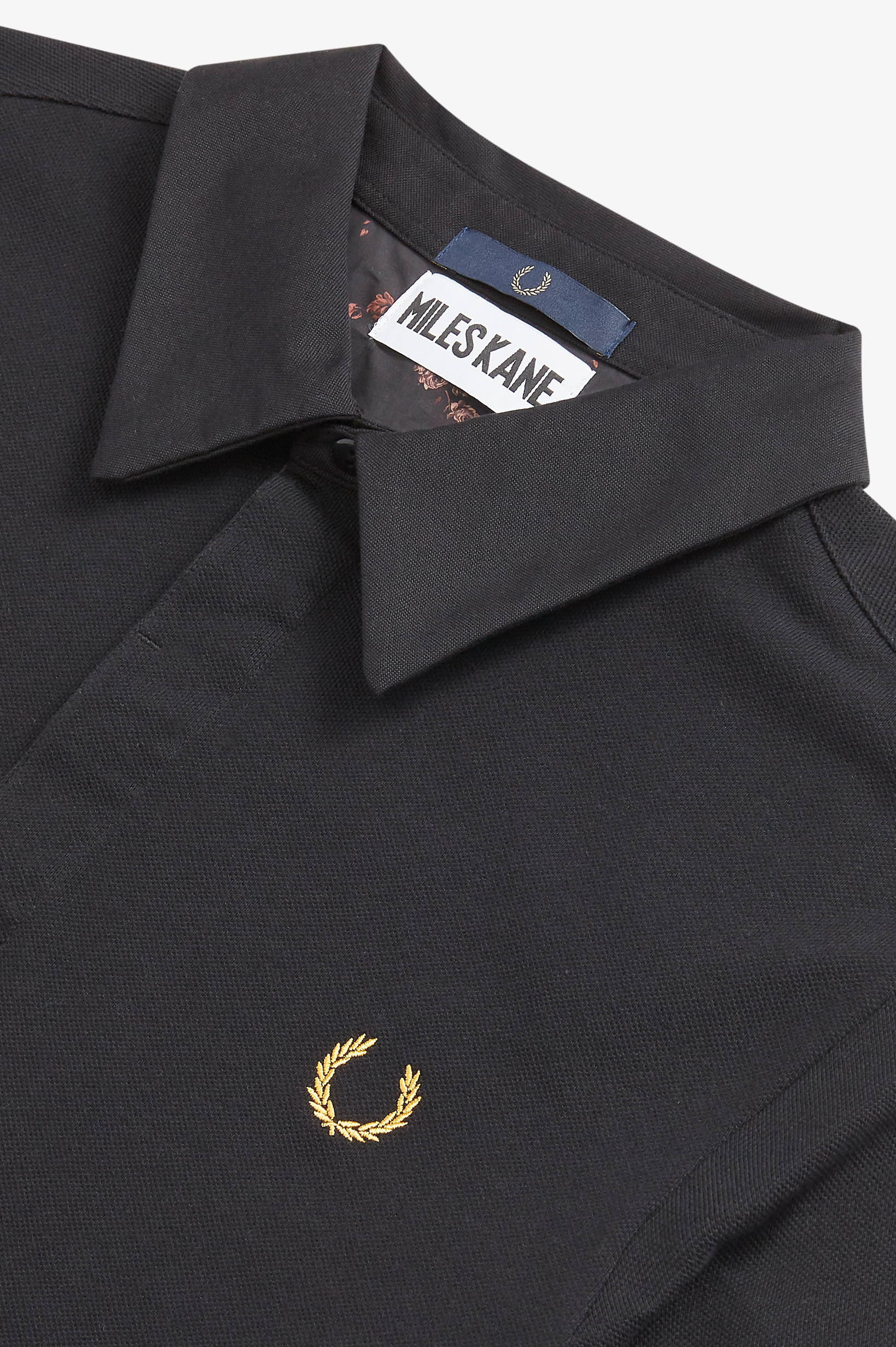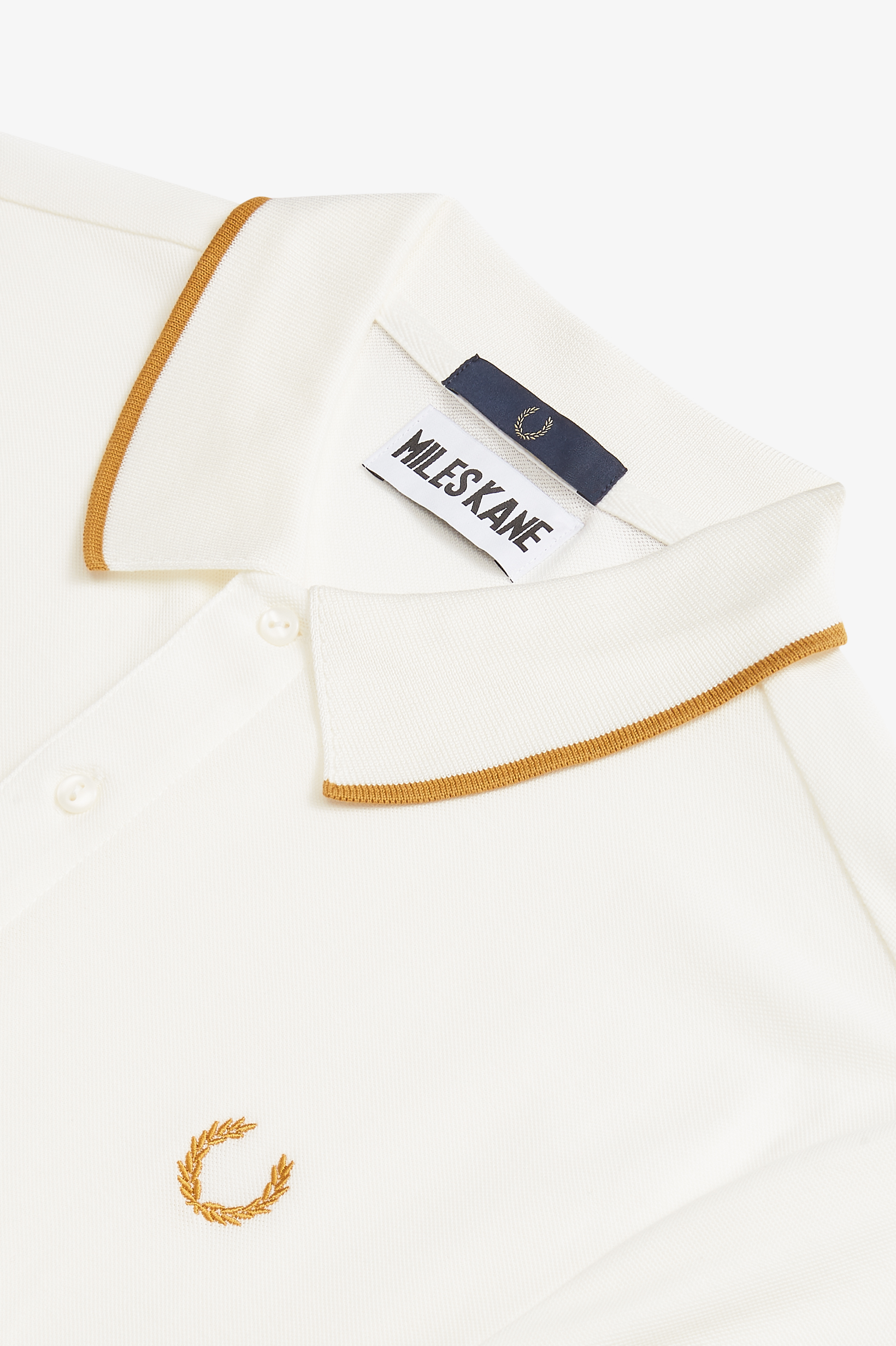 La chemise Fred Perry a été repensée avec un piqué plus léger et le laurier brodé en doré. Les adaptations apportées par Miles Kane incluent un polo zippé, un polo jacquard panelling et un imprimé exclusif floral Liberty. On retrouvera également ce même motif sur une chemise à manche courte droite en coton mercerisé. Miles Kane continue d’implanter l’univers de sa tournée dans d’autres modèles de Fred Perry, comme le Knitted Shirt, qu’il revisite avec des tissus brillants, des textures luxueuses et des silhouettes très 70’s.