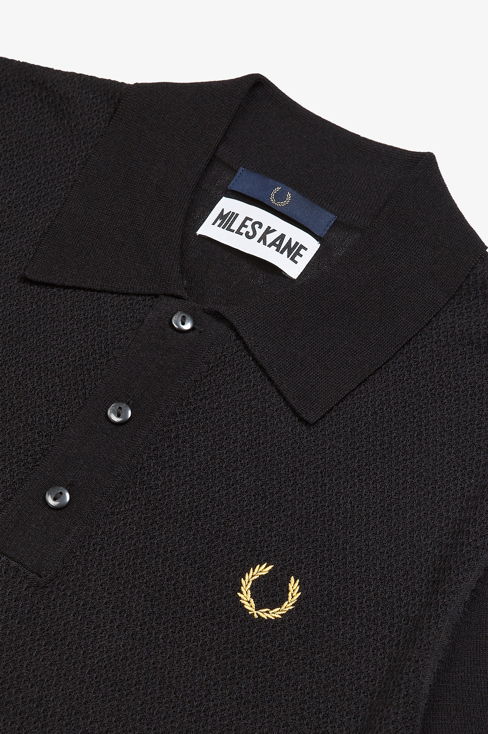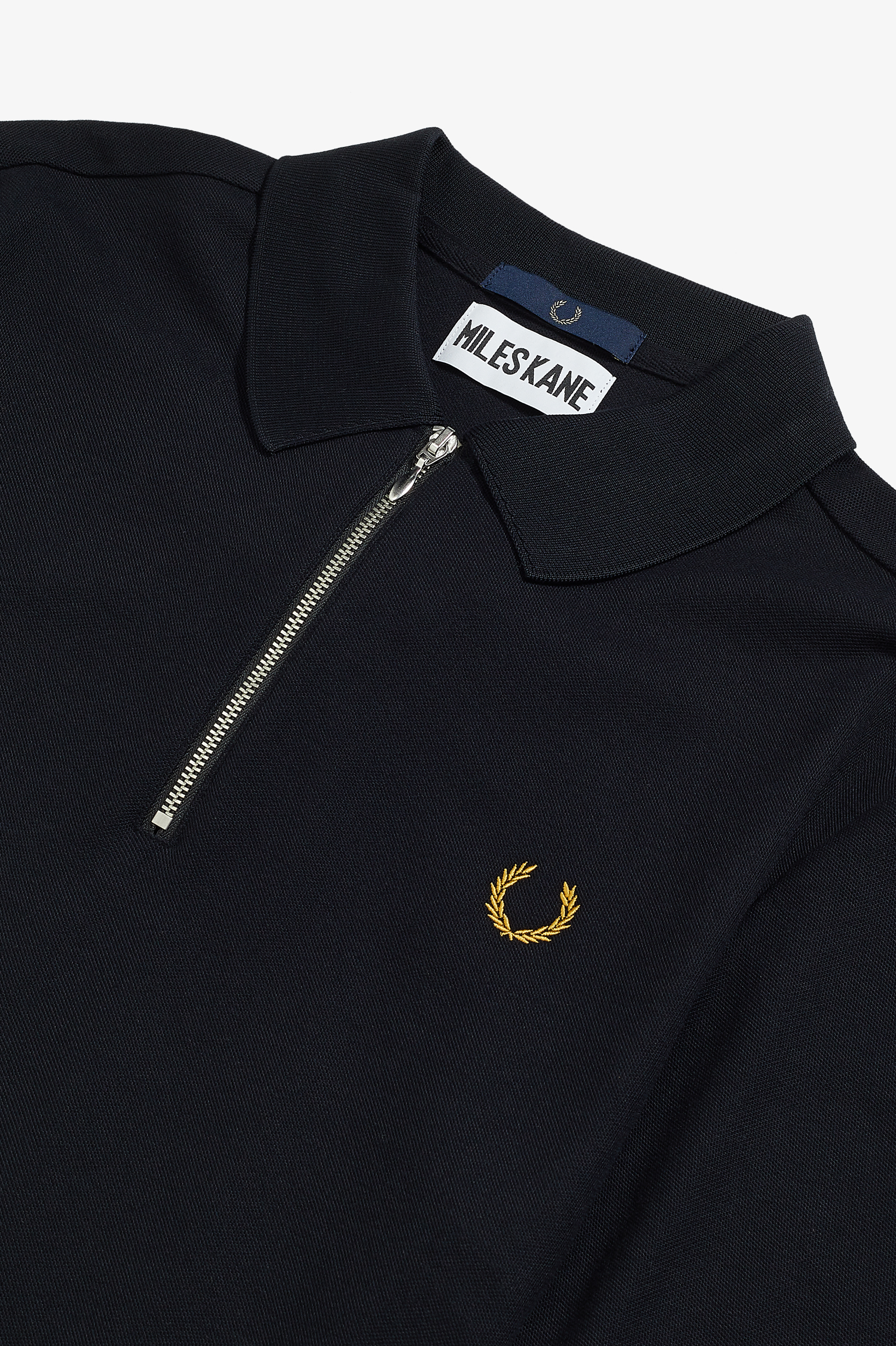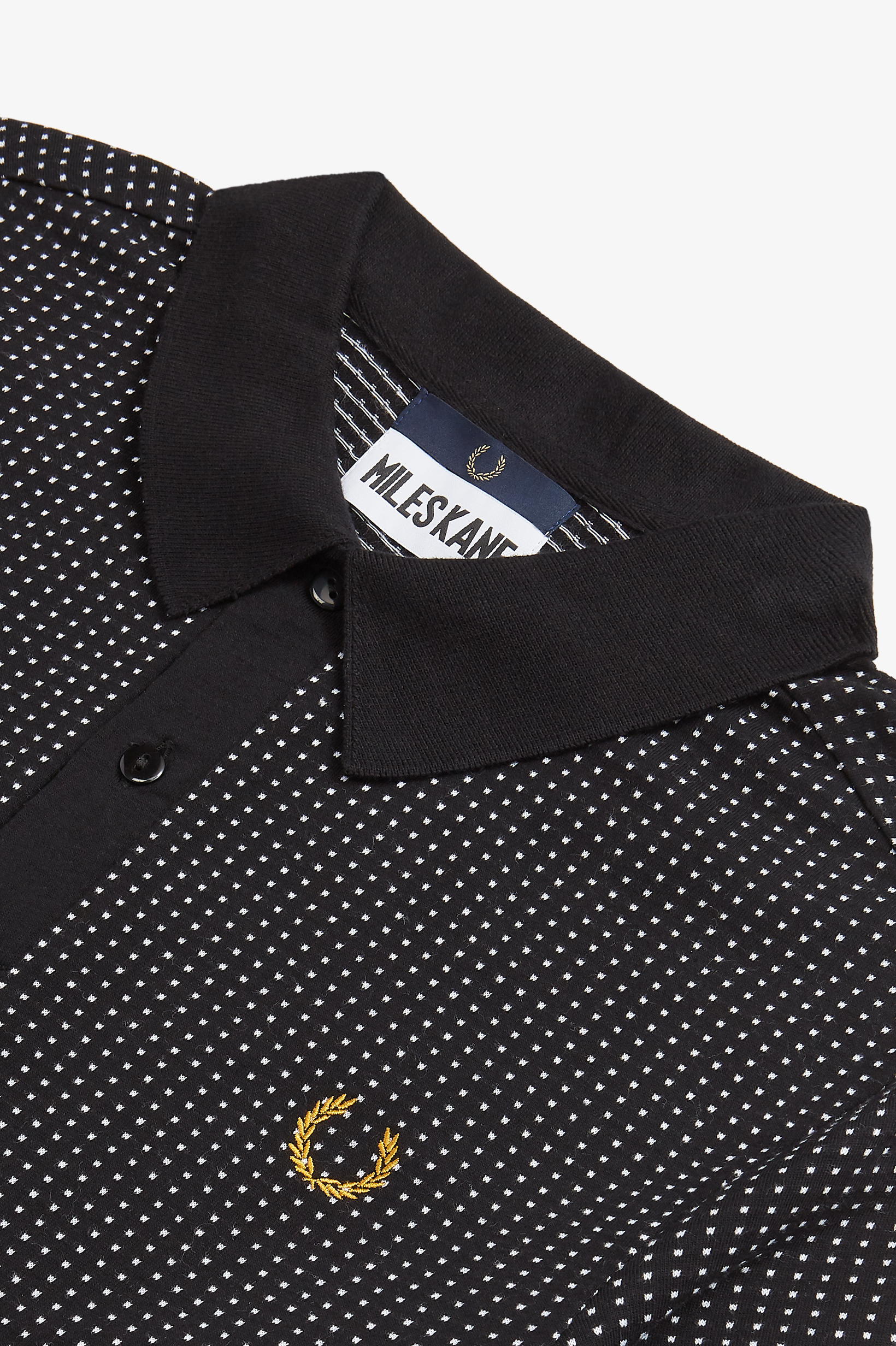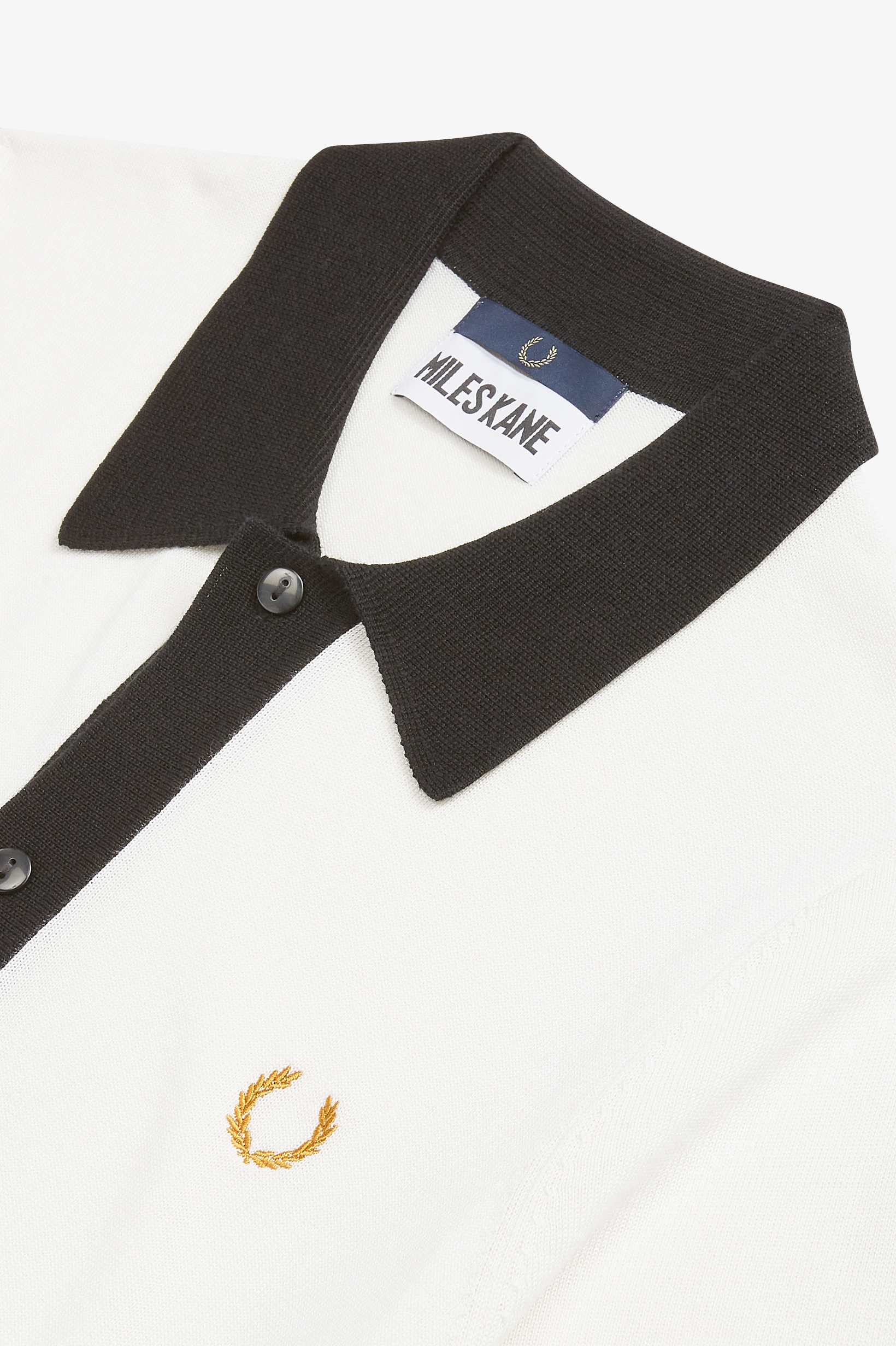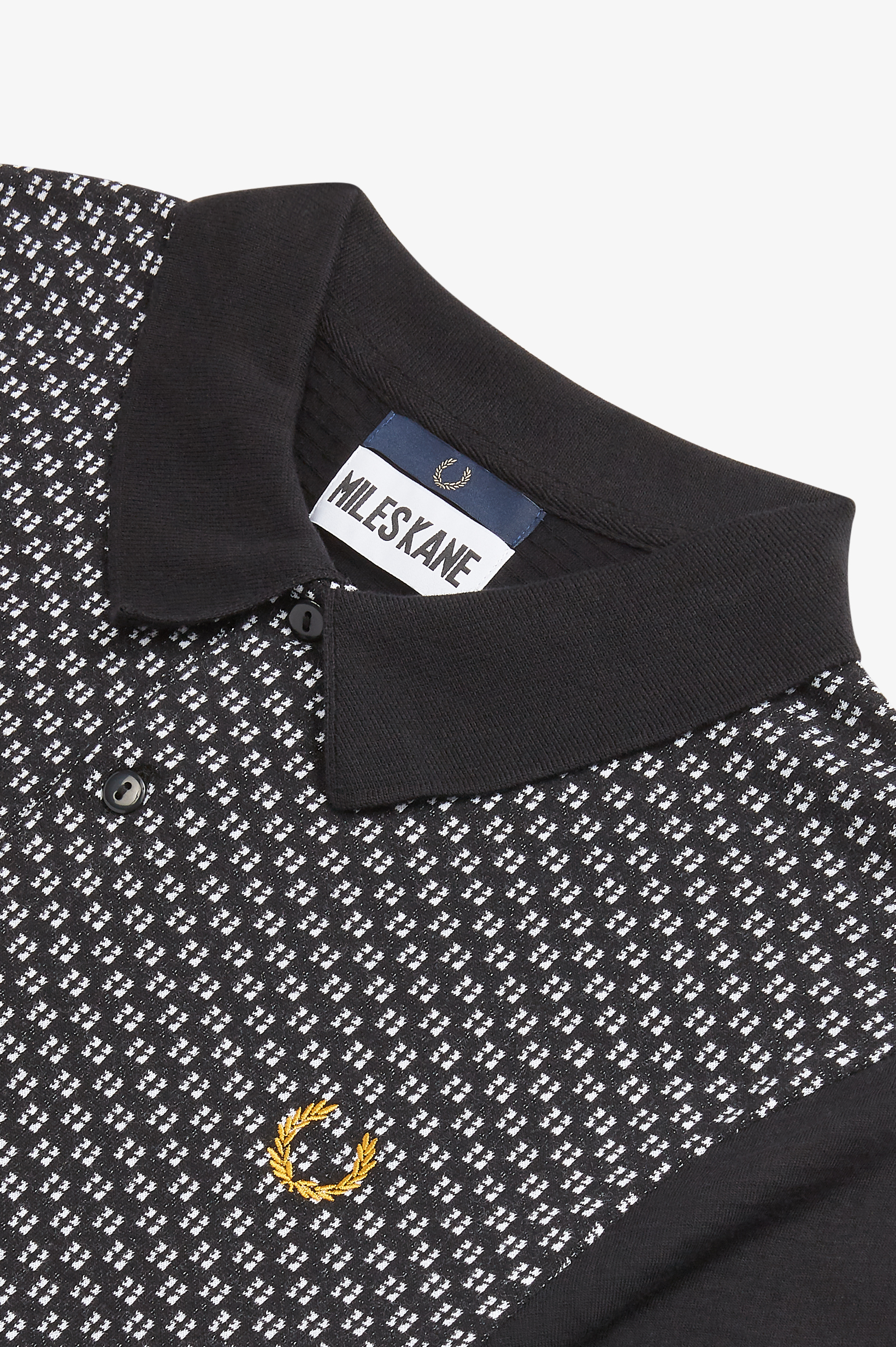 La chemise Fred Perry a été repensée avec un piqué plus léger et le laurier brodé en doré. Les adaptations apportées par Miles Kane incluent un polo zippé, un polo jacquard panelling et un imprimé exclusif floral Liberty. On retrouvera également ce même motif sur une chemise à manche courte droite en coton mercerisé. Miles Kane continue d’implanter l’univers de sa tournée dans d’autres modèles de Fred Perry, comme le Knitted Shirt, qu’il revisite avec des tissus brillants, des textures luxueuses et des silhouettes très 70’s.