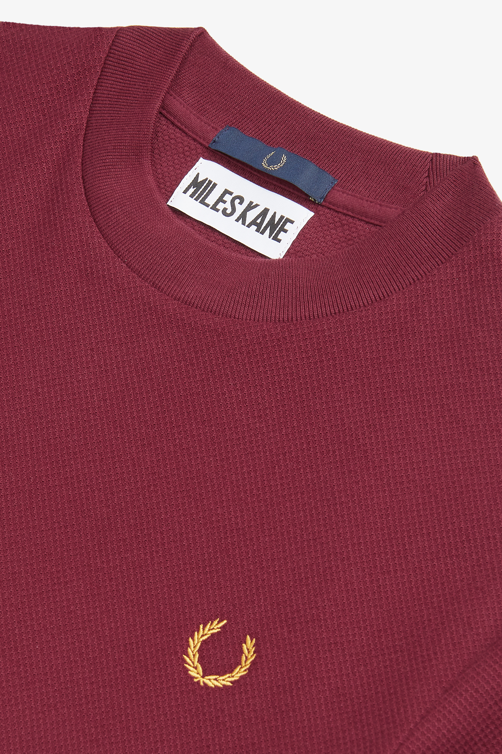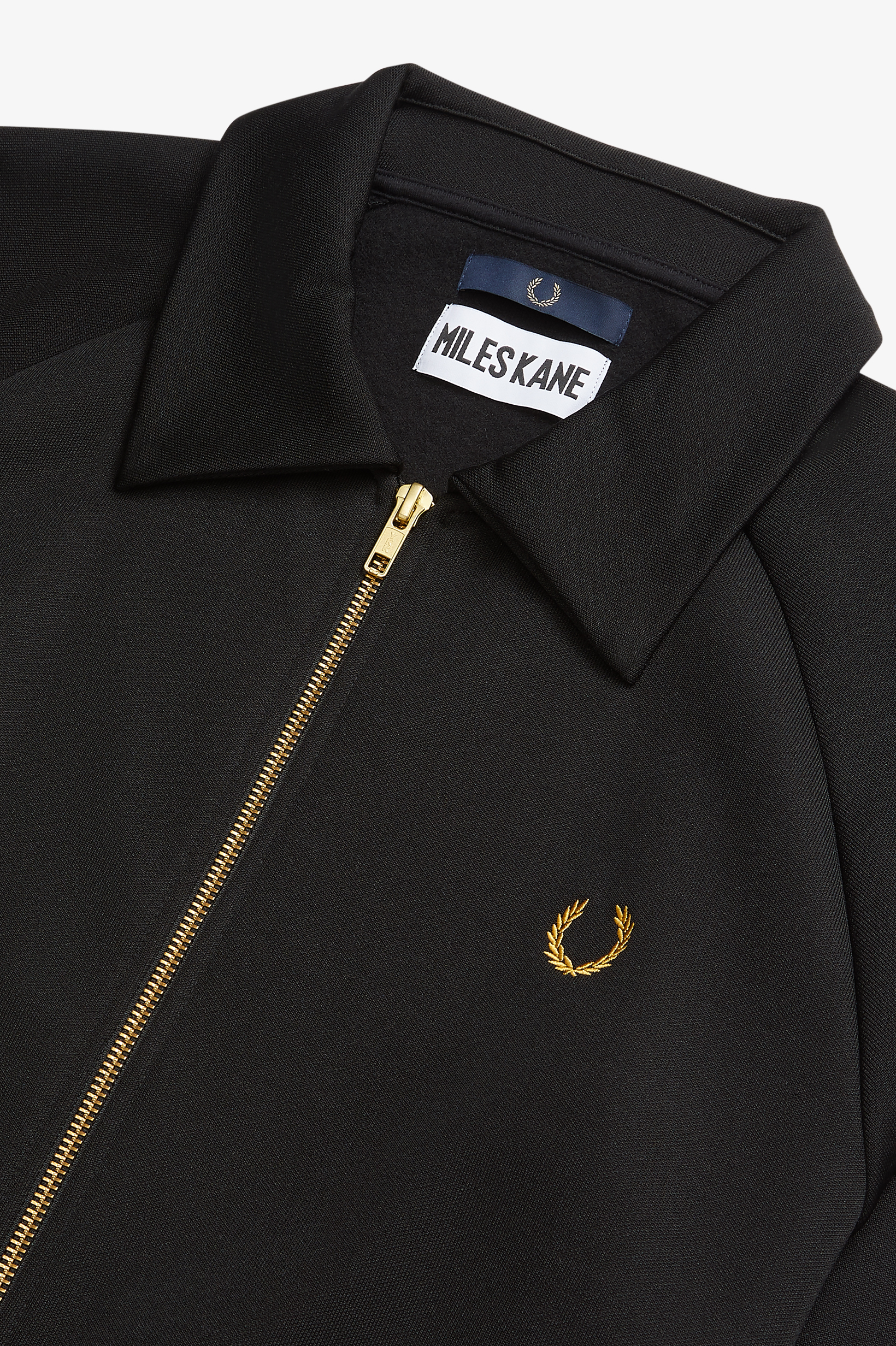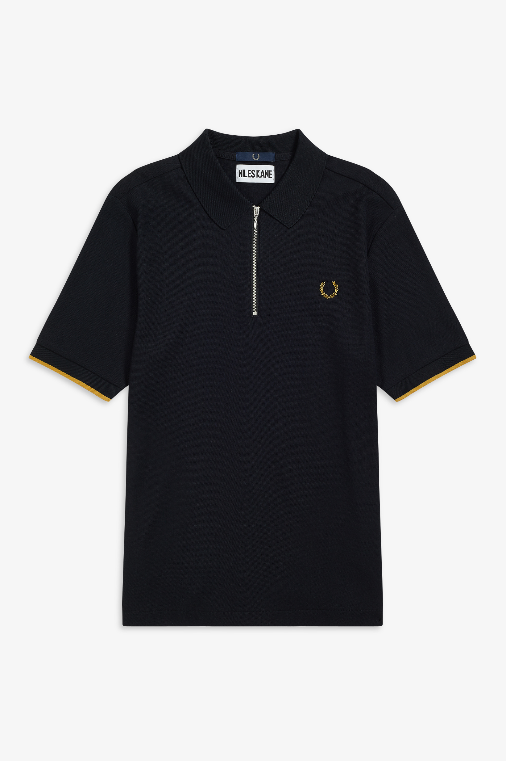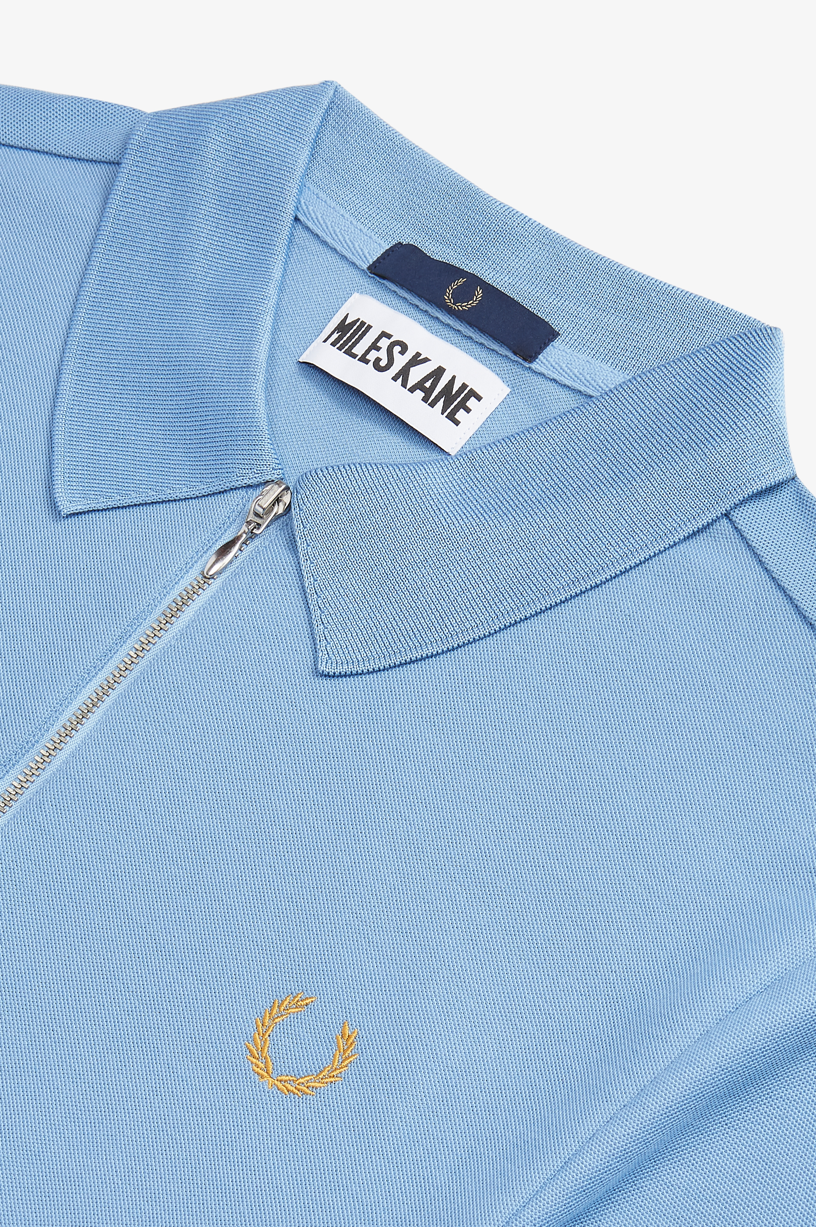 La chemise Fred Perry a été repensée avec un piqué plus léger et le laurier brodé en doré. Les adaptations apportées par Miles Kane incluent un polo zippé, un polo jacquard panelling et un imprimé exclusif floral Liberty. On retrouvera également ce même motif sur une chemise à manche courte droite en coton mercerisé. Miles Kane continue d’implanter l’univers de sa tournée dans d’autres modèles de Fred Perry, comme le Knitted Shirt, qu’il revisite avec des tissus brillants, des textures luxueuses et des silhouettes très 70’s.