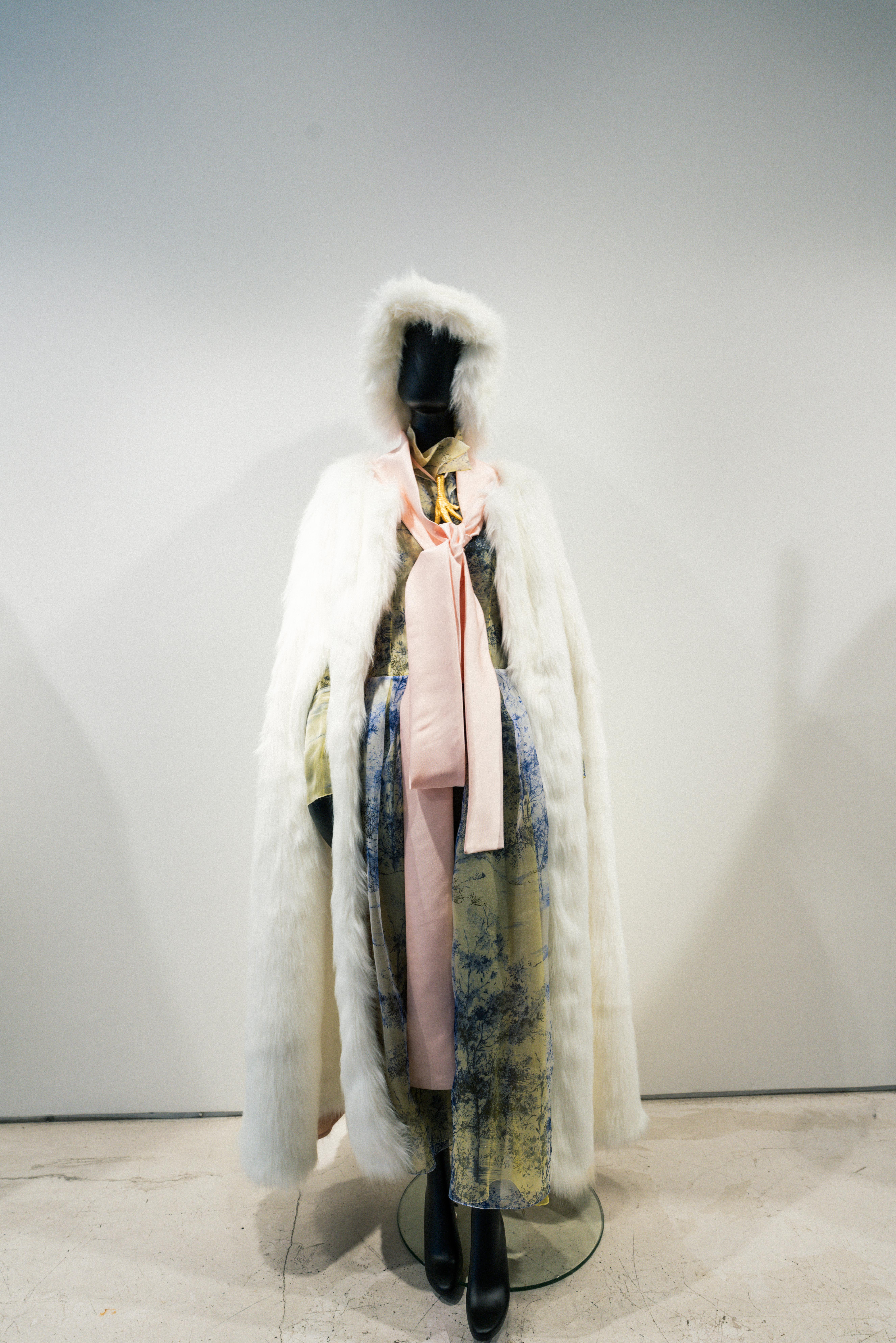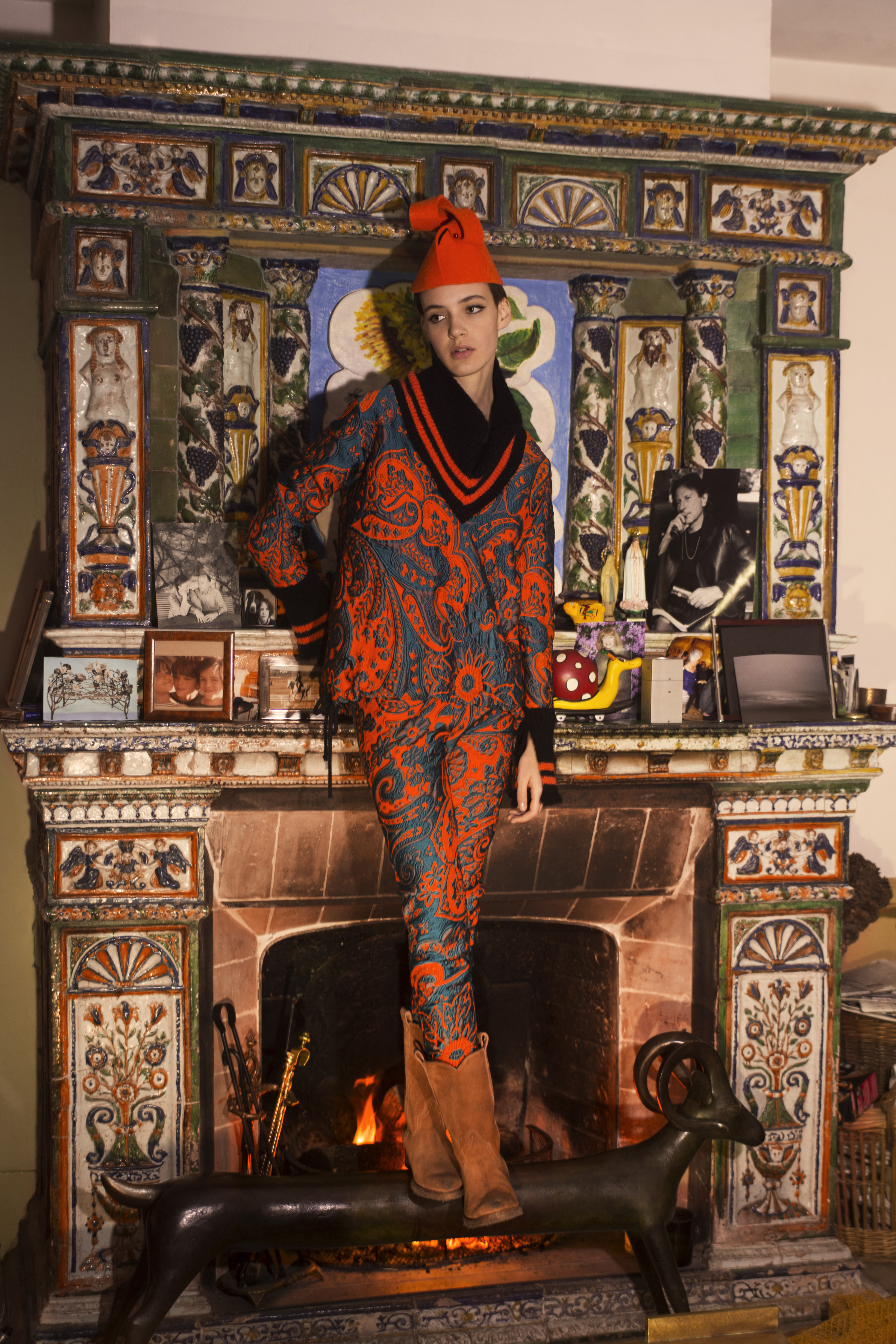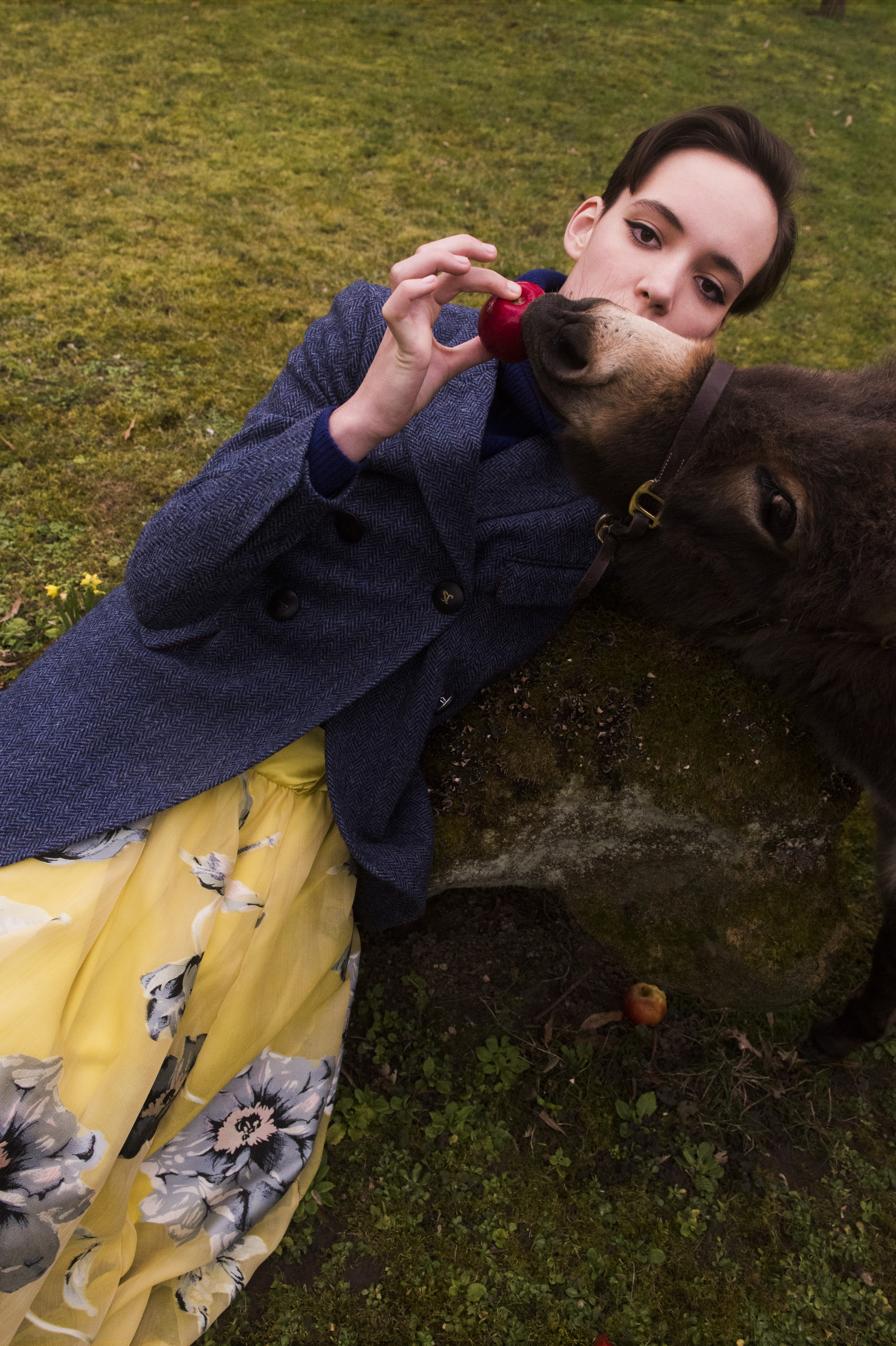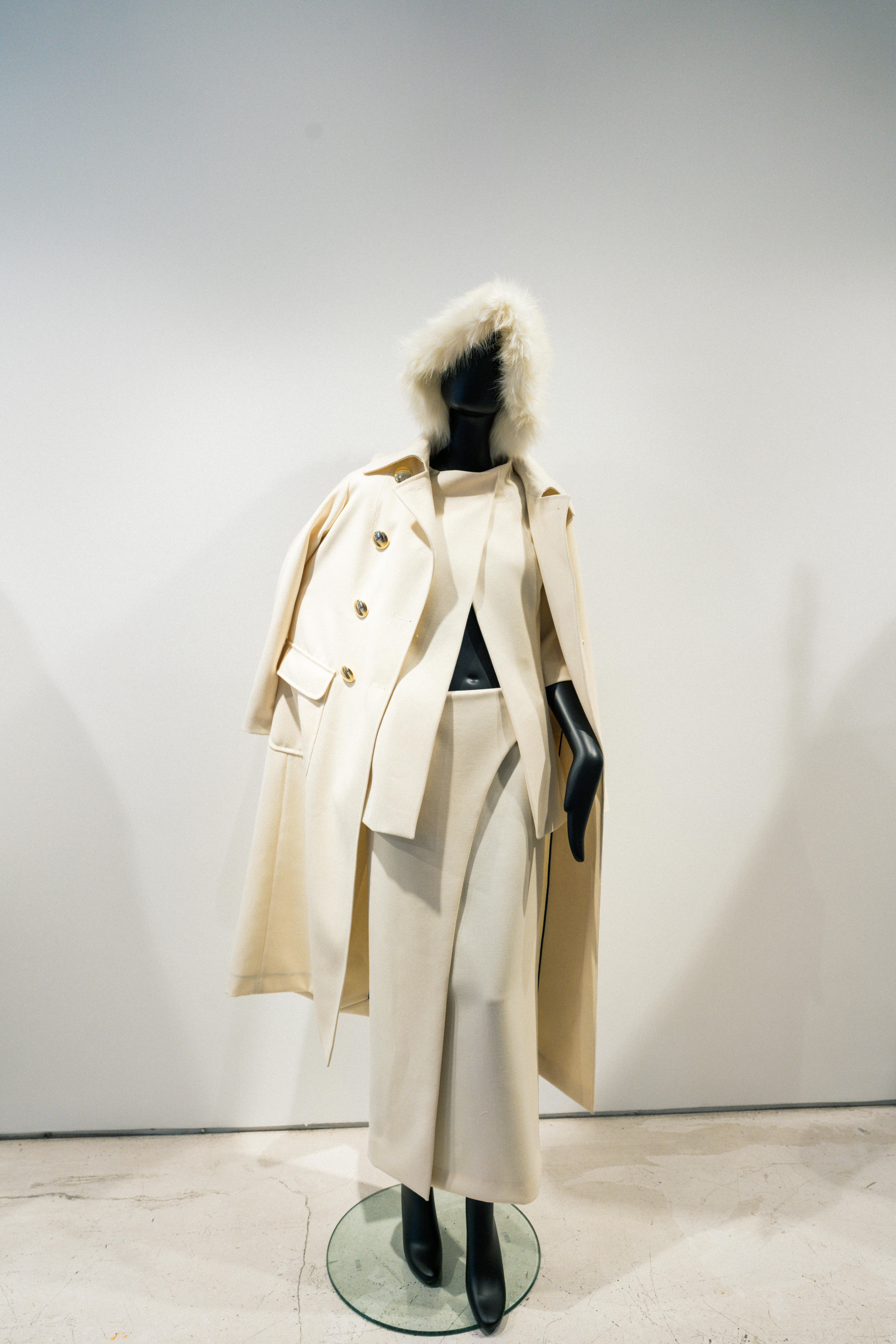 Pourl’Hiver 2019/2020 JunkoShimada offre une collection aussi réjouissante qu’insouciante.Sourireau lèvre et bouteille de champagne à la main,un beau brin de fille aristogentiment déjanté, fuitParis pour s’installer dans une campagne surréaliste.Junko plonge le chic parisiendans un scenario à la Lewis Carrol, s’entoure d’animaux réels ou oniriques, moutons ou poisson gonflablede Lalanne, ânes miniatures etgrenouilles en fonte, chien de chasse et poules de faïence…Clin d’œil désinvolte à une couture de jour, la collection mixe le chic et le confort, matche le sport et l’habillé et fait swinguer le masculin et le féminin.Tailleur pimpant sur doux col roulé, longcache-poussière ou redingote cintrée, bombardier de peau lainée vernie ou pyjama bariolé, blancs d’hiver et bouquets d’imprimés,bibis pop et santiag rock, maille douillette et organza vaporeux, de Londres à Tokyo, de Paris à Fontainebleau Junko s’amuse en brouillant les pistes et fusionnant les influences.