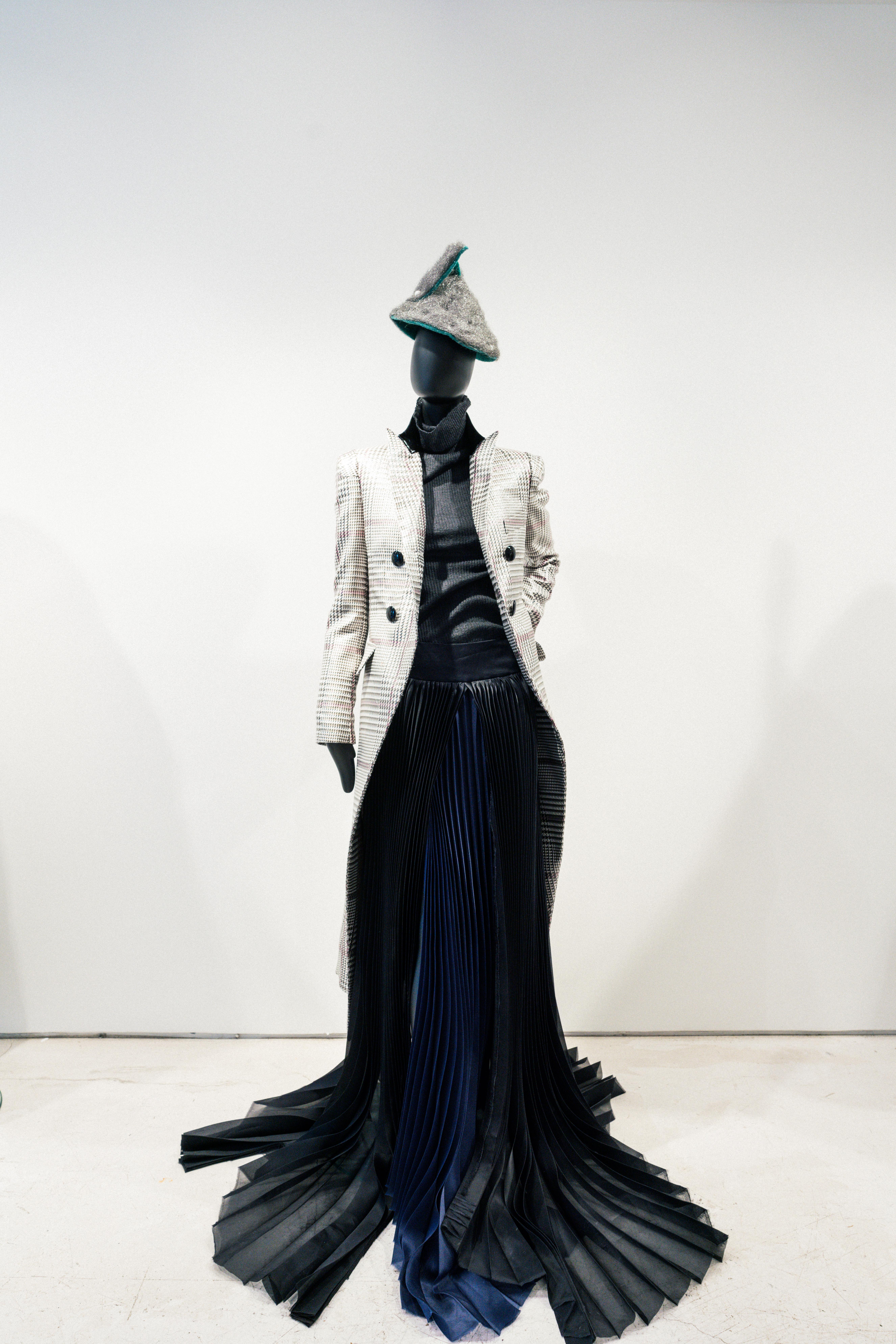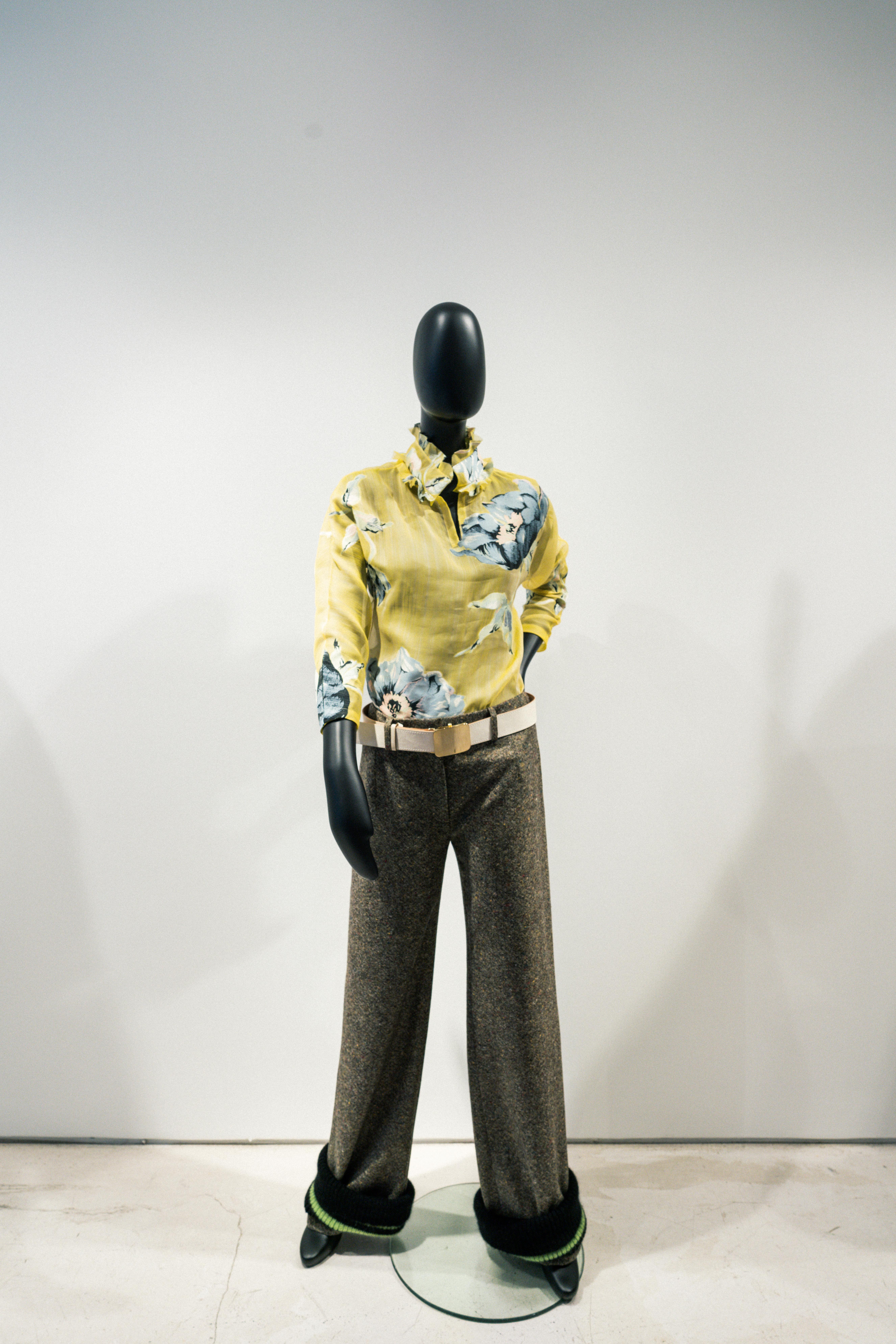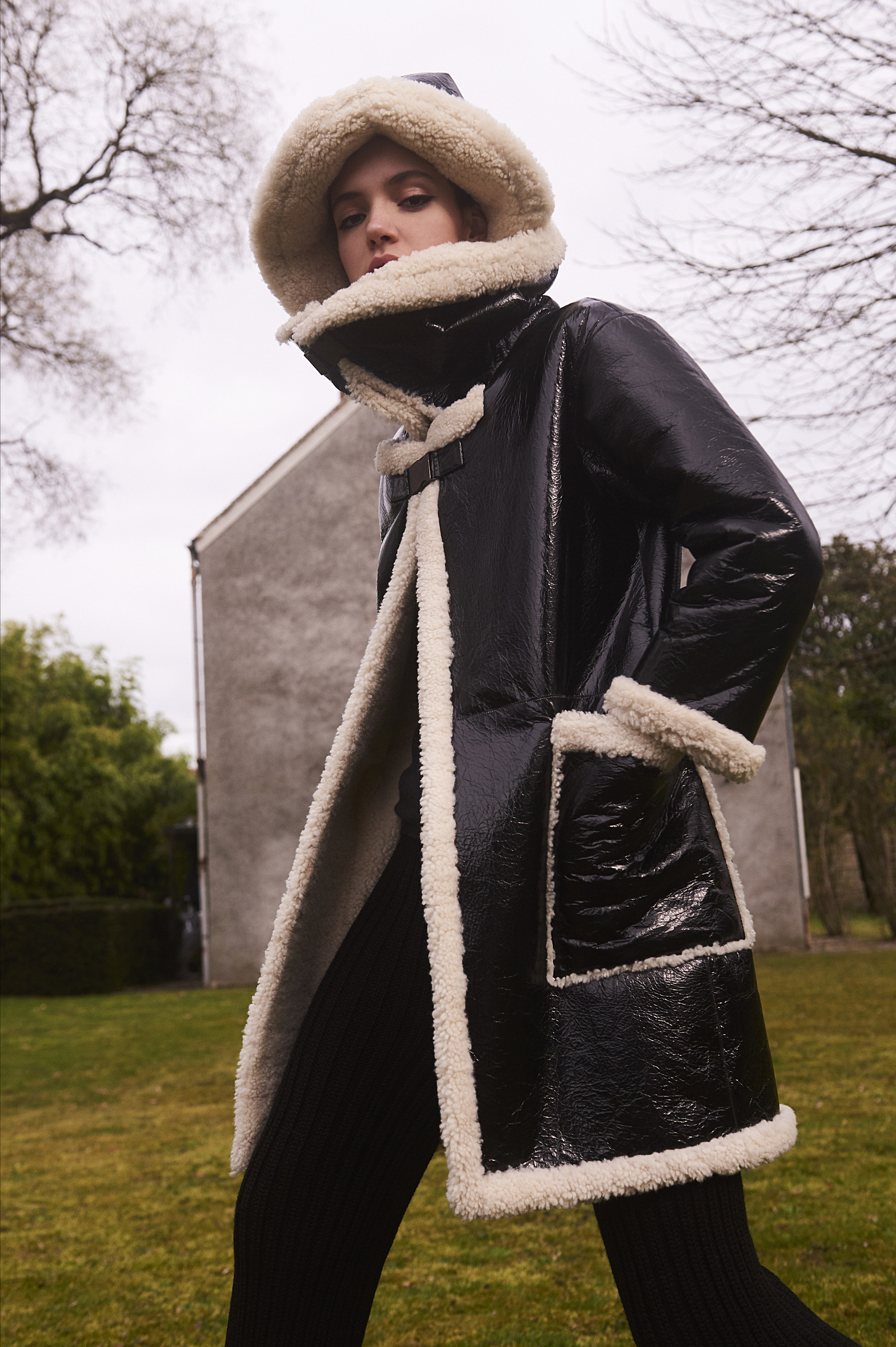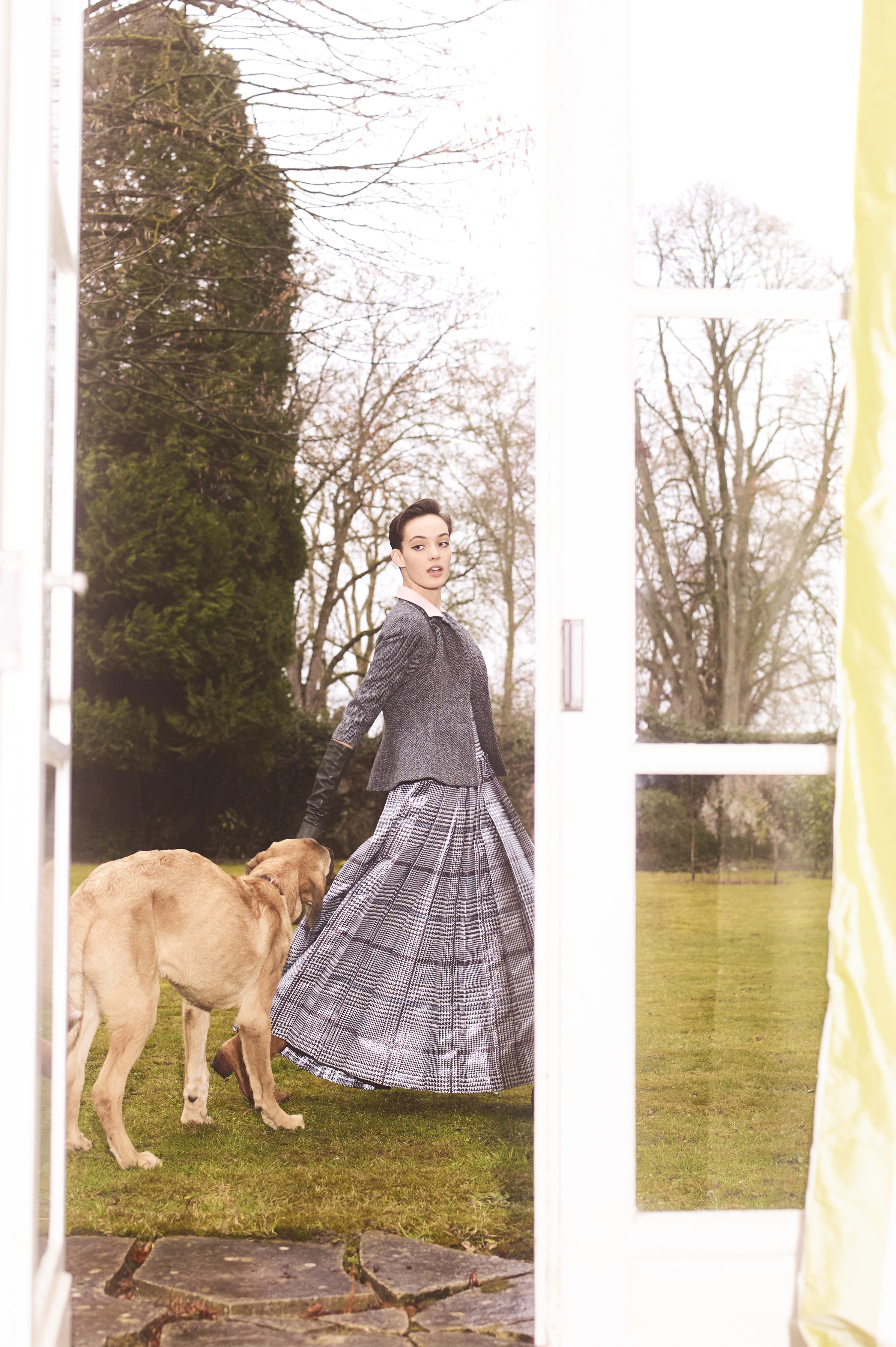 Pourl’Hiver 2019/2020 JunkoShimada offre une collection aussi réjouissante qu’insouciante.Sourireau lèvre et bouteille de champagne à la main,un beau brin de fille aristogentiment déjanté, fuitParis pour s’installer dans une campagne surréaliste.Junko plonge le chic parisiendans un scenario à la Lewis Carrol, s’entoure d’animaux réels ou oniriques, moutons ou poisson gonflablede Lalanne, ânes miniatures etgrenouilles en fonte, chien de chasse et poules de faïence…Clin d’œil désinvolte à une couture de jour, la collection mixe le chic et le confort, matche le sport et l’habillé et fait swinguer le masculin et le féminin.Tailleur pimpant sur doux col roulé, longcache-poussière ou redingote cintrée, bombardier de peau lainée vernie ou pyjama bariolé, blancs d’hiver et bouquets d’imprimés,bibis pop et santiag rock, maille douillette et organza vaporeux, de Londres à Tokyo, de Paris à Fontainebleau Junko s’amuse en brouillant les pistes et fusionnant les influences.